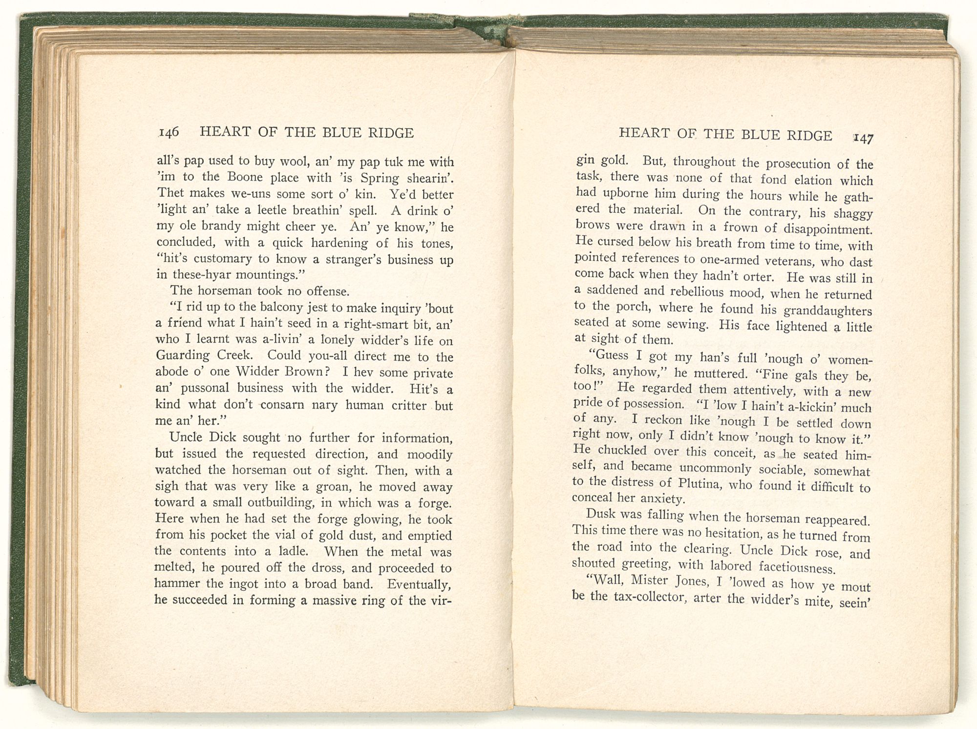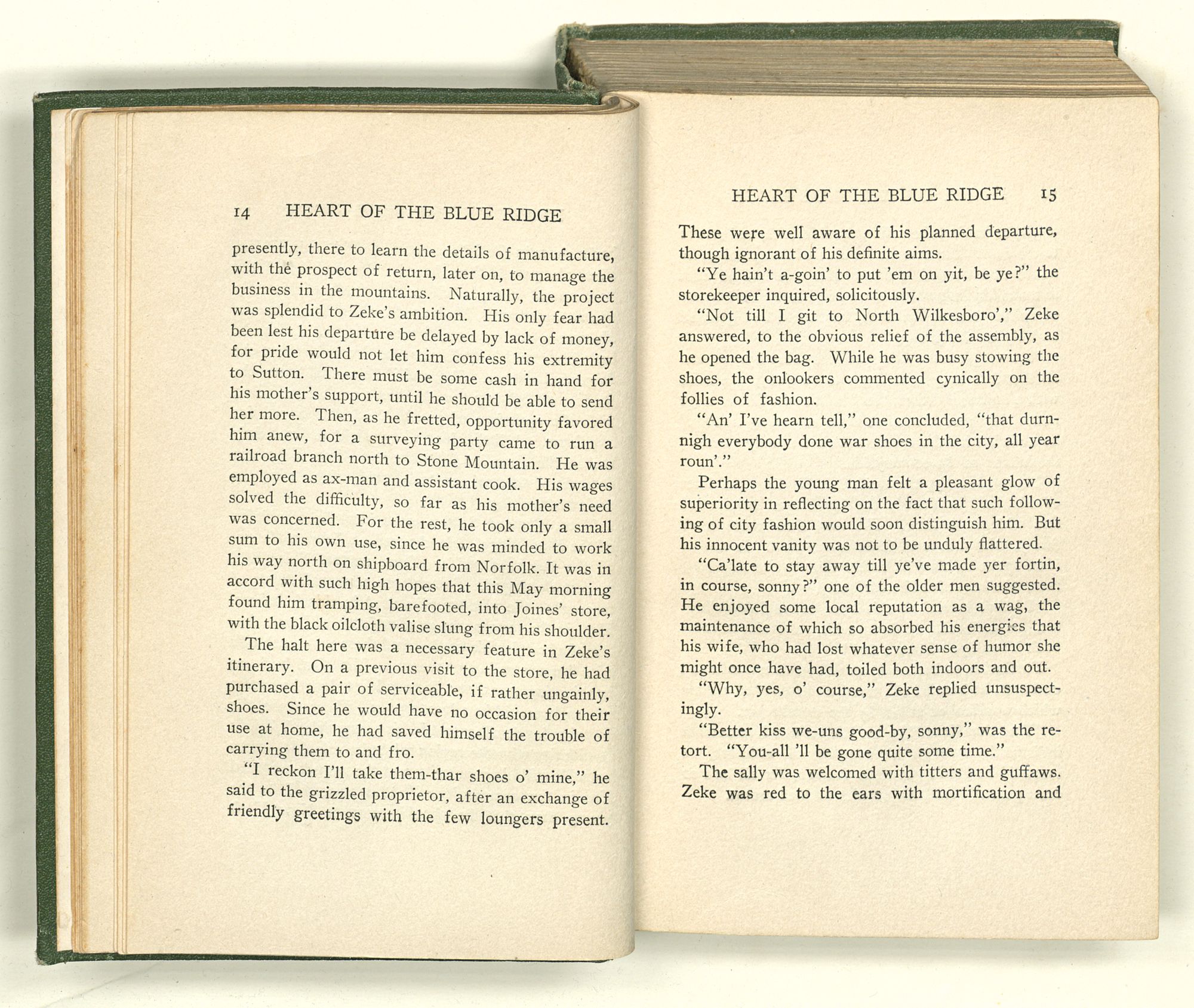 “Not till I git to North Wilkesboro’,” Zeke answered, to the obvious relief of the assembly, as he opened the bag. While he was busy stowing the shoes, the onlookers commented cynically on the follies of fashion.