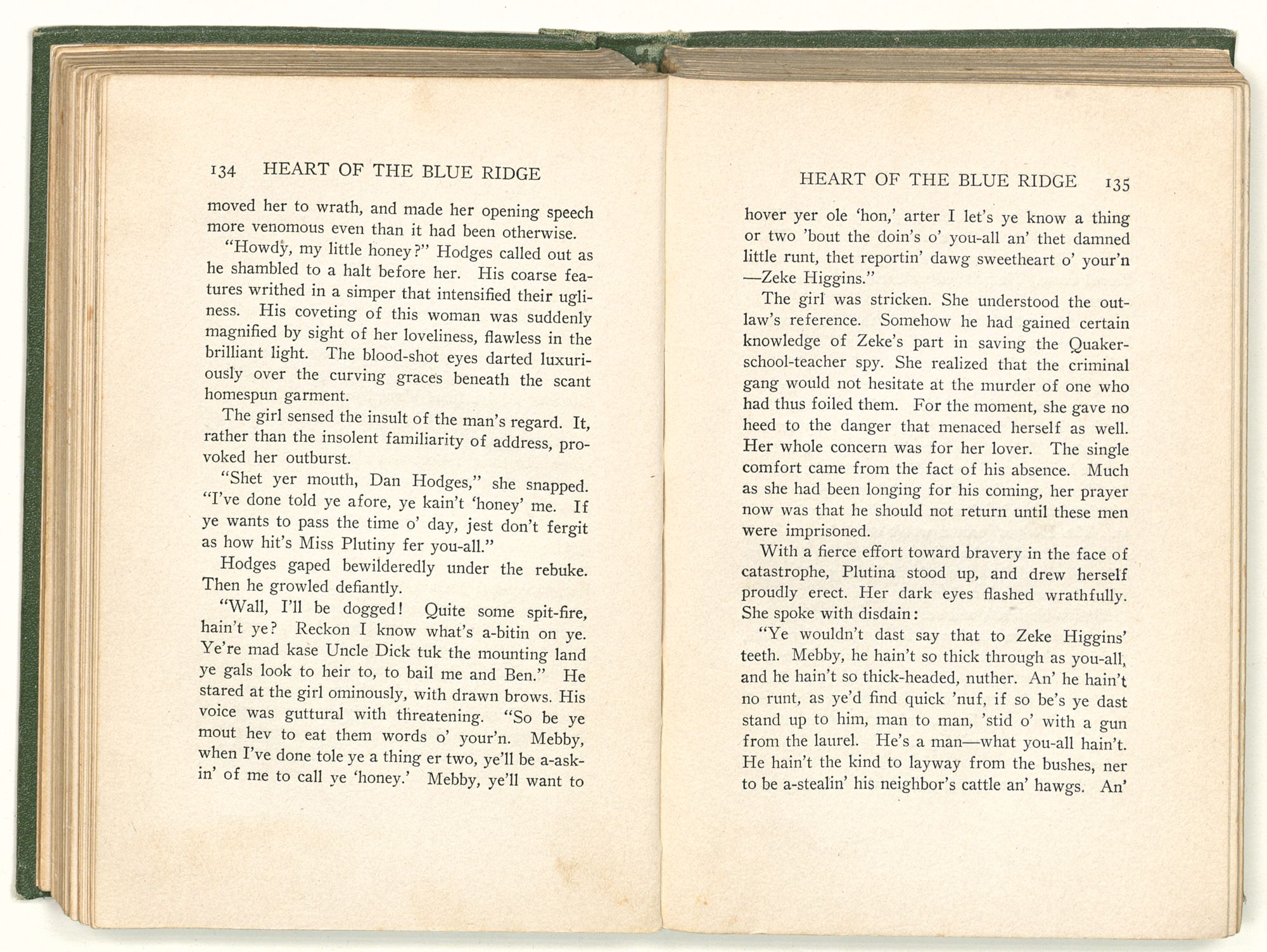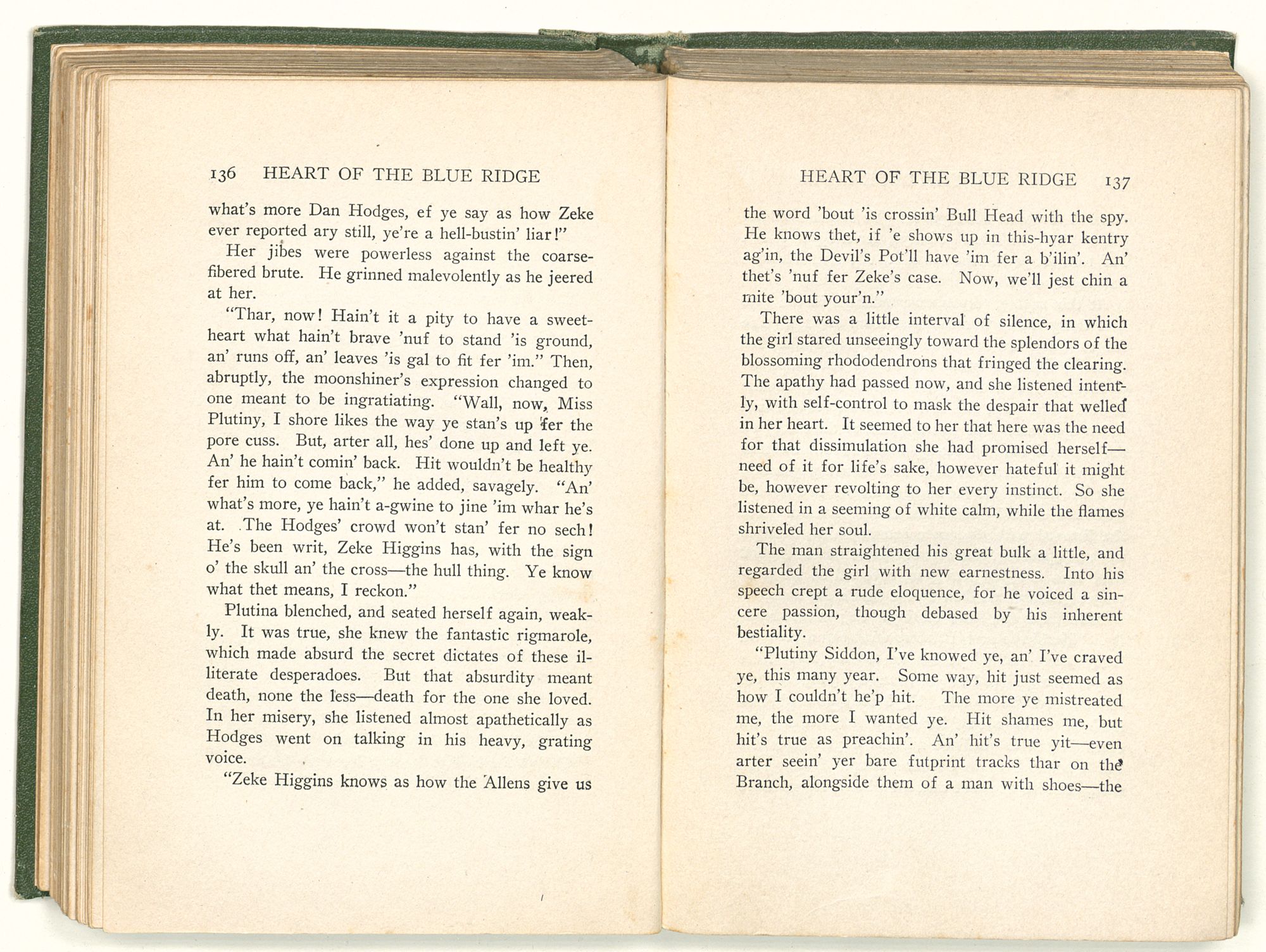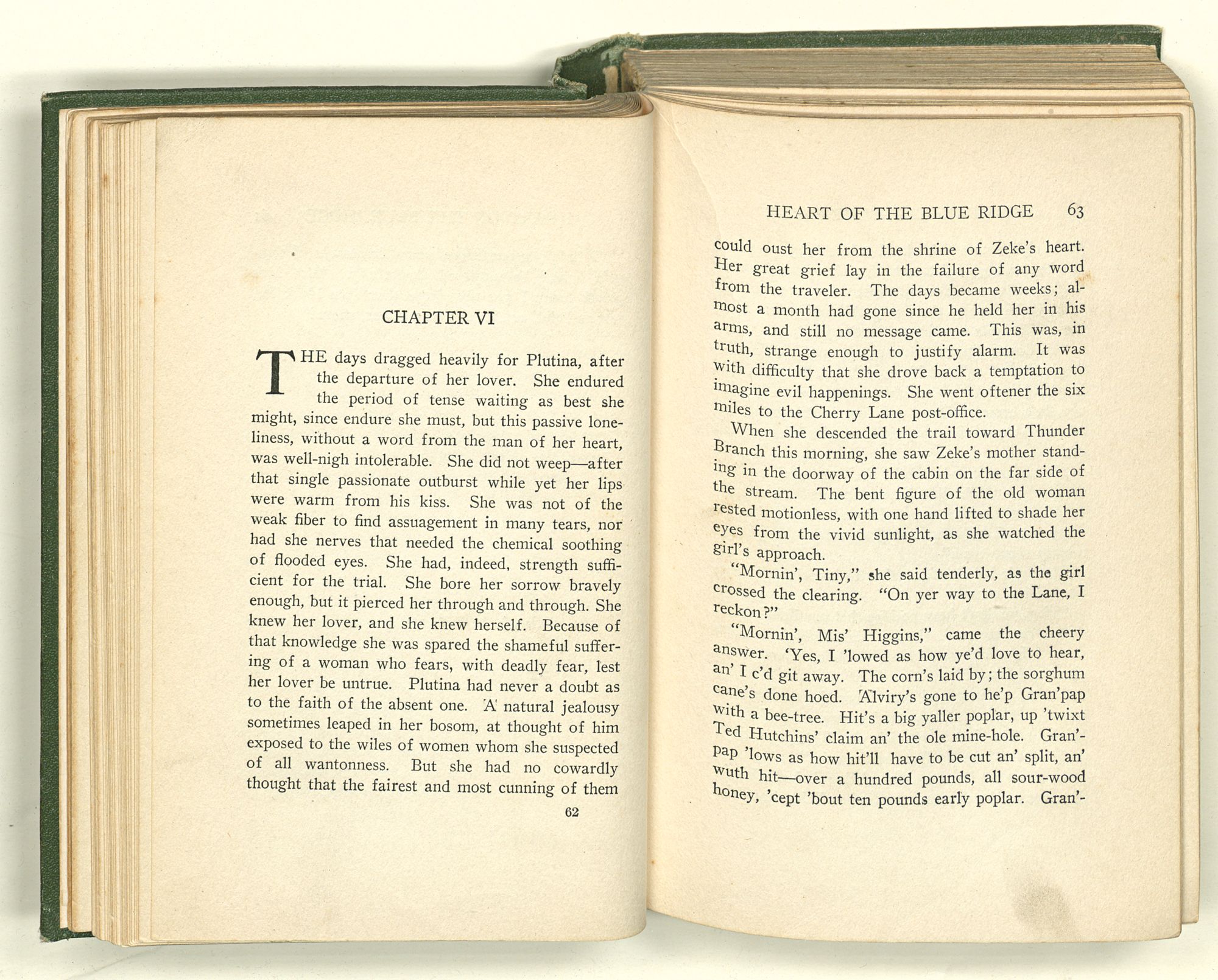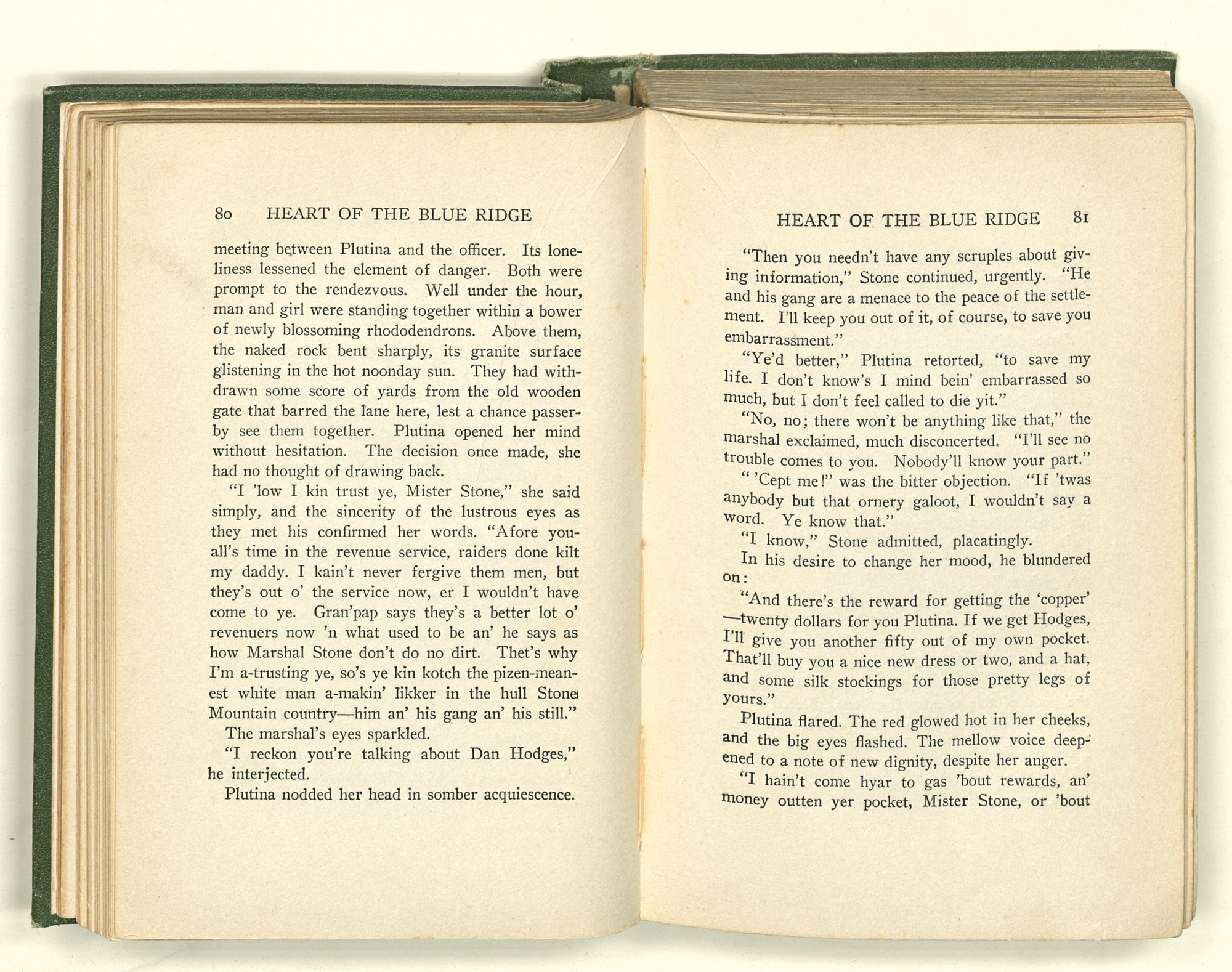 Still, as always, fearful of showing emotion too openly, Zeke hastened to introduce a new topic. He took from a pocket a book of twelve two-cent postage stamps, to secure which he had trudged the four miles from his mother's cabin to the Cherry Lane post-office. The book, in its turn, was proffered to Plutina, who accepted it in mild bewilderment.