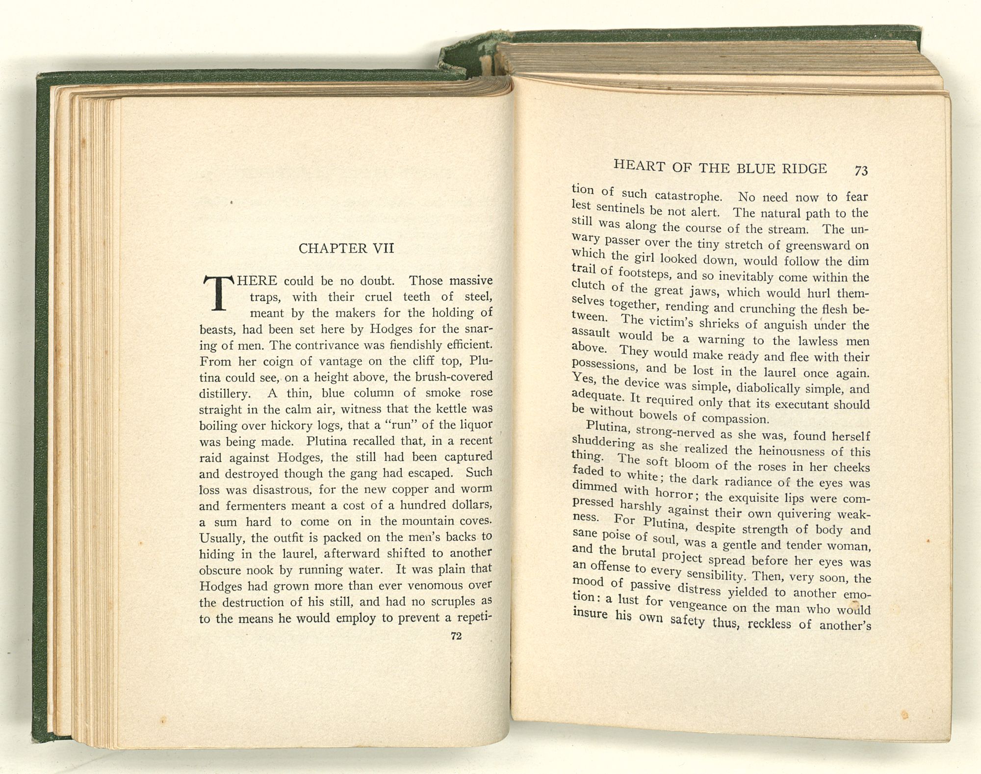had a share in the fellow's escape. Old Dick Siddon, Plutina's grandfather, heard. He had hated the “revenuers” always. Since the death of his only son at their hands, his hatred had become a mania. He was a strong man, fierce in anger. When he bade his grandchild dismiss her favored suitor, she feigned obedience. She, and Zeke as well, knew the futility of fighting the old man's prejudices. But, with the optimism of youth, the lovers hoped for happiness. A little older, they might at least defy the hostile guardian. In the meantime, Zeke was determined to attain material prosperity during the period of waiting.