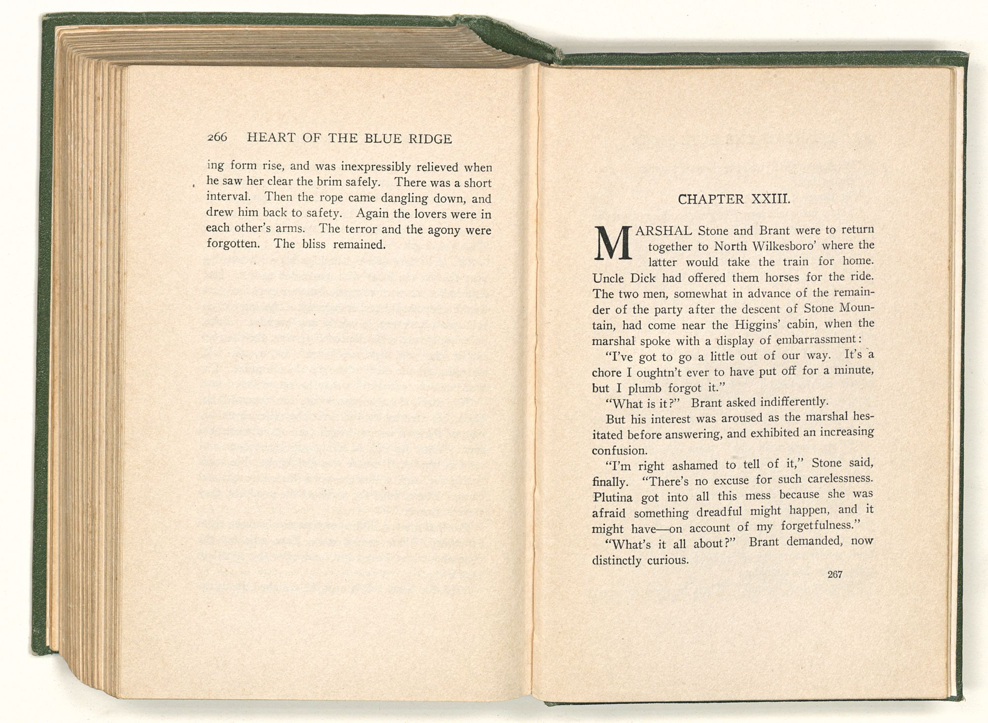 CHAPTER XXIII.MARSHAL Stone and Brant were to return together to North Wilkesboro’ where the latter would take the train for home. Uncle Dick had offered them horses for the ride. The two men, somewhat in advance of the remainder of the party after the descent of Stone Mountain, had come near the Higgins' cabin, when the marshal spoke with a display of embarrassment: