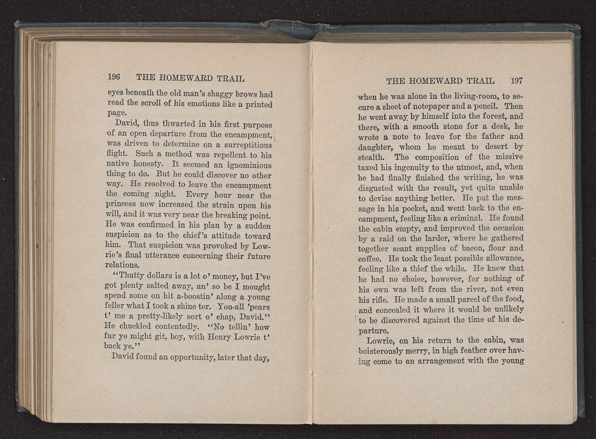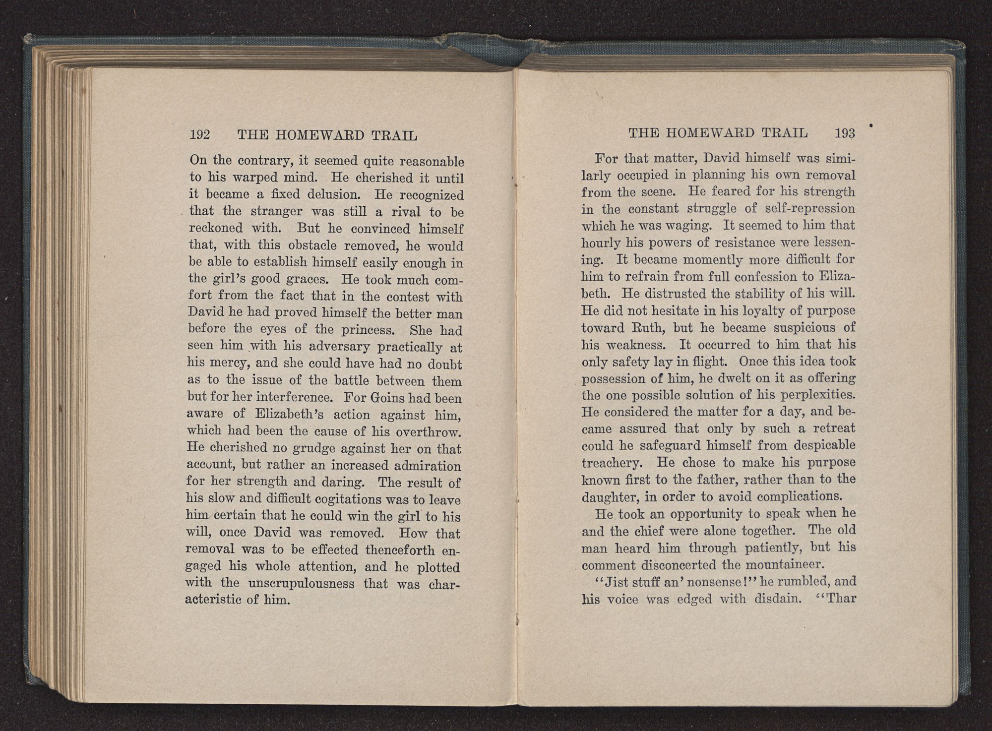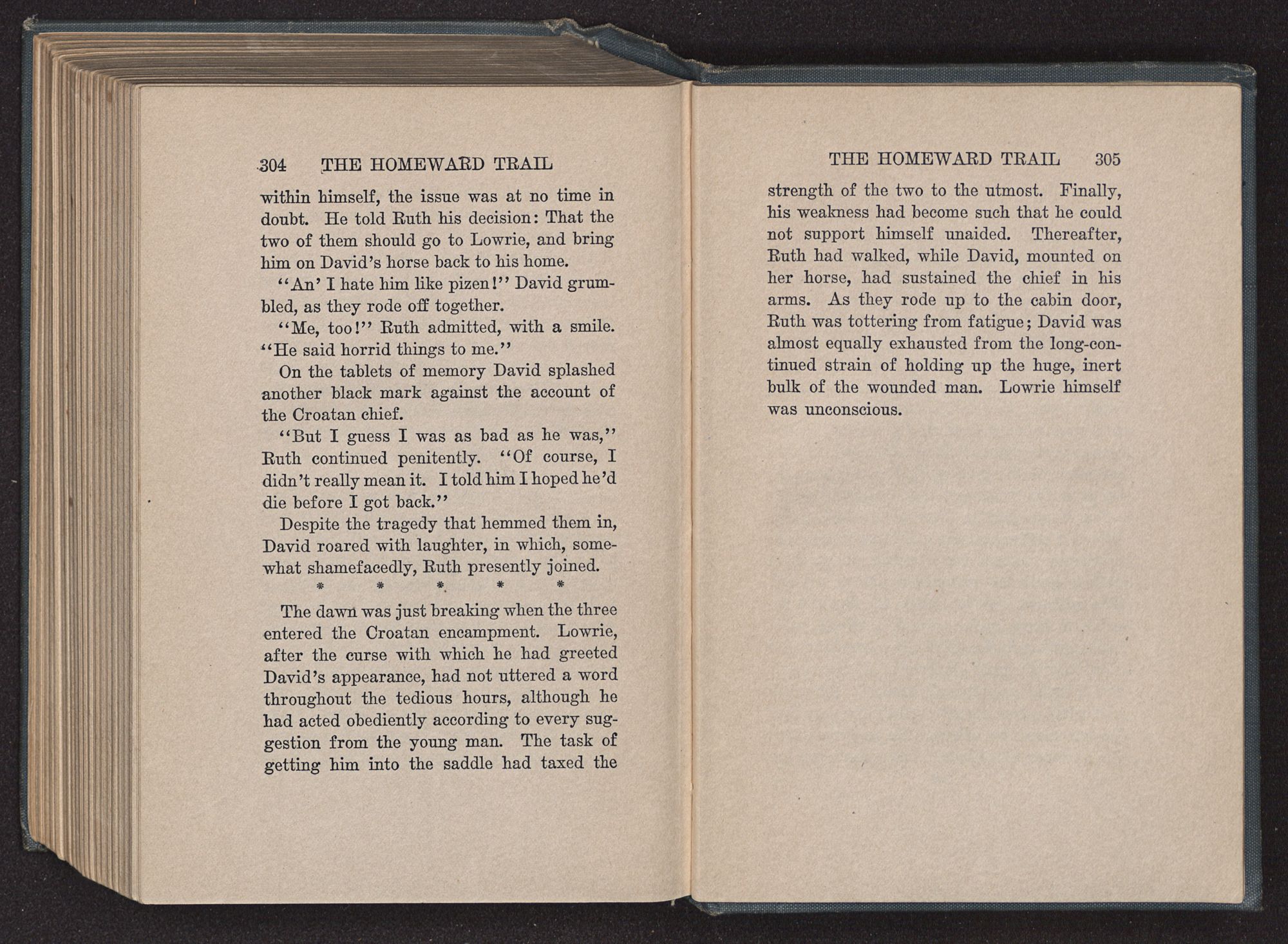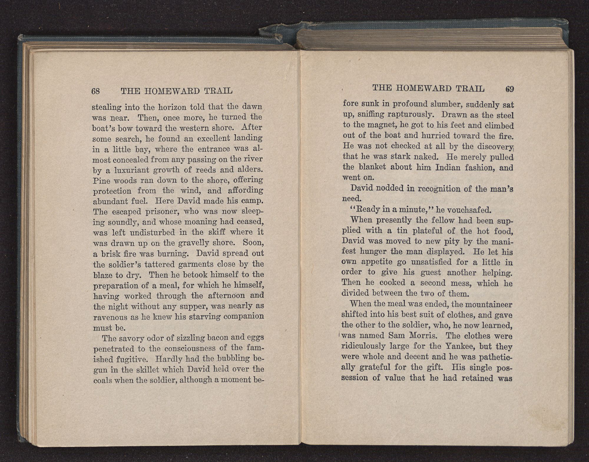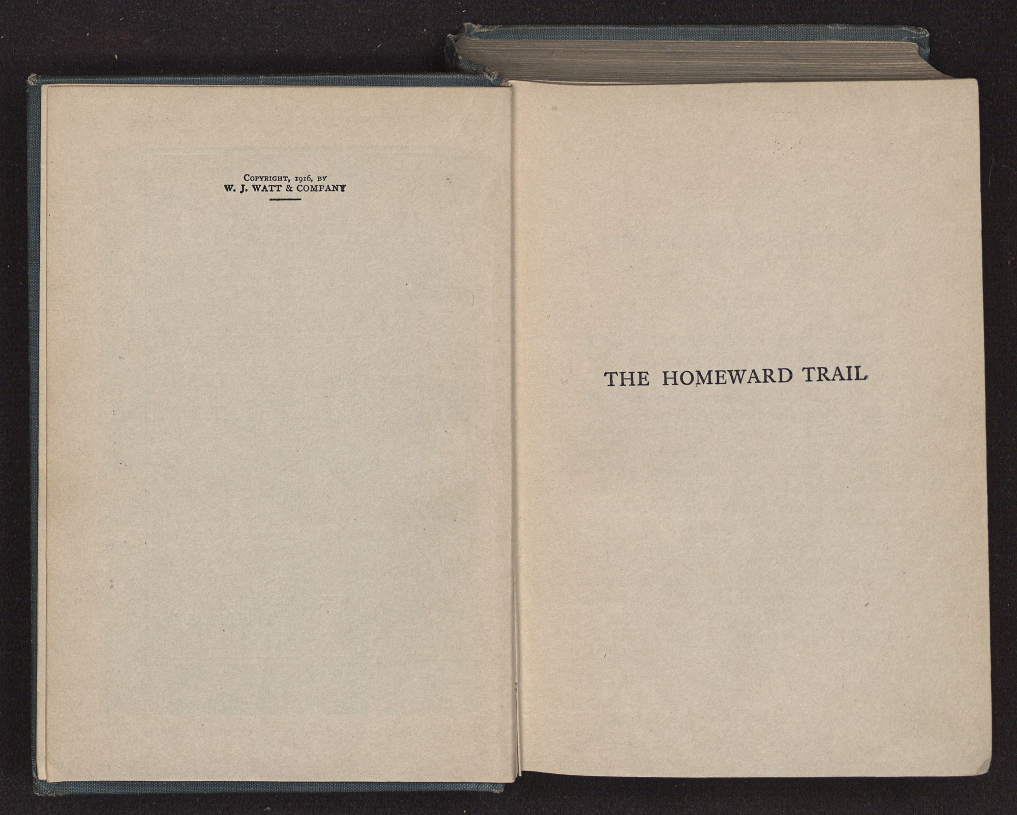 The homeward trail / by Waldron Baily; illustrations by George W. Gage. New York : W.J. Watt & Co., [c1916] [6], 314 p., [3] leaves of plates ; 20 cm.