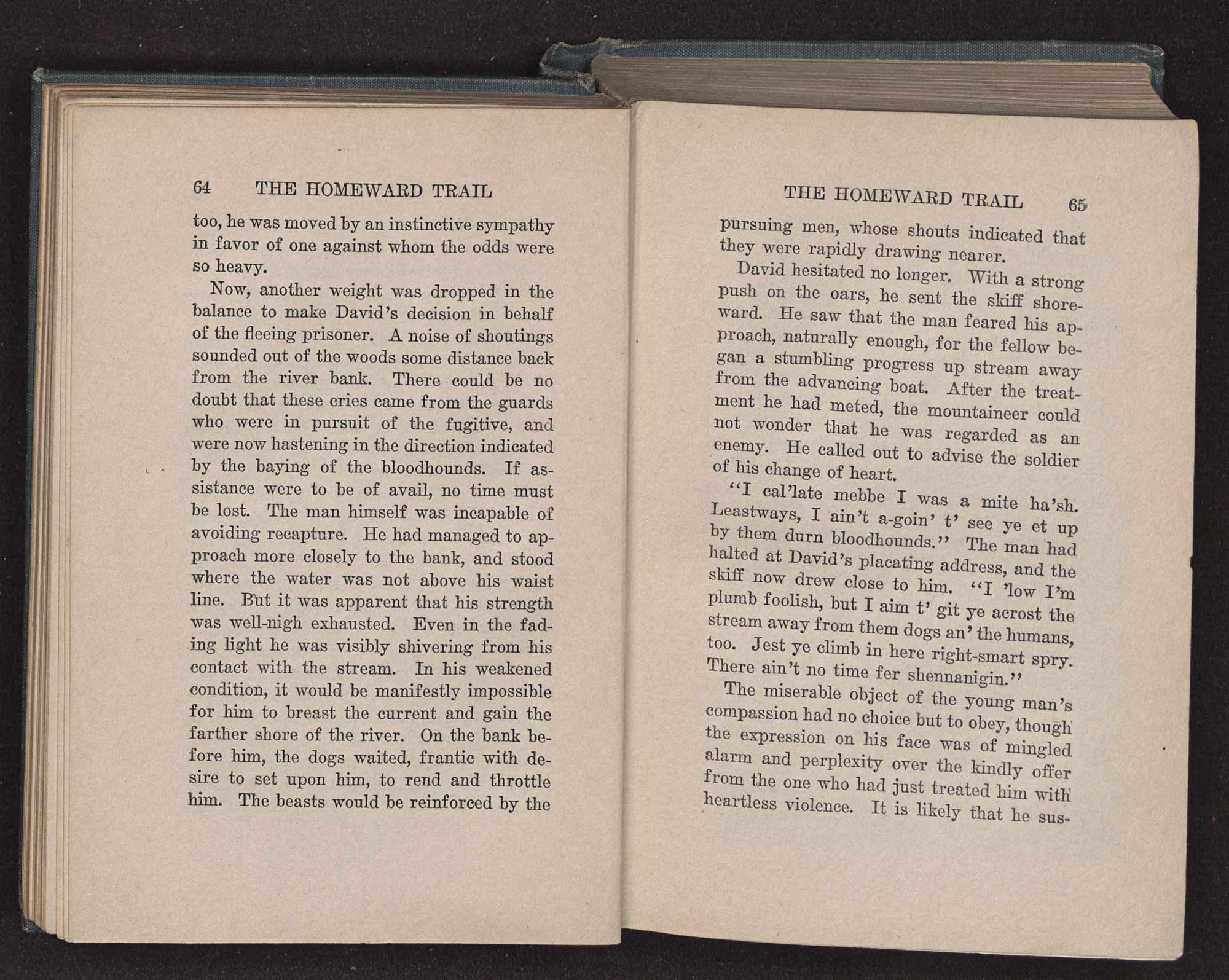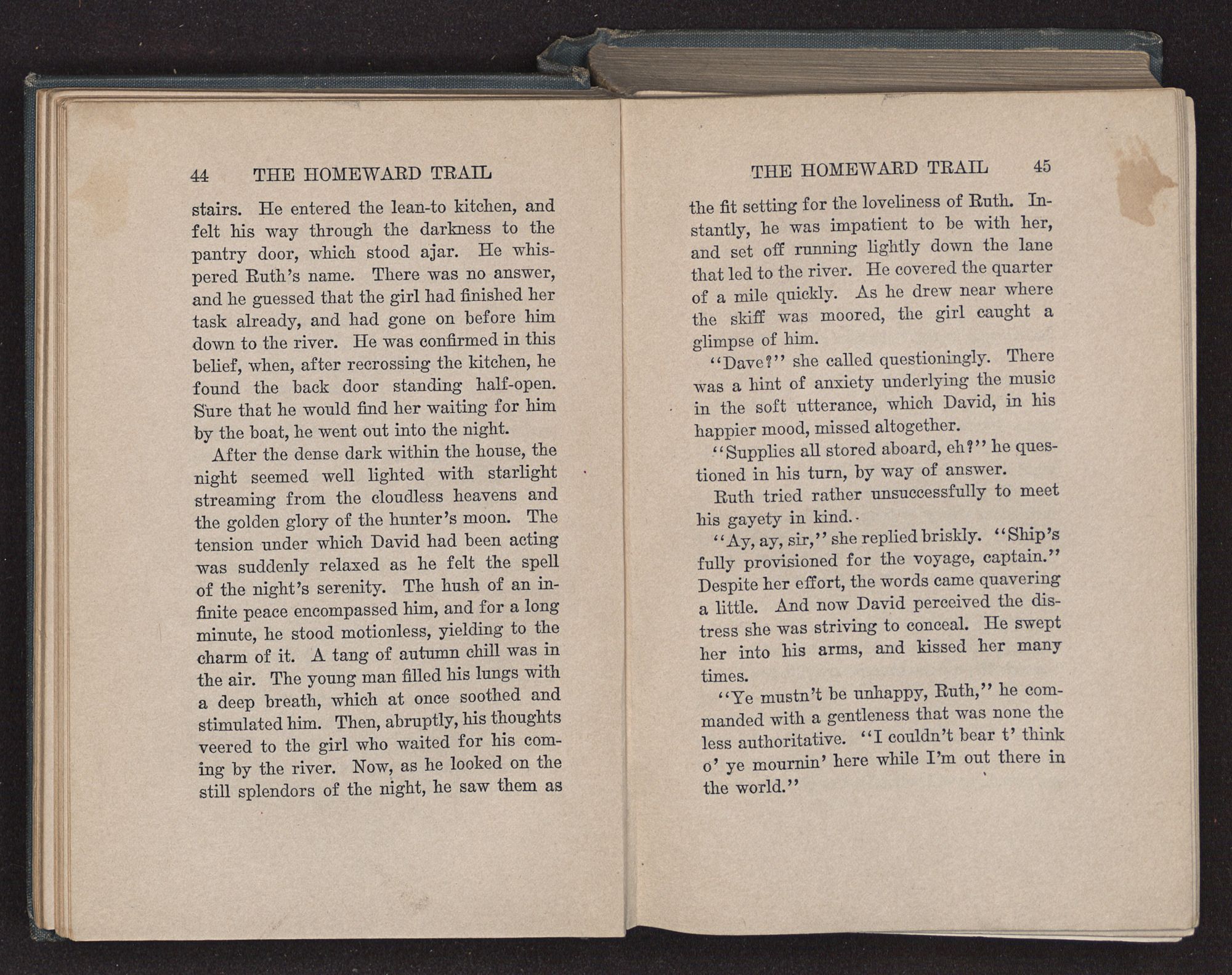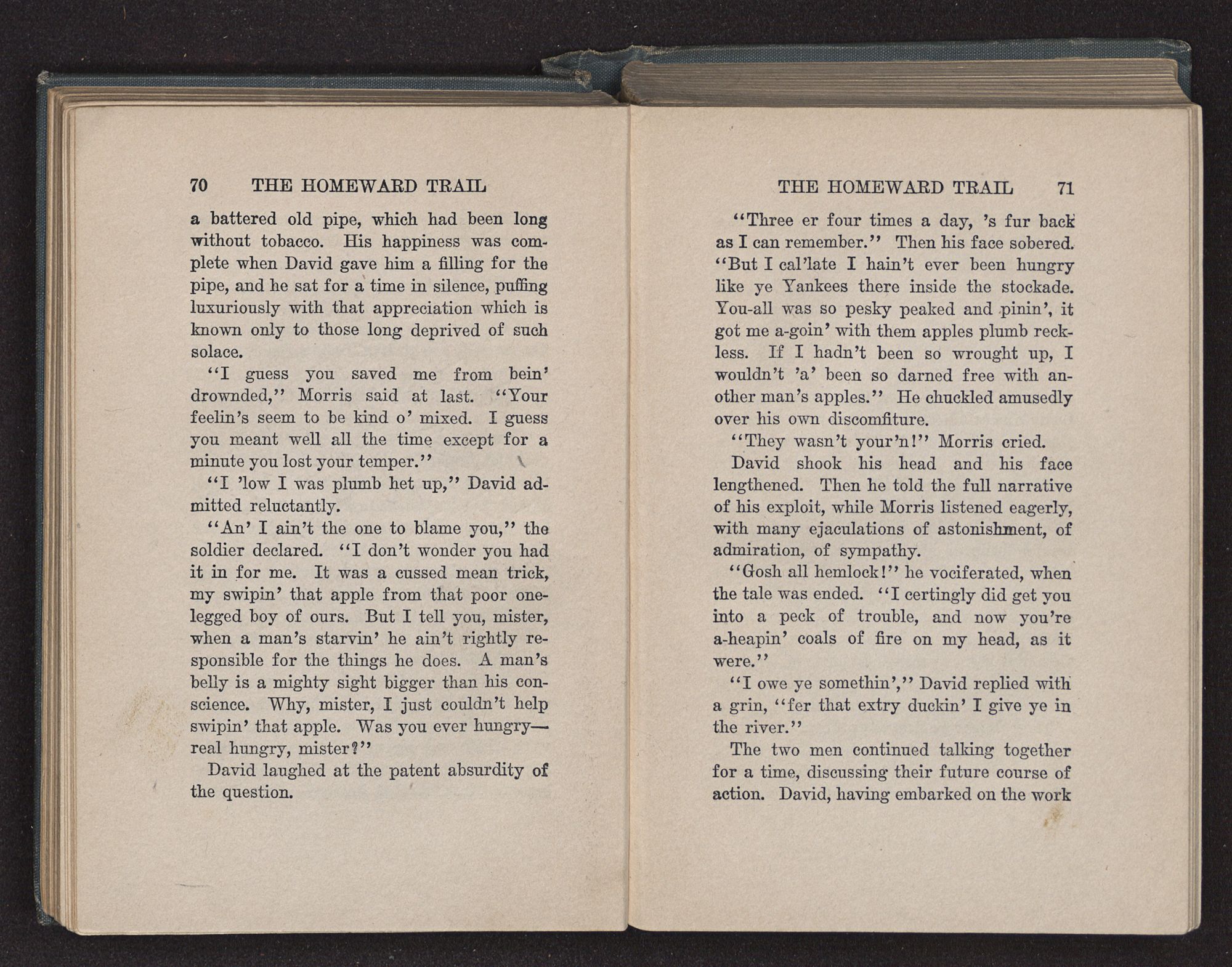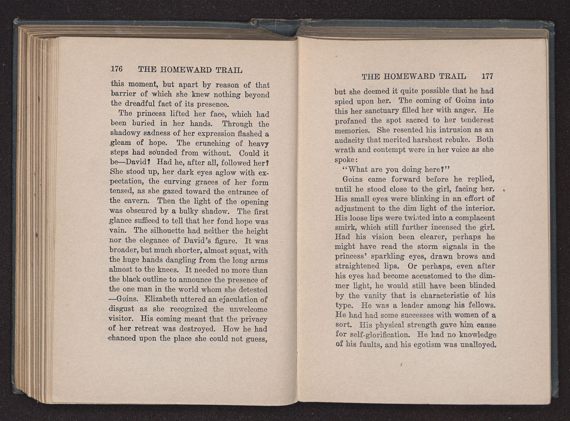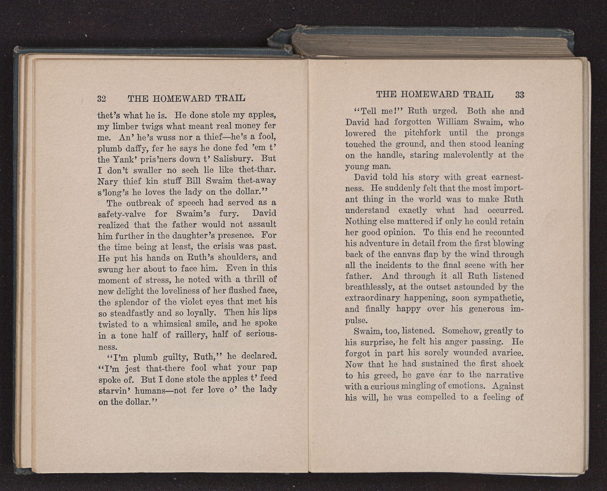 The homeward trail / by Waldron Baily; illustrations by George W. Gage. New York : W.J. Watt & Co., [c1916] [6], 314 p., [3] leaves of plates ; 20 cm.
