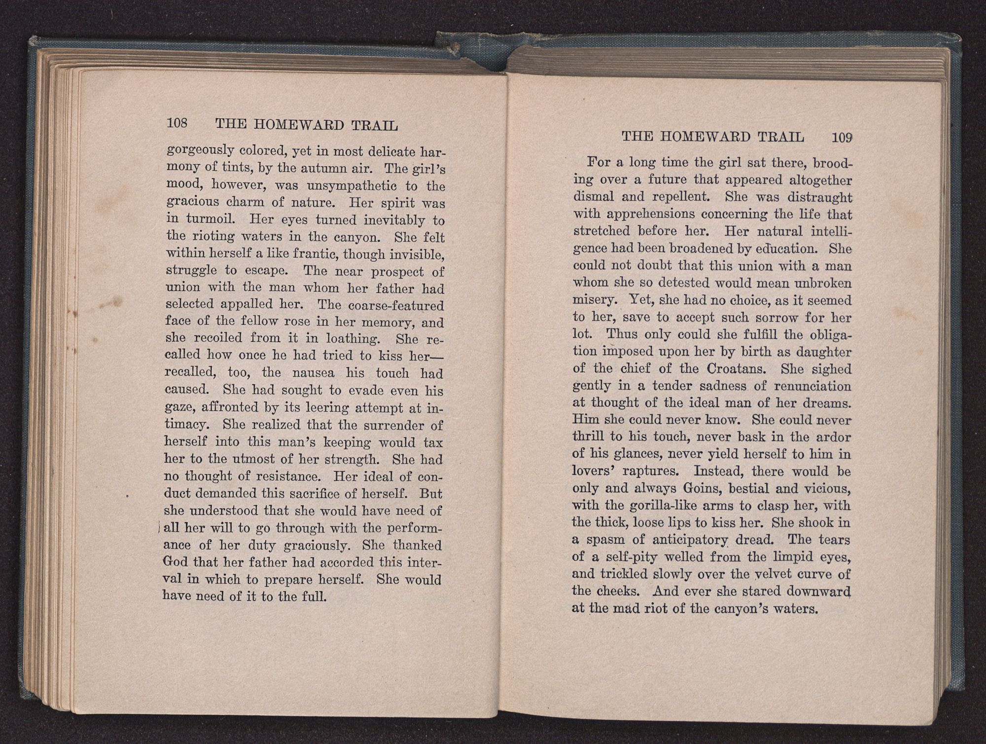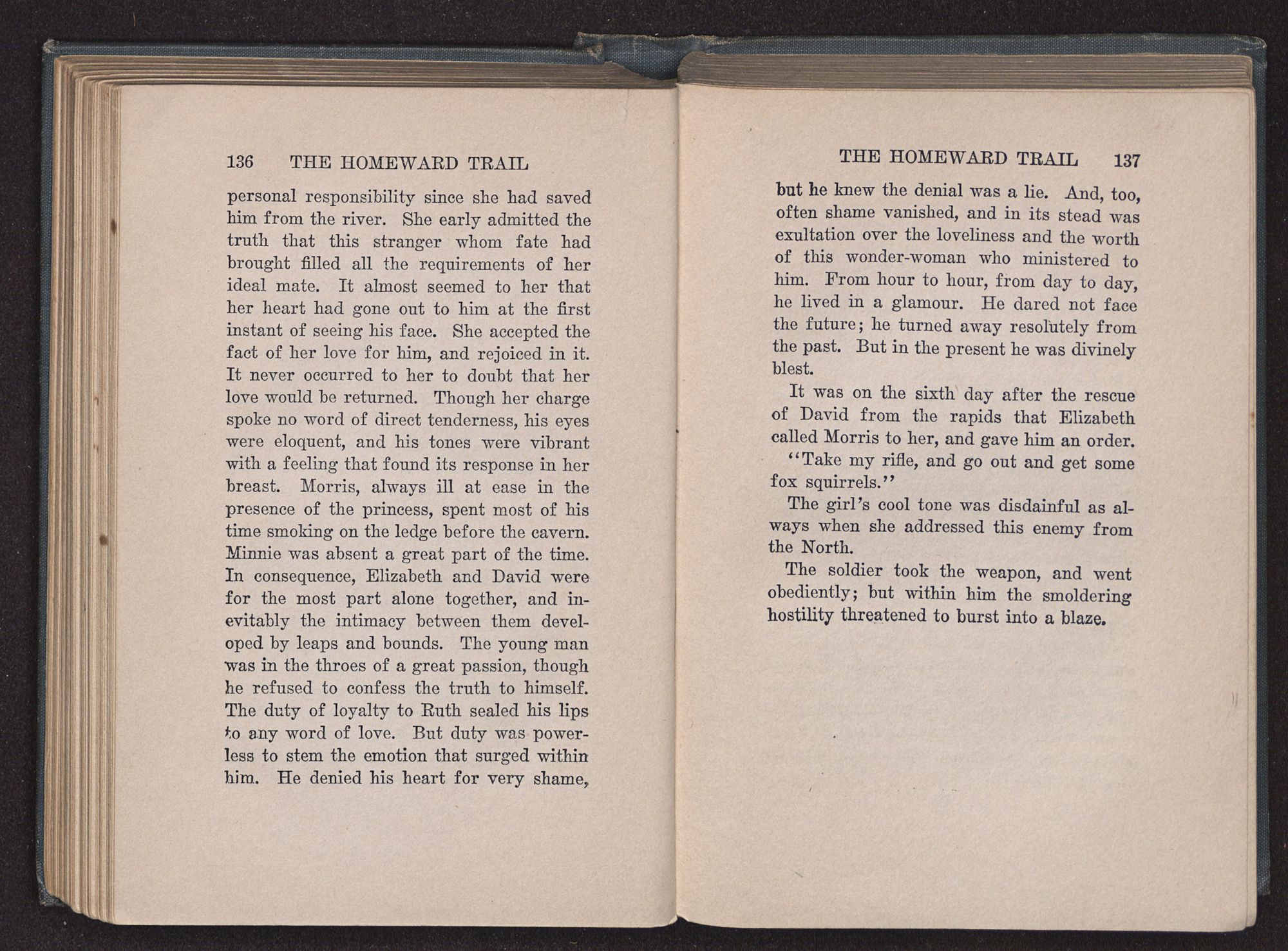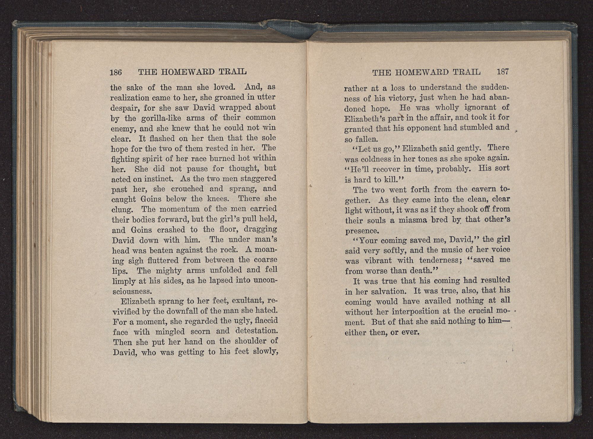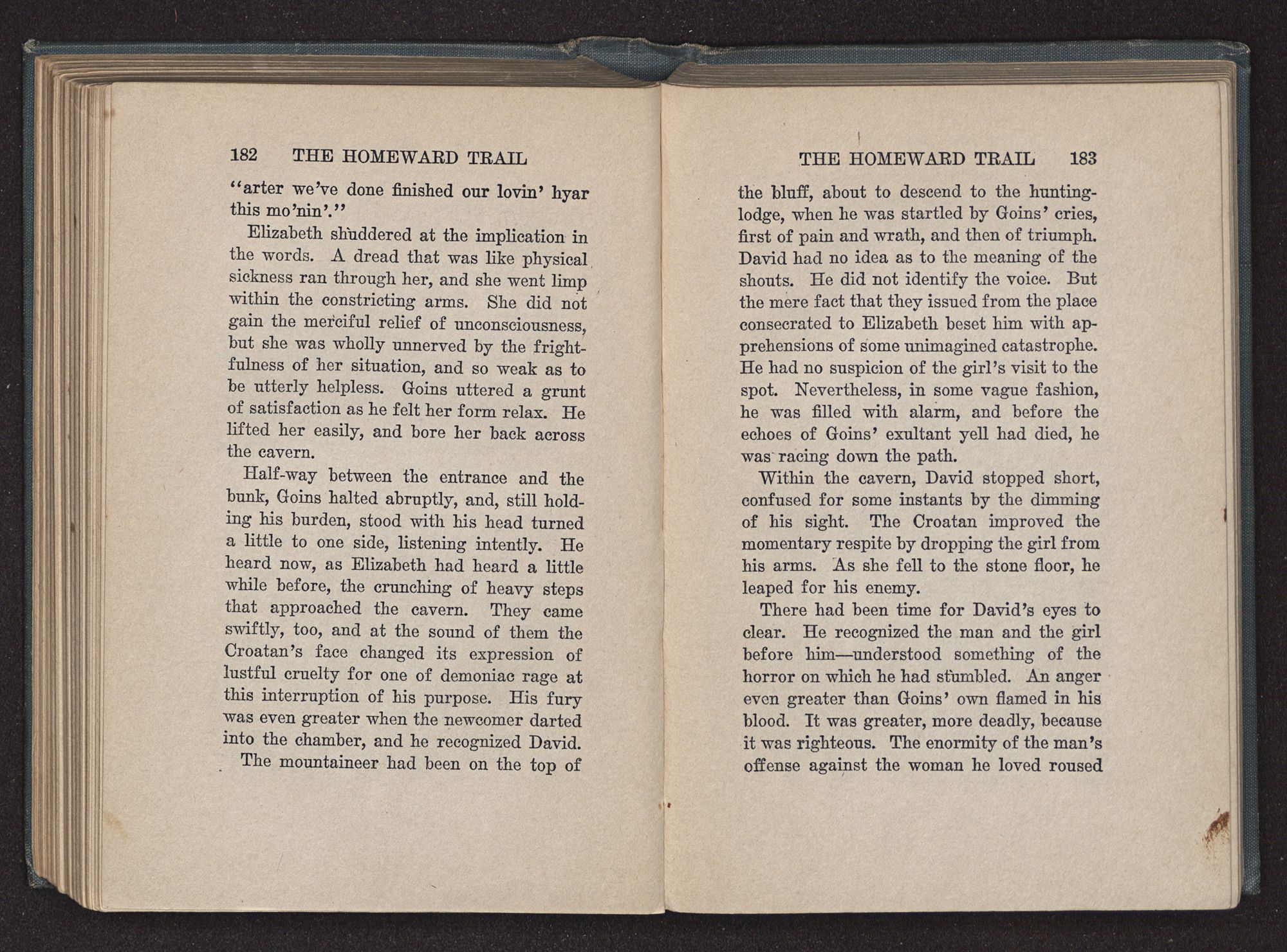 The homeward trail / by Waldron Baily; illustrations by George W. Gage. New York : W.J. Watt & Co., [c1916] [6], 314 p., [3] leaves of plates ; 20 cm.