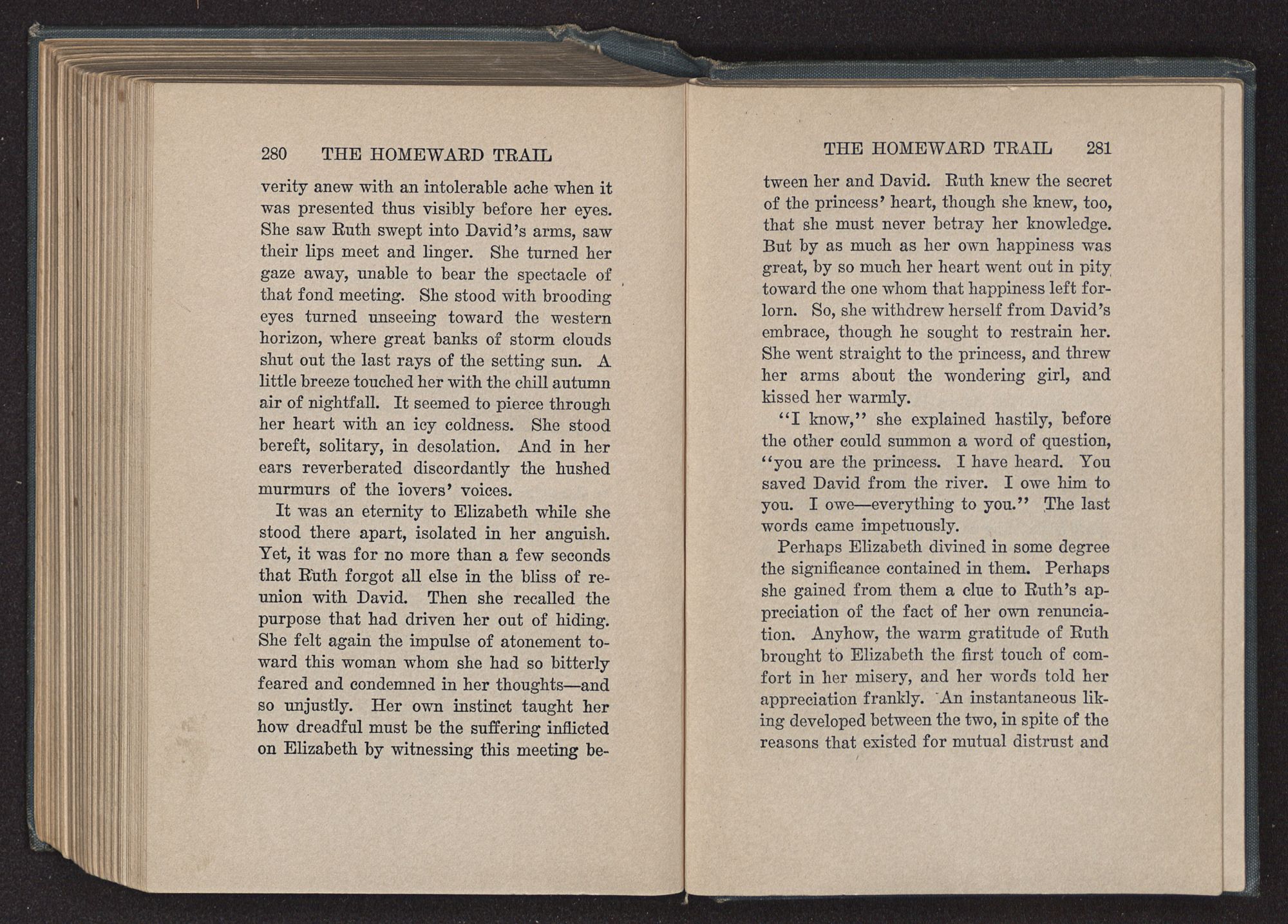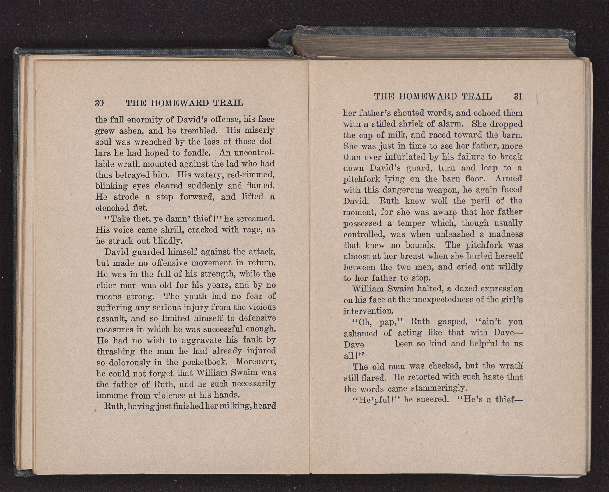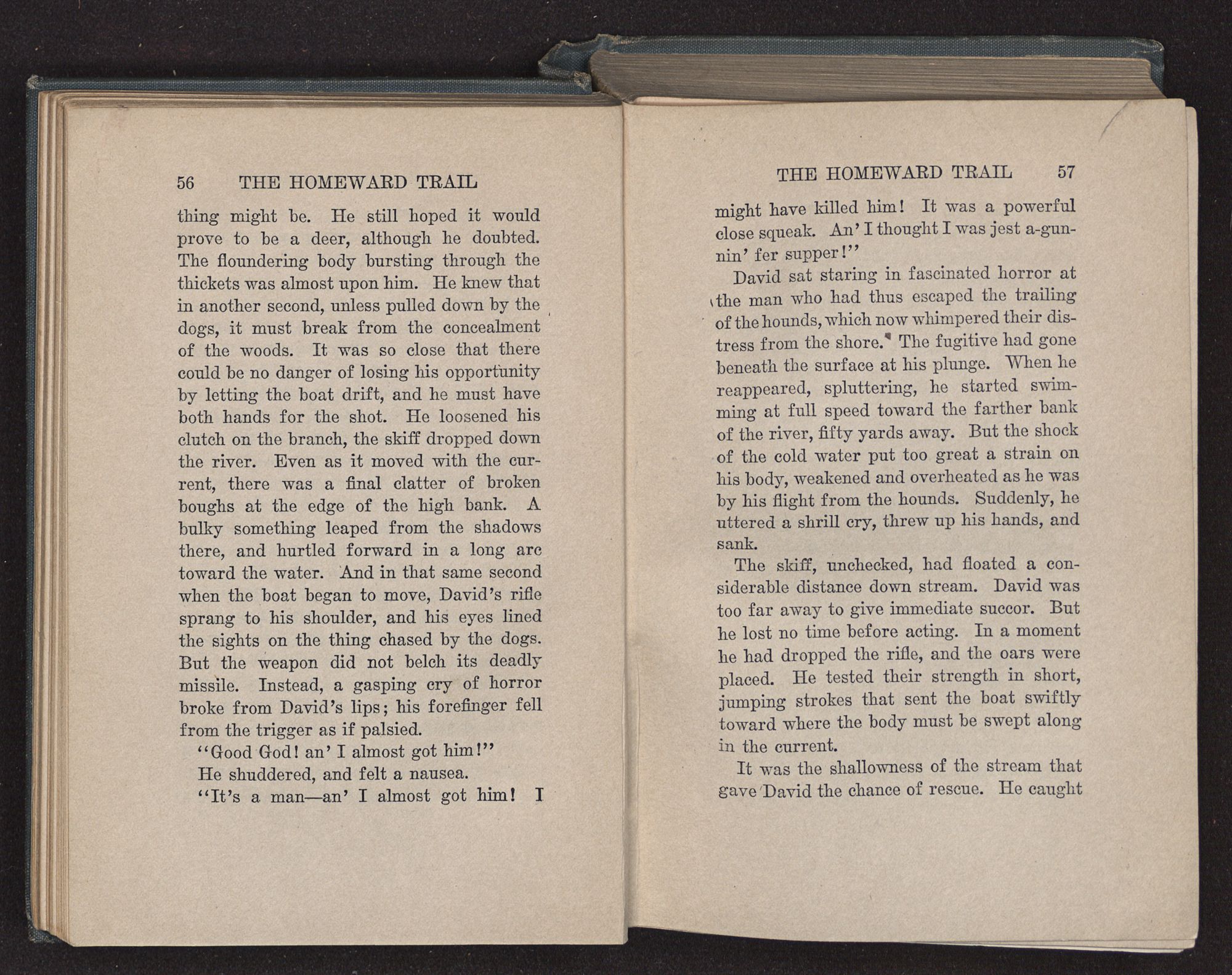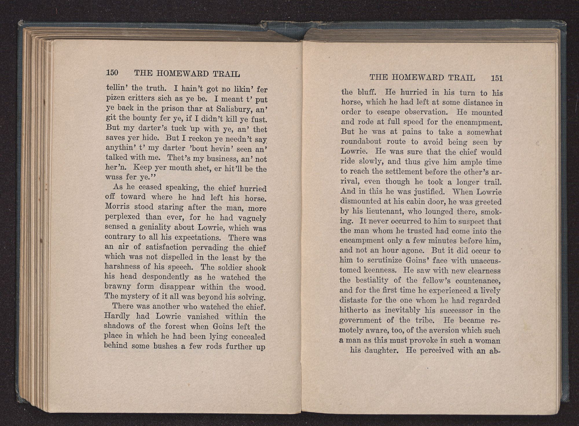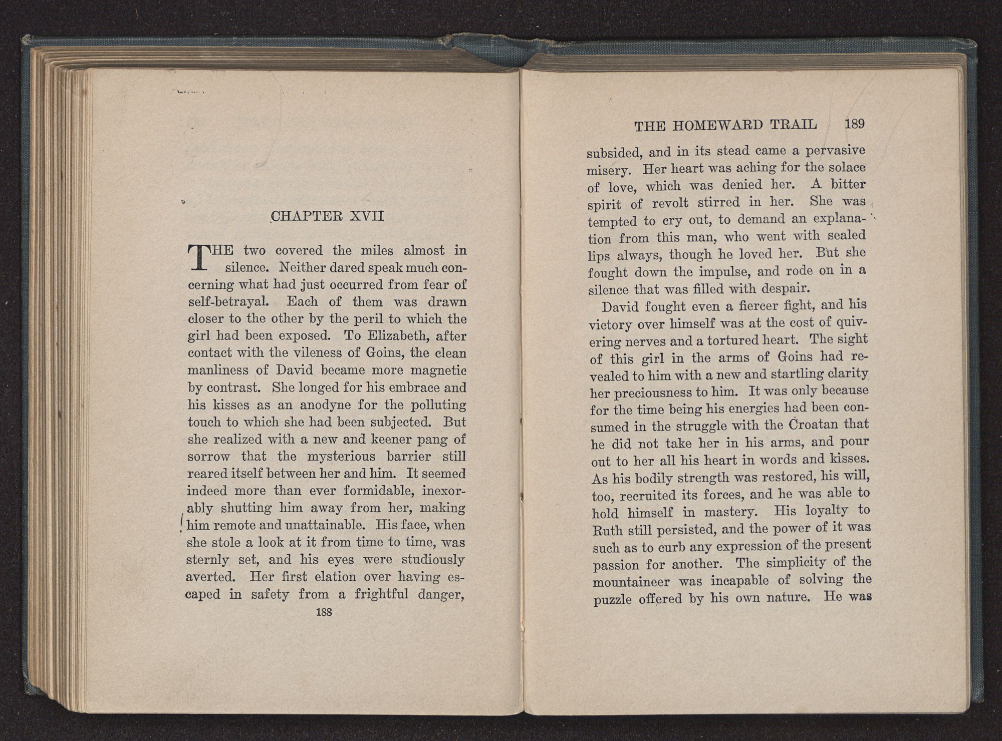 The homeward trail / by Waldron Baily; illustrations by George W. Gage. New York : W.J. Watt & Co., [c1916] [6], 314 p., [3] leaves of plates ; 20 cm.