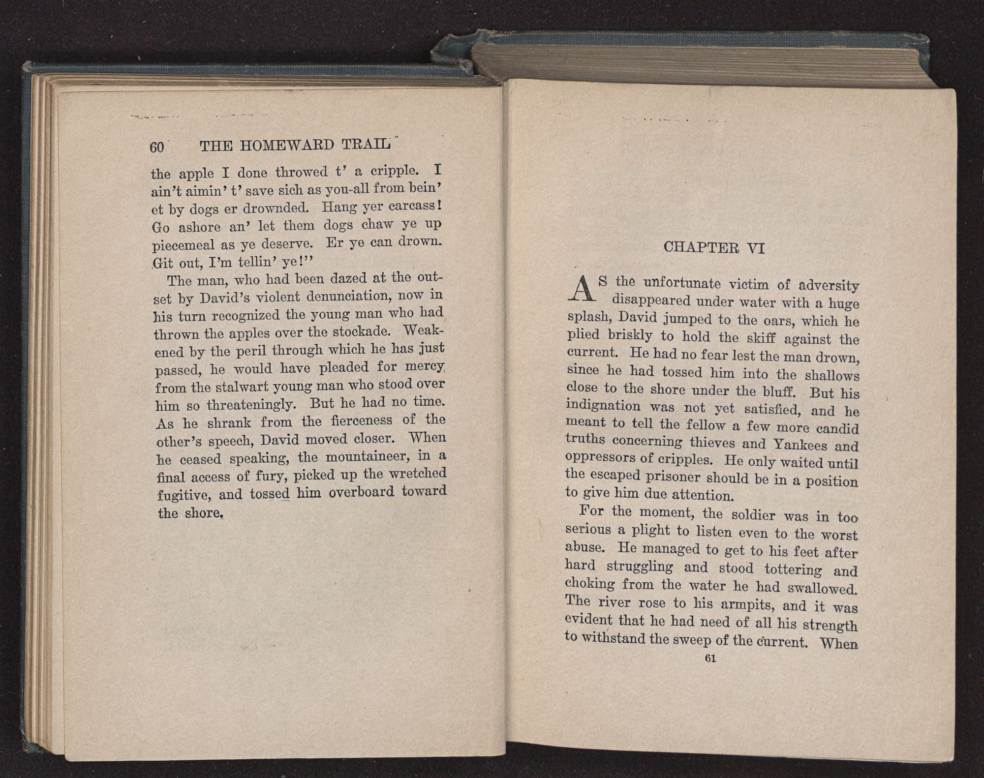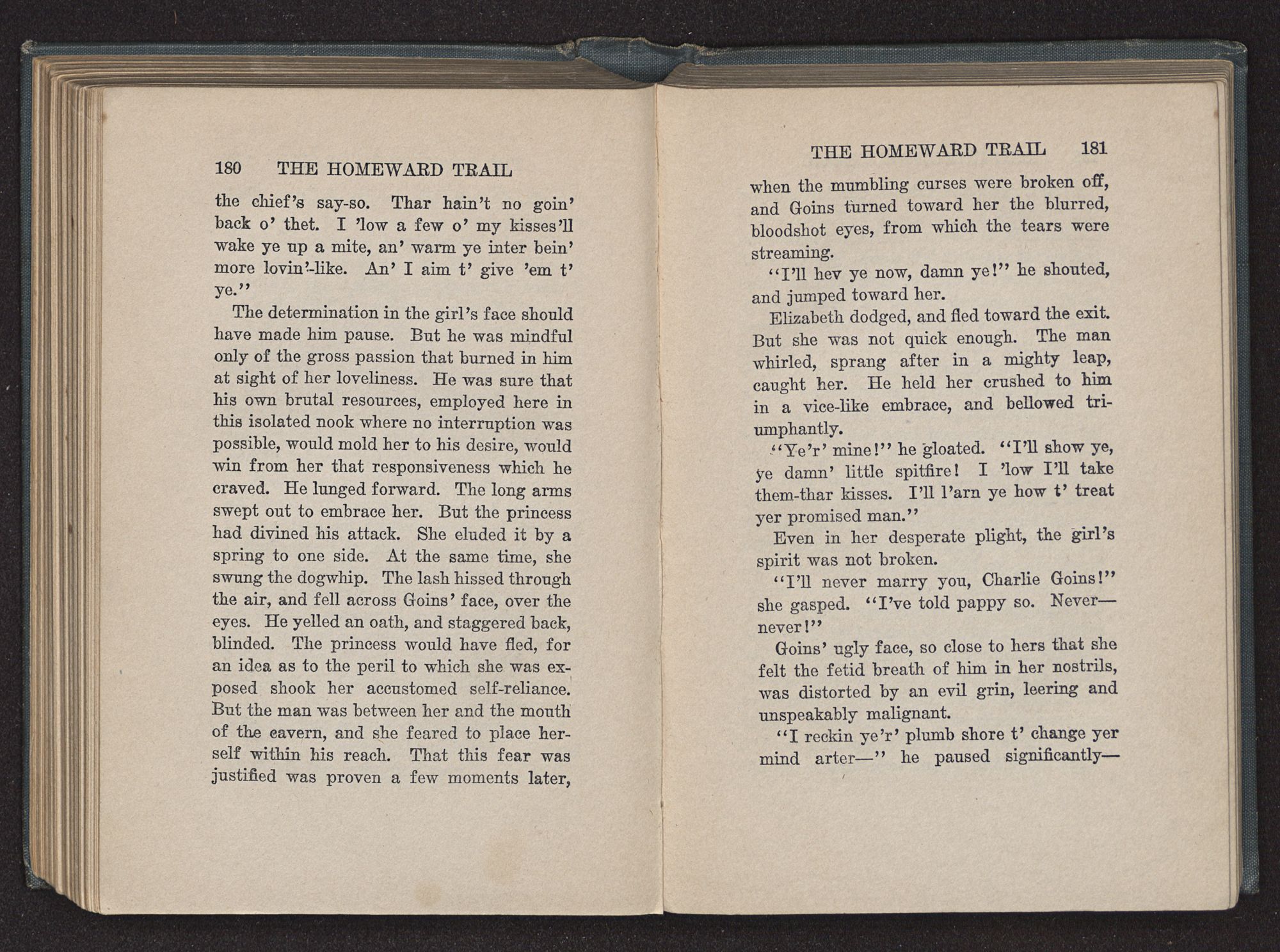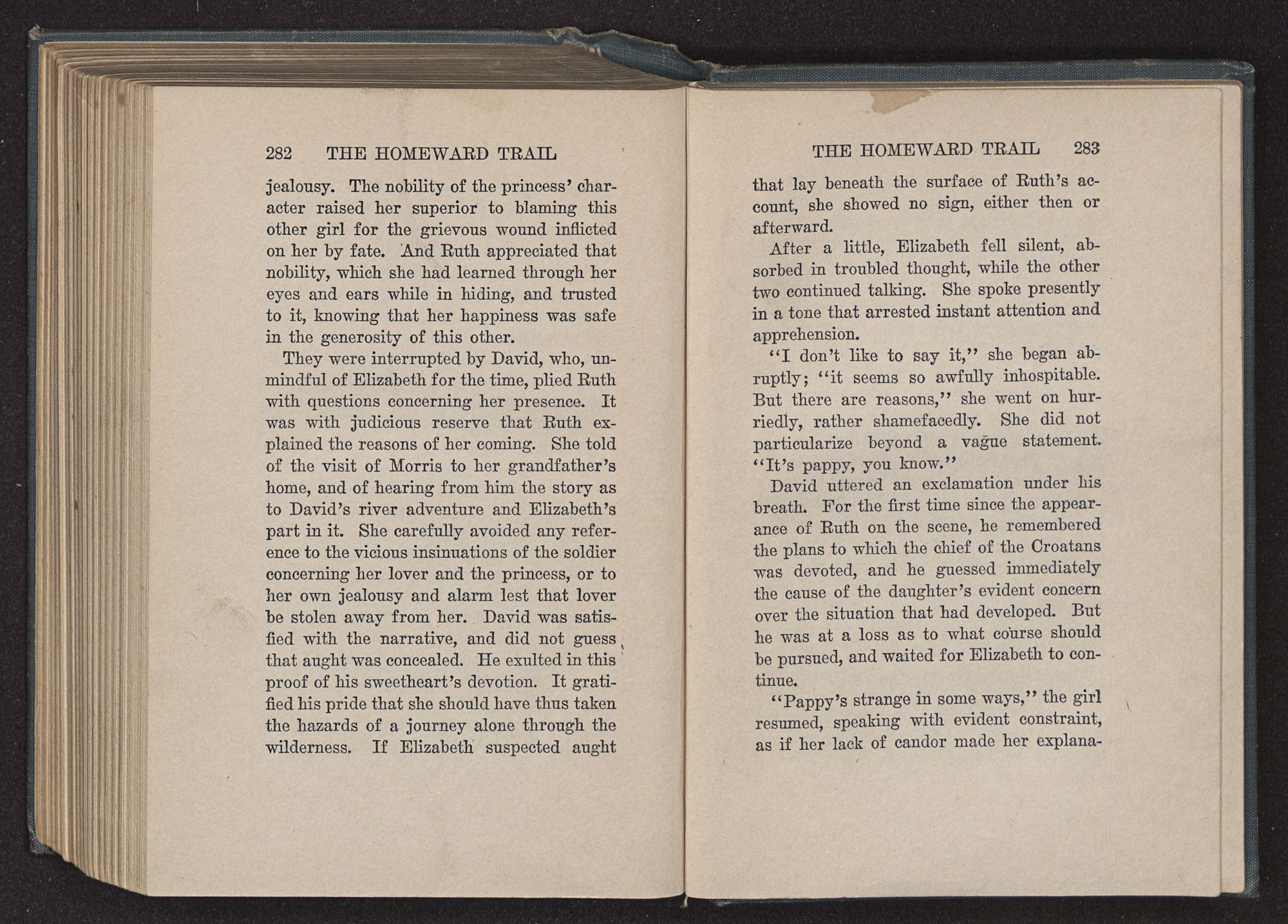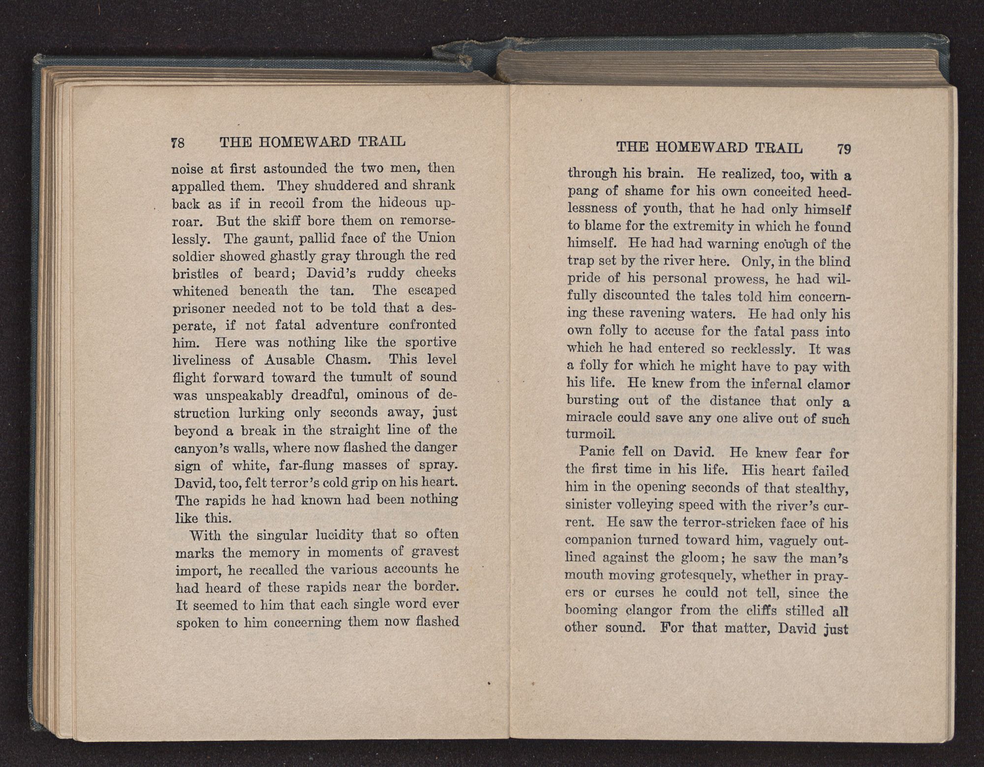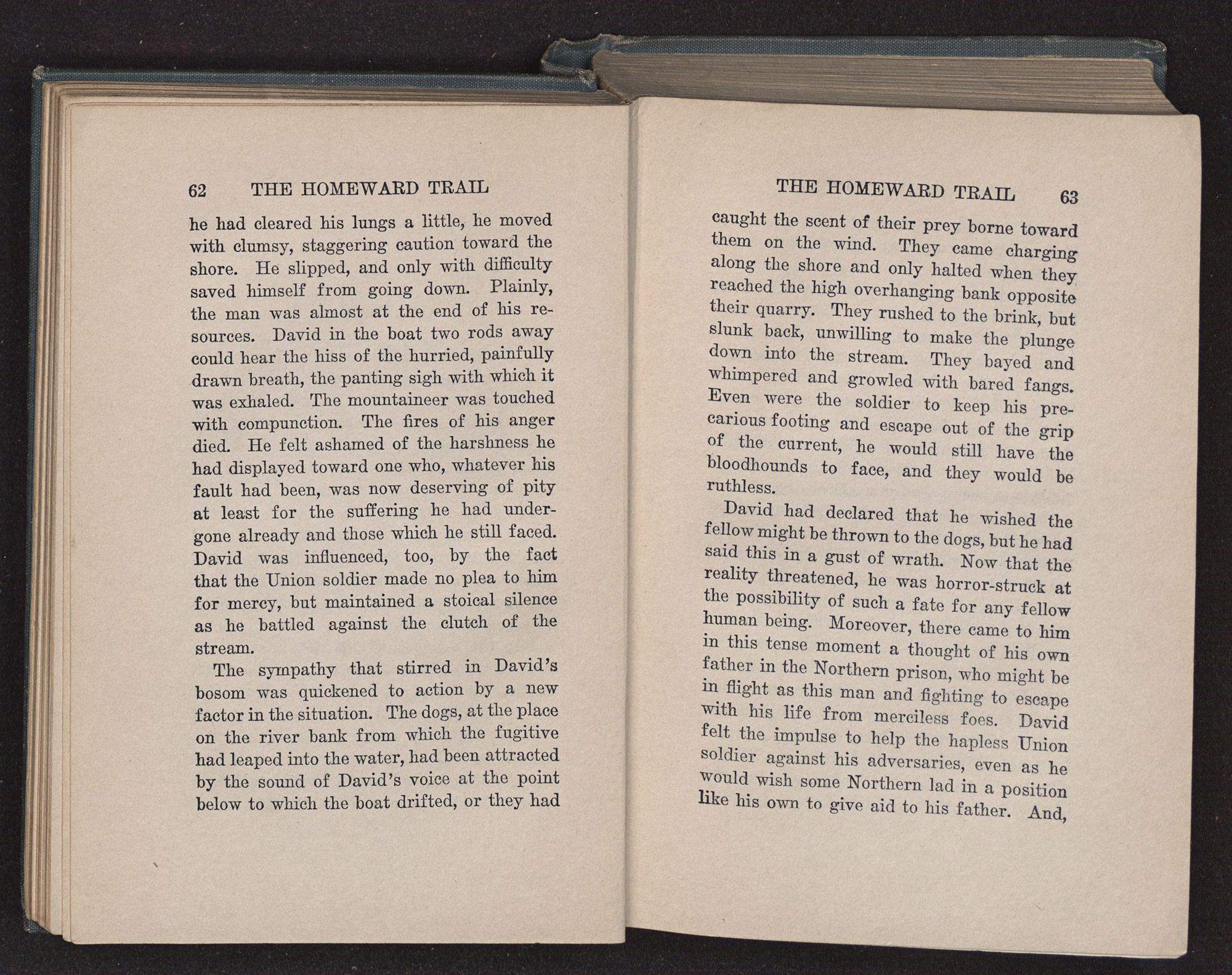 The homeward trail / by Waldron Baily; illustrations by George W. Gage. New York : W.J. Watt & Co., [c1916] [6], 314 p., [3] leaves of plates ; 20 cm.