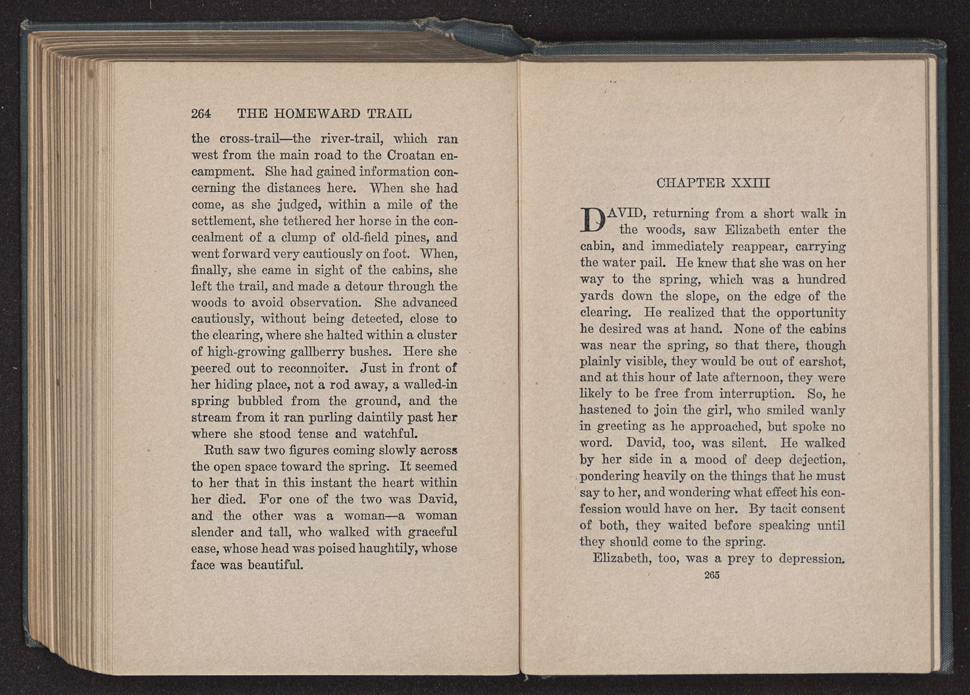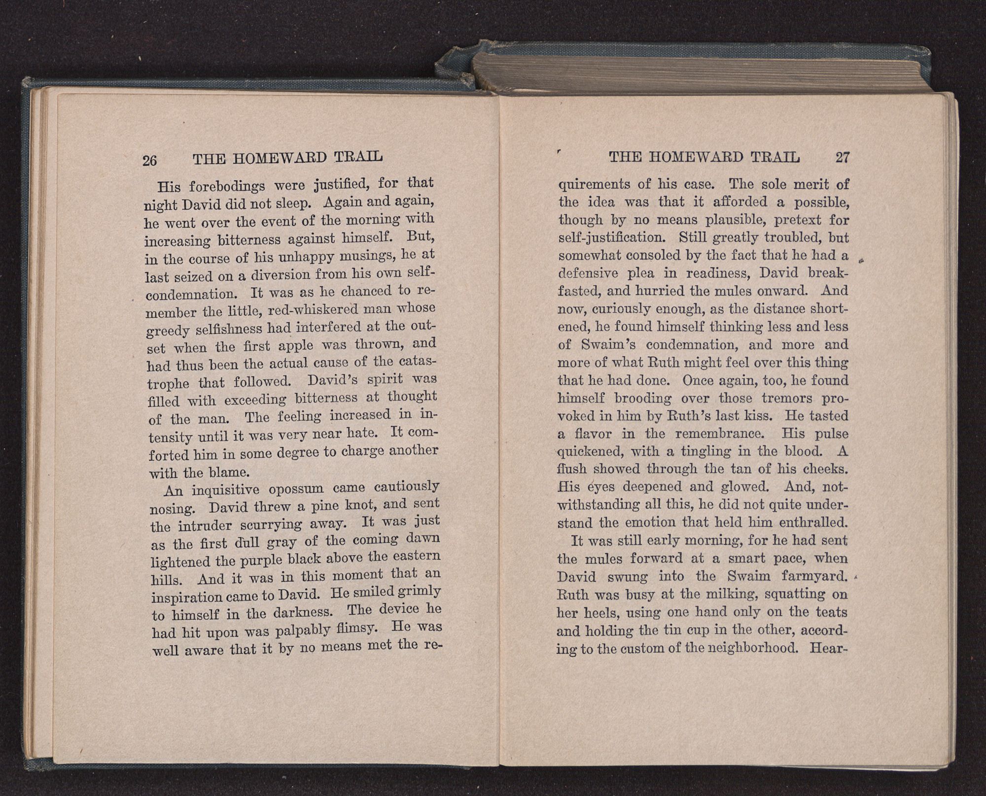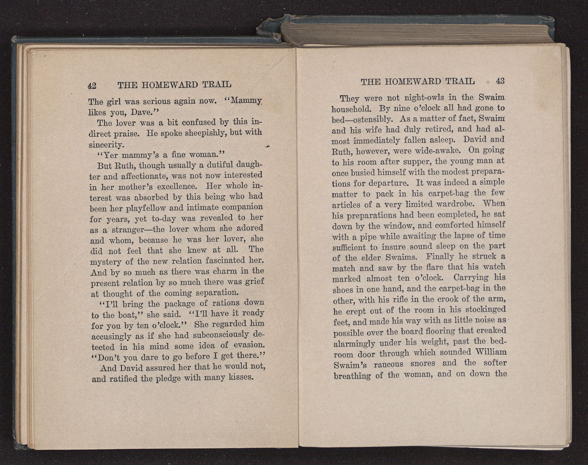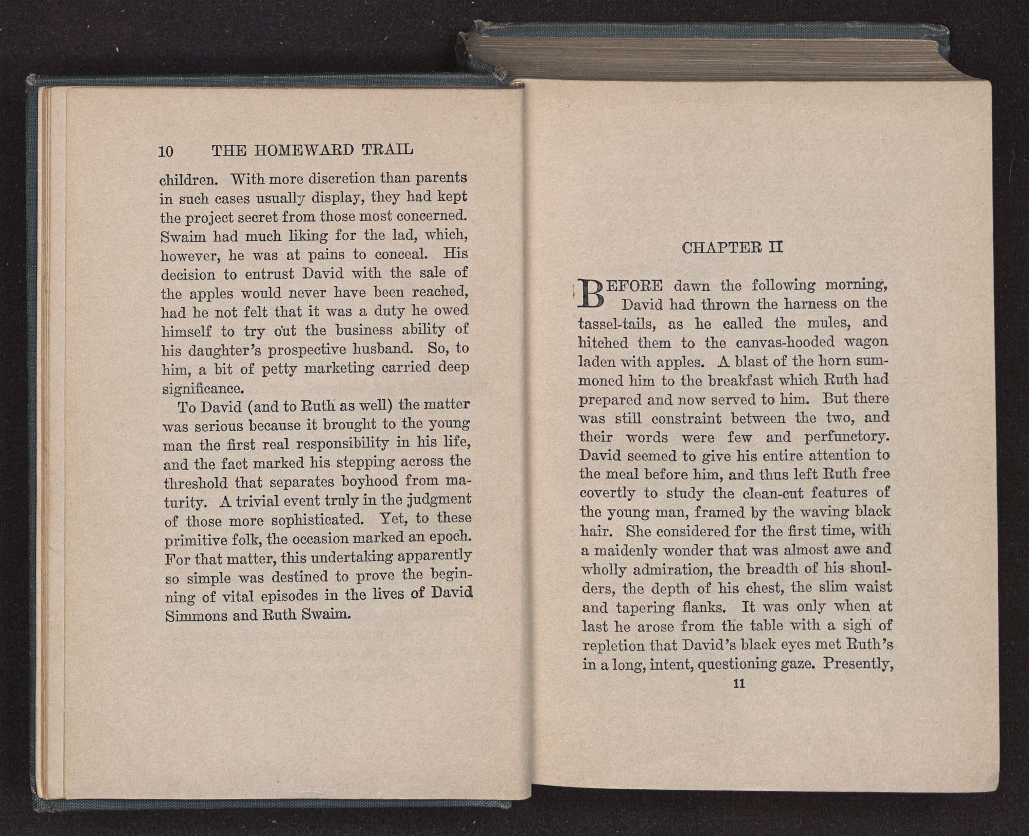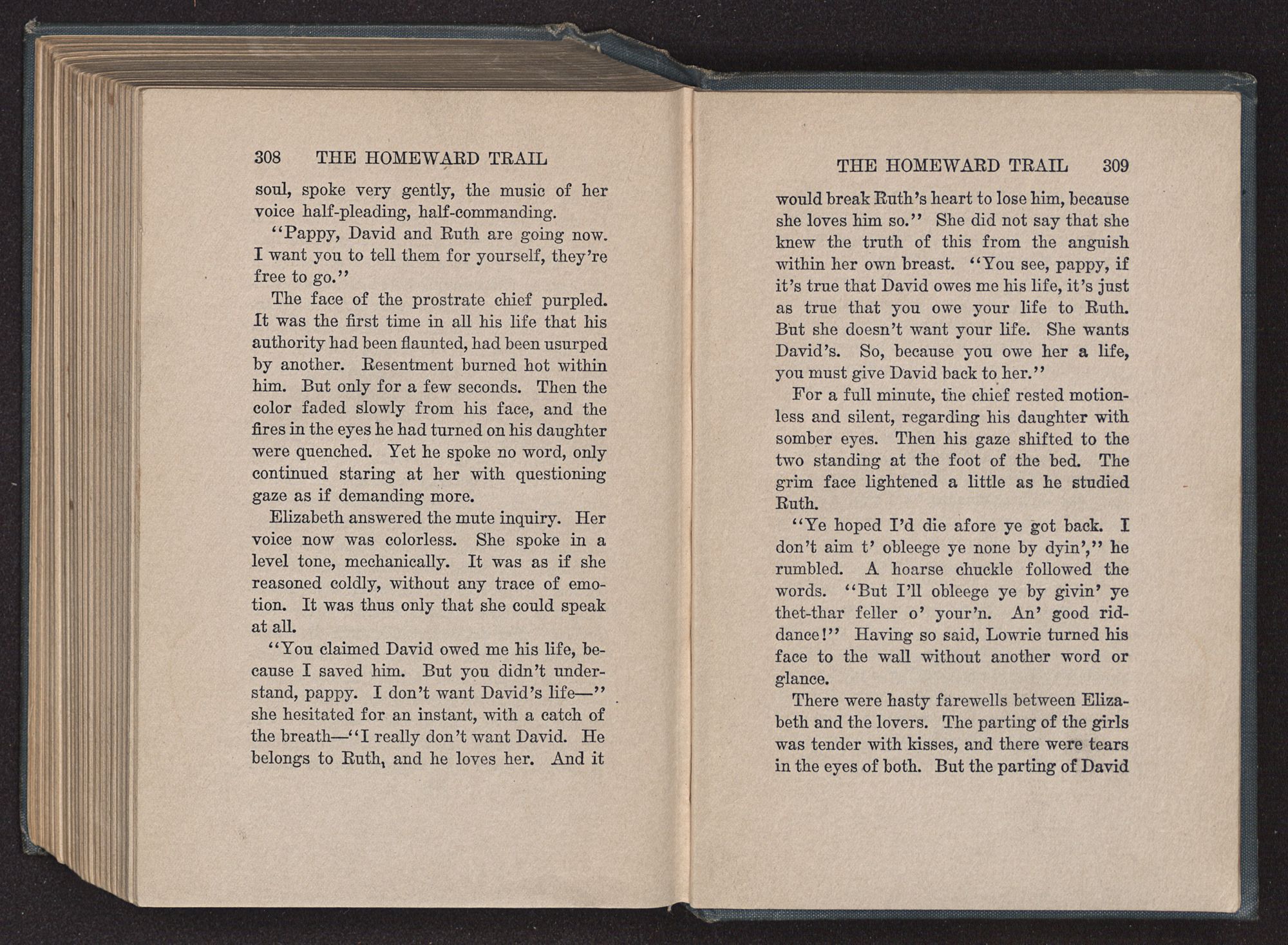 To David (and to Ruth as well) the matter was serious because it brought to the young man the first real responsibility in his life, and the fact marked his stepping across the threshold that separates boyhood from maturity. A trivial event truly in the judgment of those more sophisticated. Yet, to these primitive folk, the occasion marked an epoch. For that matter, this undertaking apparently so simple was destined to prove the beginning of vital episodes in the lives of David Simmons and Ruth Swaim.