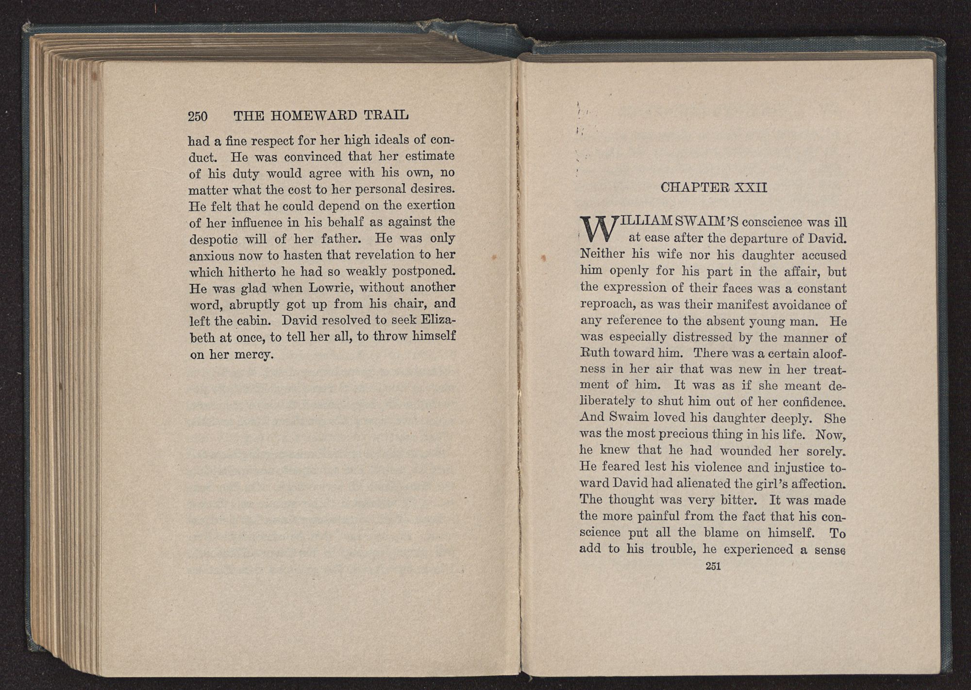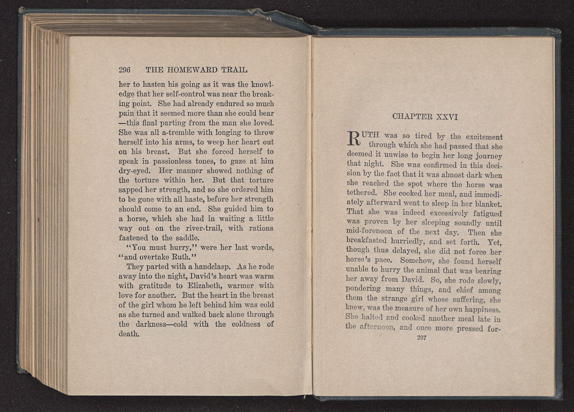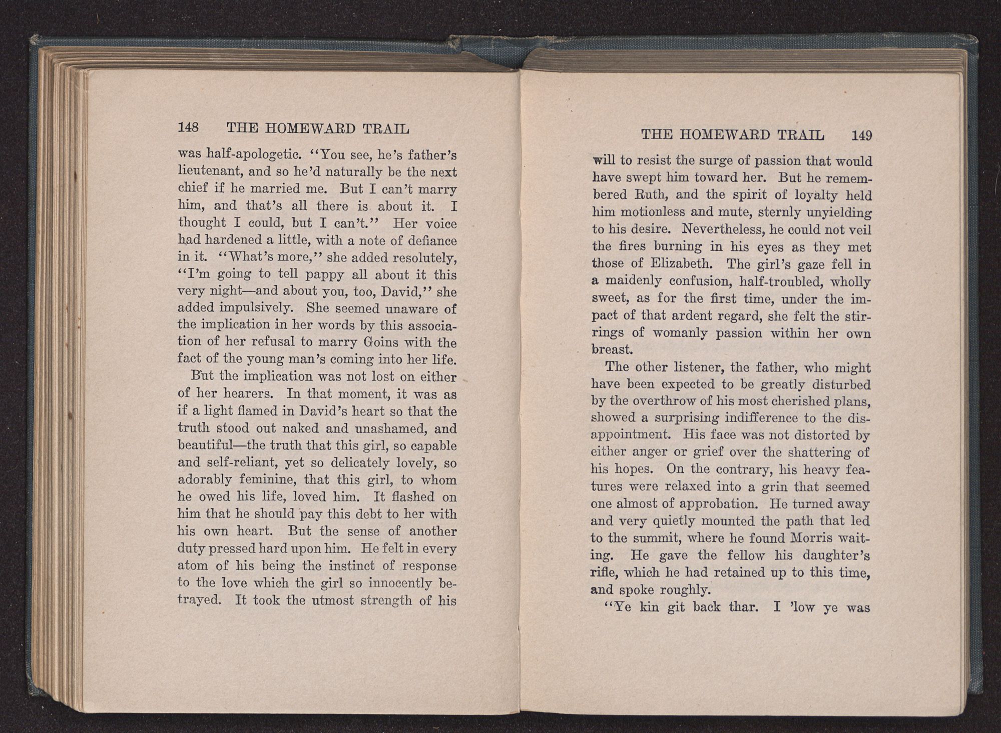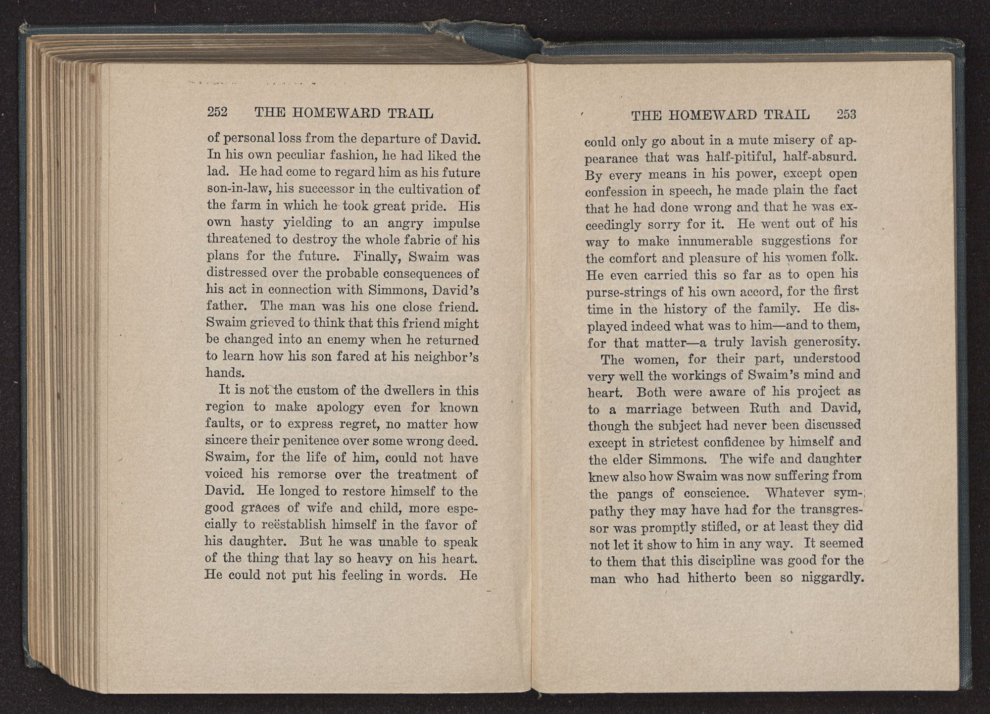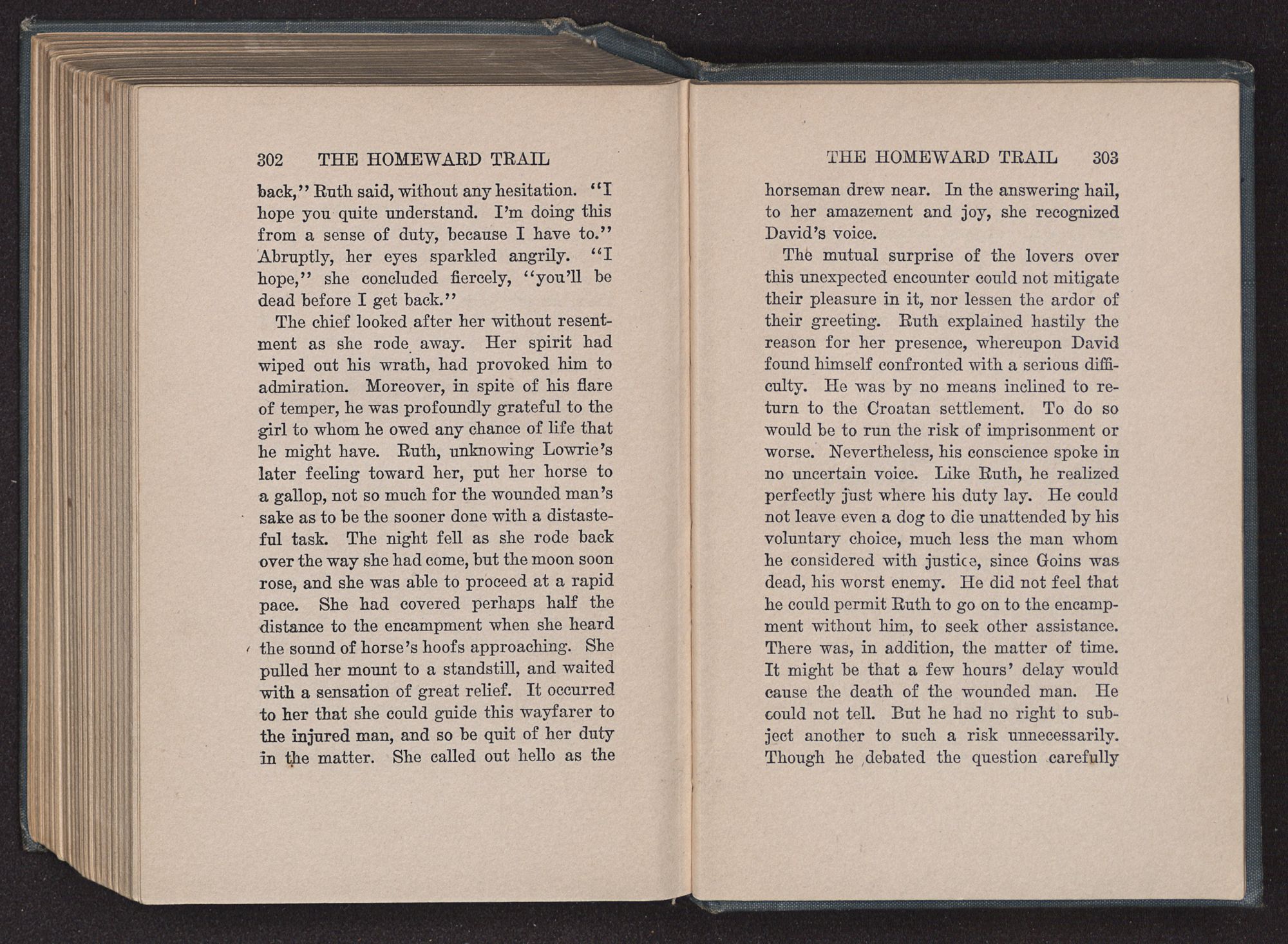 To David (and to Ruth as well) the matter was serious because it brought to the young man the first real responsibility in his life, and the fact marked his stepping across the threshold that separates boyhood from maturity. A trivial event truly in the judgment of those more sophisticated. Yet, to these primitive folk, the occasion marked an epoch. For that matter, this undertaking apparently so simple was destined to prove the beginning of vital episodes in the lives of David Simmons and Ruth Swaim.