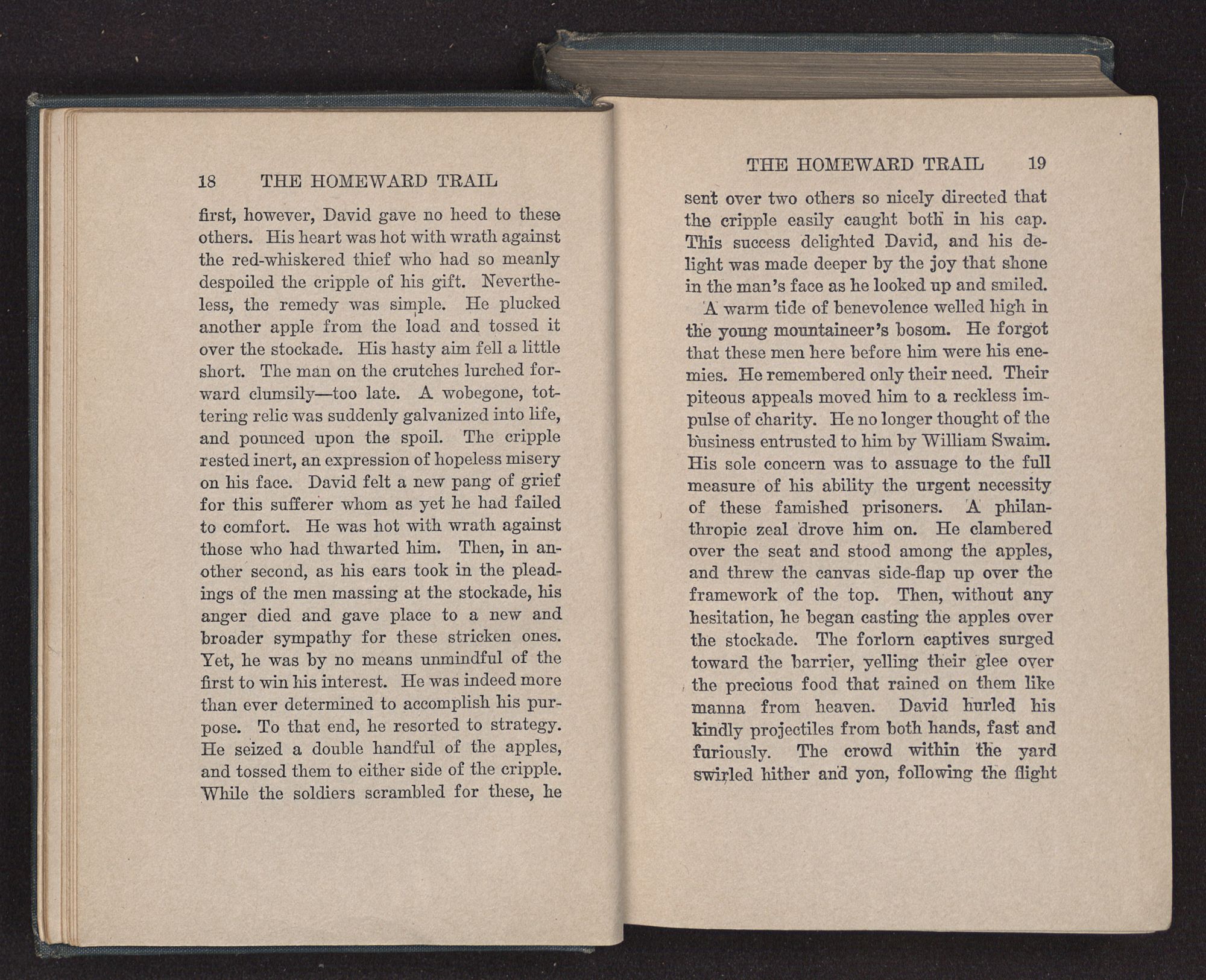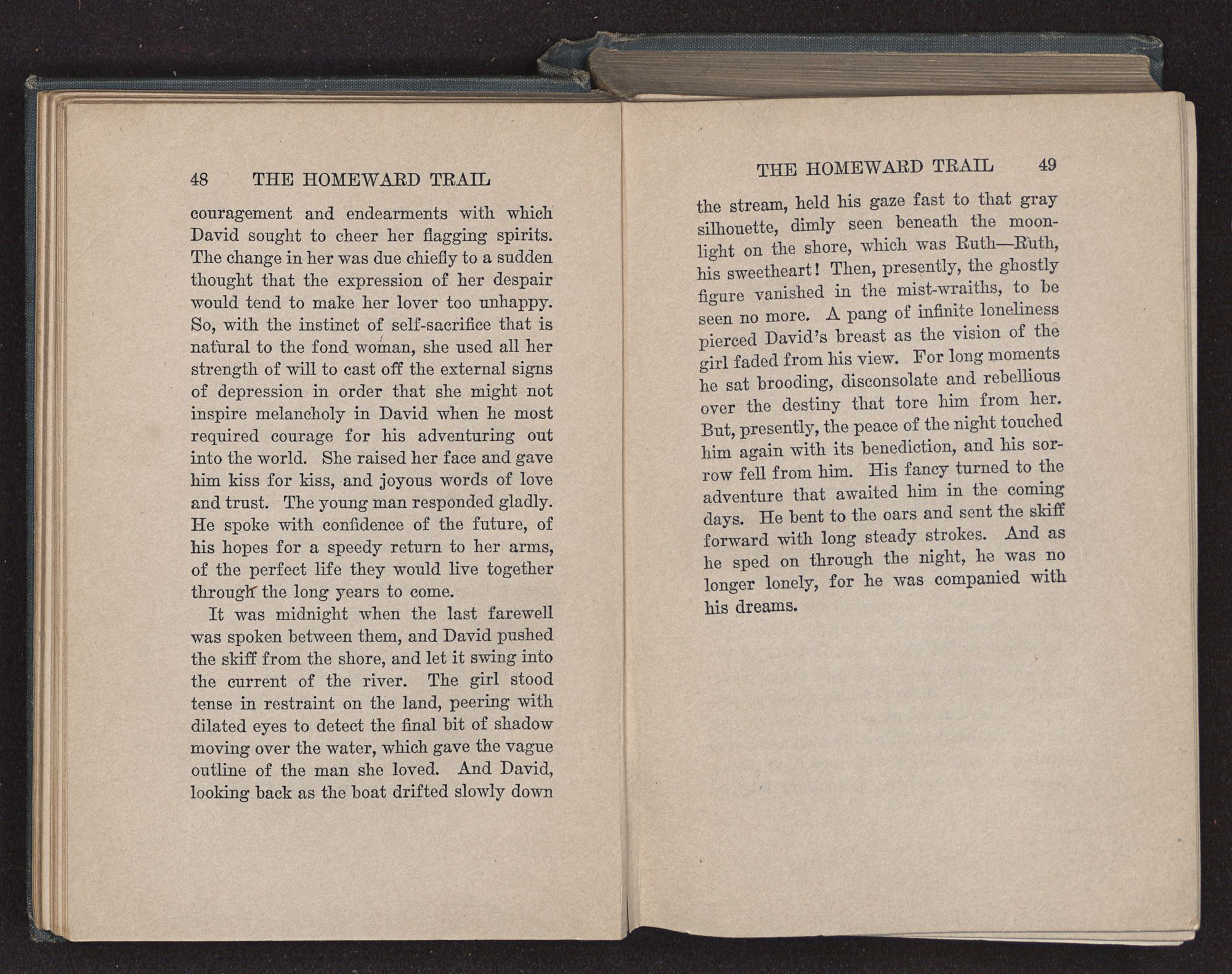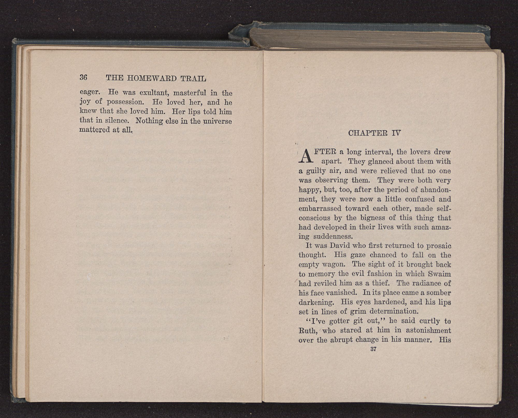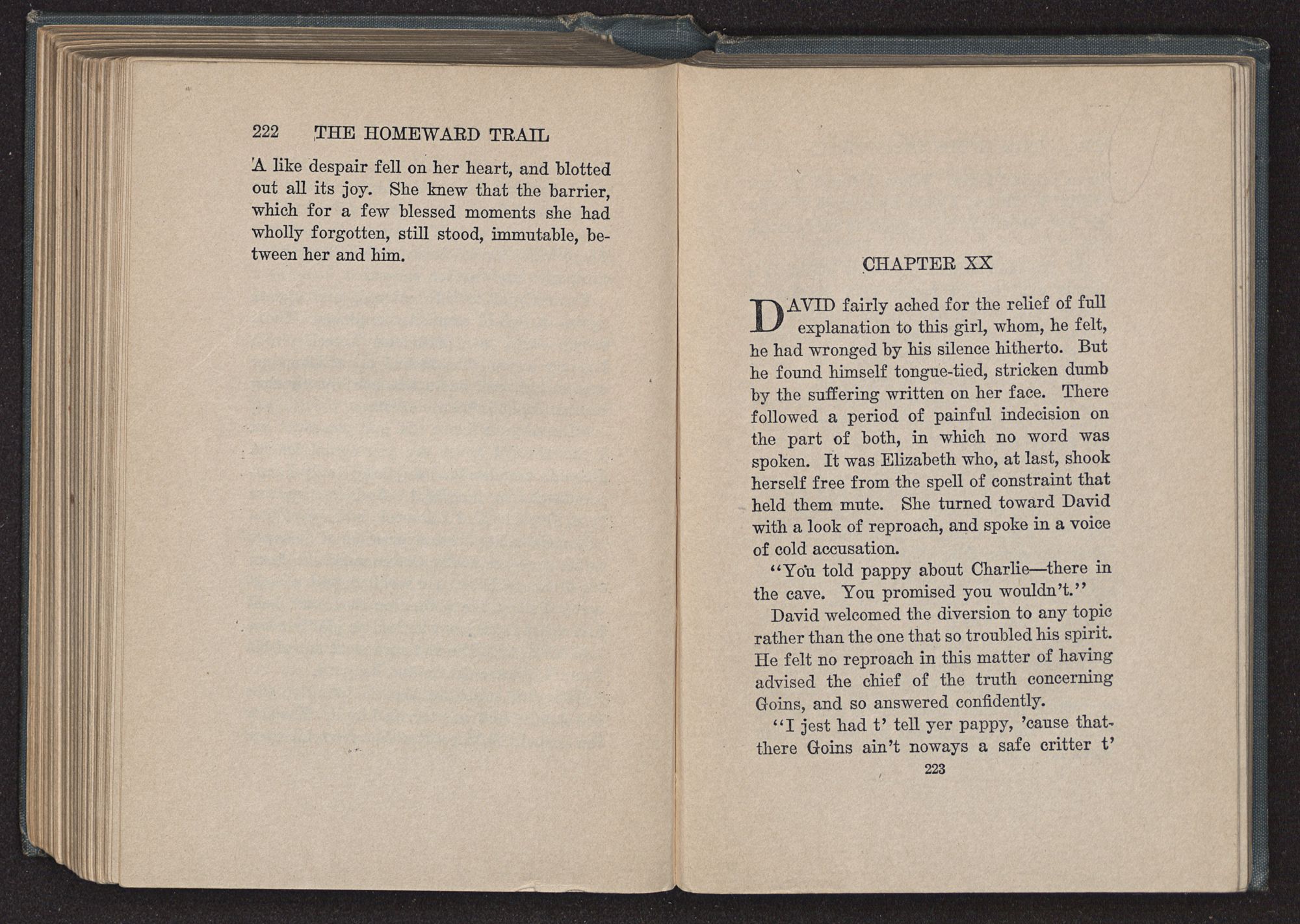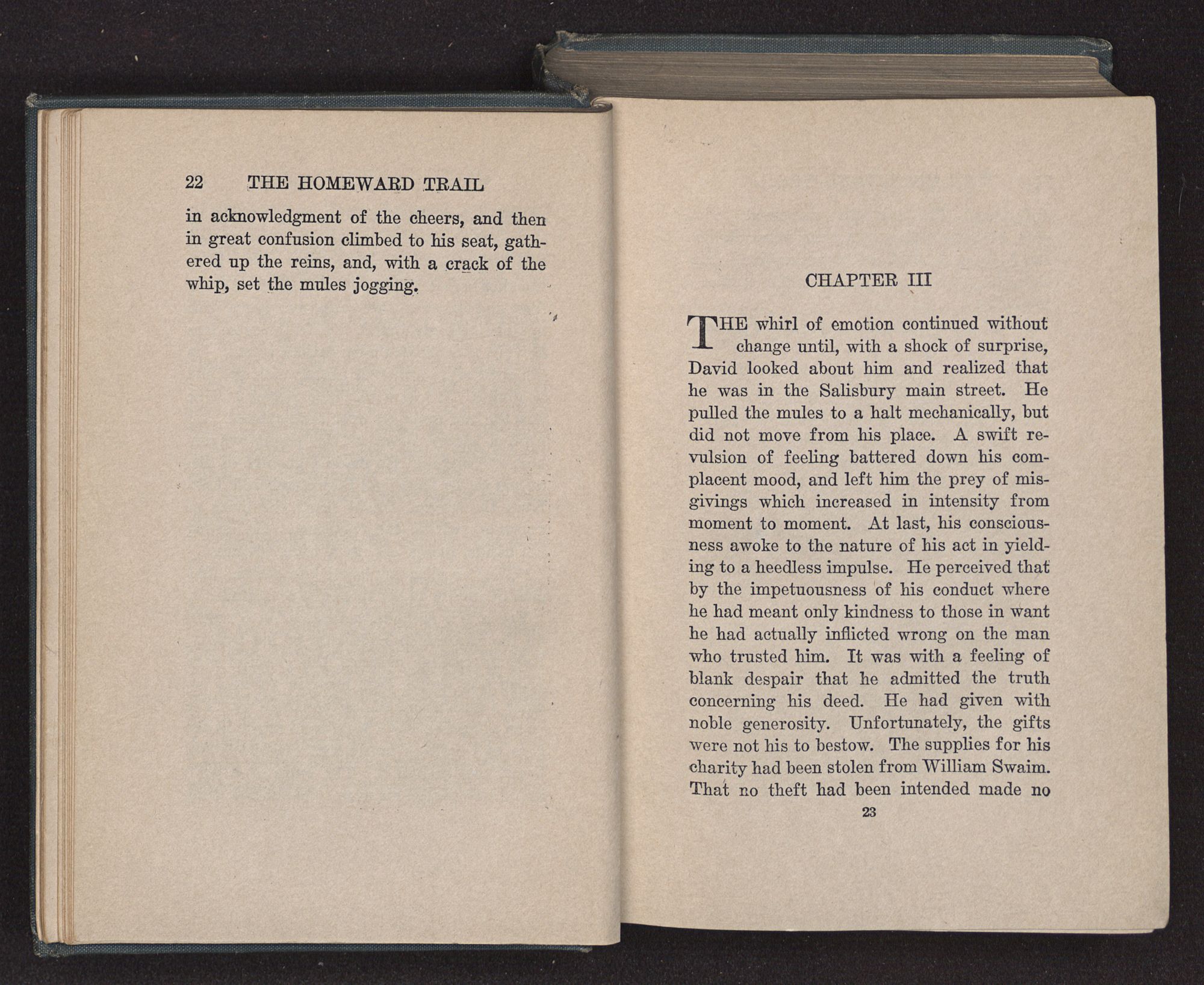 To David (and to Ruth as well) the matter was serious because it brought to the young man the first real responsibility in his life, and the fact marked his stepping across the threshold that separates boyhood from maturity. A trivial event truly in the judgment of those more sophisticated. Yet, to these primitive folk, the occasion marked an epoch. For that matter, this undertaking apparently so simple was destined to prove the beginning of vital episodes in the lives of David Simmons and Ruth Swaim.