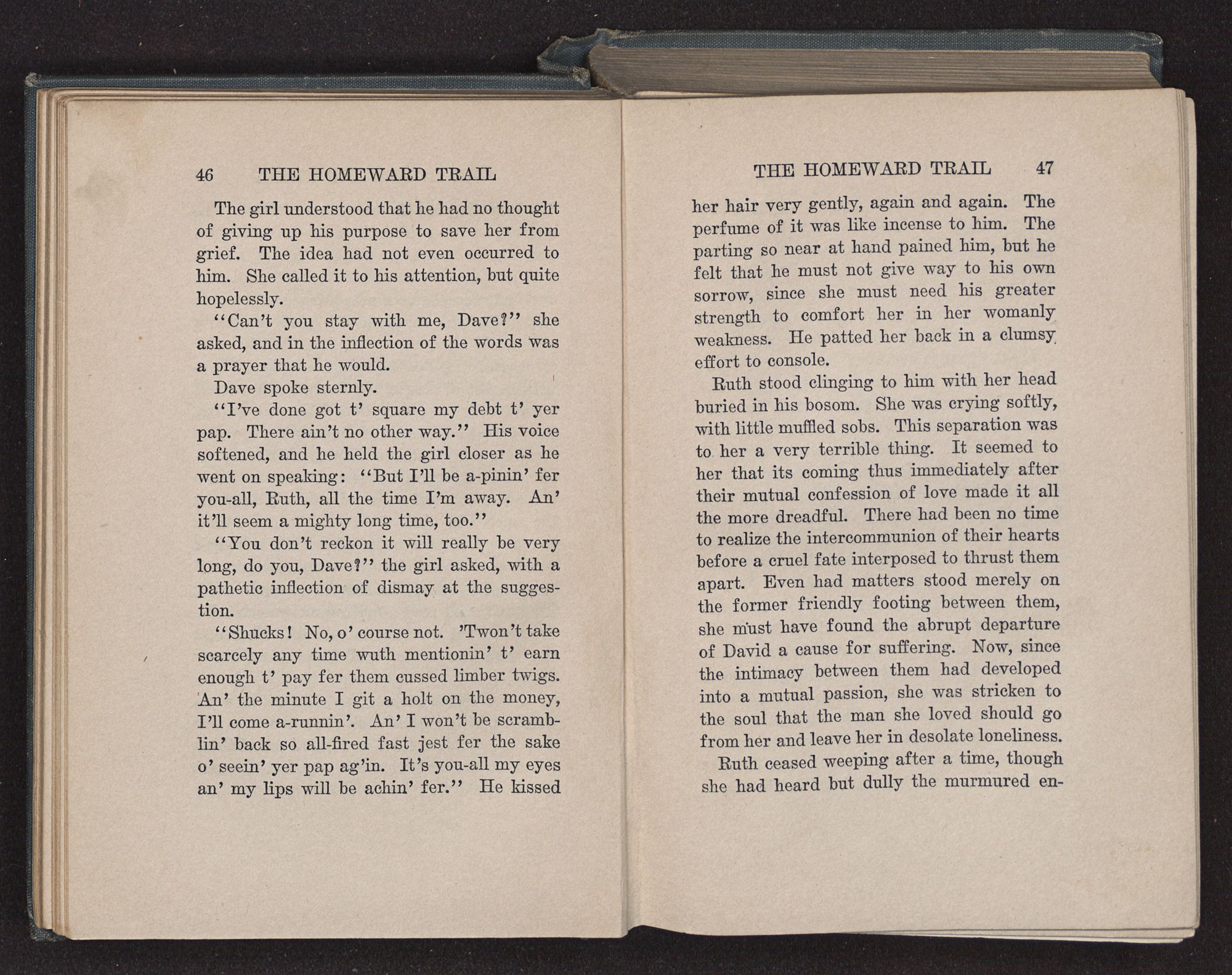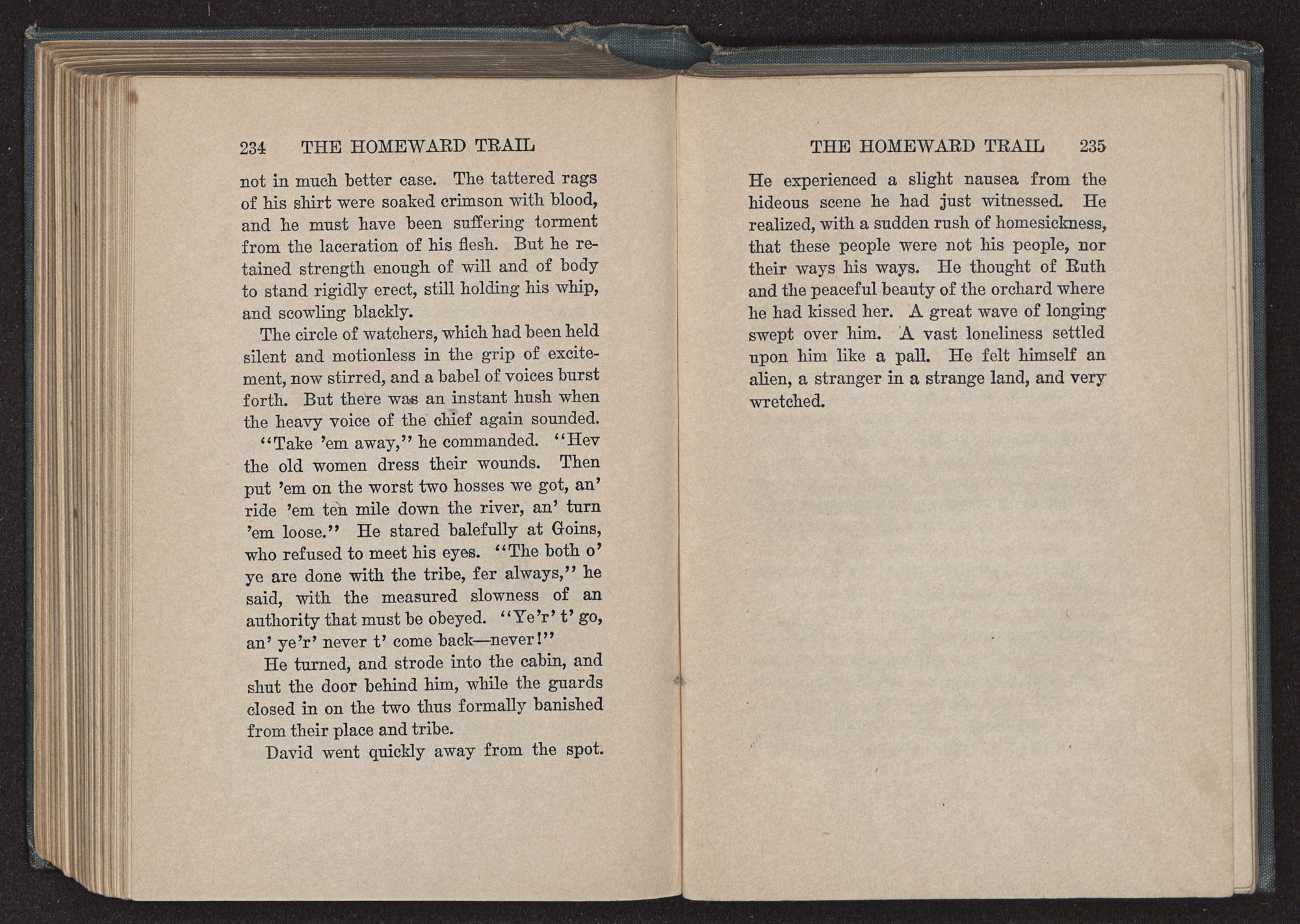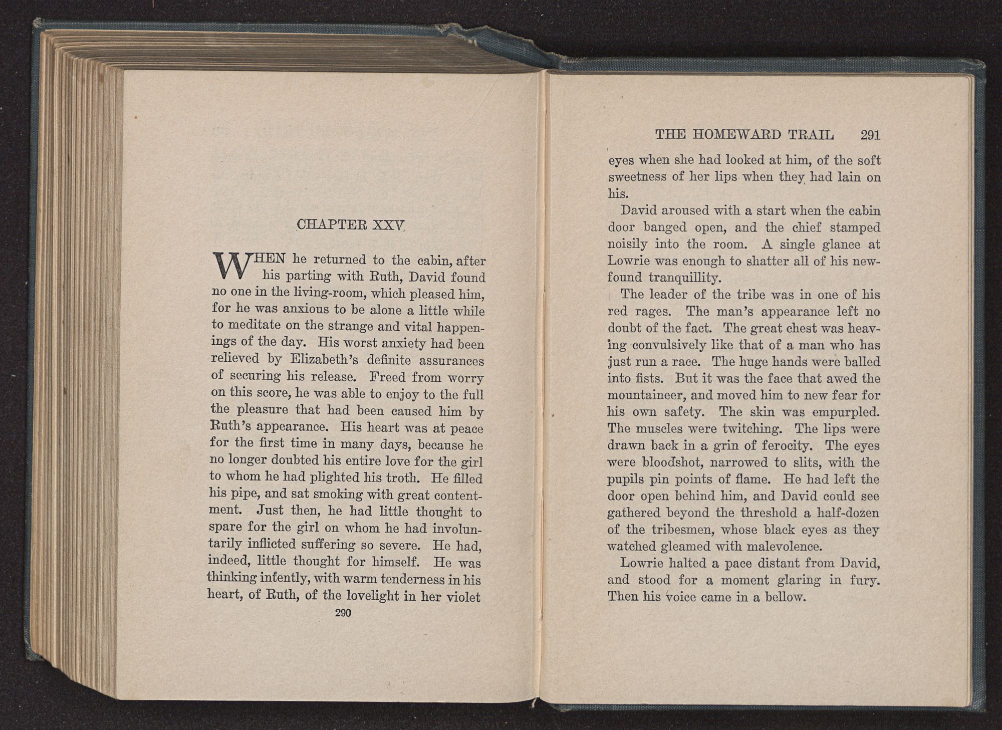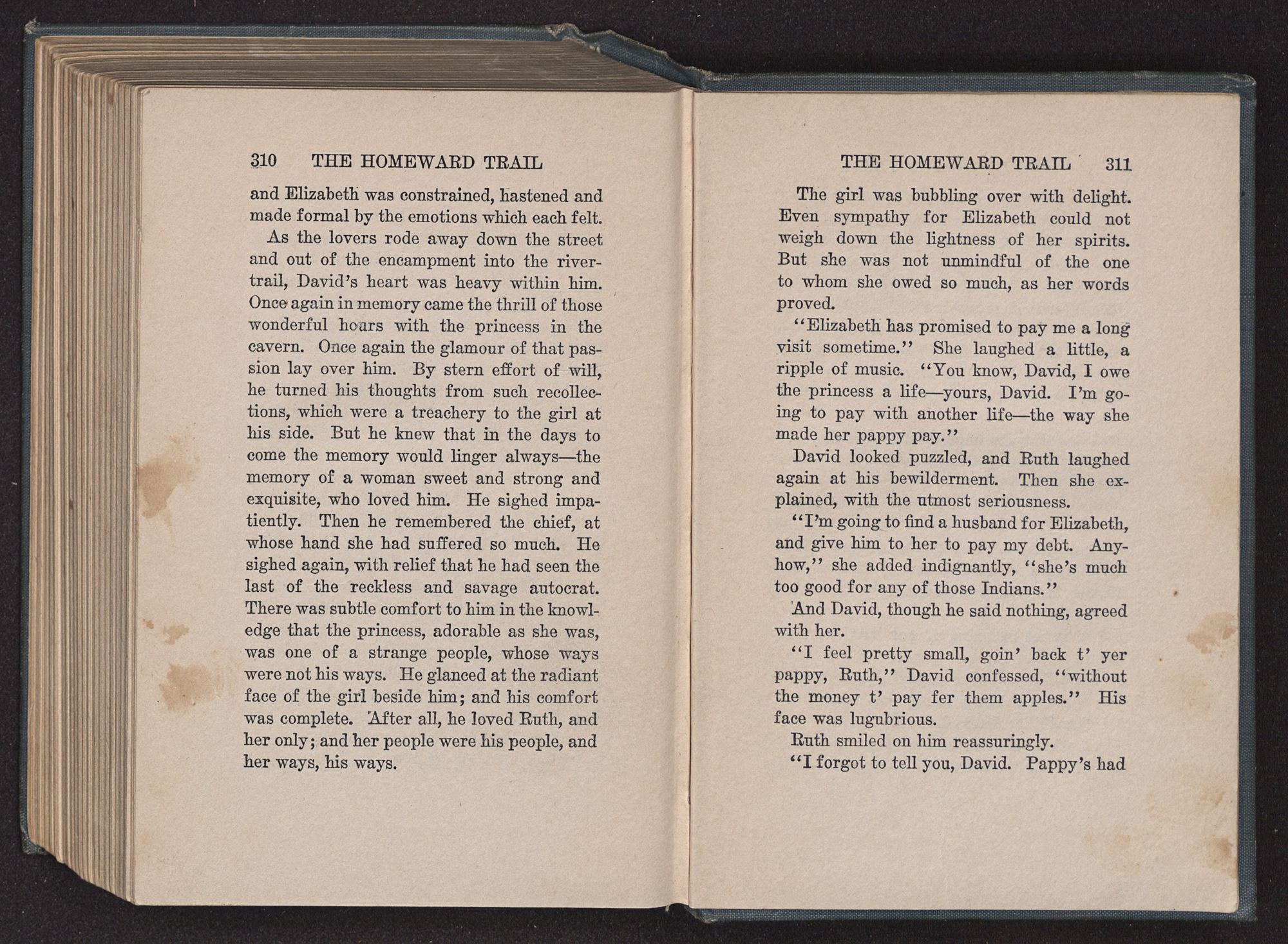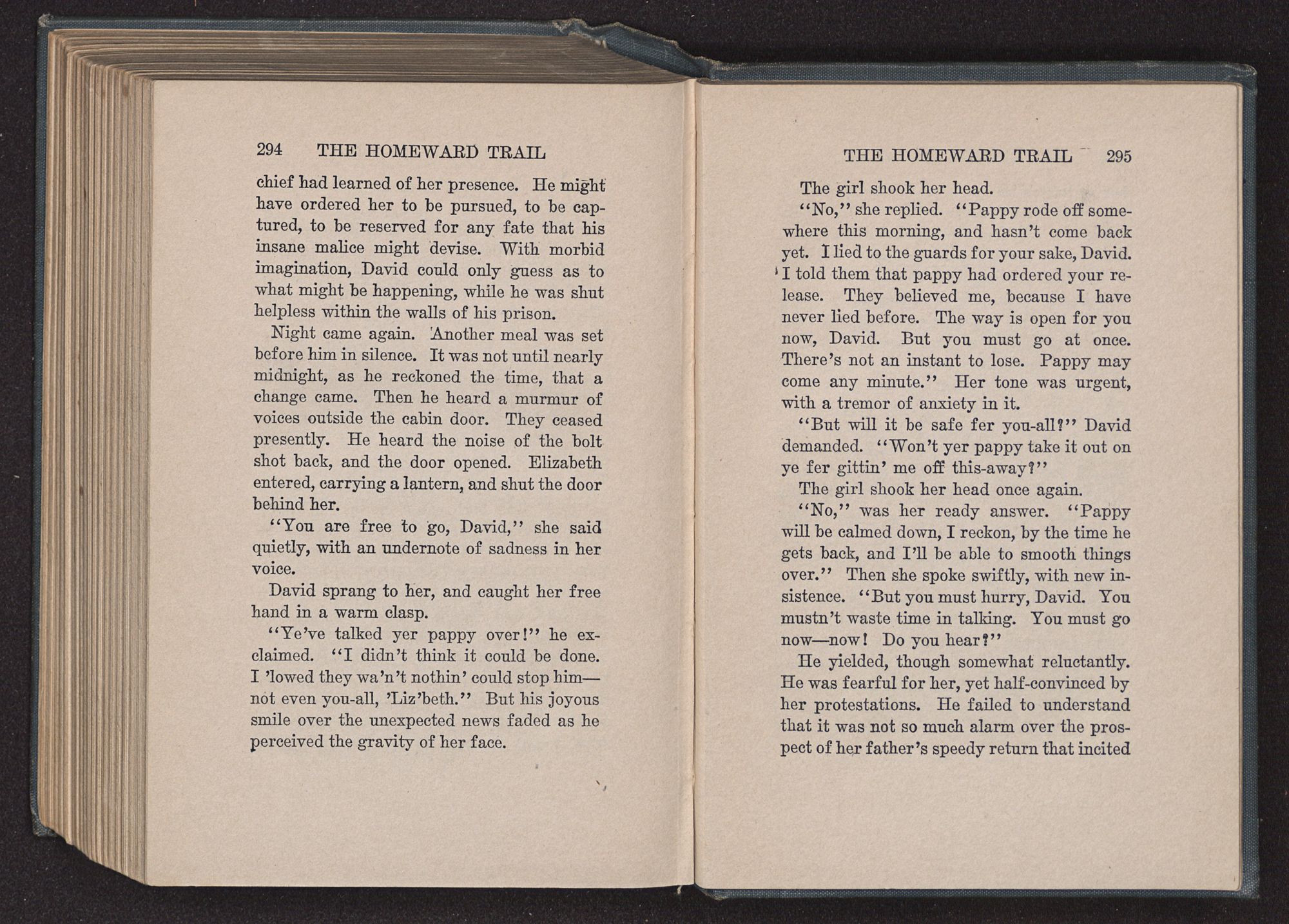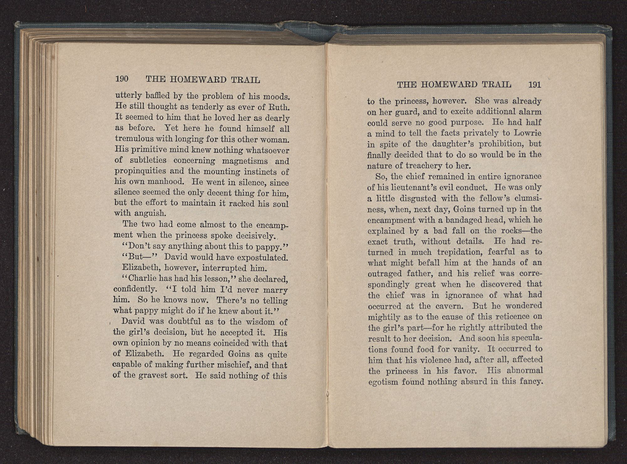 To David (and to Ruth as well) the matter was serious because it brought to the young man the first real responsibility in his life, and the fact marked his stepping across the threshold that separates boyhood from maturity. A trivial event truly in the judgment of those more sophisticated. Yet, to these primitive folk, the occasion marked an epoch. For that matter, this undertaking apparently so simple was destined to prove the beginning of vital episodes in the lives of David Simmons and Ruth Swaim.