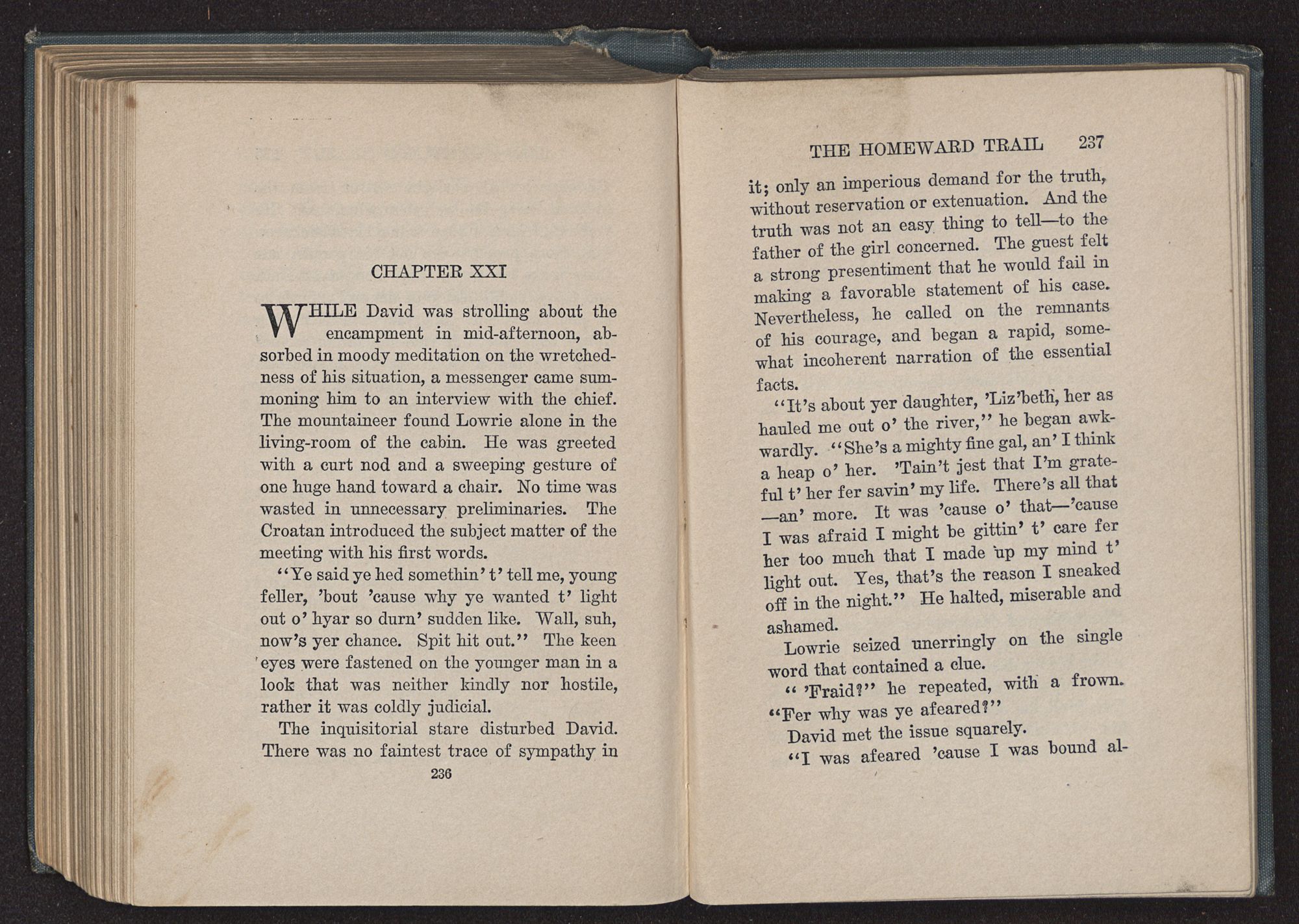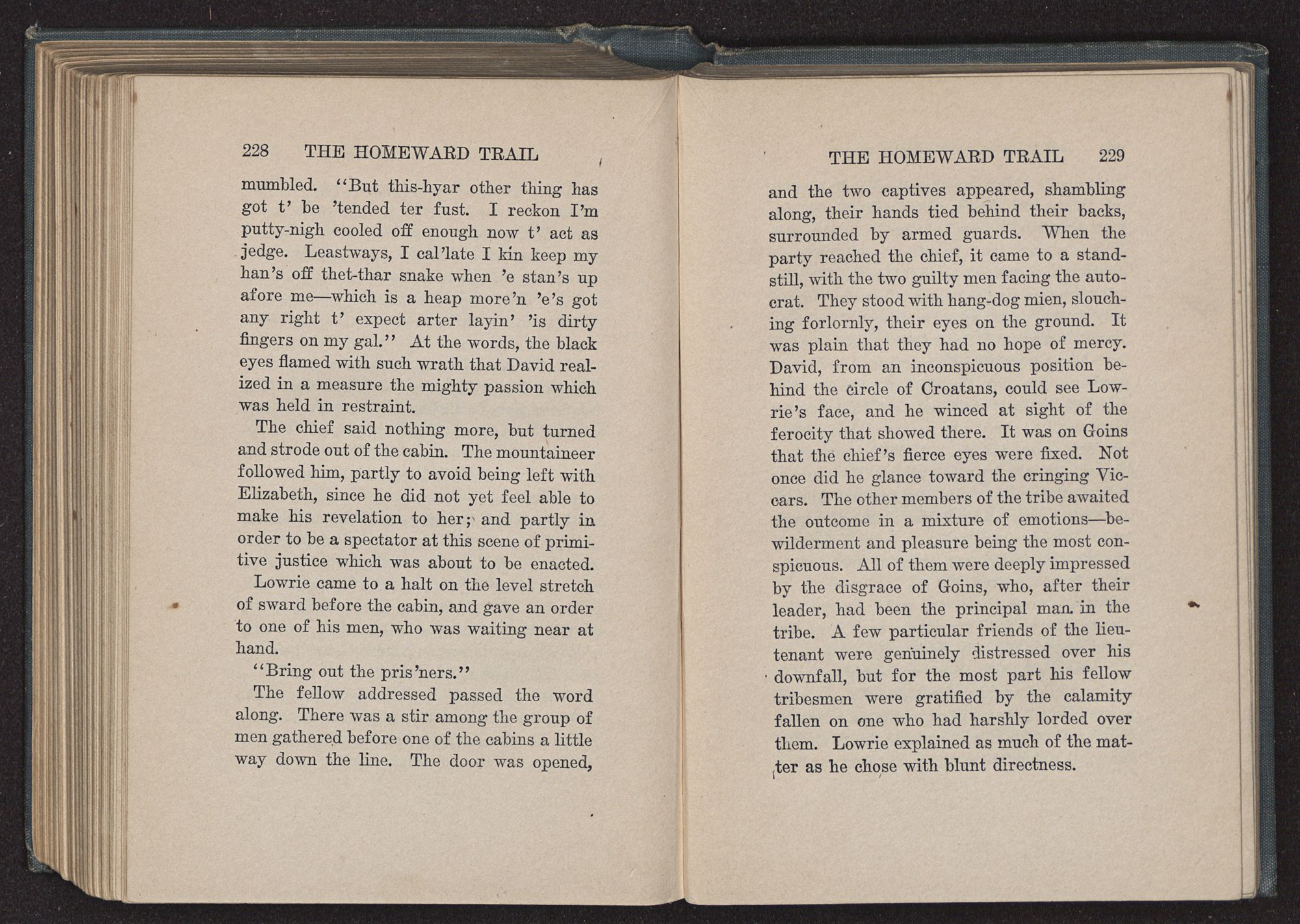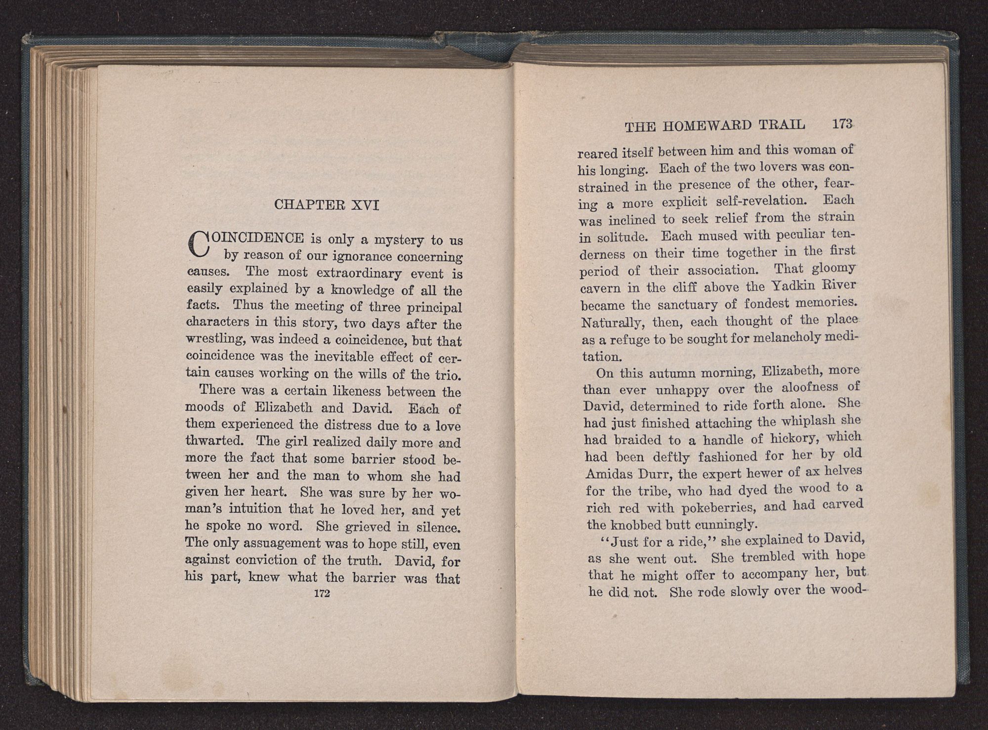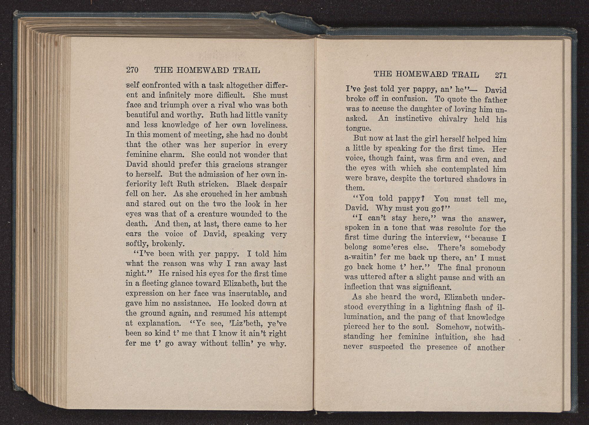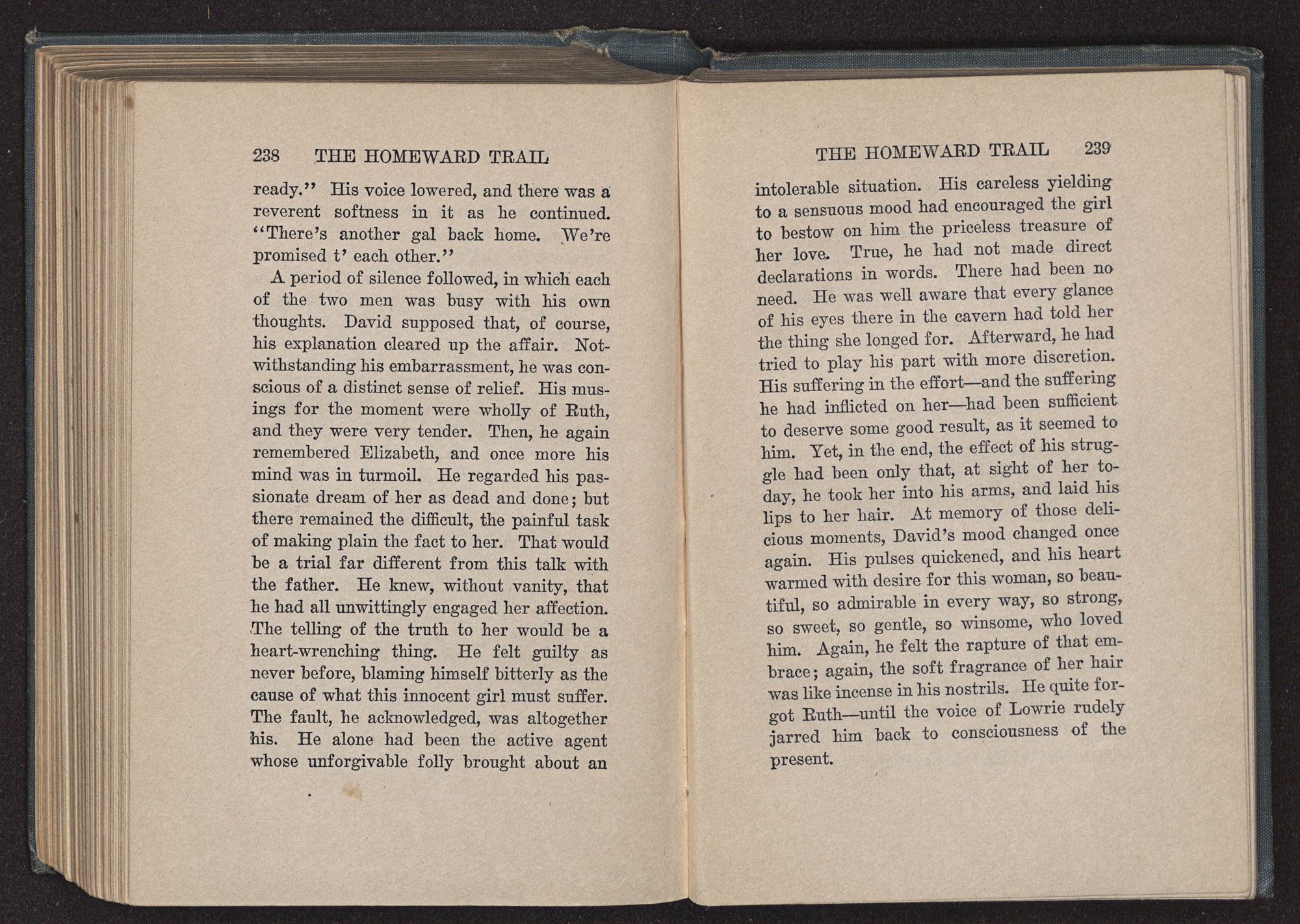 To David (and to Ruth as well) the matter was serious because it brought to the young man the first real responsibility in his life, and the fact marked his stepping across the threshold that separates boyhood from maturity. A trivial event truly in the judgment of those more sophisticated. Yet, to these primitive folk, the occasion marked an epoch. For that matter, this undertaking apparently so simple was destined to prove the beginning of vital episodes in the lives of David Simmons and Ruth Swaim.