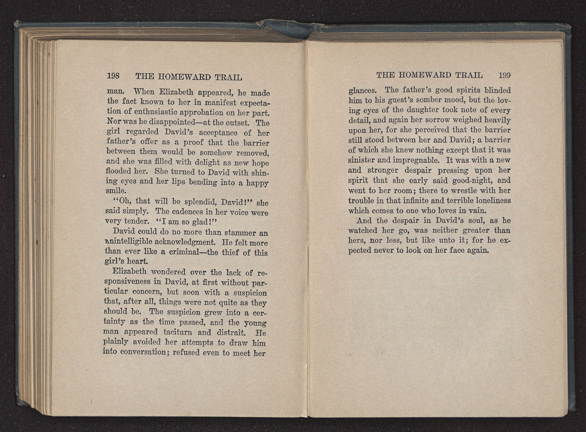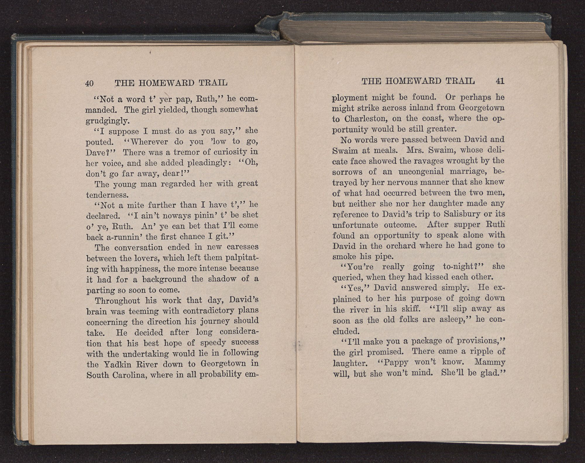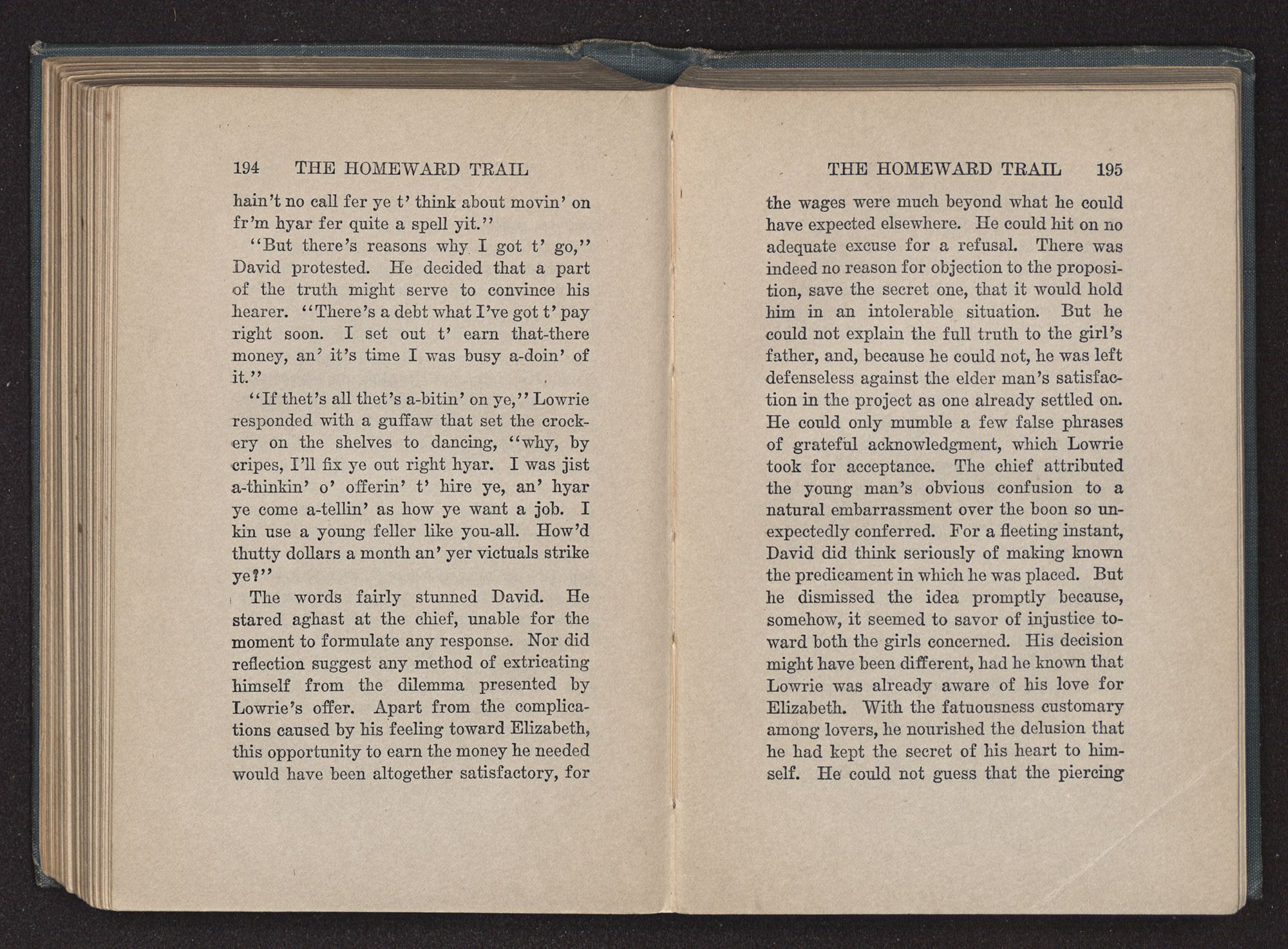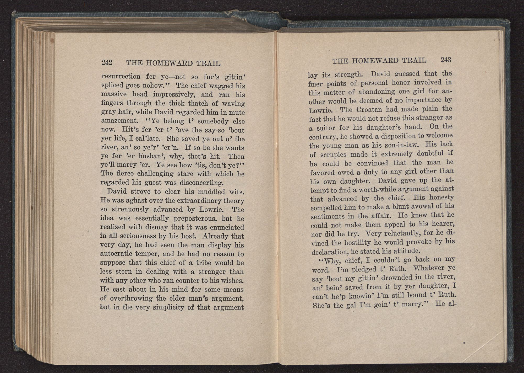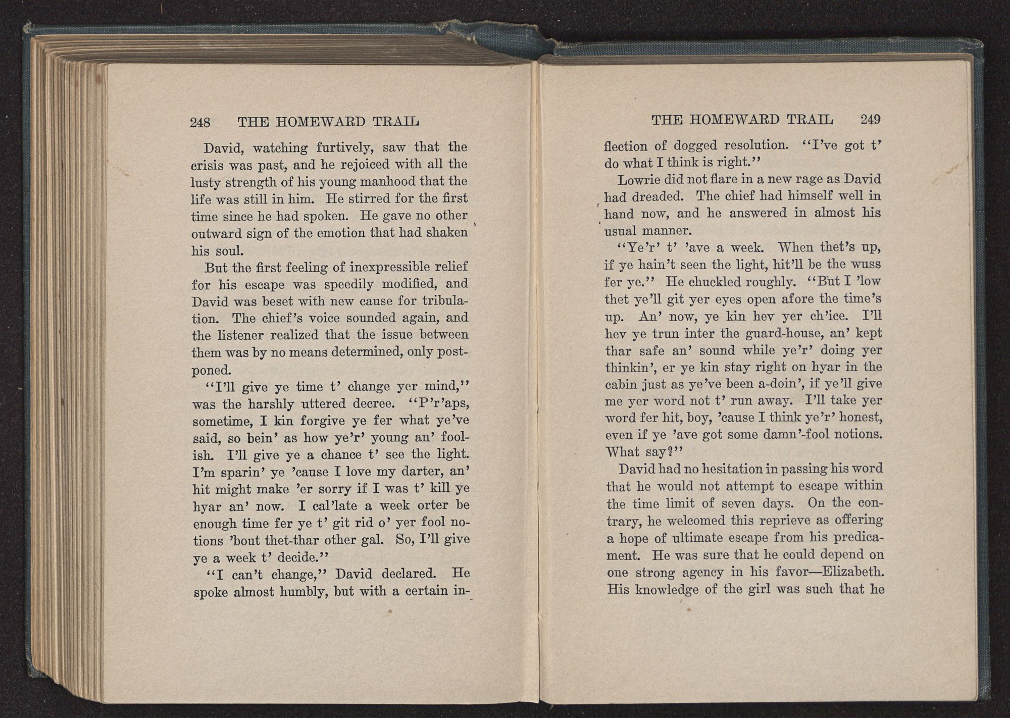 To David (and to Ruth as well) the matter was serious because it brought to the young man the first real responsibility in his life, and the fact marked his stepping across the threshold that separates boyhood from maturity. A trivial event truly in the judgment of those more sophisticated. Yet, to these primitive folk, the occasion marked an epoch. For that matter, this undertaking apparently so simple was destined to prove the beginning of vital episodes in the lives of David Simmons and Ruth Swaim.