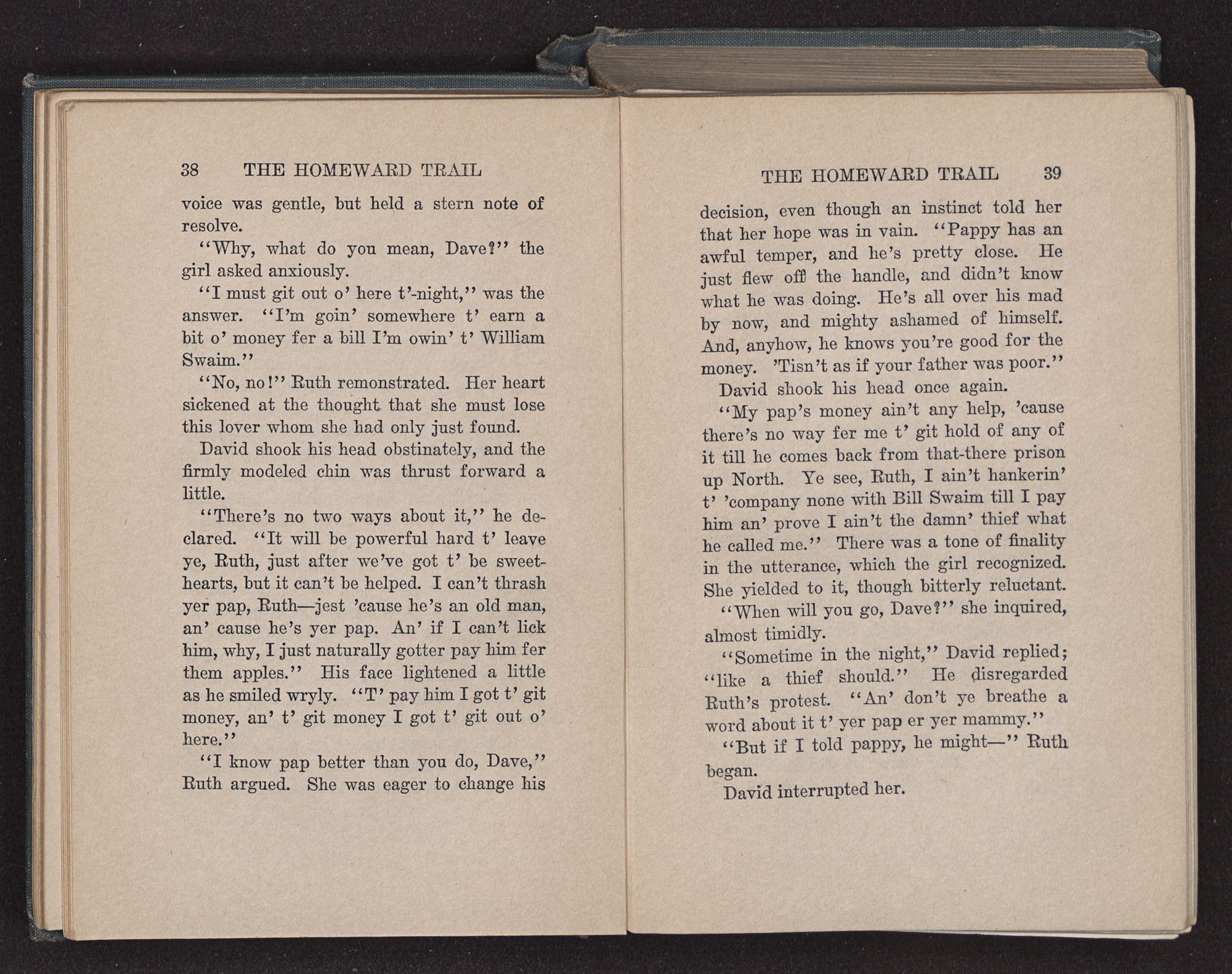 “I feel pretty small, goin’ back t’ yer pappy, Ruth,” David confessed, “without the money t’ pay fer them apples.” His face was lugubrious.