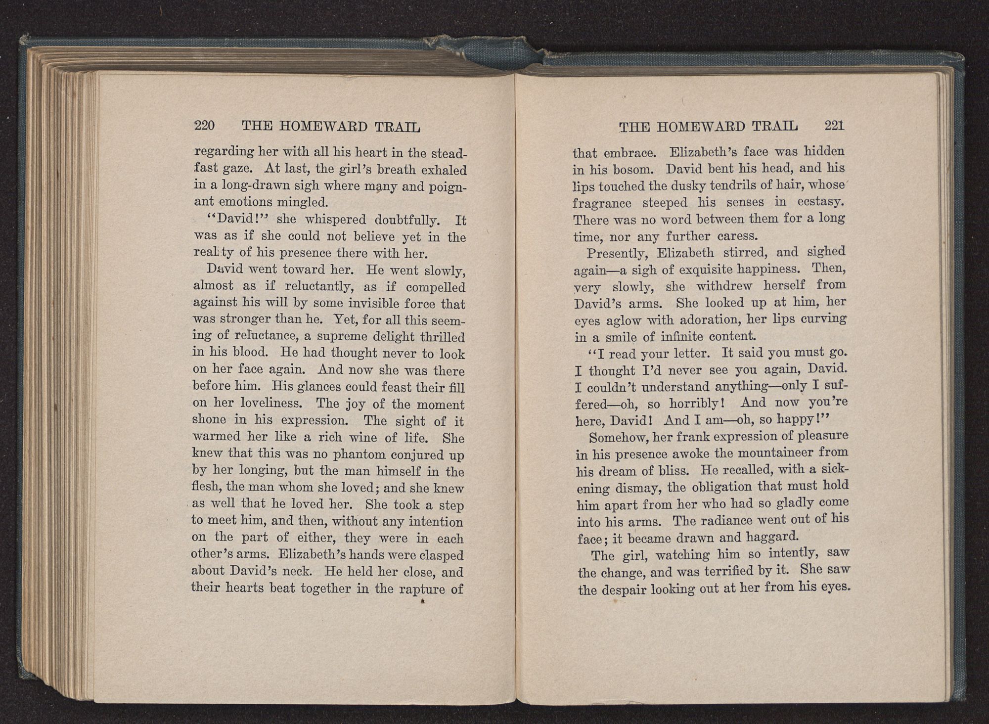 The lovers gazed back for a moment. Then, without a word, their eyes turned to each other in tenderness, and their lips smiled from the happiness that was in their hearts as they rode forward on the homeward trail.