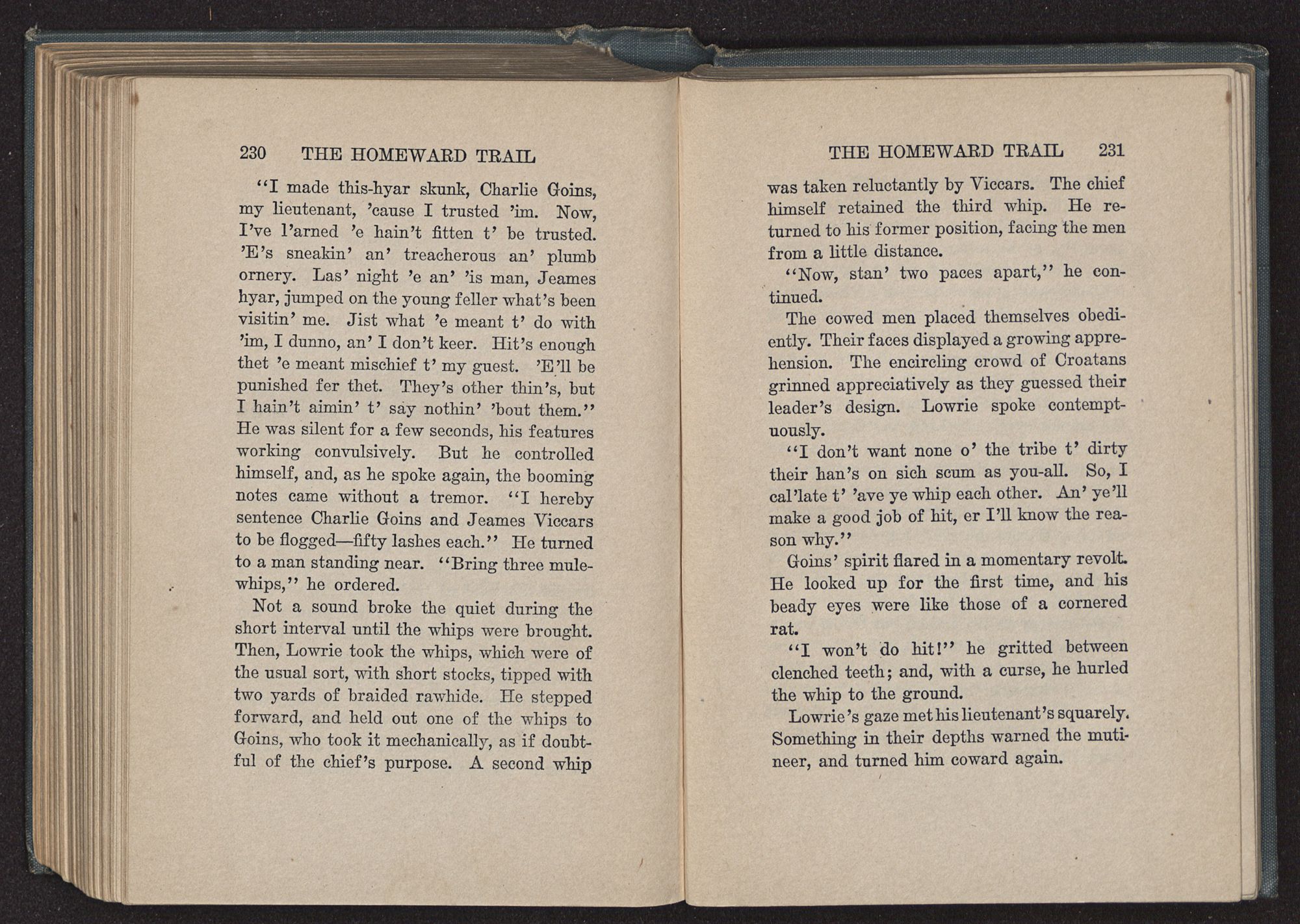 “An’ now ye've done yer duty, ye kin ride away, an’ leave me t’ rot hyar. Wall, go on—git out!”
