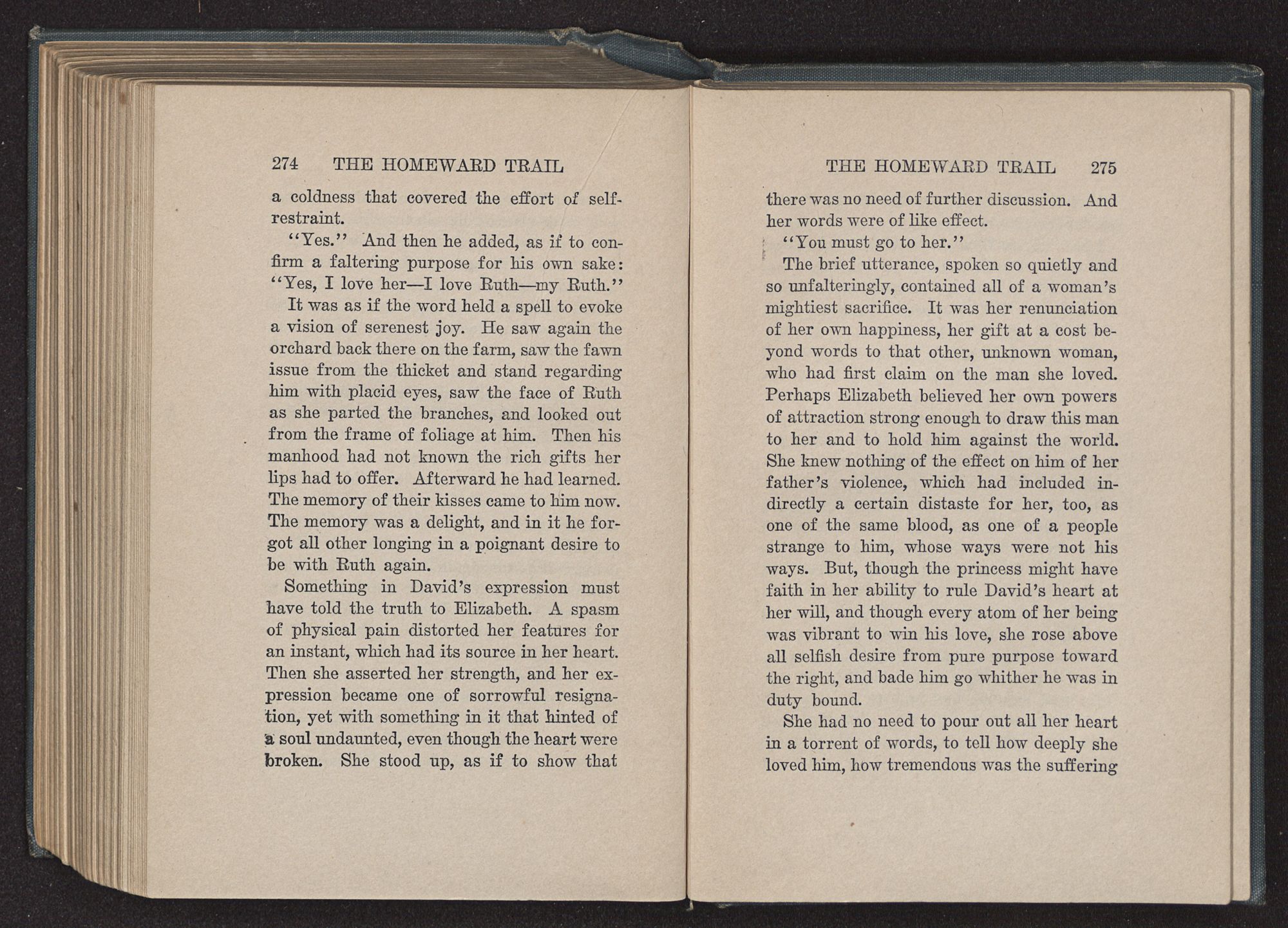 As the lovers rode away down the street and out of the encampment into the rivertrail, David's heart was heavy within him. Once again in memory came the thrill of those wonderful hours with the princess in the cavern. Once again the glamour of that passion lay over him. By stern effort of will, he turned his thoughts from such recollections, which were a treachery to the girl at his side. But he knew that in the days to come the memory would linger always—the memory of a woman sweet and strong and exquisite, who loved him. He sighed impatiently. Then he remembered the chief, at whose hand she had suffered so much. He sighed again, with relief that he had seen the last of the reckless and savage autocrat. There was subtle comfort to him in the knowledge that the princess, adorable as she was, was one of a strange people, whose ways were not his ways. He glanced at the radiant face of the girl beside him; and his comfort was complete. After all, he loved Ruth, and her only; and her people were his people, and her ways, his ways.