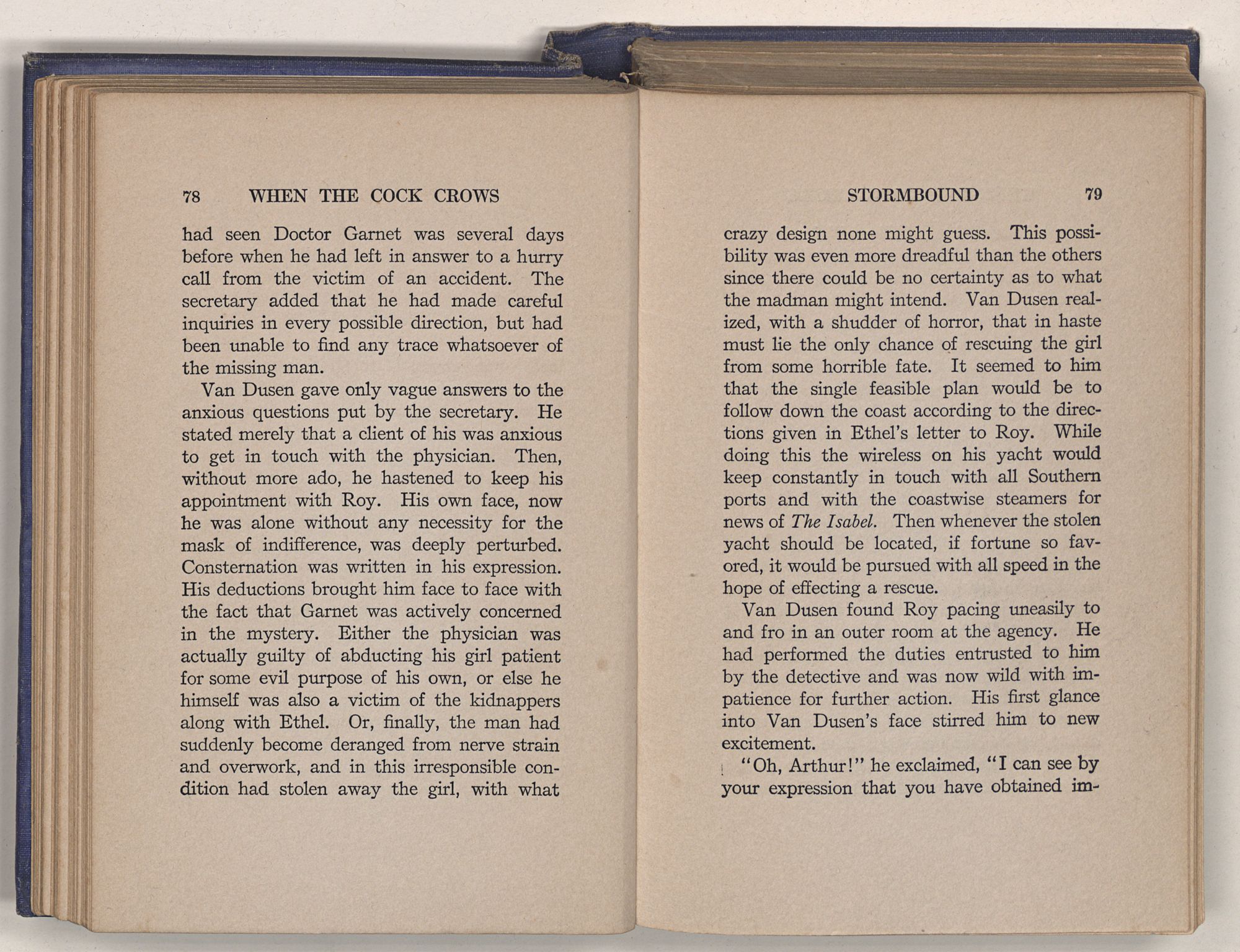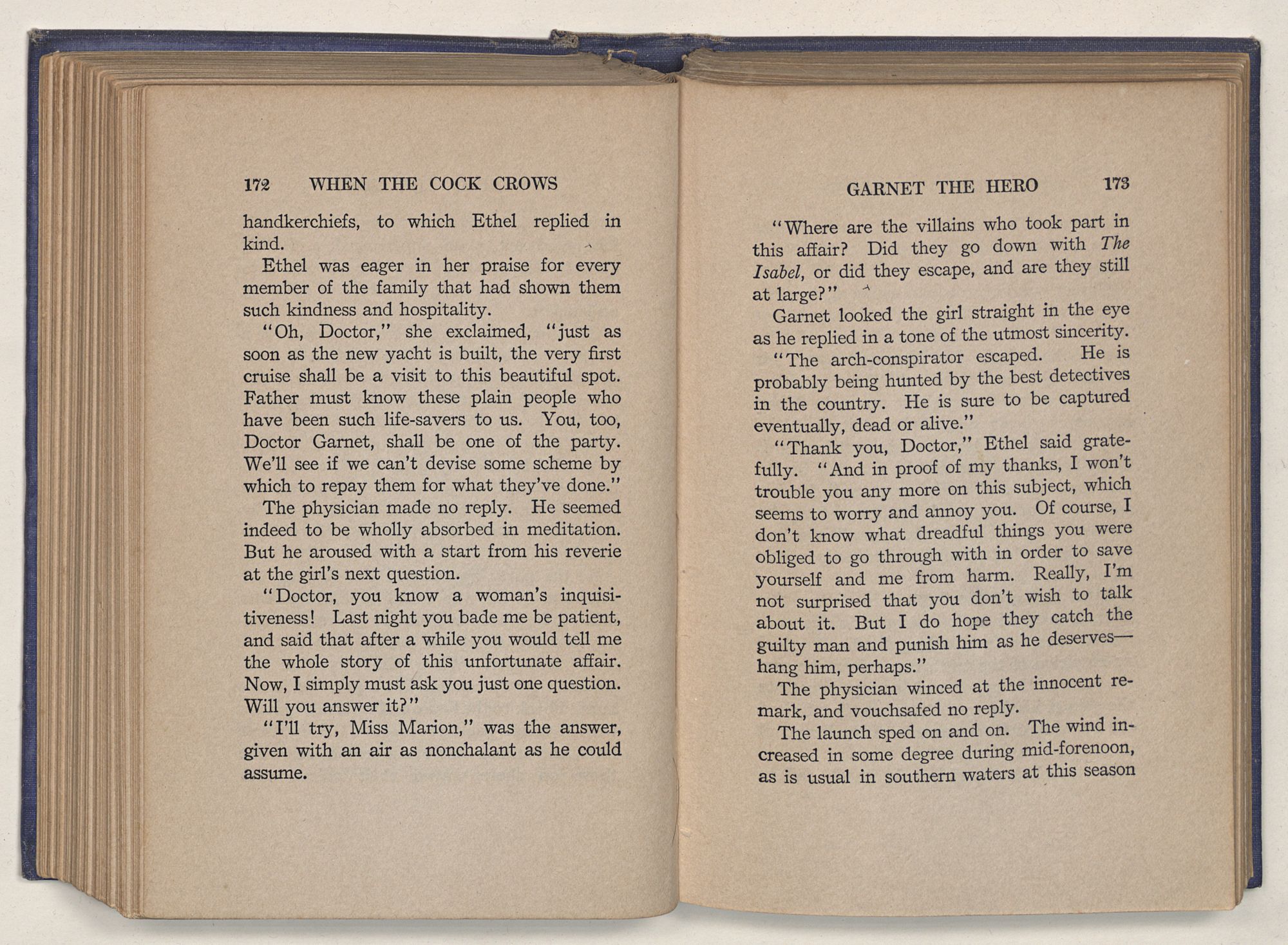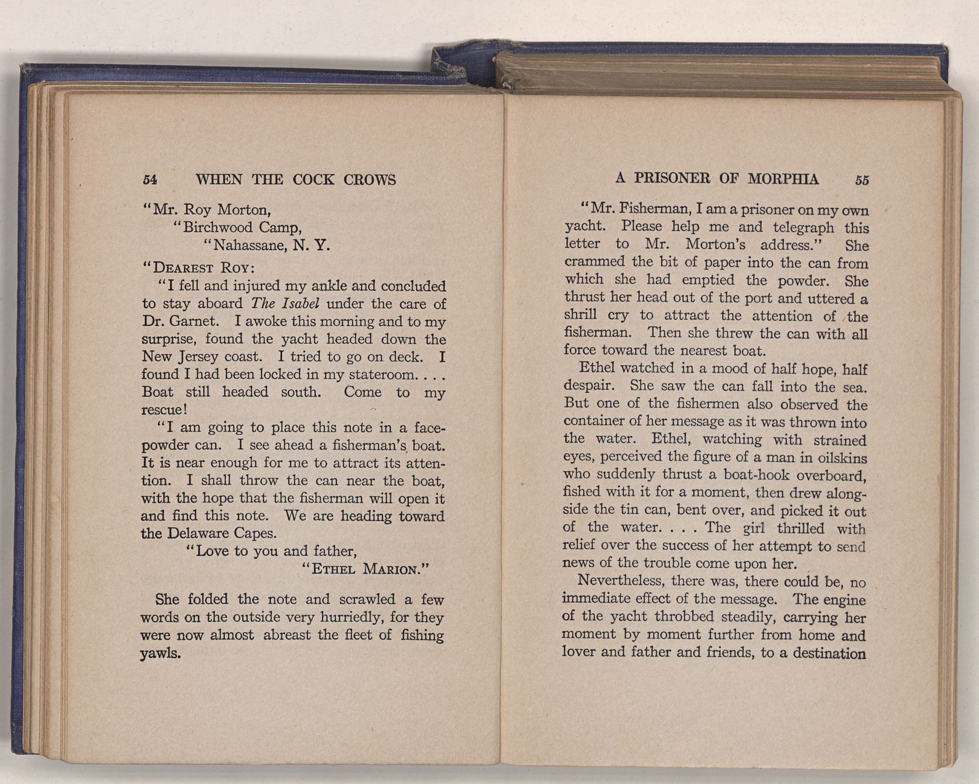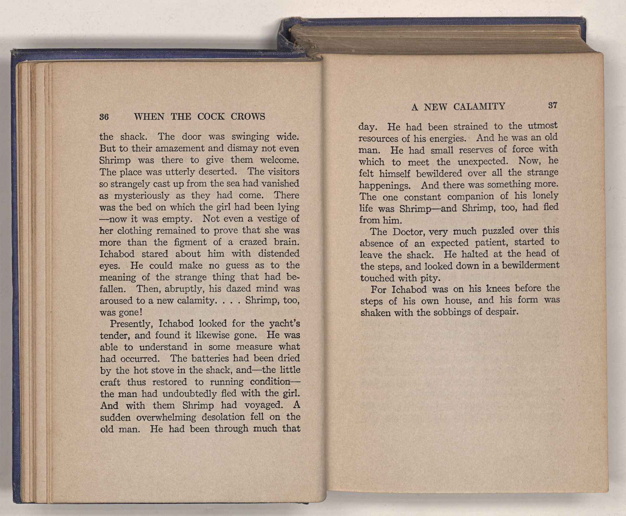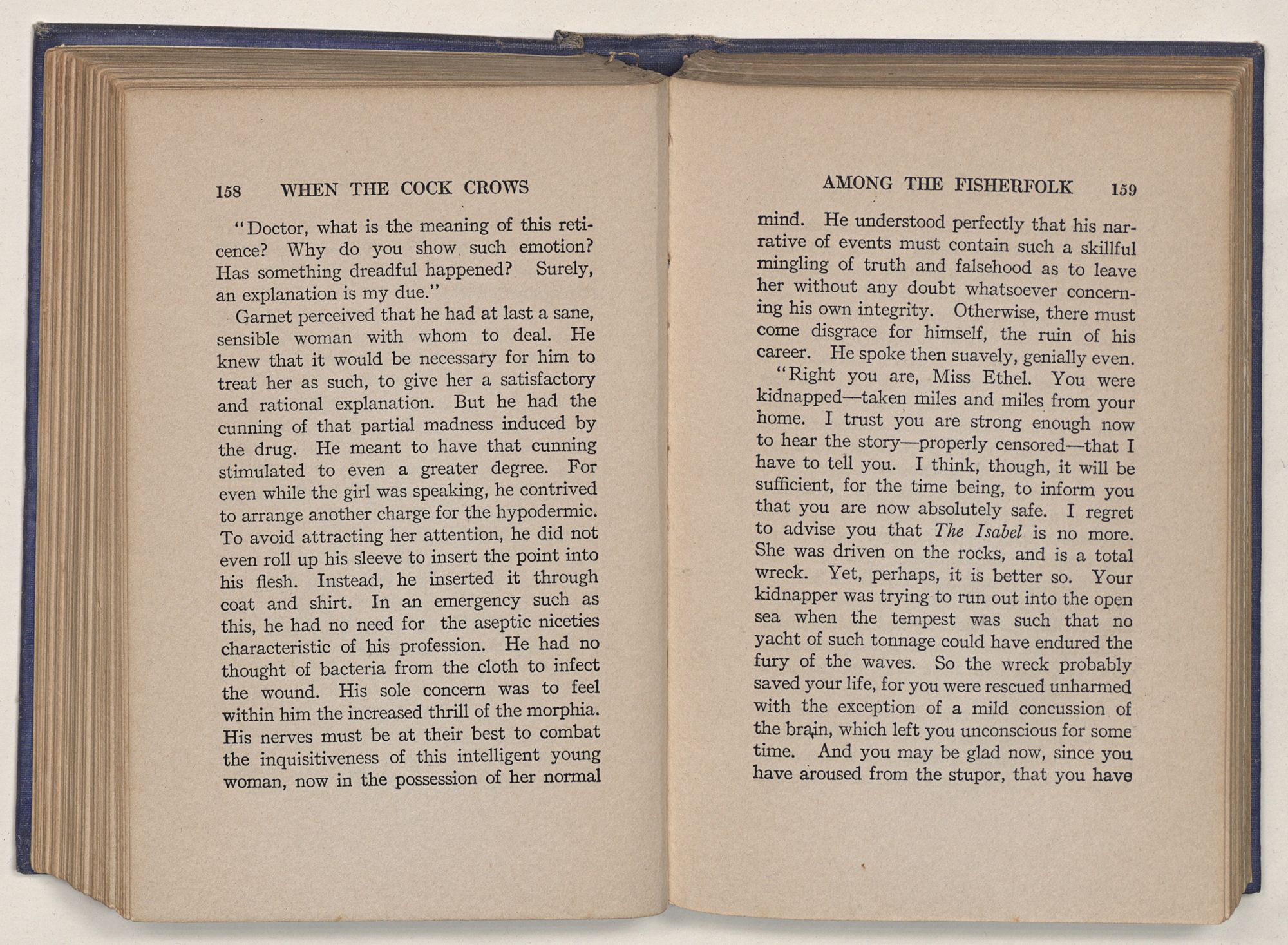 “Ichabod preferred to remain behind, when I went to the physician's house. There I found that Doctor Garnet had in fact been received by the young doctor, who had taken him in and cared for him—proud indeed to do so, since he knew his patient's reputation and held him in veneration for his skill. The younger doctor readily entered into a conspiracy with me when he had heard my story. I had an interview with Doctor Garnet. He accepted my proposition fully. He was glad of a chance to expiate his follies. He swore to me that never again would he take a grain of the drug. At his request, I brought Ichabod to his bedside, and he thanked the old man warmly for all that he had done both for himself and for me, his victim. I offered him funds for the trip abroad, but he told me that he was well supplied with money. He told me also that he had come in a small sail-boat to carry me away from the shack, but had seen on approaching that his services