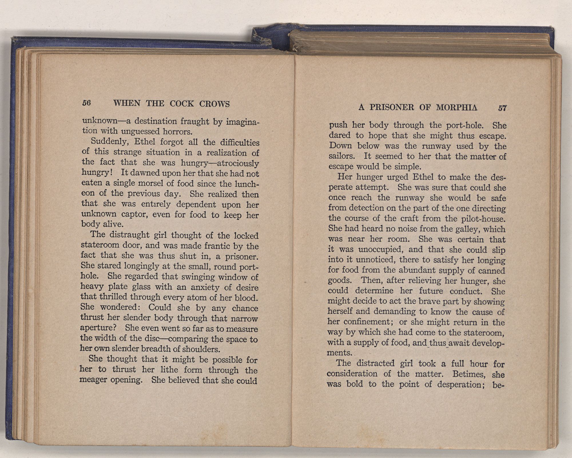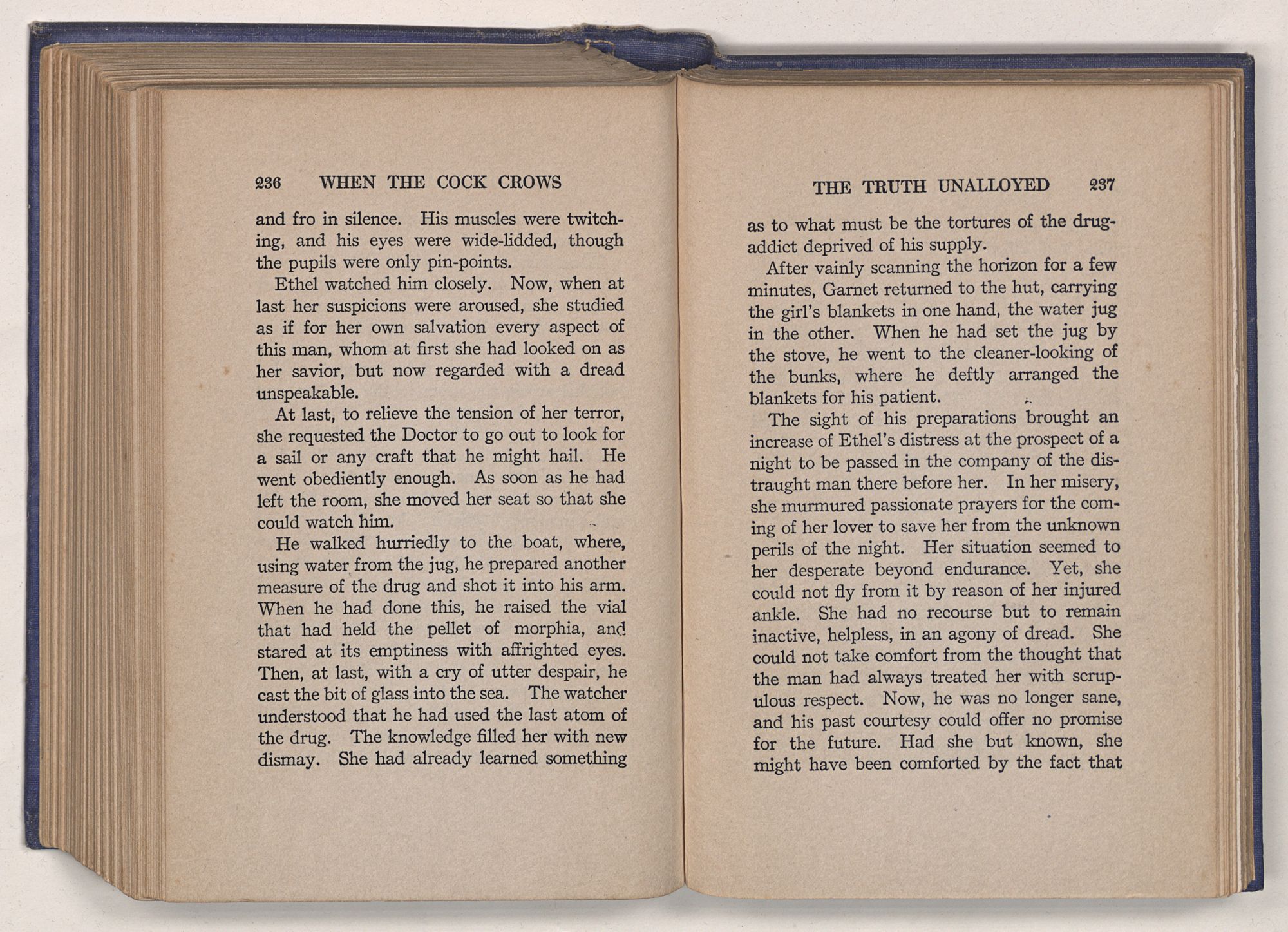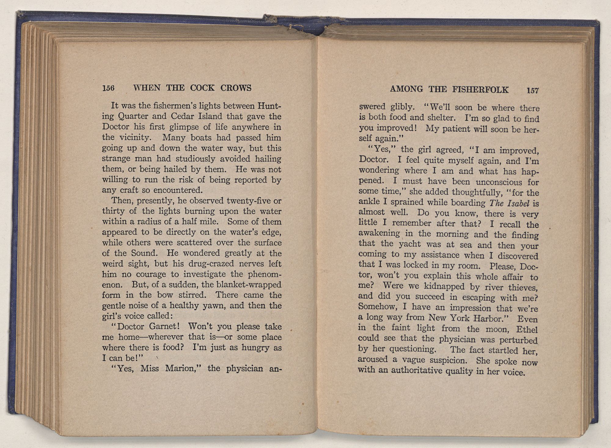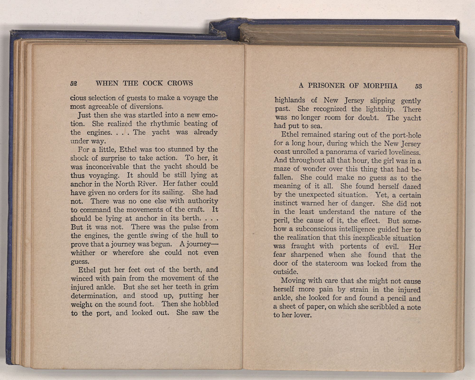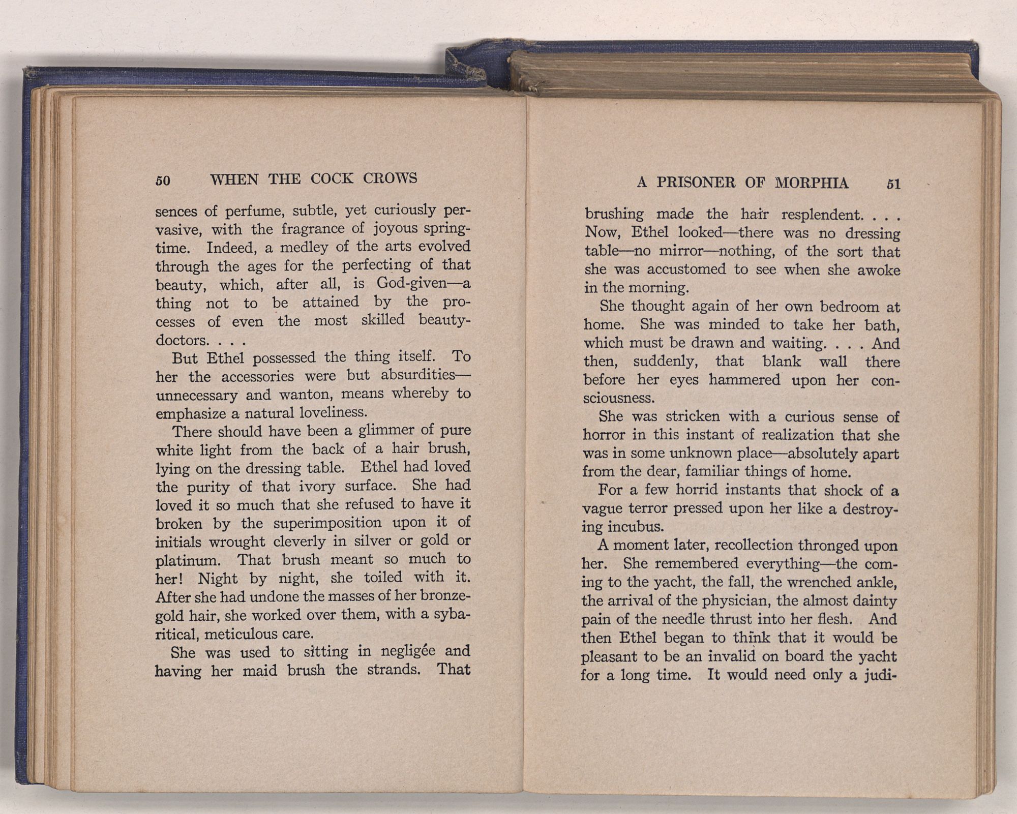 “Ichabod preferred to remain behind, when I went to the physician's house. There I found that Doctor Garnet had in fact been received by the young doctor, who had taken him in and cared for him—proud indeed to do so, since he knew his patient's reputation and held him in veneration for his skill. The younger doctor readily entered into a conspiracy with me when he had heard my story. I had an interview with Doctor Garnet. He accepted my proposition fully. He was glad of a chance to expiate his follies. He swore to me that never again would he take a grain of the drug. At his request, I brought Ichabod to his bedside, and he thanked the old man warmly for all that he had done both for himself and for me, his victim. I offered him funds for the trip abroad, but he told me that he was well supplied with money. He told me also that he had come in a small sail-boat to carry me away from the shack, but had seen on approaching that his services