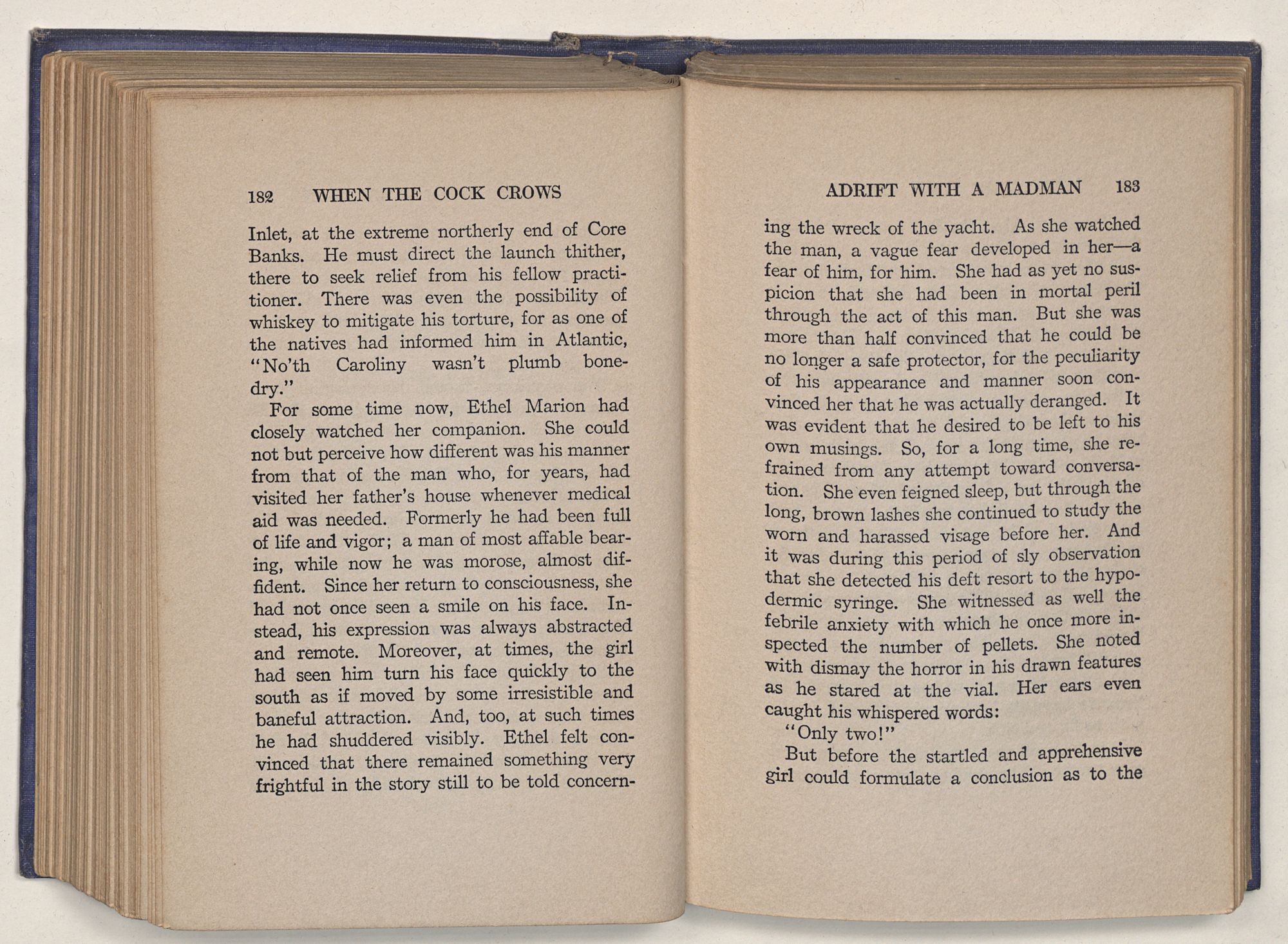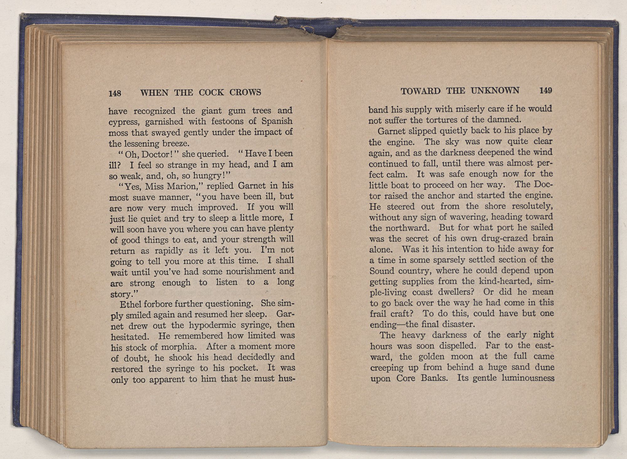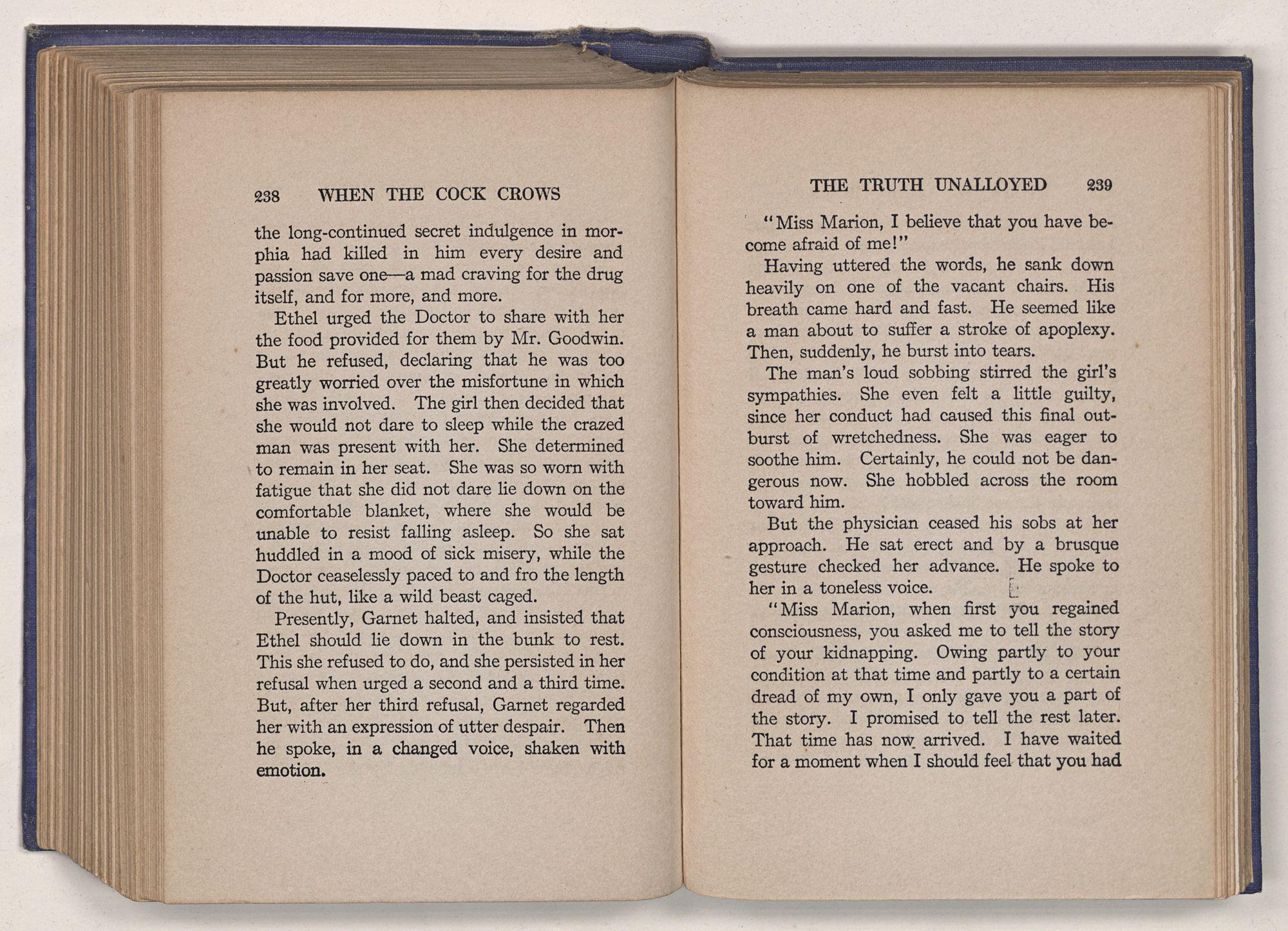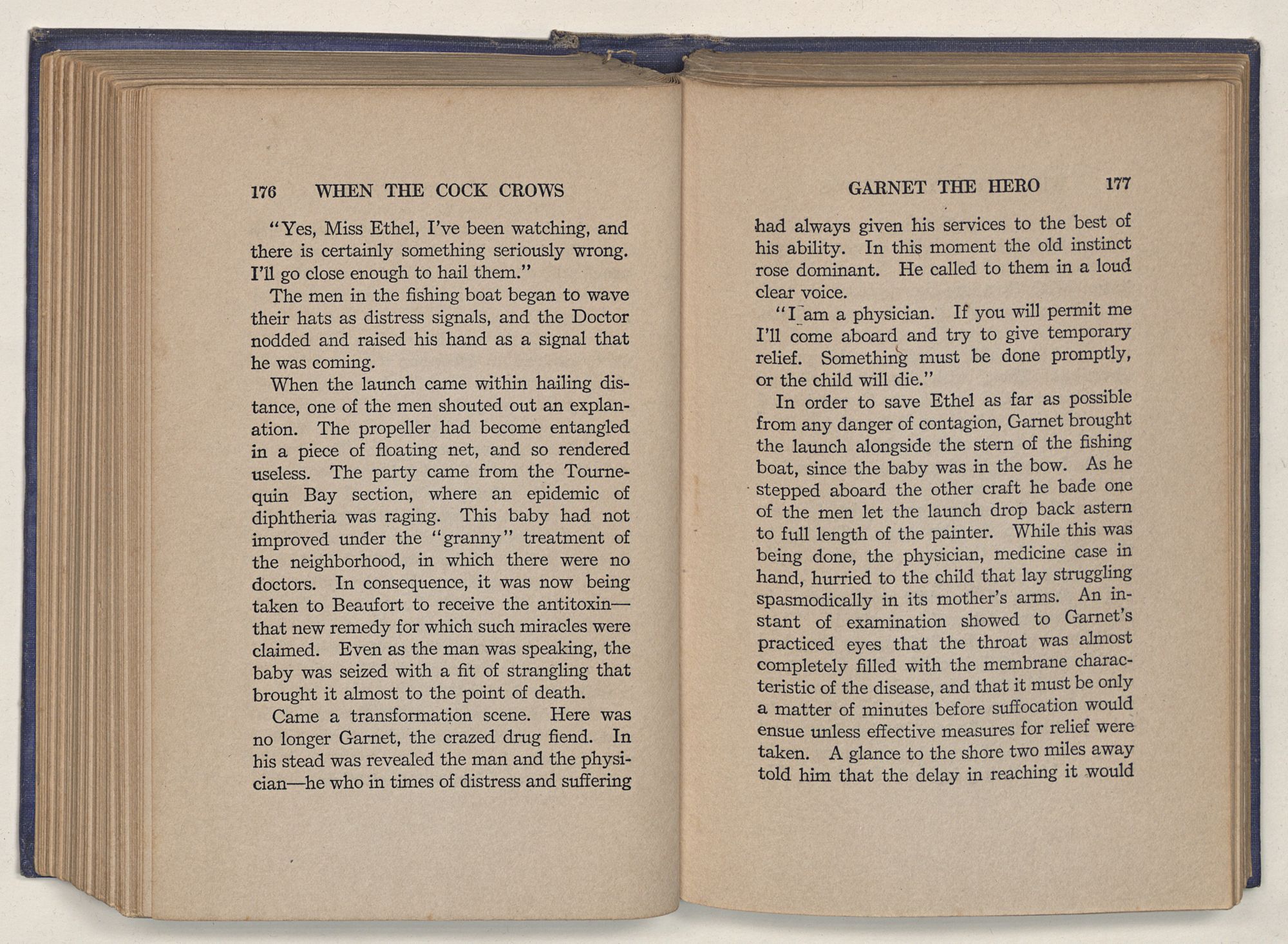“Ichabod preferred to remain behind, when I went to the physician's house. There I found that Doctor Garnet had in fact been received by the young doctor, who had taken him in and cared for him—proud indeed to do so, since he knew his patient's reputation and held him in veneration for his skill. The younger doctor readily entered into a conspiracy with me when he had heard my story. I had an interview with Doctor Garnet. He accepted my proposition fully. He was glad of a chance to expiate his follies. He swore to me that never again would he take a grain of the drug. At his request, I brought Ichabod to his bedside, and he thanked the old man warmly for all that he had done both for himself and for me, his victim. I offered him funds for the trip abroad, but he told me that he was well supplied with money. He told me also that he had come in a small sail-boat to carry me away from the shack, but had seen on approaching that his services