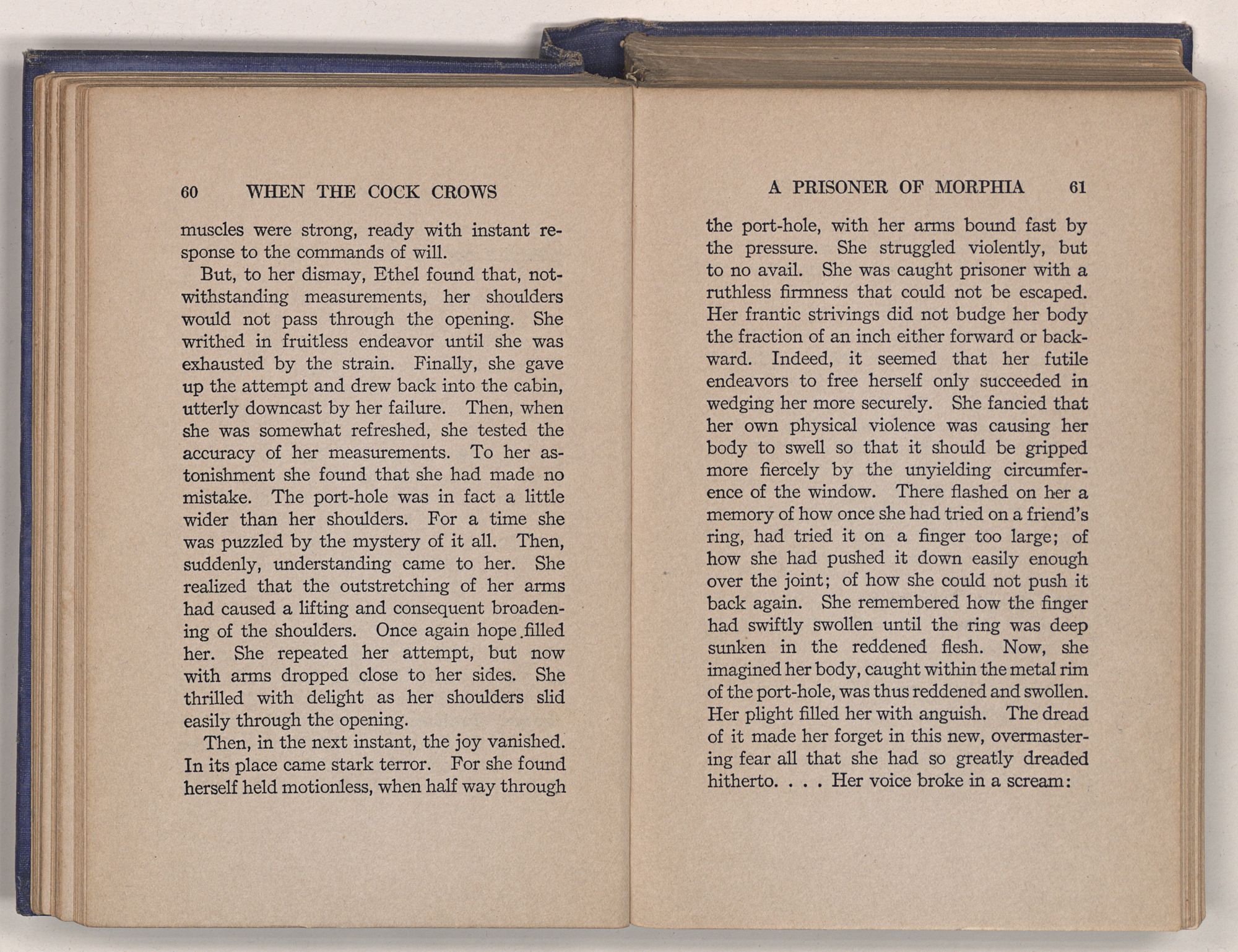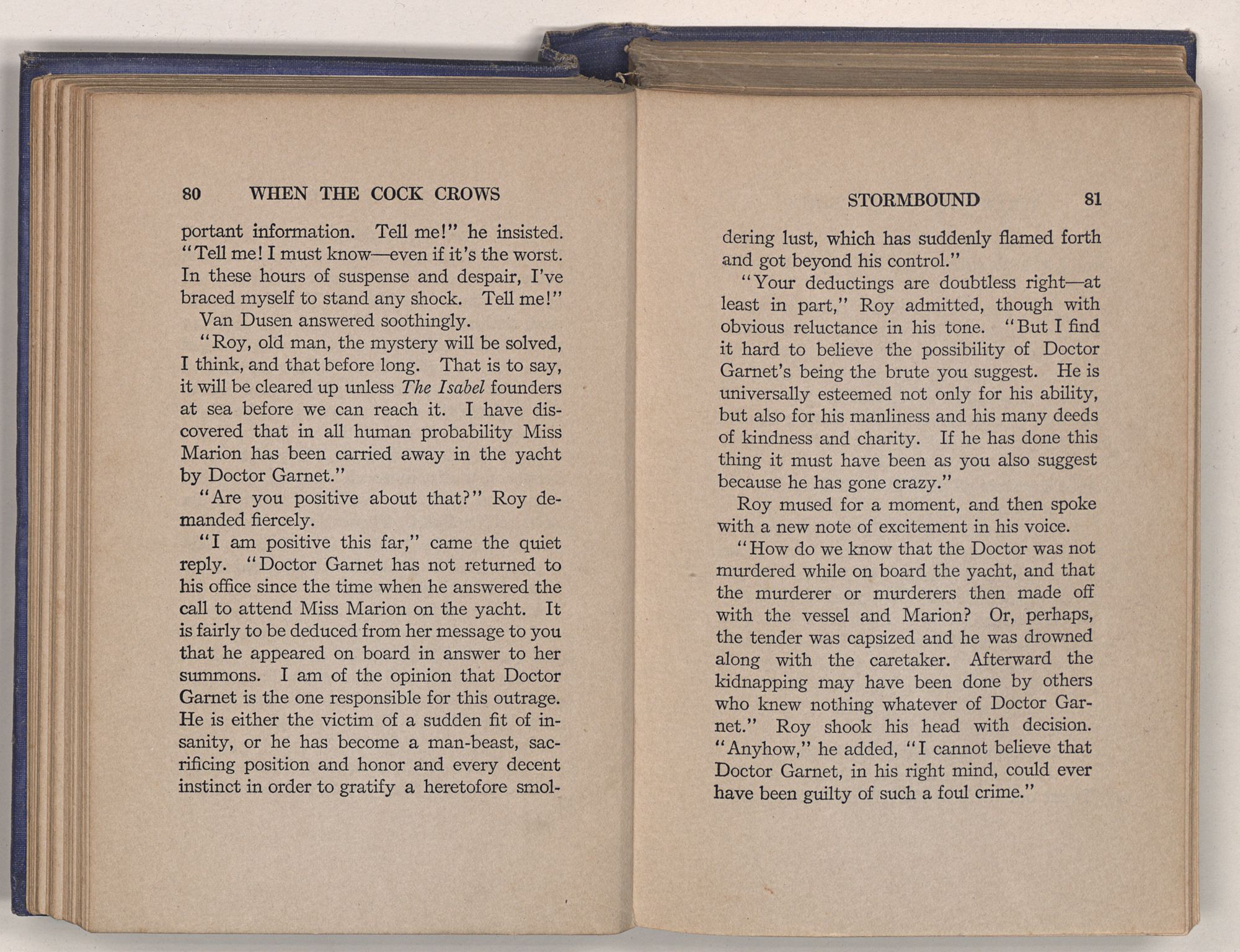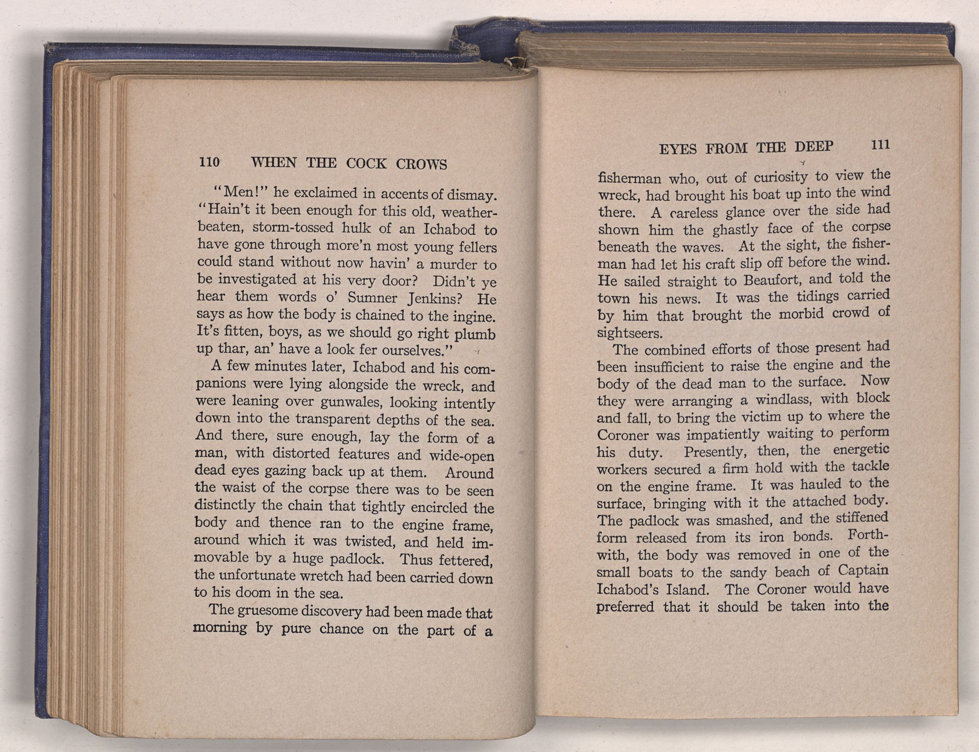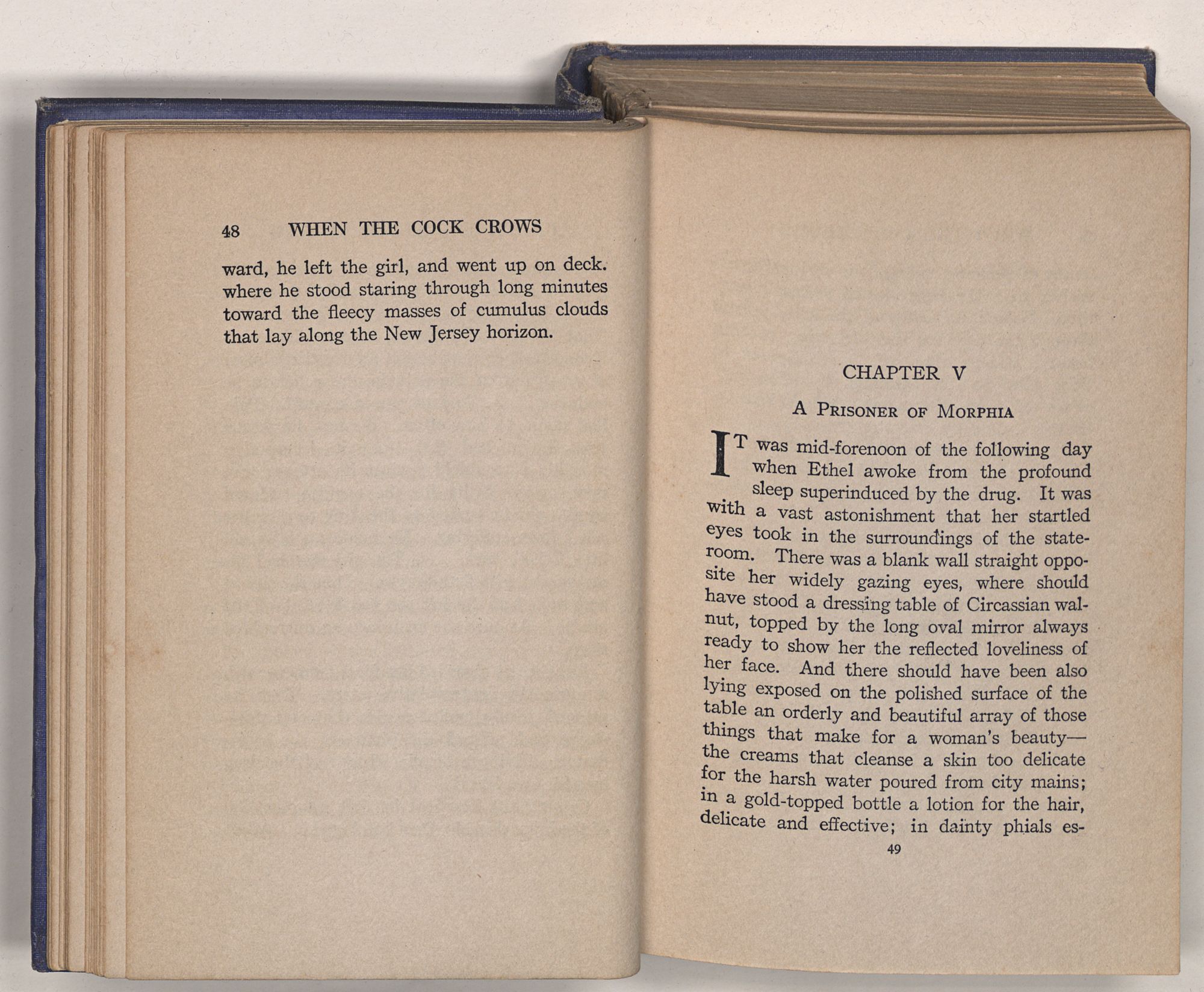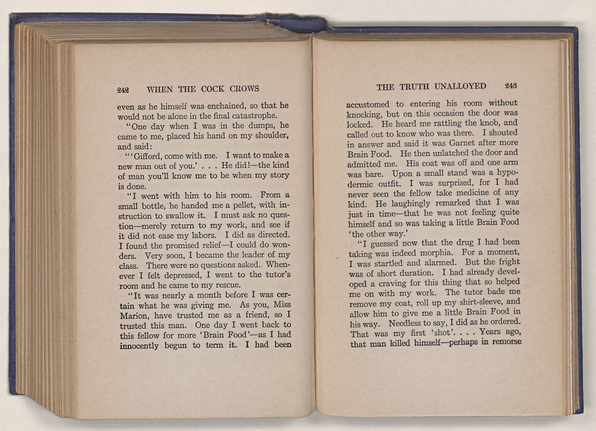 “Ichabod preferred to remain behind, when I went to the physician's house. There I found that Doctor Garnet had in fact been received by the young doctor, who had taken him in and cared for him—proud indeed to do so, since he knew his patient's reputation and held him in veneration for his skill. The younger doctor readily entered into a conspiracy with me when he had heard my story. I had an interview with Doctor Garnet. He accepted my proposition fully. He was glad of a chance to expiate his follies. He swore to me that never again would he take a grain of the drug. At his request, I brought Ichabod to his bedside, and he thanked the old man warmly for all that he had done both for himself and for me, his victim. I offered him funds for the trip abroad, but he told me that he was well supplied with money. He told me also that he had come in a small sail-boat to carry me away from the shack, but had seen on approaching that his services