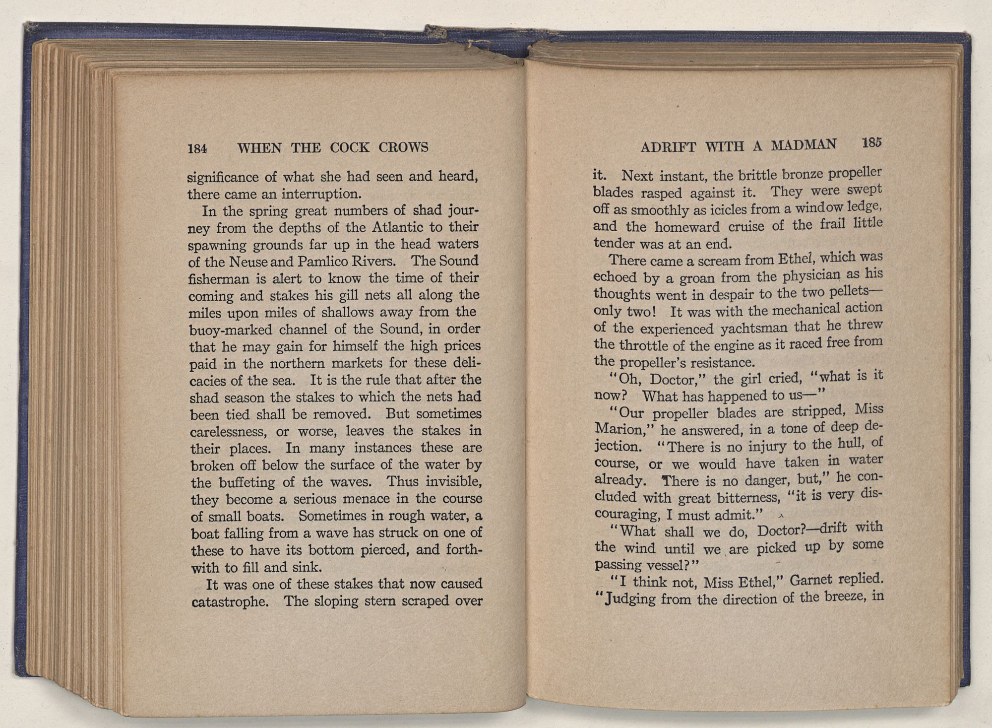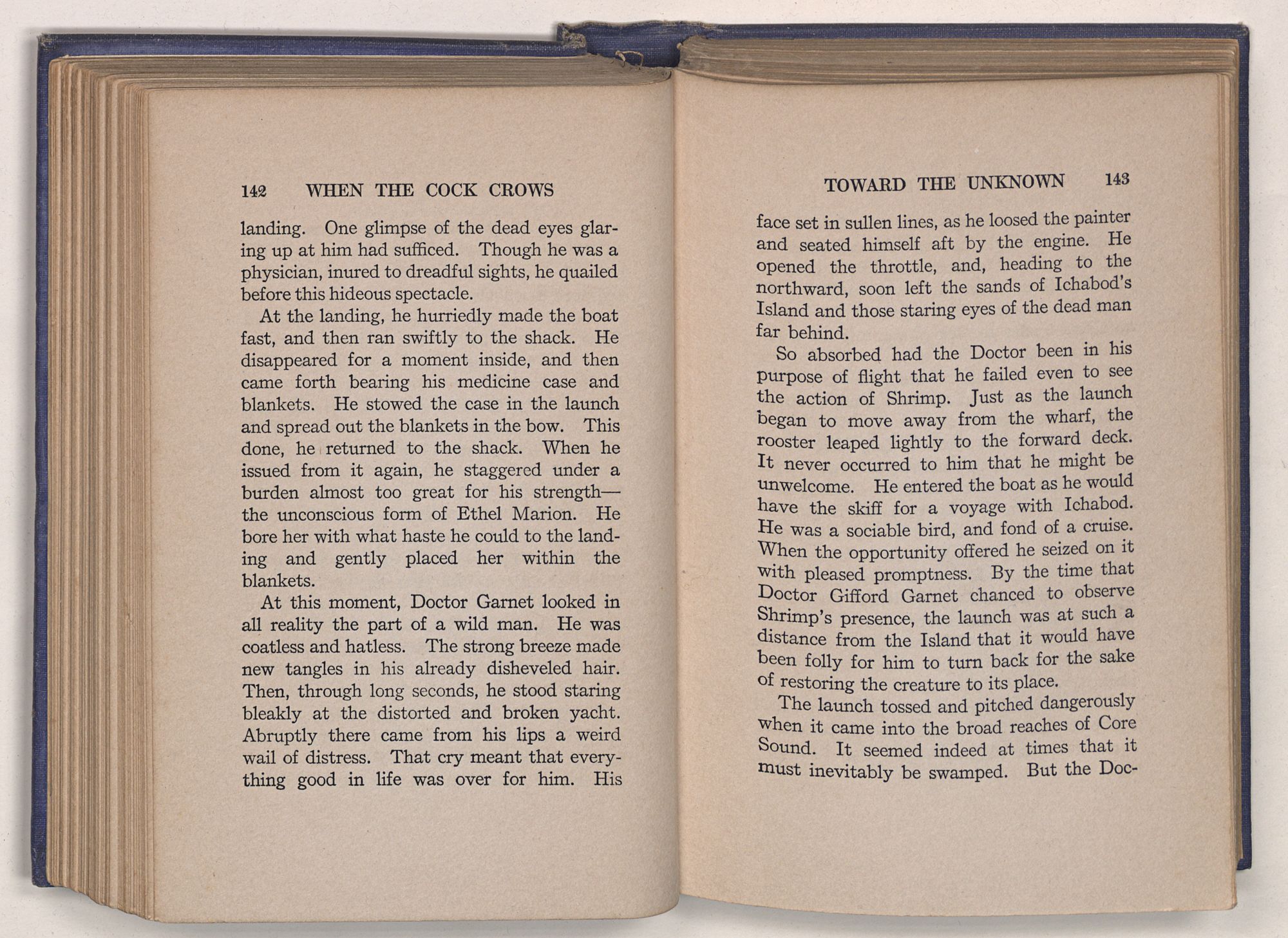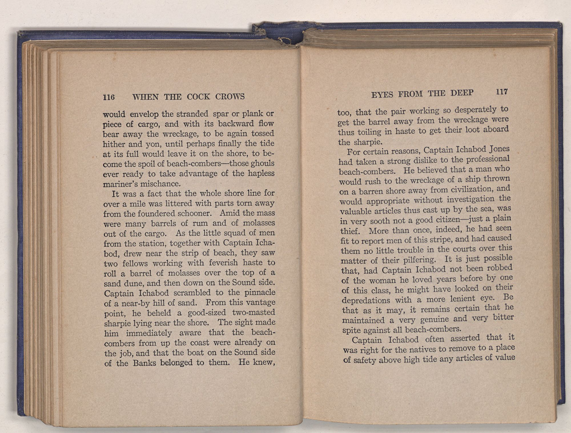 The storm reached such proportions that from his window to seaward it was no longer possible to make out through the rain and spray the broad crêpe-like bands of black and white painted upon the great, towering light-house, at the extreme point of Cape Lookout, a few miles to the eastward. The shack was fairly shaking in the West India hurricane—for such it proved to be. . . . And great was the devastation wrought that night by both wind and wave.