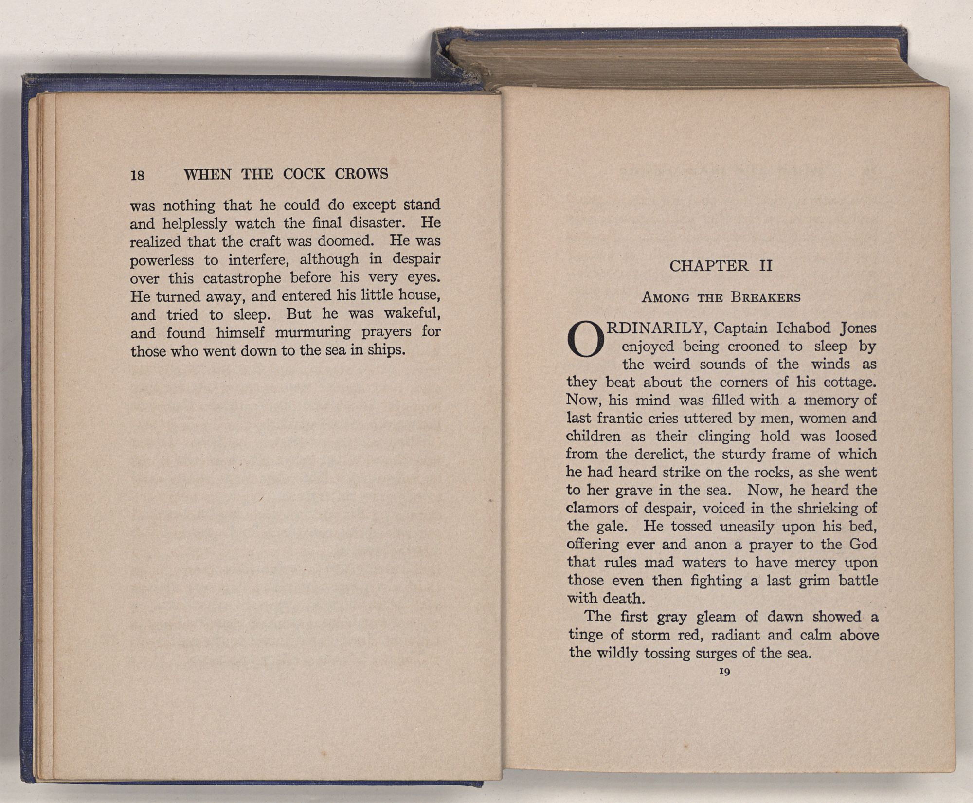 CHAPTER II Among the BreakersORDINARILY, Captain Ichabod Jones enjoyed being crooned to sleep by the weird sounds of the winds as they beat about the corners of his cottage. Now, his mind was filled with a memory of last frantic cries uttered by men, women and children as their clinging hold was loosed from the derelict, the sturdy frame of which he had heard strike on the rocks, as she went to her grave in the sea. Now, he heard the clamors of despair, voiced in the shrieking of the gale. He tossed uneasily upon his bed, offering ever and anon a prayer to the God that rules mad waters to have mercy upon those even then fighting a last grim battle with death.