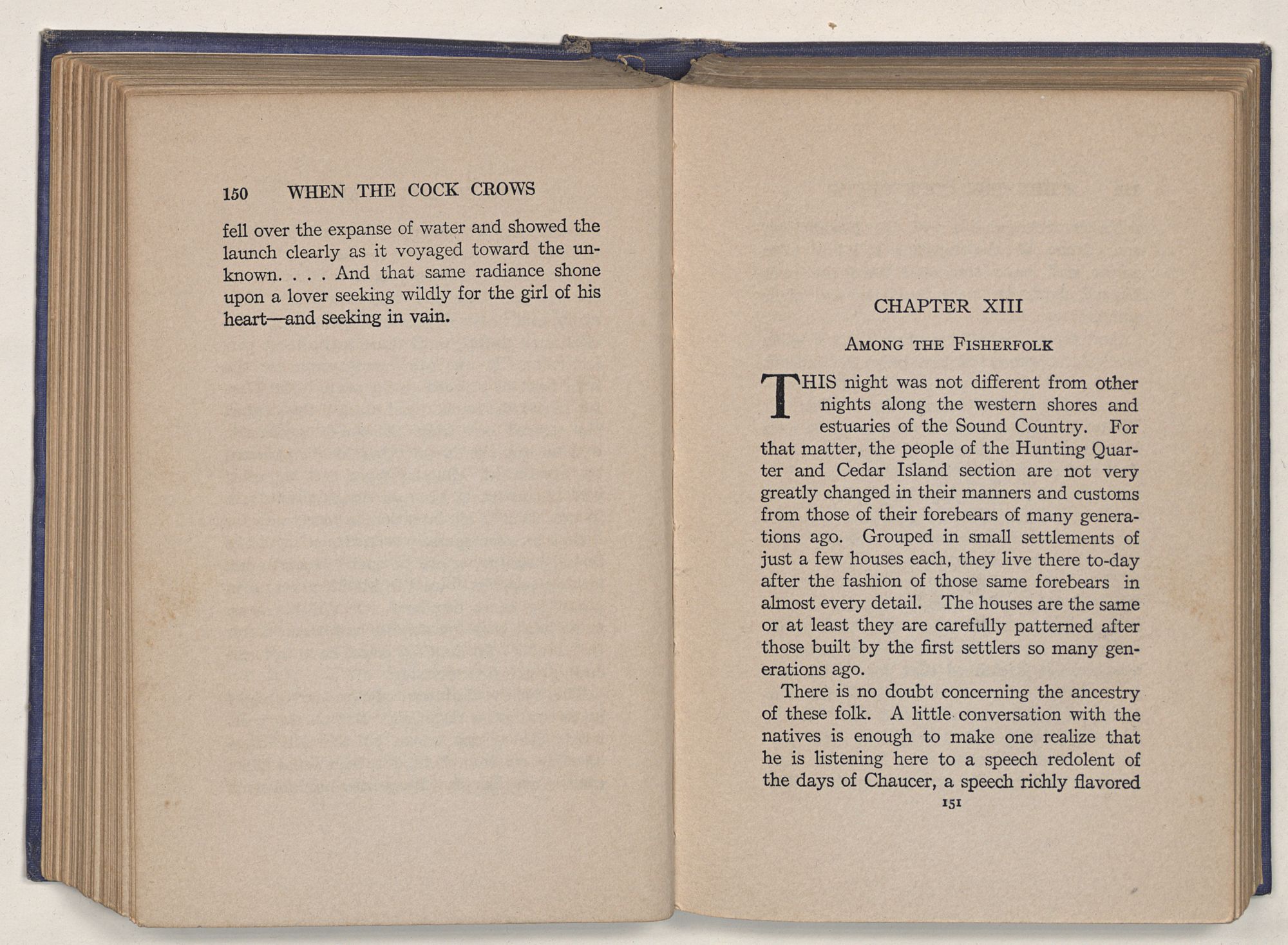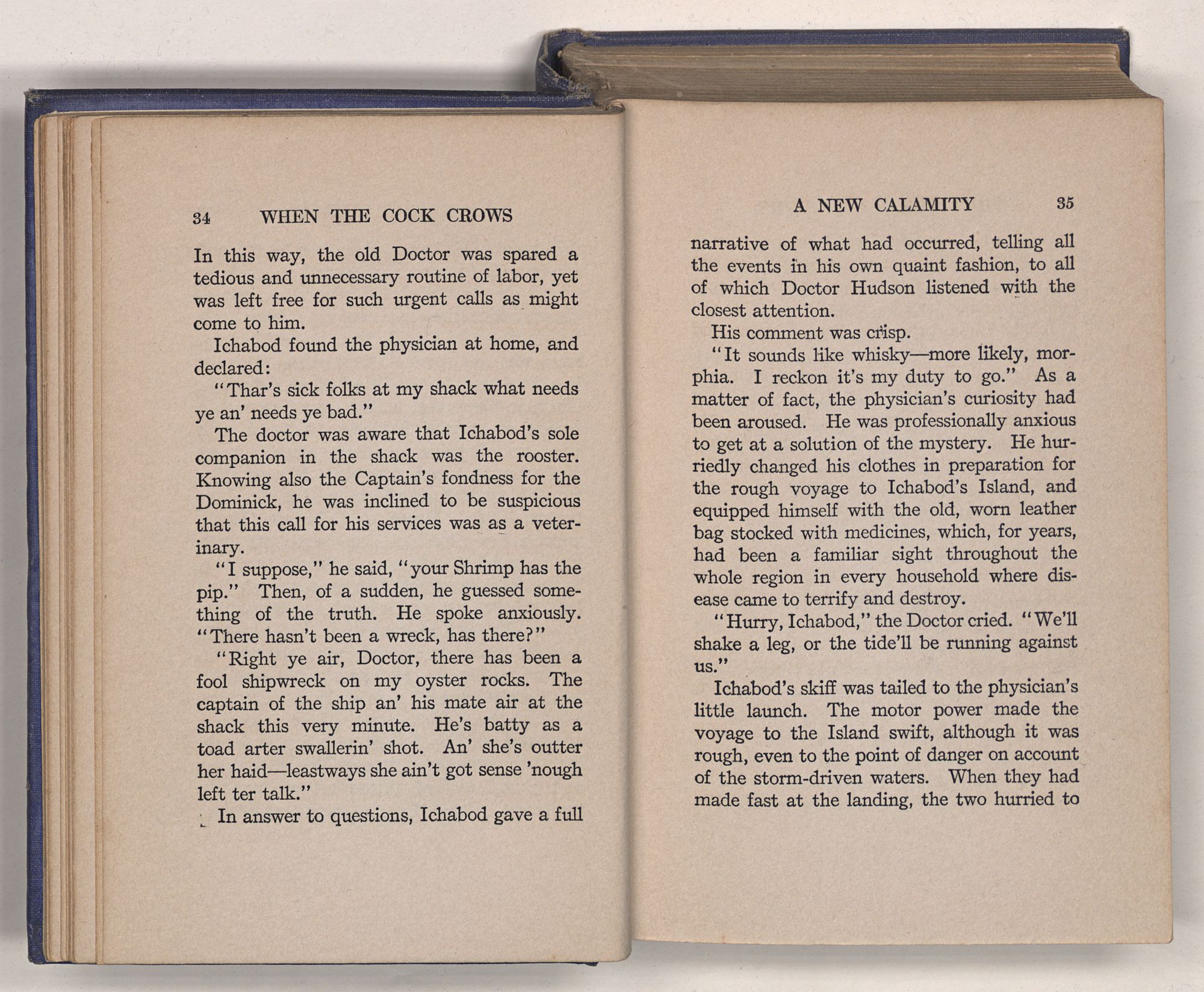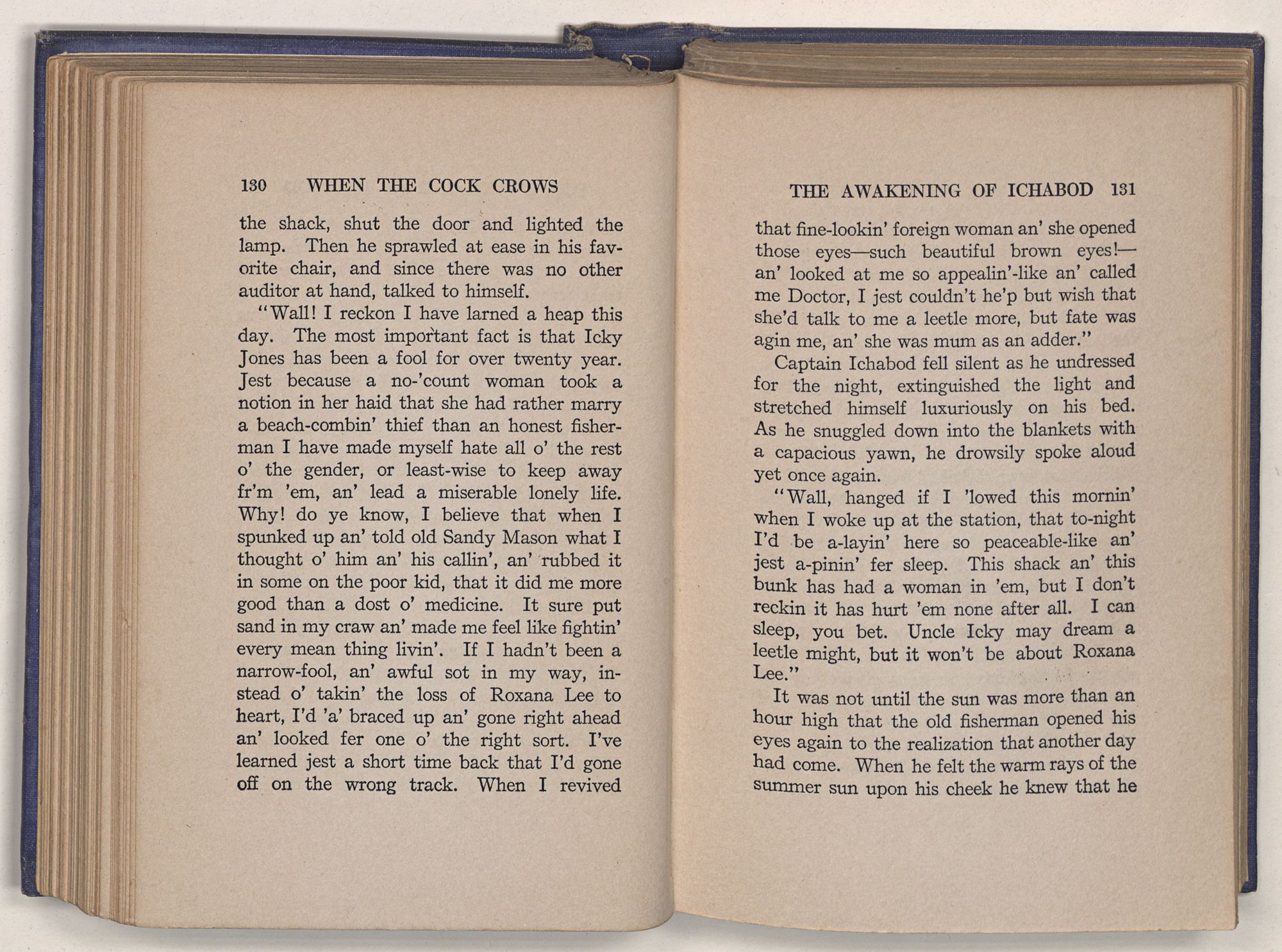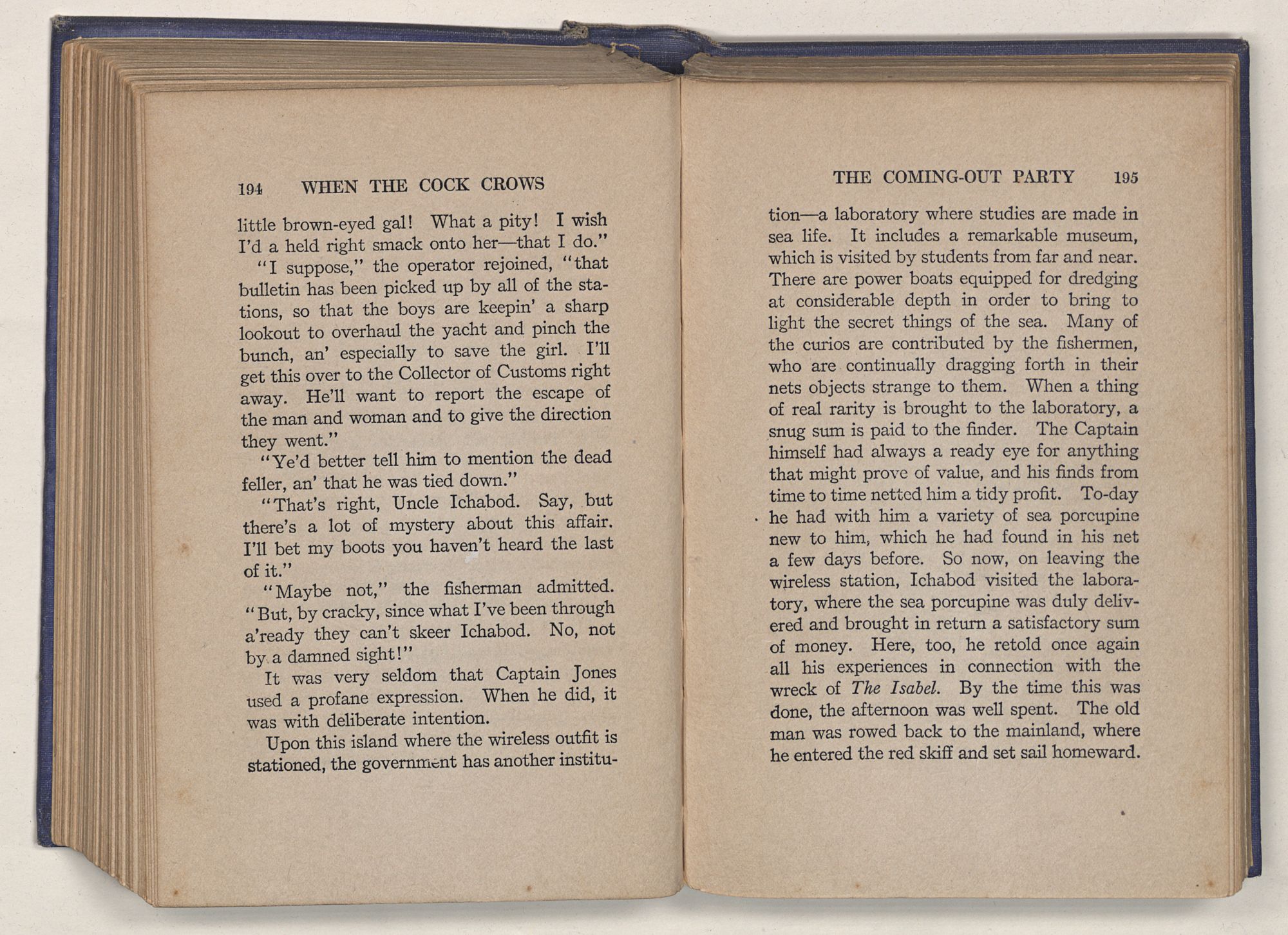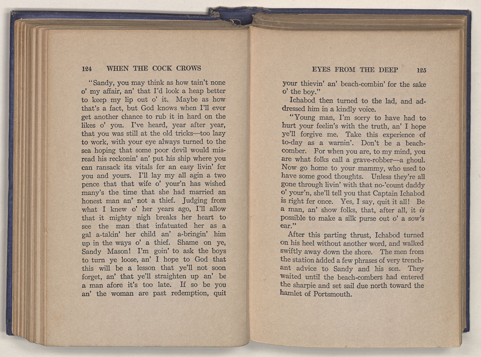 “Well, I'll be blowed,” said the Captain to himself—and the rooster. What fool skipper would come down this shore, even on the inside, in such a kick-up as is goin’ on? He shore must be plumb daffy, or arter an M.D. for a mighty sick human. I'll try an’ hail him as he passes; but the Lord knows he can't pass to the wind'ard o’ this-here Island till she ca'ms a heap, an’ if he tries to go to lee'ard he'll shore as shootin’ take up on the oyster rocks, an’ stove her through to her vitals.”