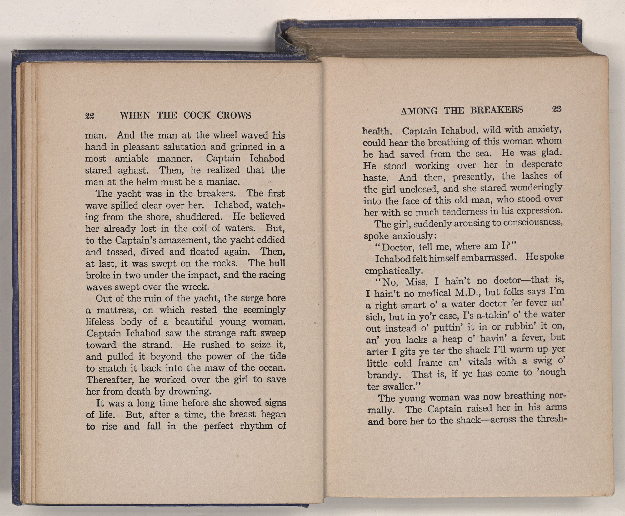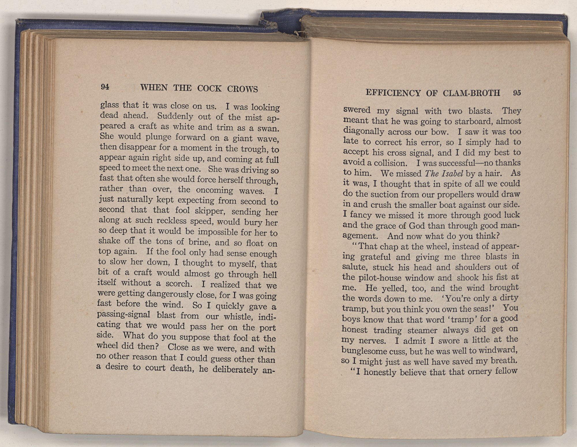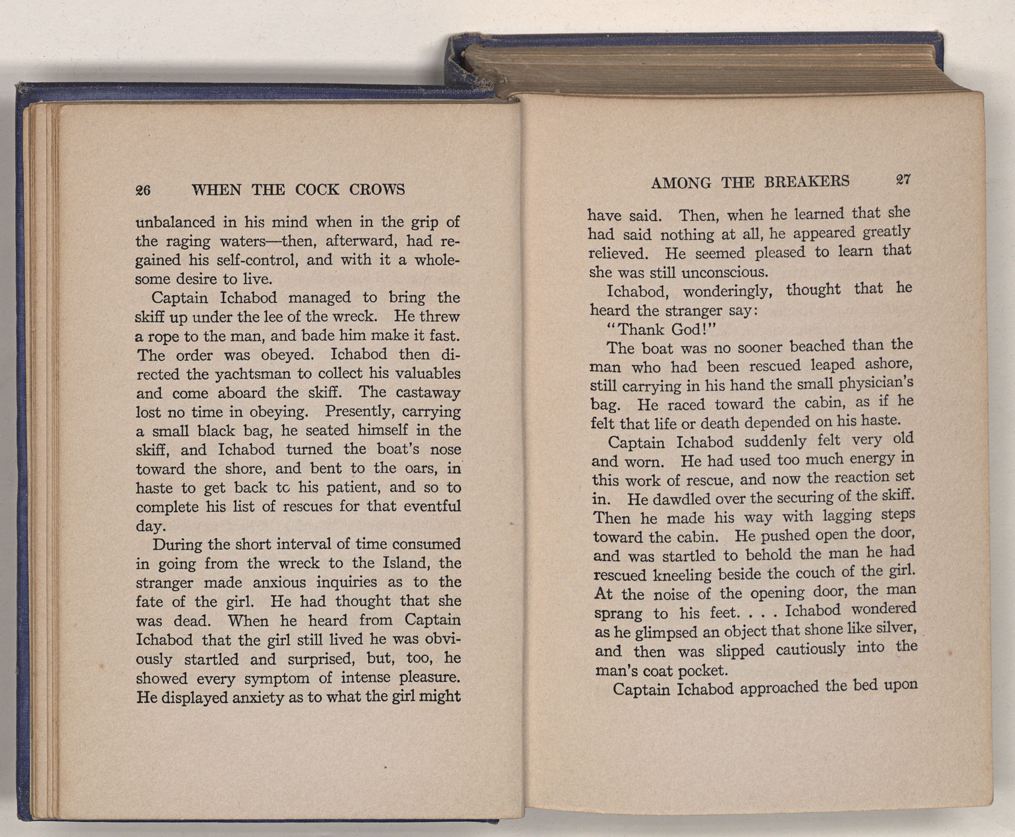 Day broke. In the increased light, the old man cast his lantern aside as useless and swung his arms as a semaphore. The yacht, buffeted by the tumbling seas, swept within hailing distance. Captain Ichabod yelled to the man who was at the tiller to keep her off. In answer, there came three shrill, pitifully wavering blasts of the whistle—a salute that was derisive, the absurd response of a madman.