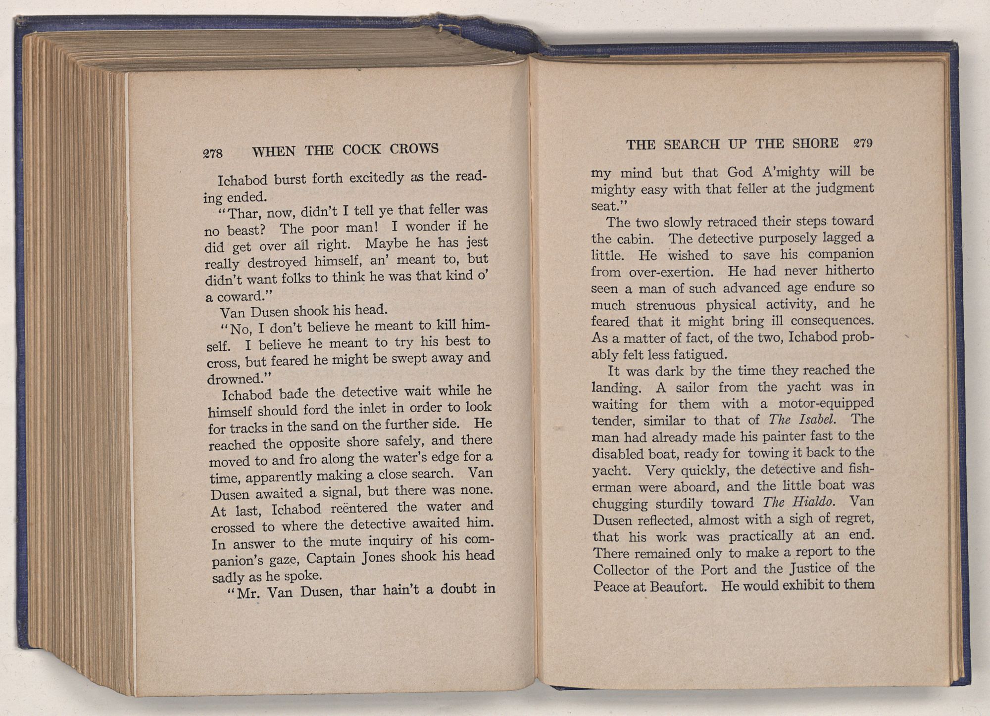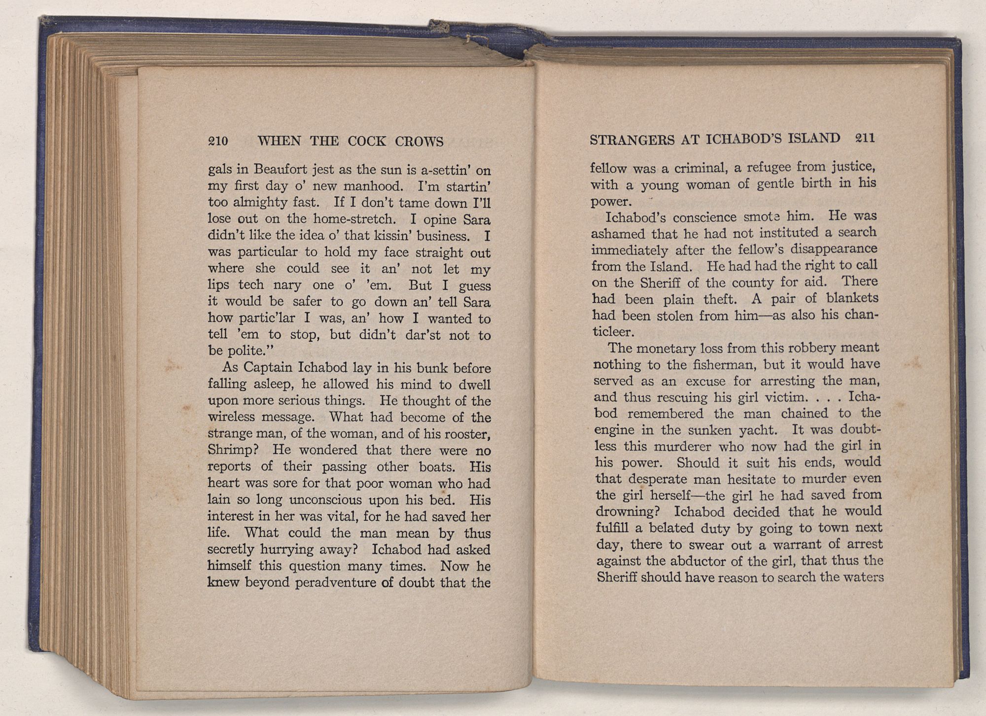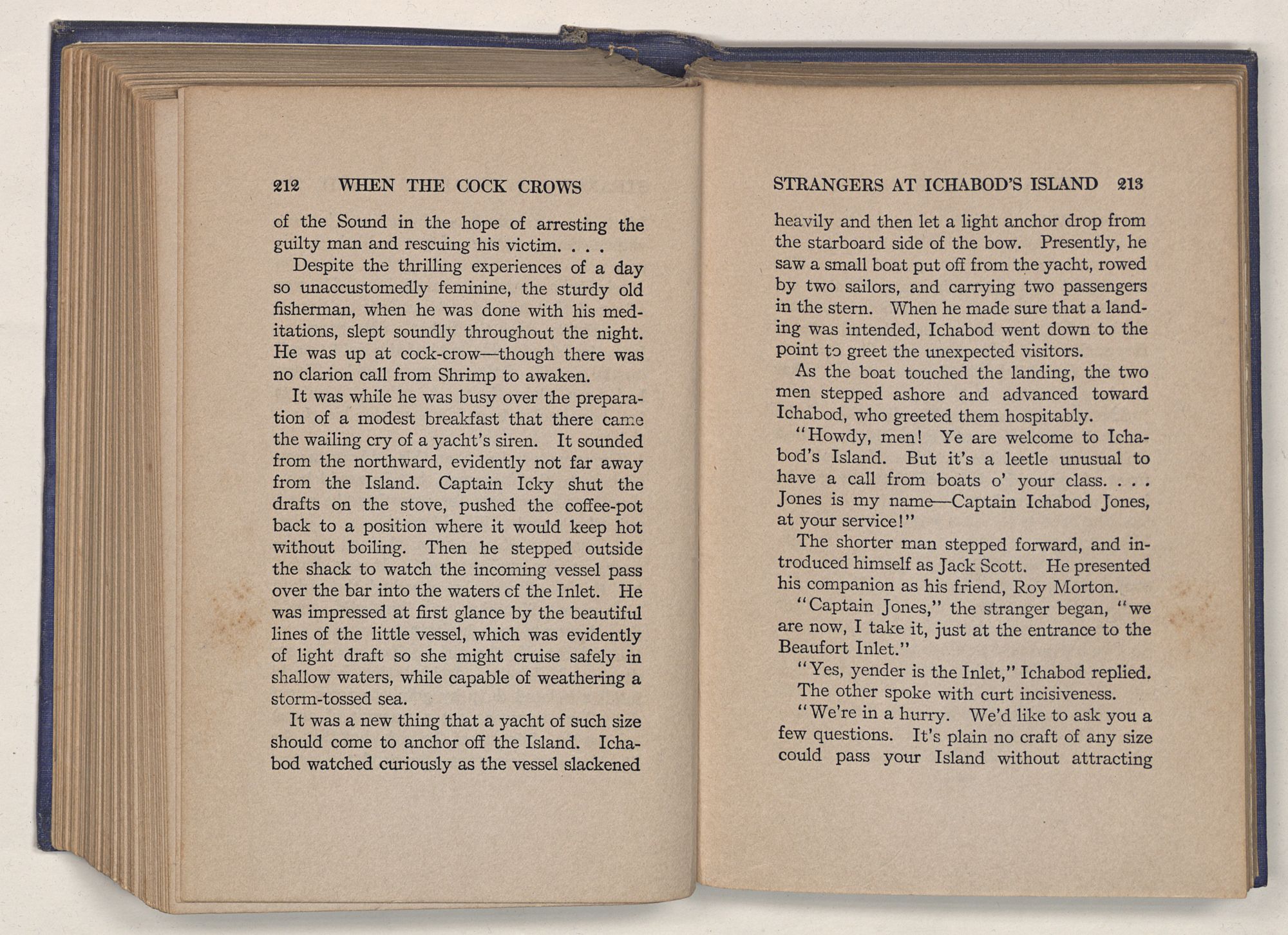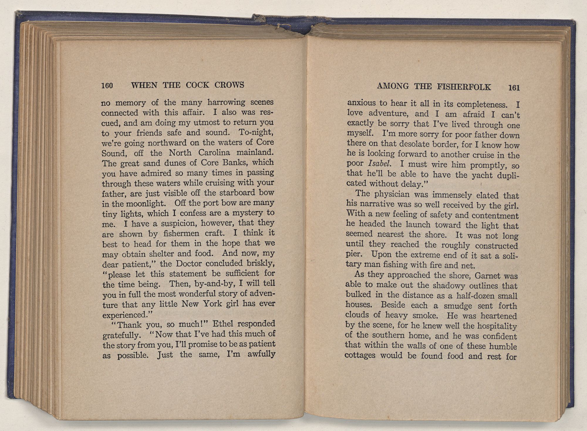 “Yes,” Ichabod retorted; “an’ I owe them a heap, too. It's that girl that started the whole change in my way o’ thinkin’. She caused me to decide to take on a fambly an’ happiness. I don't much like what ye says ’bout that-thar five thousand, though. Ye see, we folks down this way don't go round savin’ lives fer pay—that is ’ceptin’ the coastguard boys. What we does is fer the feelin's that possess us. Why, do ye know, if thar's airy man in Cartaret that I didn't think'd do what I did, an’ more, in this scrape, I'd head a passel o’ men to run him clean into the swamps fer keeps!”