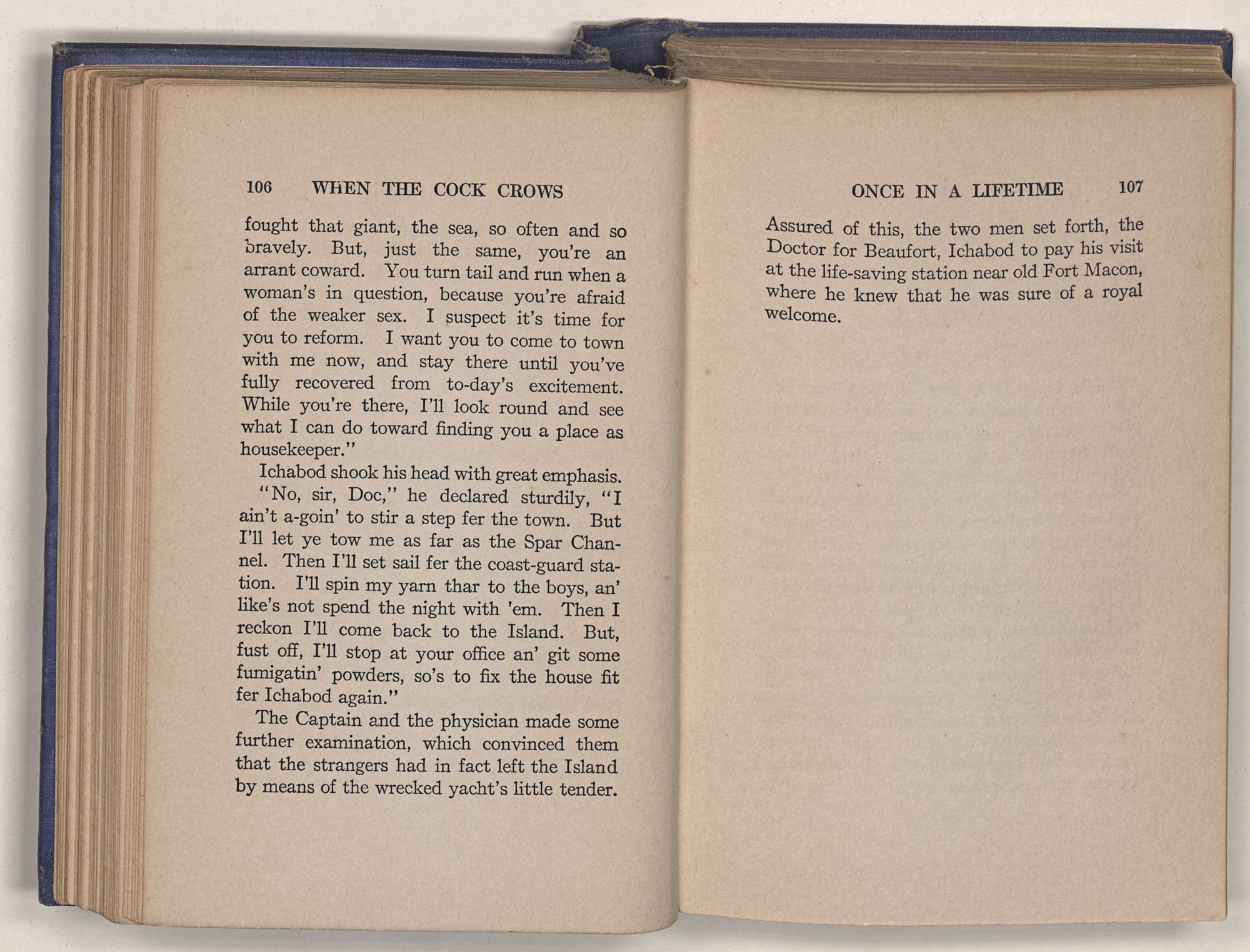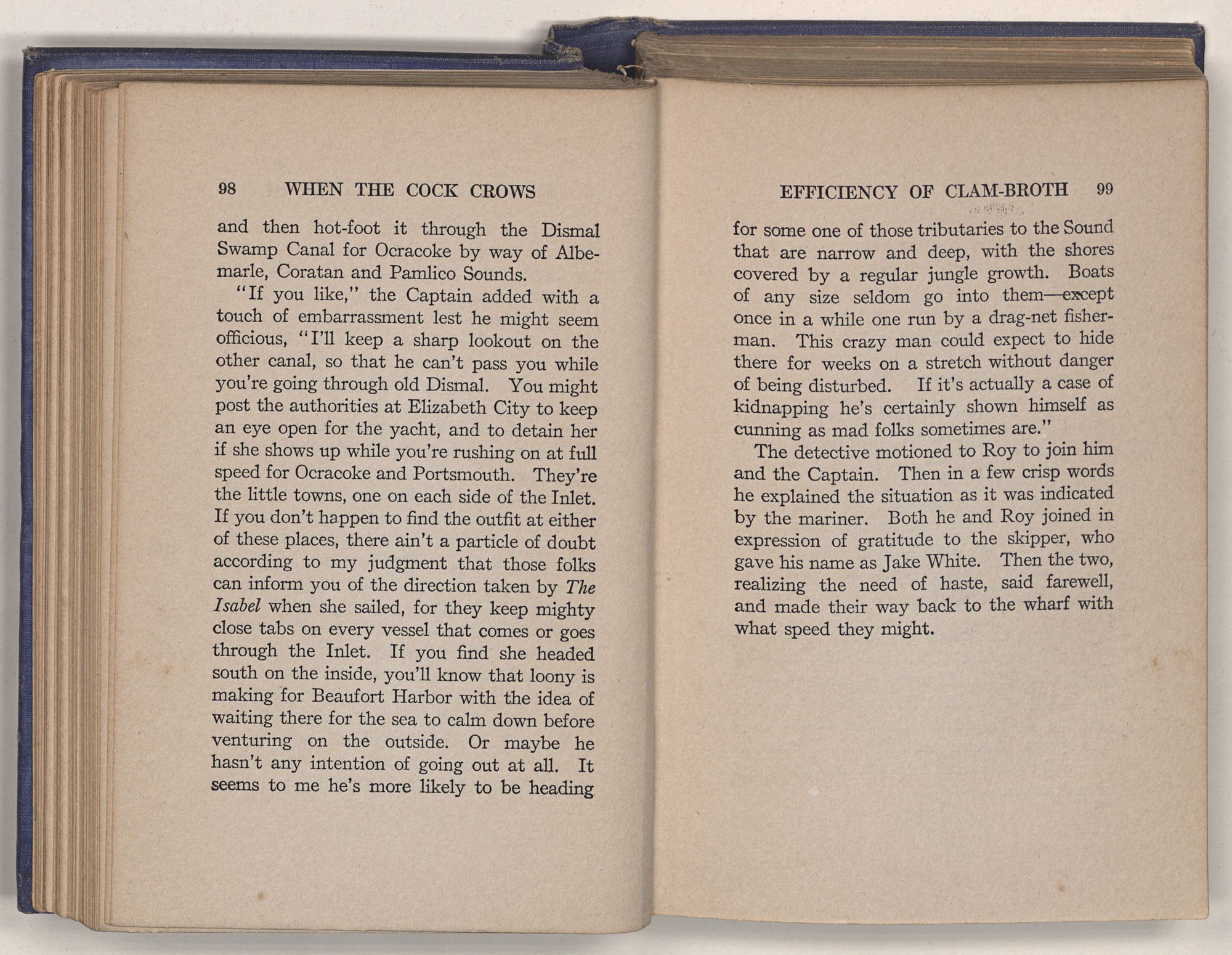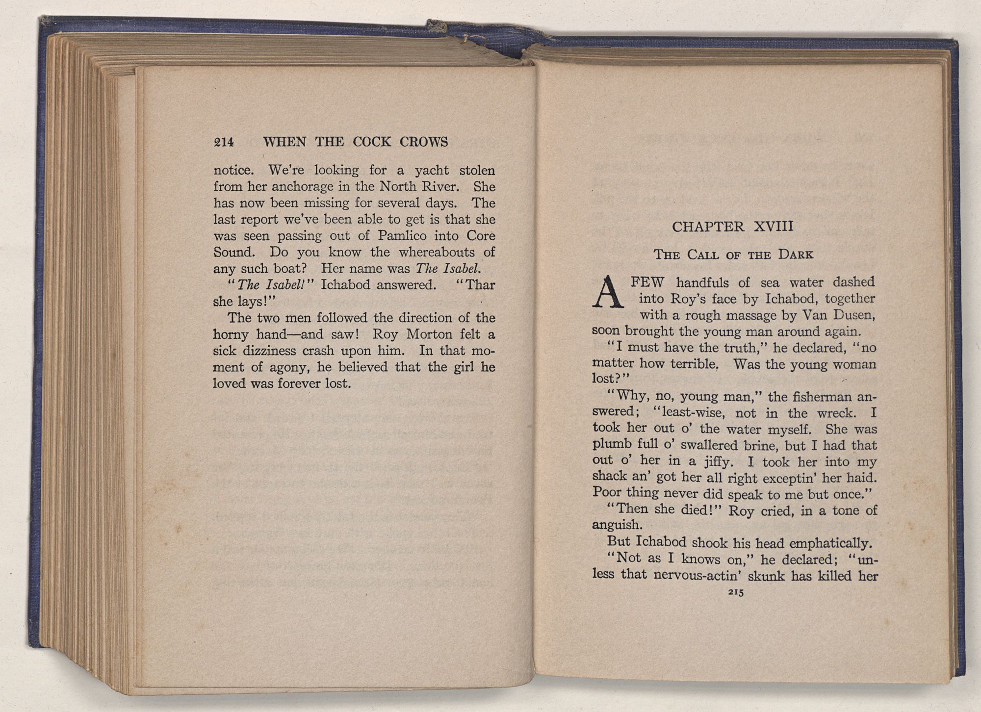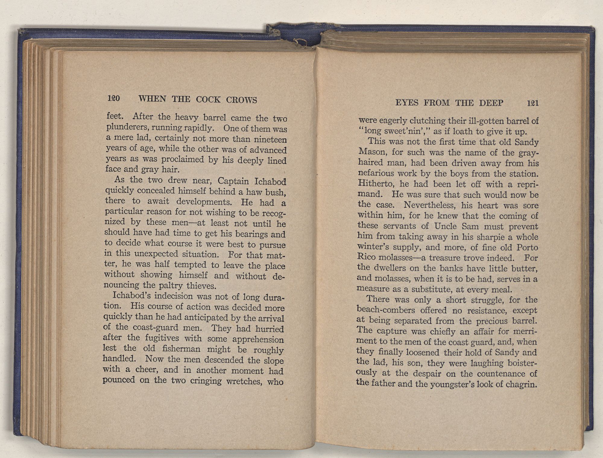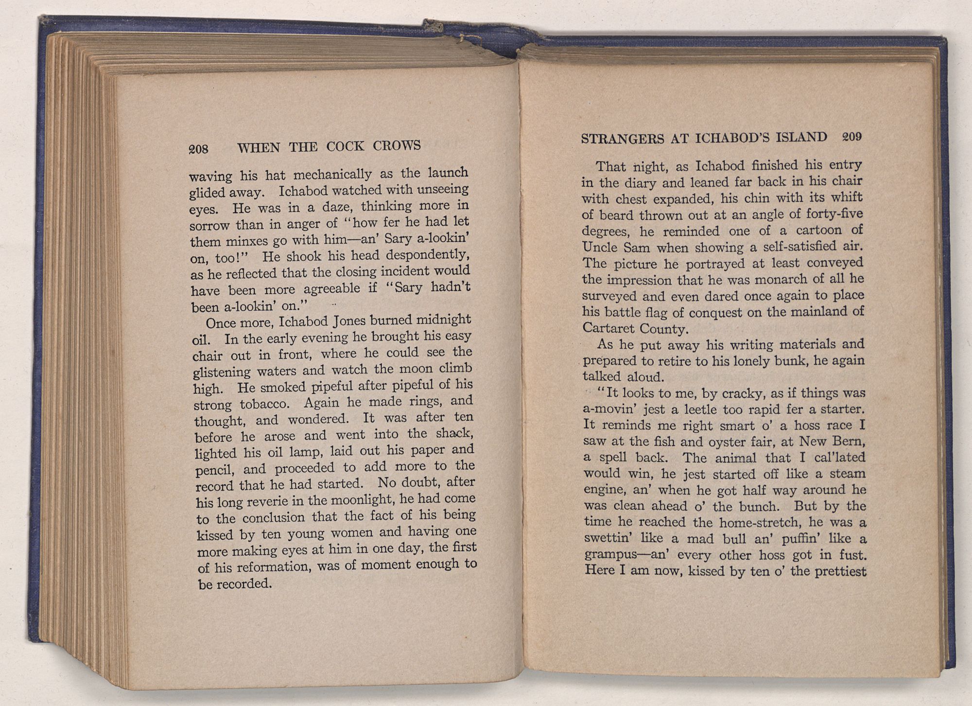 “Yes,” Ichabod retorted; “an’ I owe them a heap, too. It's that girl that started the whole change in my way o’ thinkin’. She caused me to decide to take on a fambly an’ happiness. I don't much like what ye says ’bout that-thar five thousand, though. Ye see, we folks down this way don't go round savin’ lives fer pay—that is ’ceptin’ the coastguard boys. What we does is fer the feelin's that possess us. Why, do ye know, if thar's airy man in Cartaret that I didn't think'd do what I did, an’ more, in this scrape, I'd head a passel o’ men to run him clean into the swamps fer keeps!”