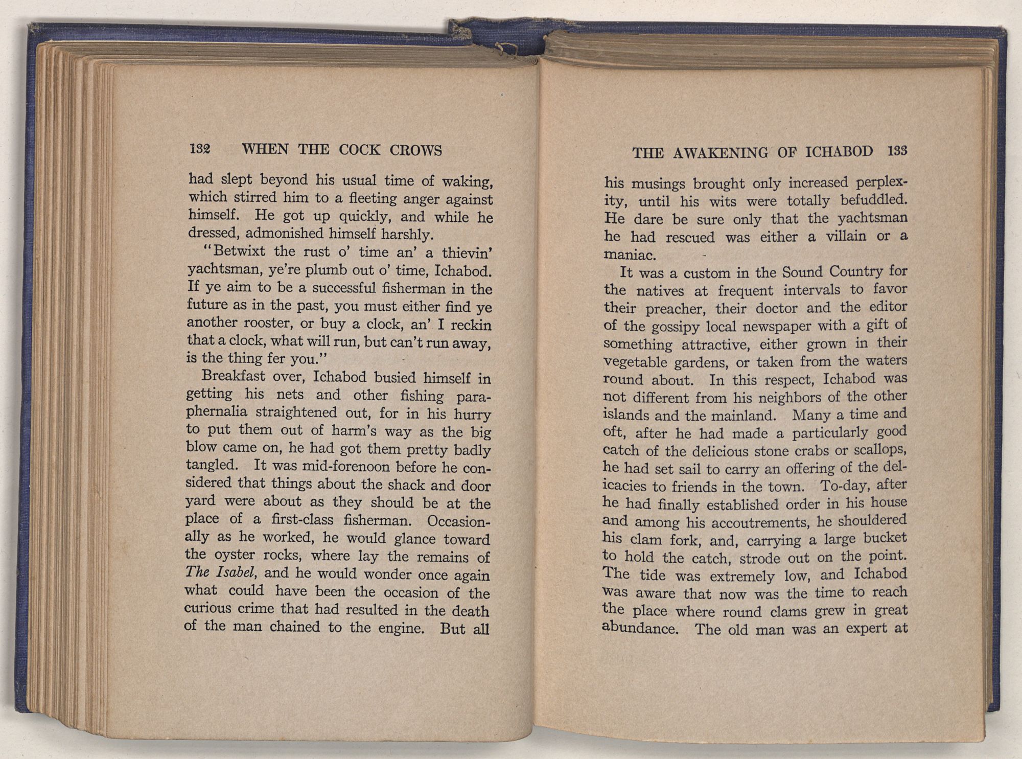 gone upon the beach in a booming southeaster. The Captain had proved a life-saver indeed to the proud old bird. Ichabod, when he first spied Shrimp, as he afterward named this bit of flotsam, was wildly anxious to save the creature so it might have a life on shore suited to its nature and desires. Then it flashed upon him that his antiquated and wellworn alarm clock had ceased to work. It occurred to him that the rooster's crowing would suffice to advise him of the hour, and that there would be no need to buy another clock.