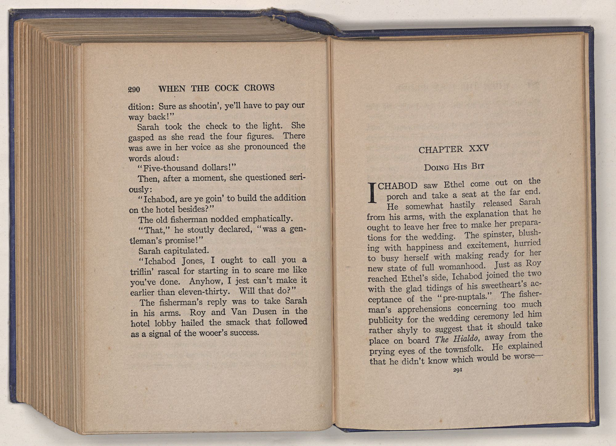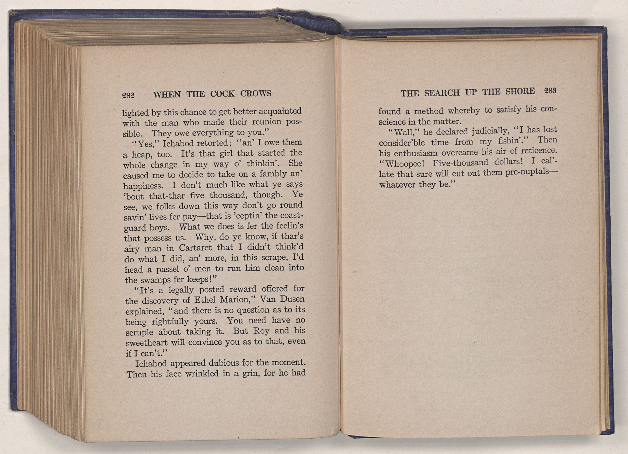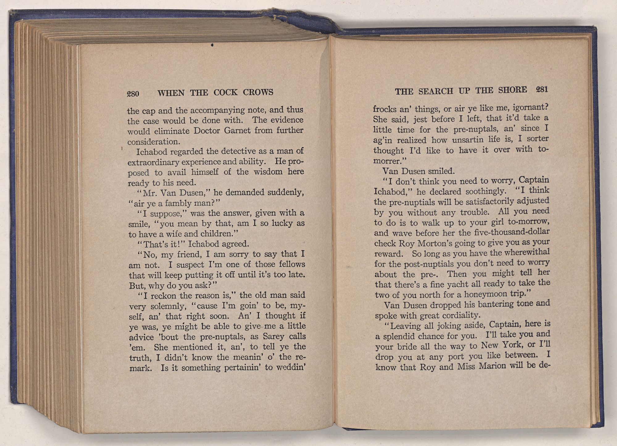 Van Dusen further explained that the only thing now wanting was the consent of the bride herself to the plans. He then spoke again of the reward to be paid to Ichabod. Roy declared that this should be made out immediately. Once again, Captain Icky protested