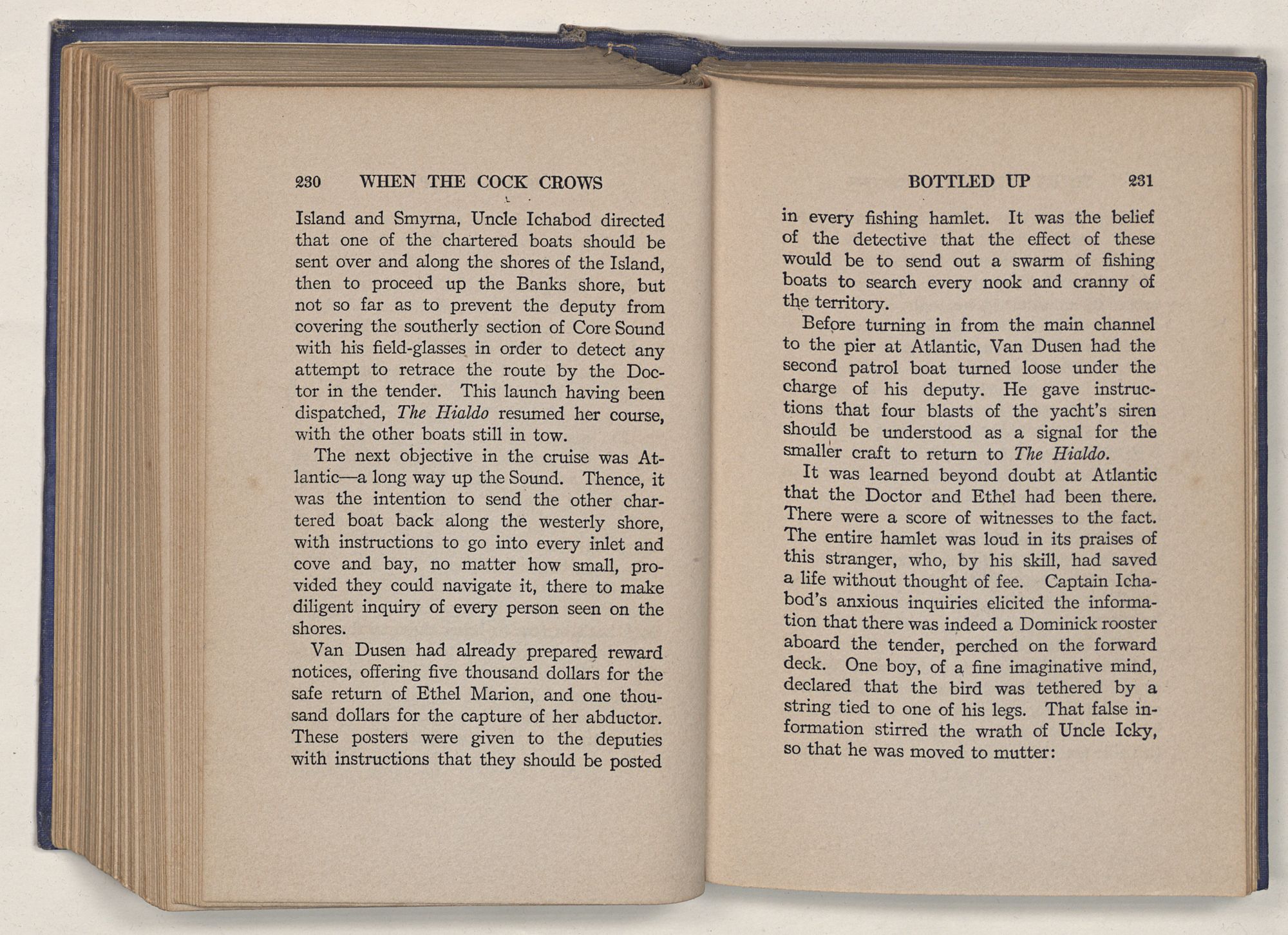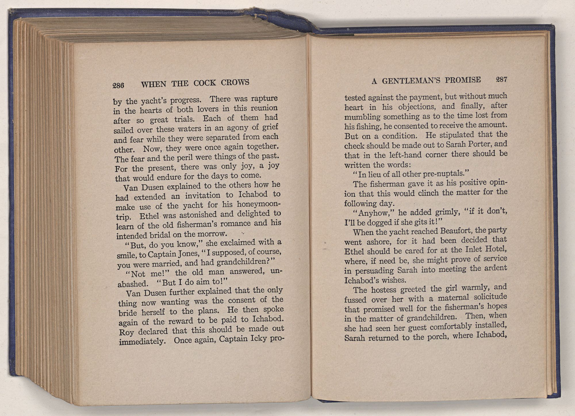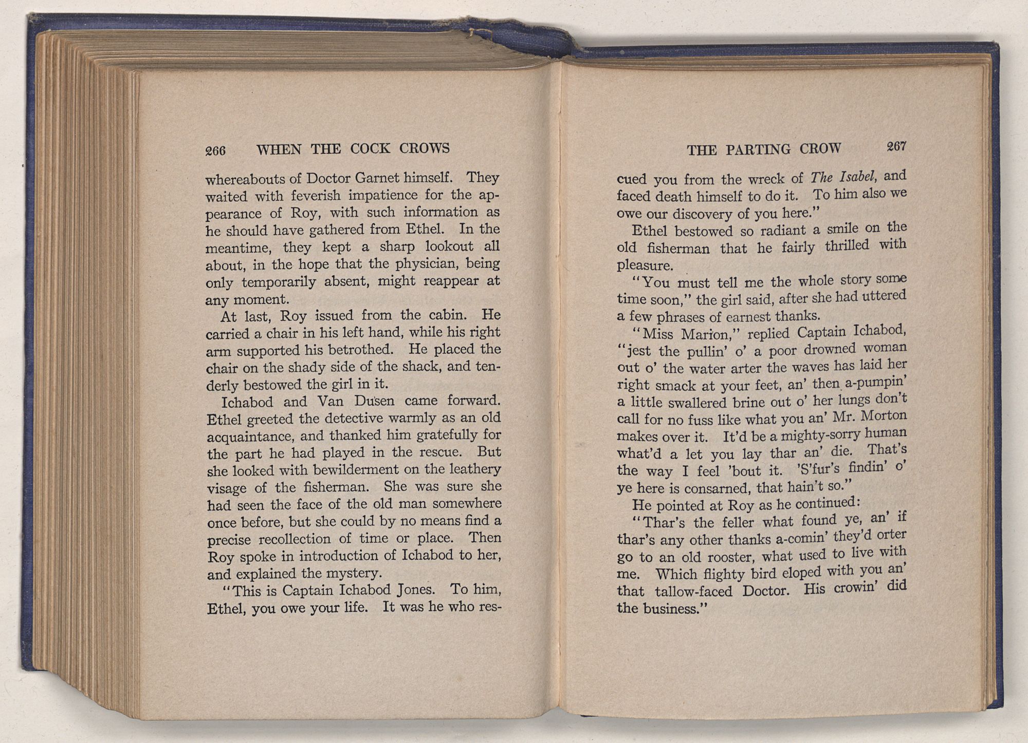 Van Dusen further explained that the only thing now wanting was the consent of the bride herself to the plans. He then spoke again of the reward to be paid to Ichabod. Roy declared that this should be made out immediately. Once again, Captain Icky protested