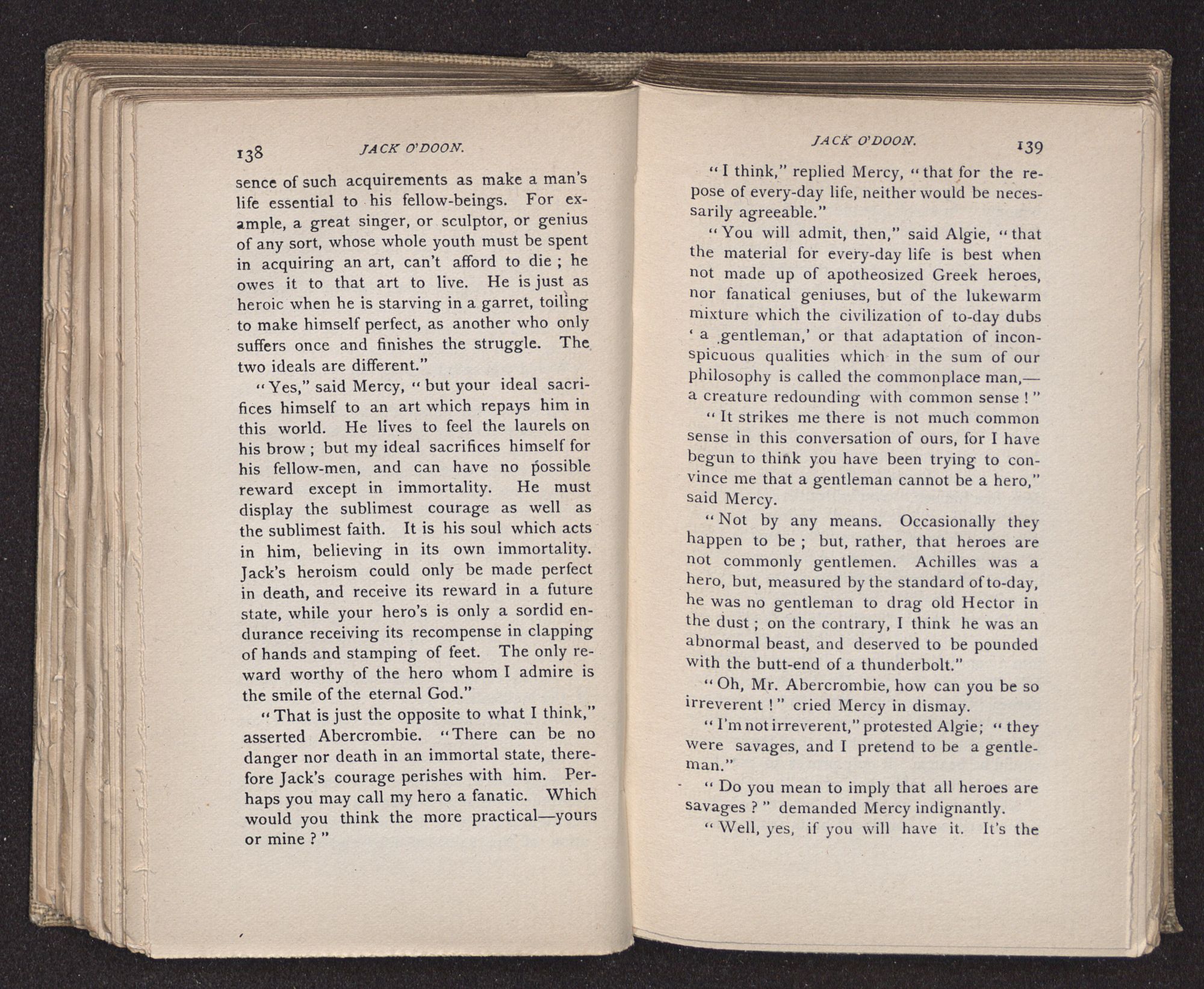 She recalled the argument with Algie about the immortality of Jack's courage; and the bitter question came to her: “Has Algie one quality as noble as Jack's love for me, or his devotion to his fellow-men?”