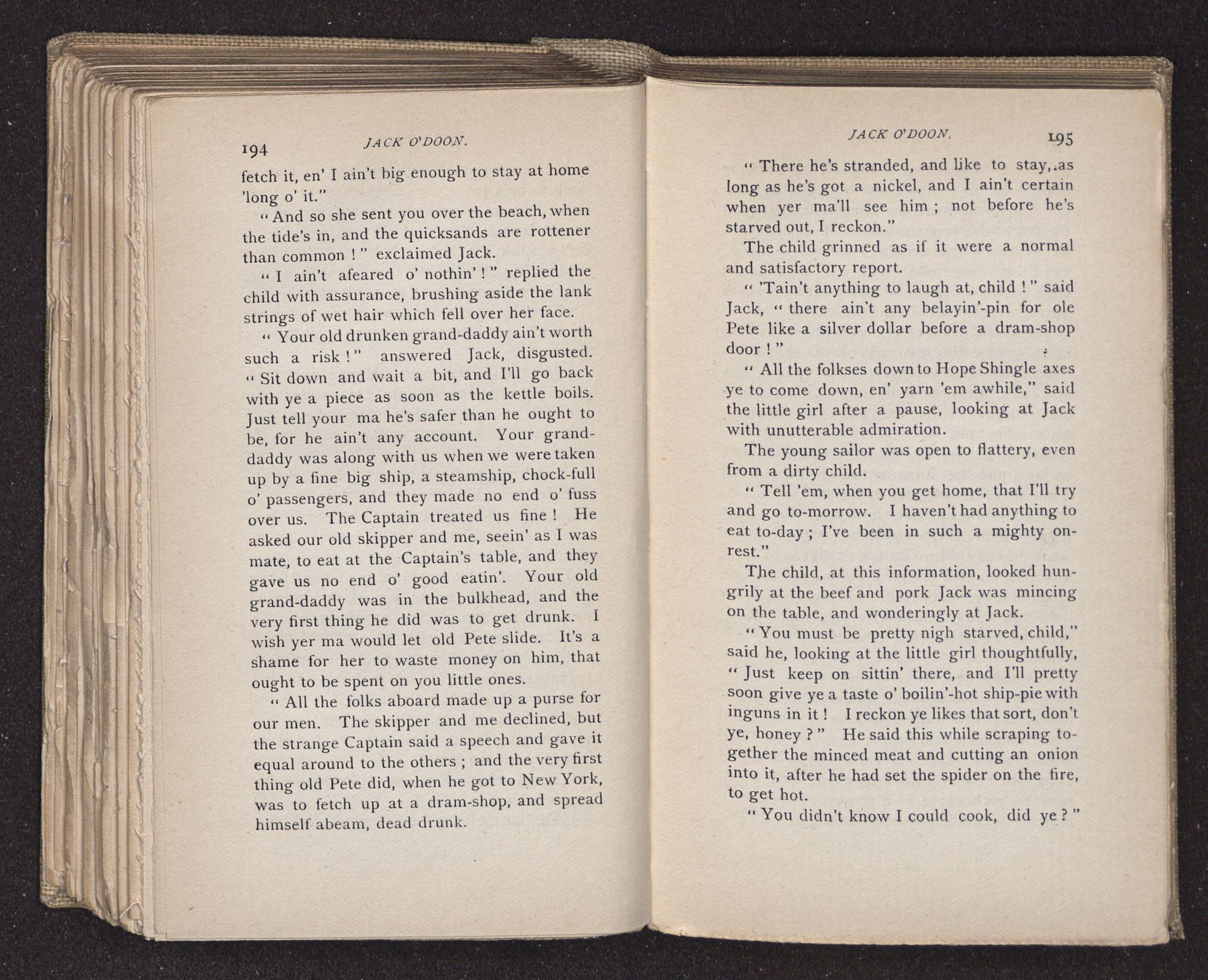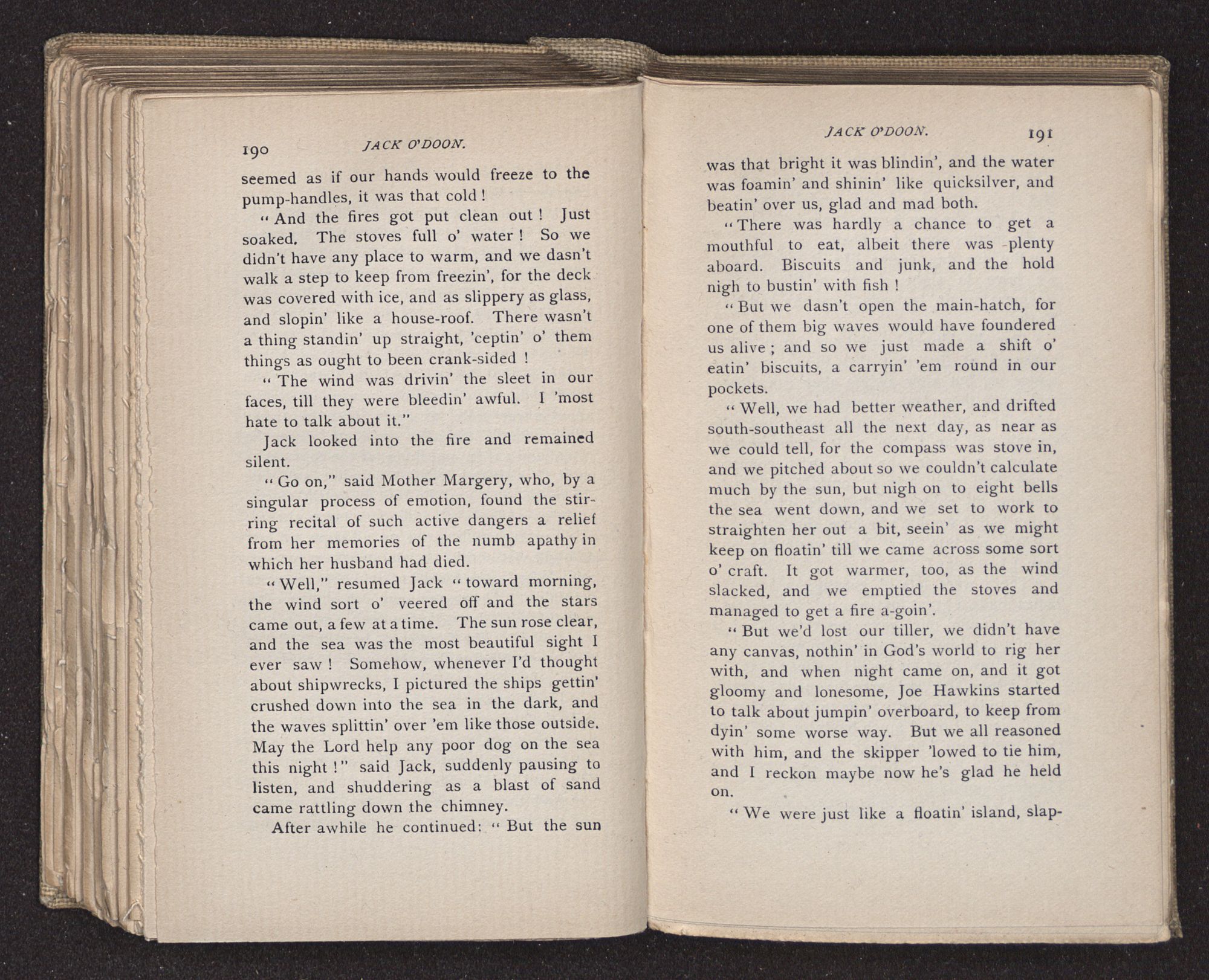 “Yes, and be a-starvin’, and a-freezin’ to death, off'n the shoals o'Cape Hatteras to-night. No. Better dead, say I, and over with, than sech a sufferin’, livin’, an’ dyin’ all at once! Oh, I knows! I've know'd it, and I'd ha’ blessed the good Lord to ha’ deadened en a-drownded me with a big stunnin’ header at once.”