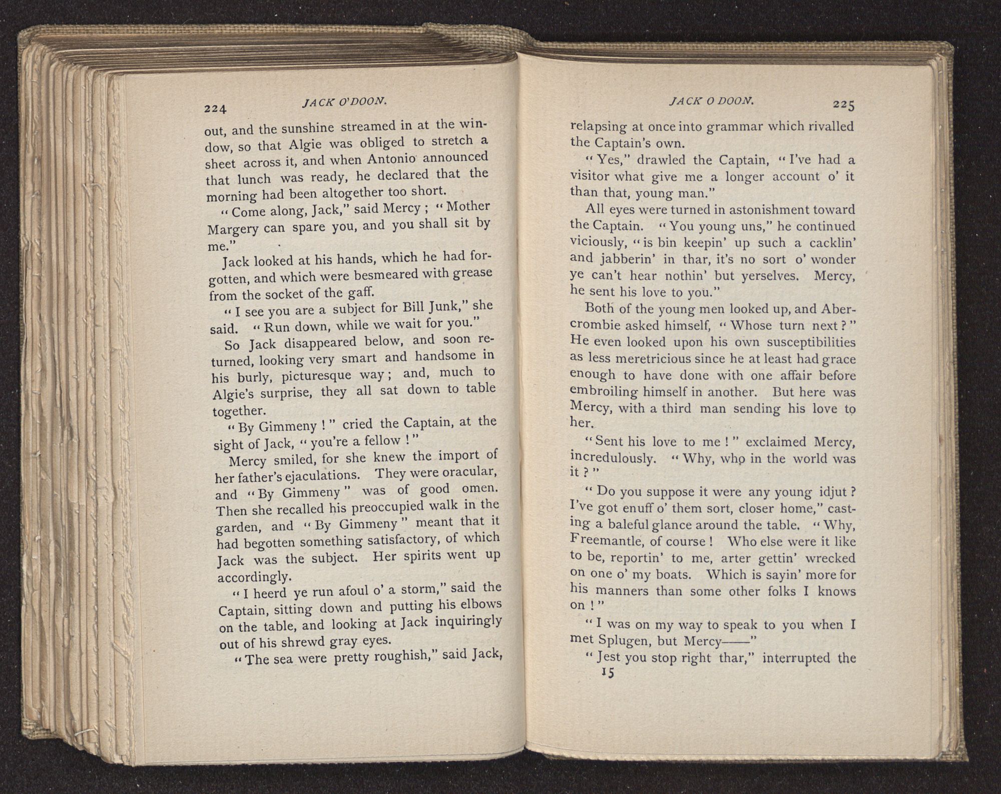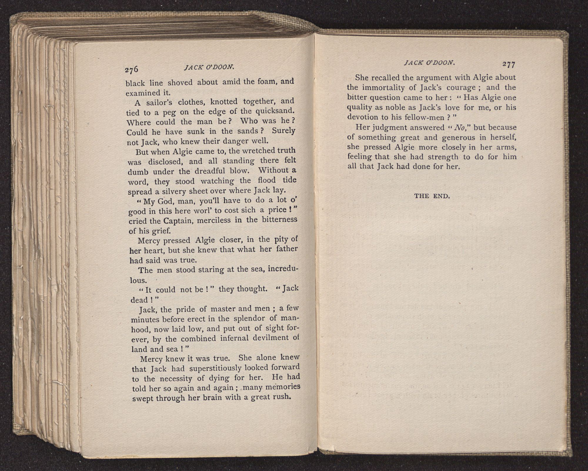 “I don't know,” replied the girl, putting a lump of sugar into her coffee, “but it seems to me there can't be much worse hereafter than tossing about on a pitch-black sea, starving and freezing and dying, and I wish Jack had never been born!”