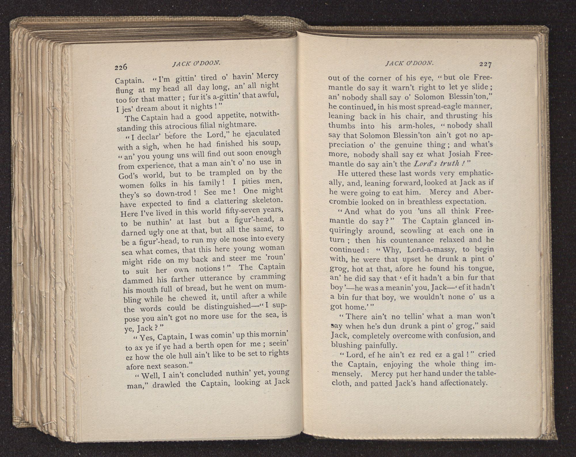 “My God, man, you'll have to do a lot o’ good in this here worl’ to cost sich a price!” cried the Captain, merciless in the bitterness of his grief.