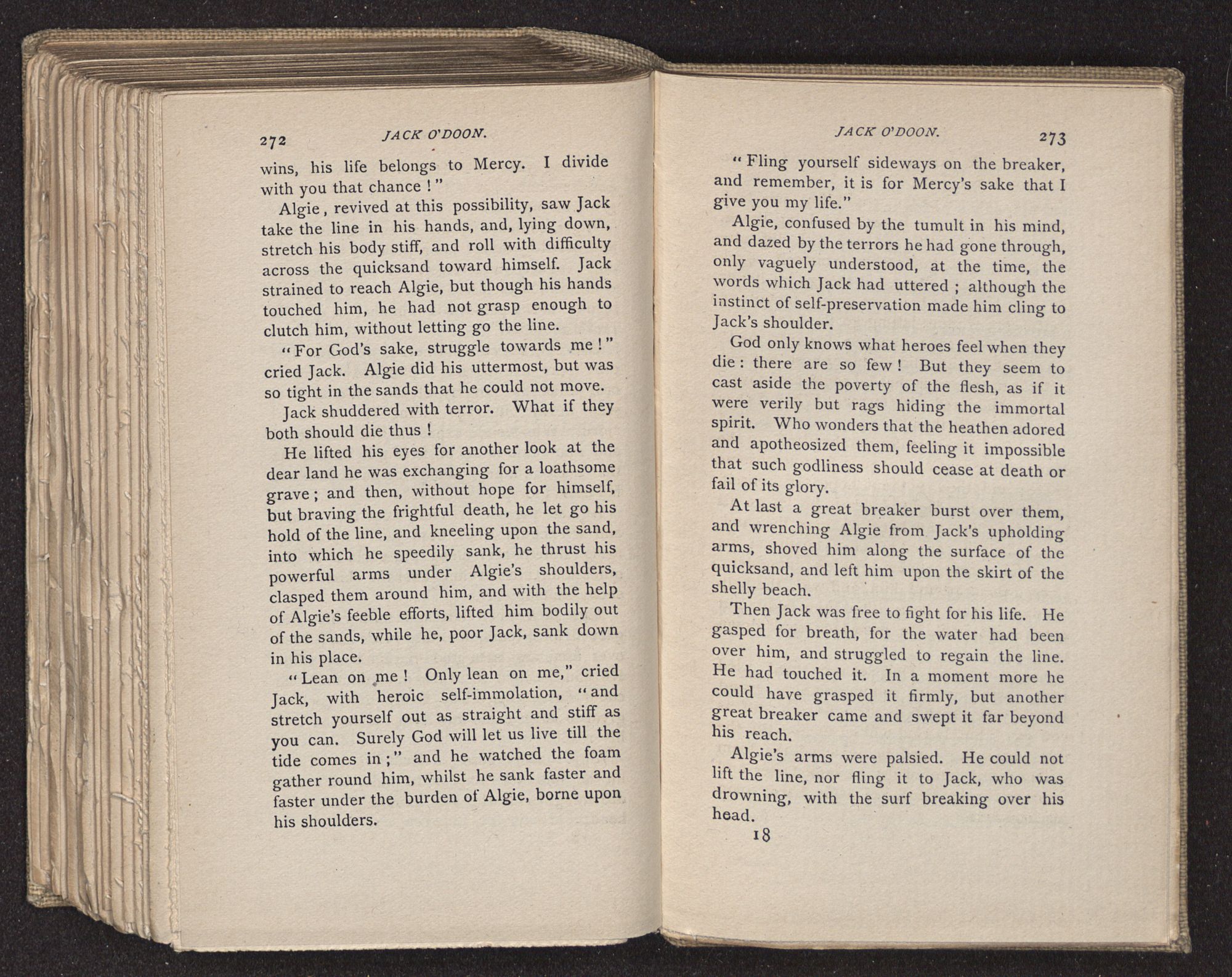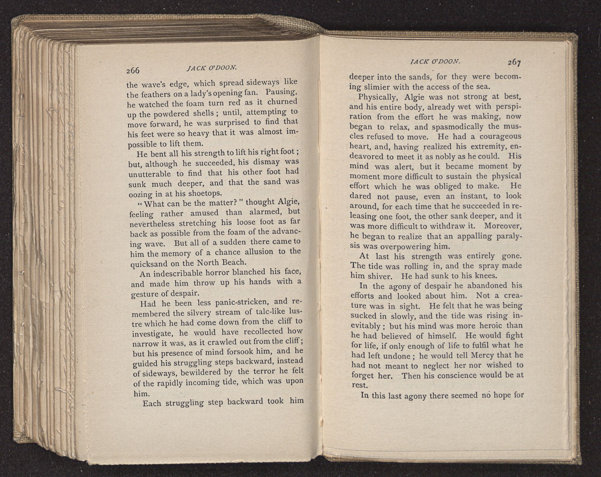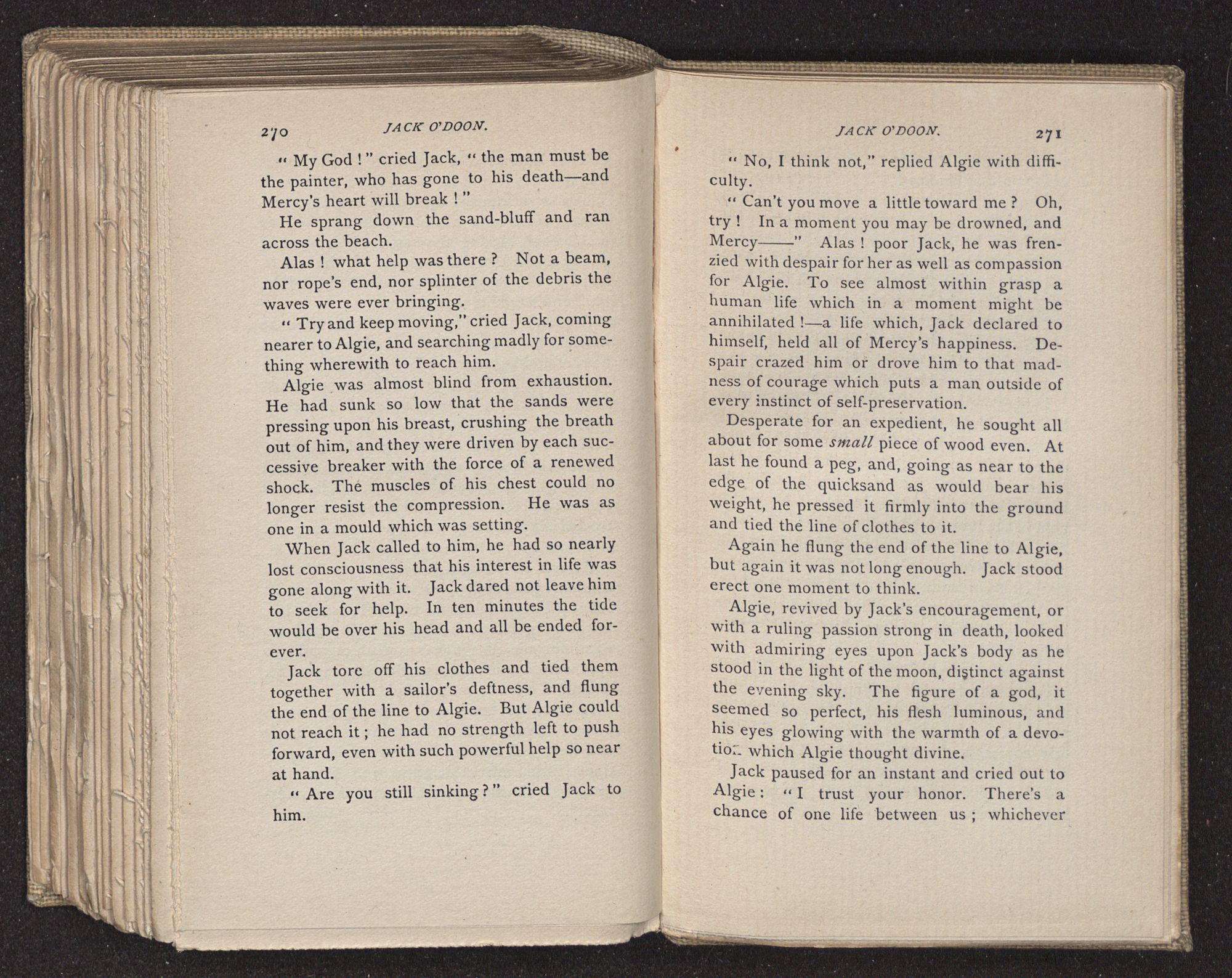But when Algie came to, the wretched truth was disclosed, and all standing there felt dumb under the dreadful blow. Without a word, they stood watching the flood tide spread a silvery sheet over where Jack lay.