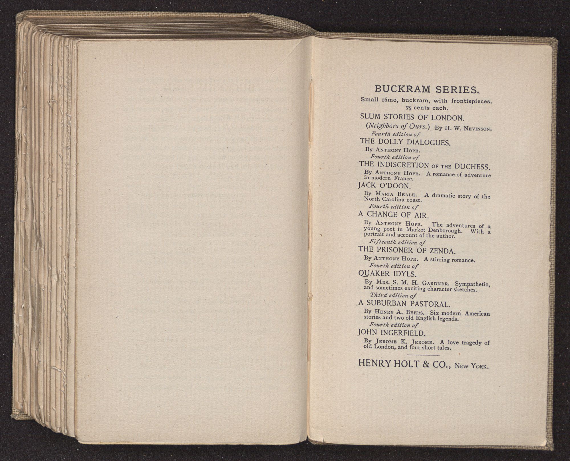 By Anthony Hope. Narrow 16mo, buckram, with frontispiece, 75 cents.