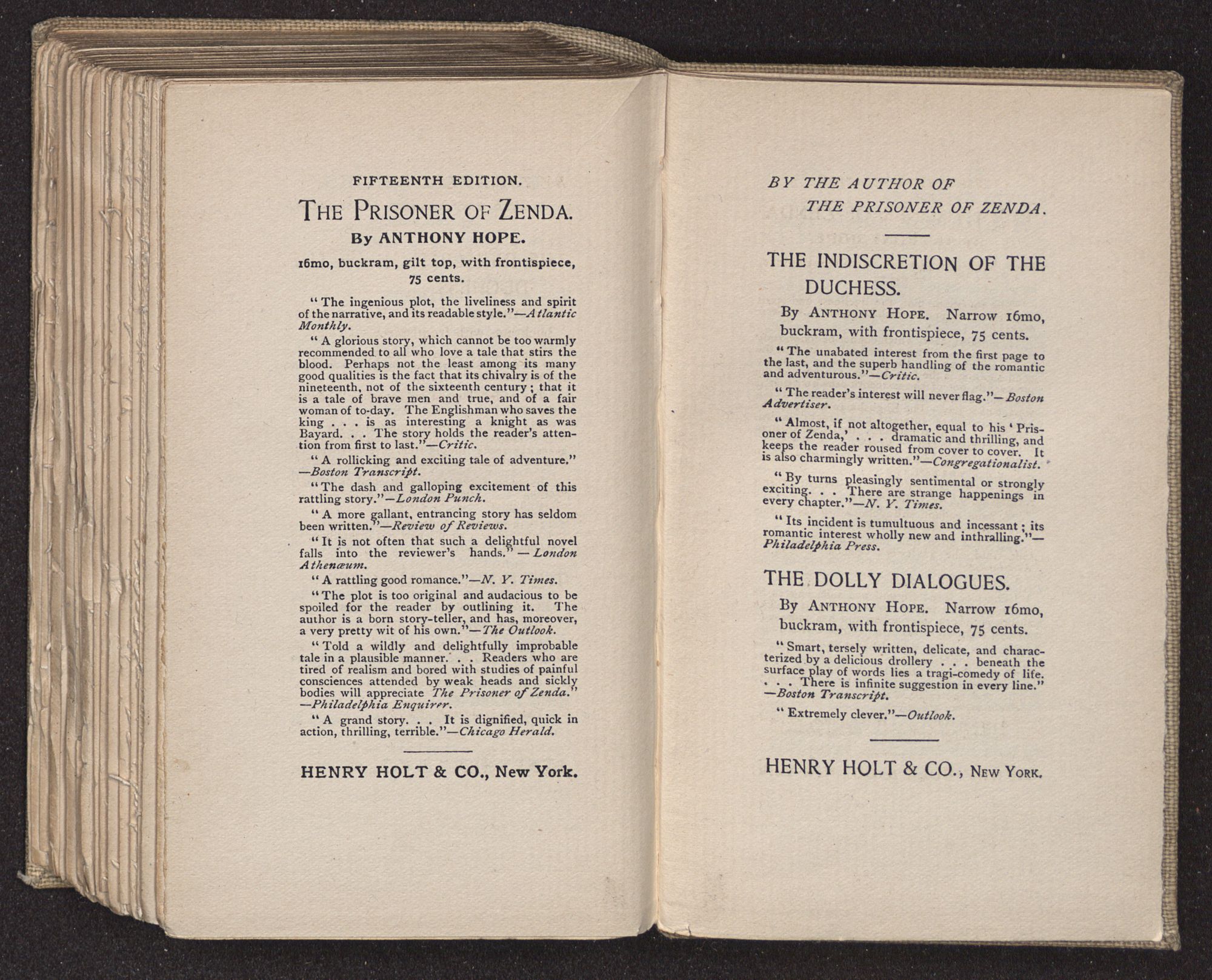 THE DOLLY DIALOGUES.By Anthony Hope. Narrow 16mo, buckram, with frontispiece, 75 cents.