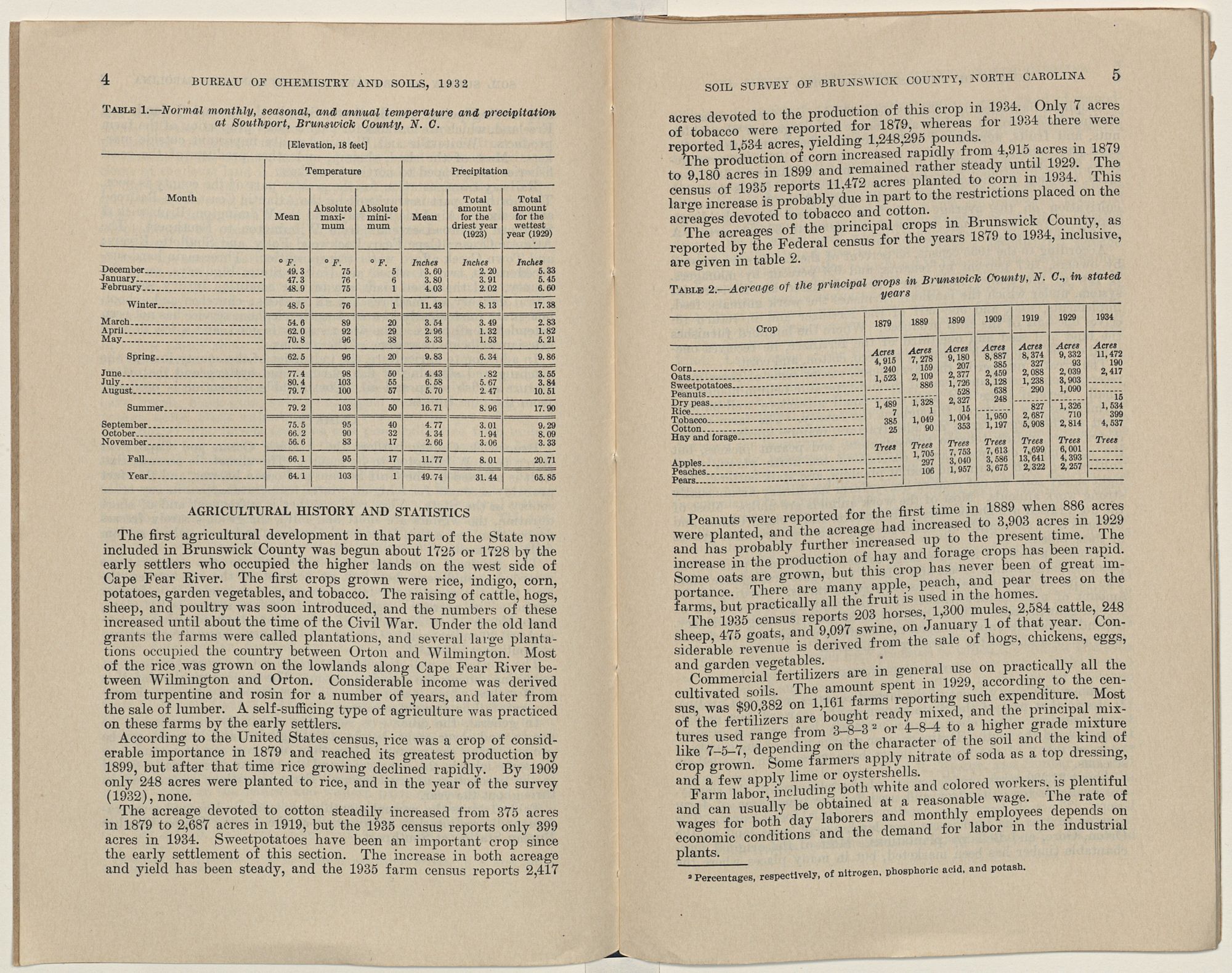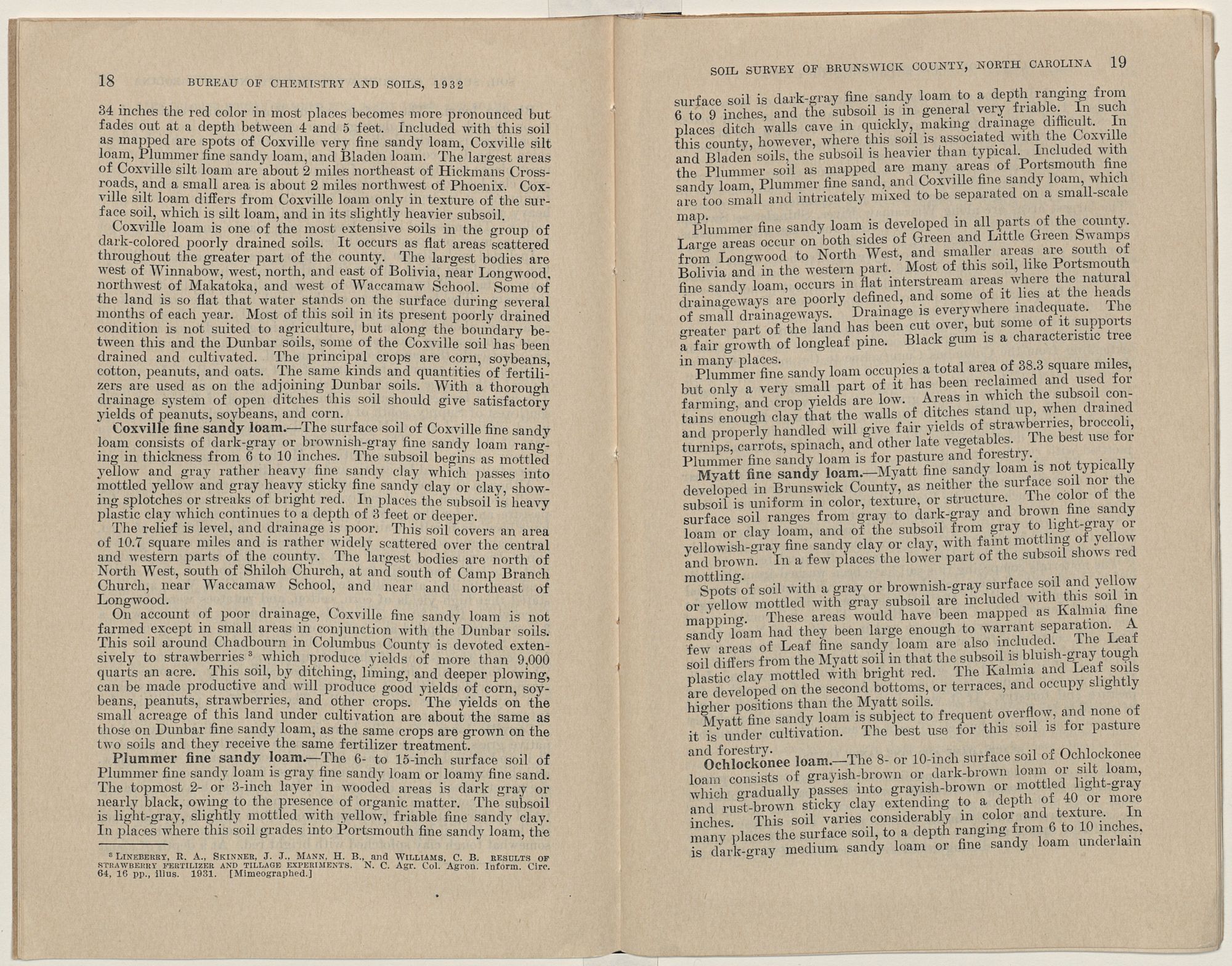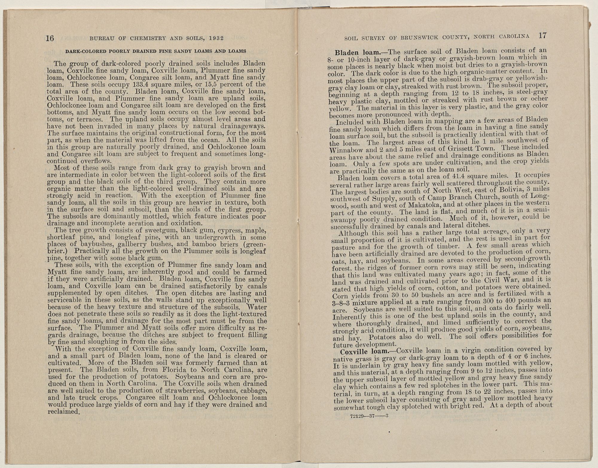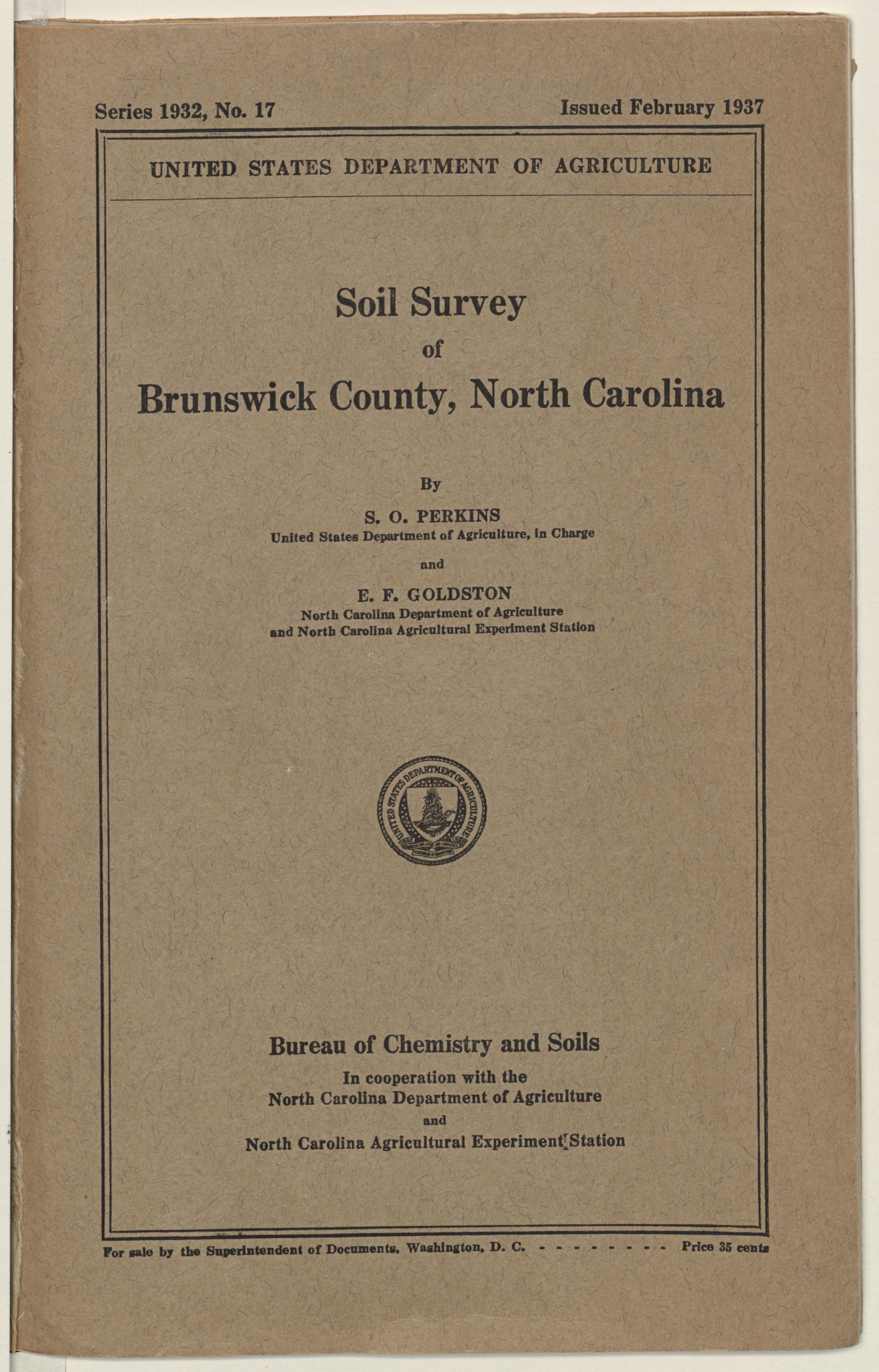 Series 1932, No. 17Issued February 1937UNITED STATES DEPARTMENT OF AGRICULTURESoil SurveyofBrunswick County, North CarolinaByS.O. PERKINSUnited States Department of Agriculture, in ChargeandE.F. GOLDSTONNOrth Carolina Department of Agricultureand North Carolina Agricultural Experiment Station