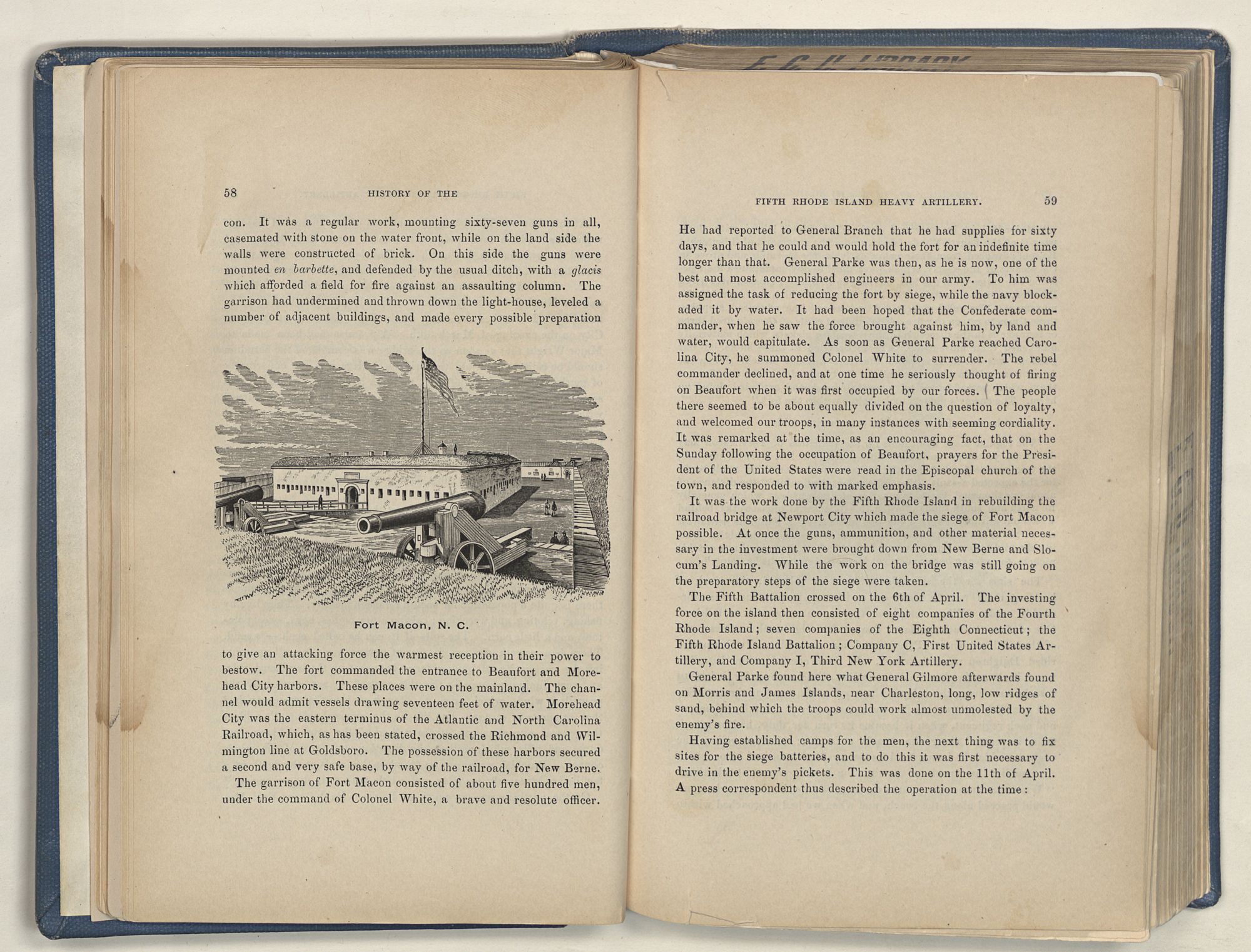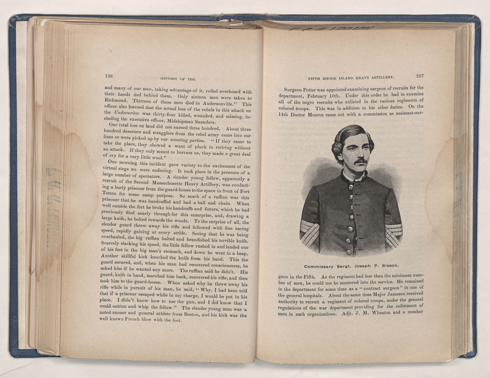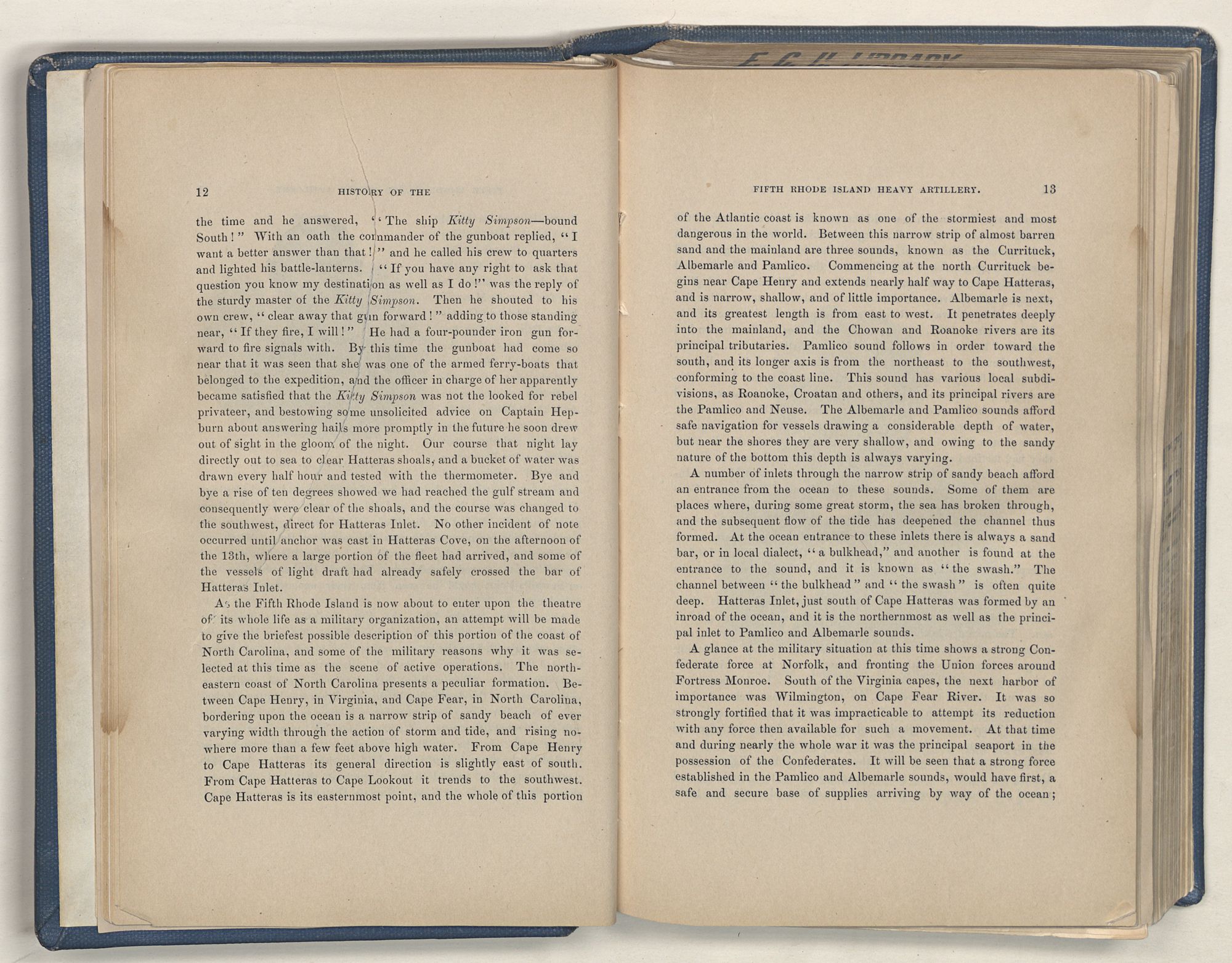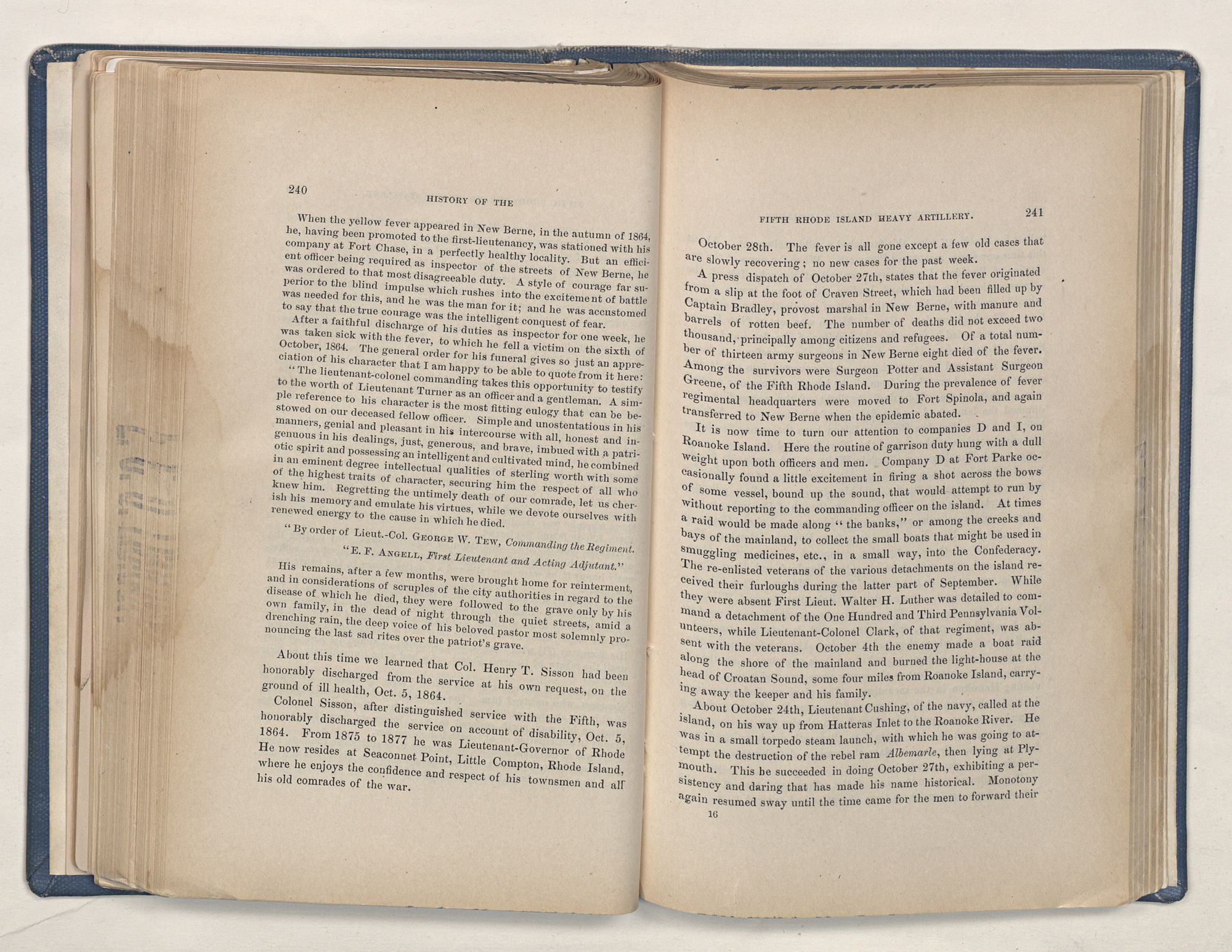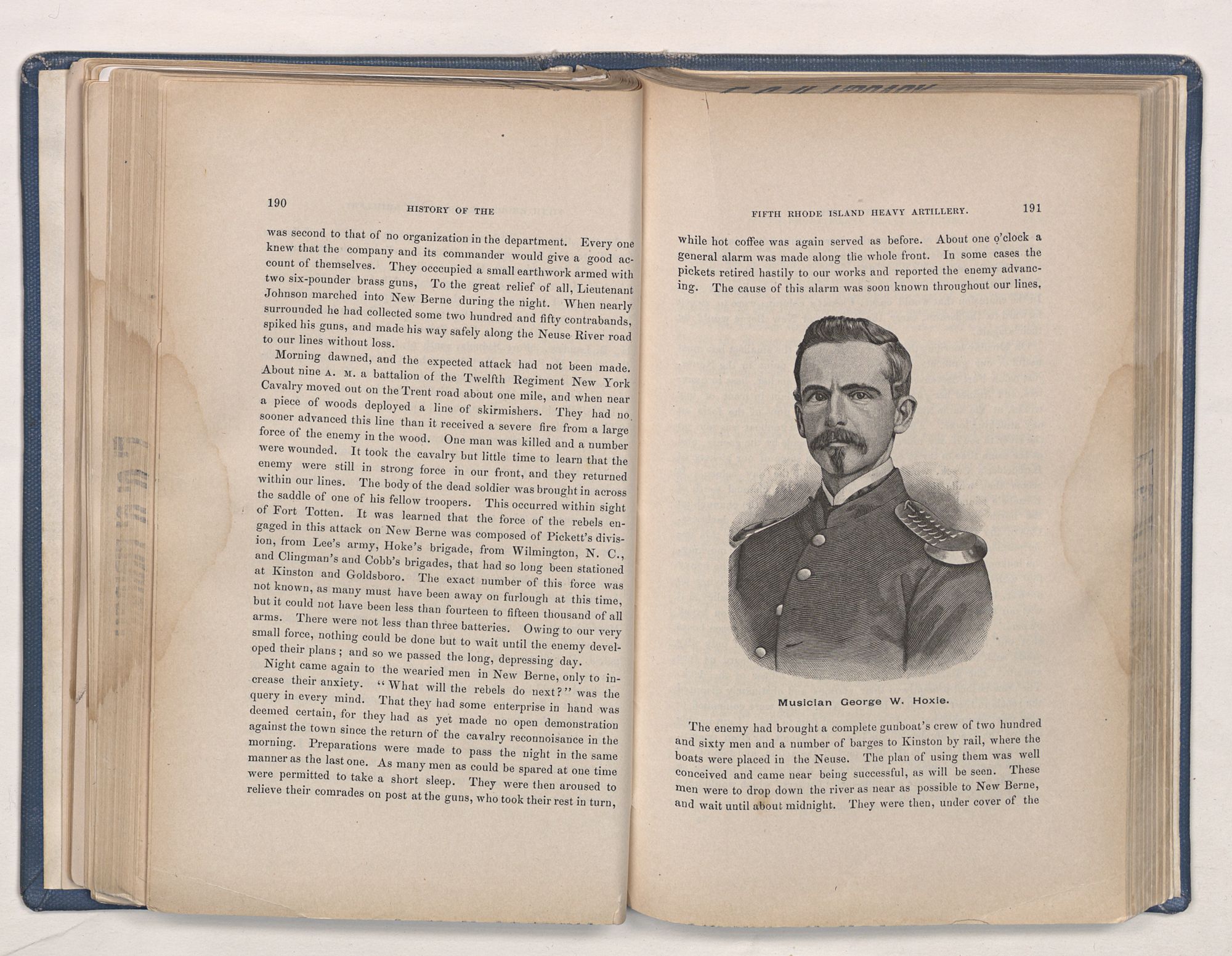 Henry T. Sisson, Colonel Commanding 5th Regiment Rhode Island ArtilleryHISTORYOF THEFIFTH REGIMENTOF Rhode Island Heavy Artillery,DURINGTHREE YEARS AND A HALF OF SERVICE INNORTH CAROLINA. January 1862-June 1865. COMPILED UNDER THE SUPERVISION OFJohn K. Burlingame.PROVIDENCE:SNOW & FARNHAM.Printers and Publishers,1892.