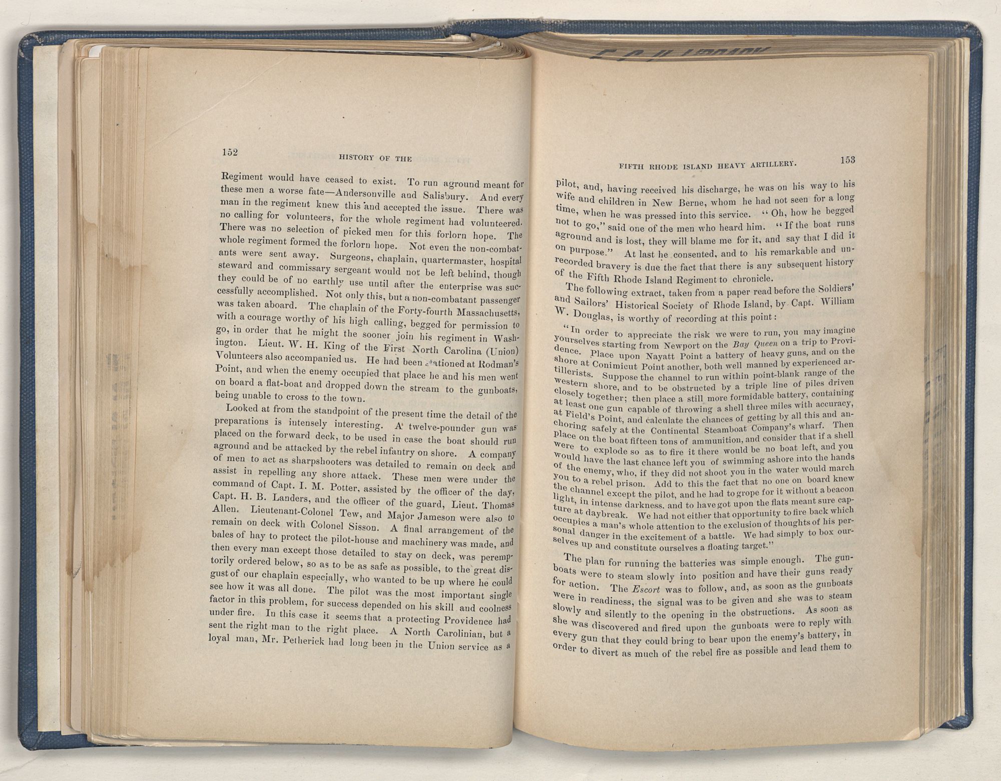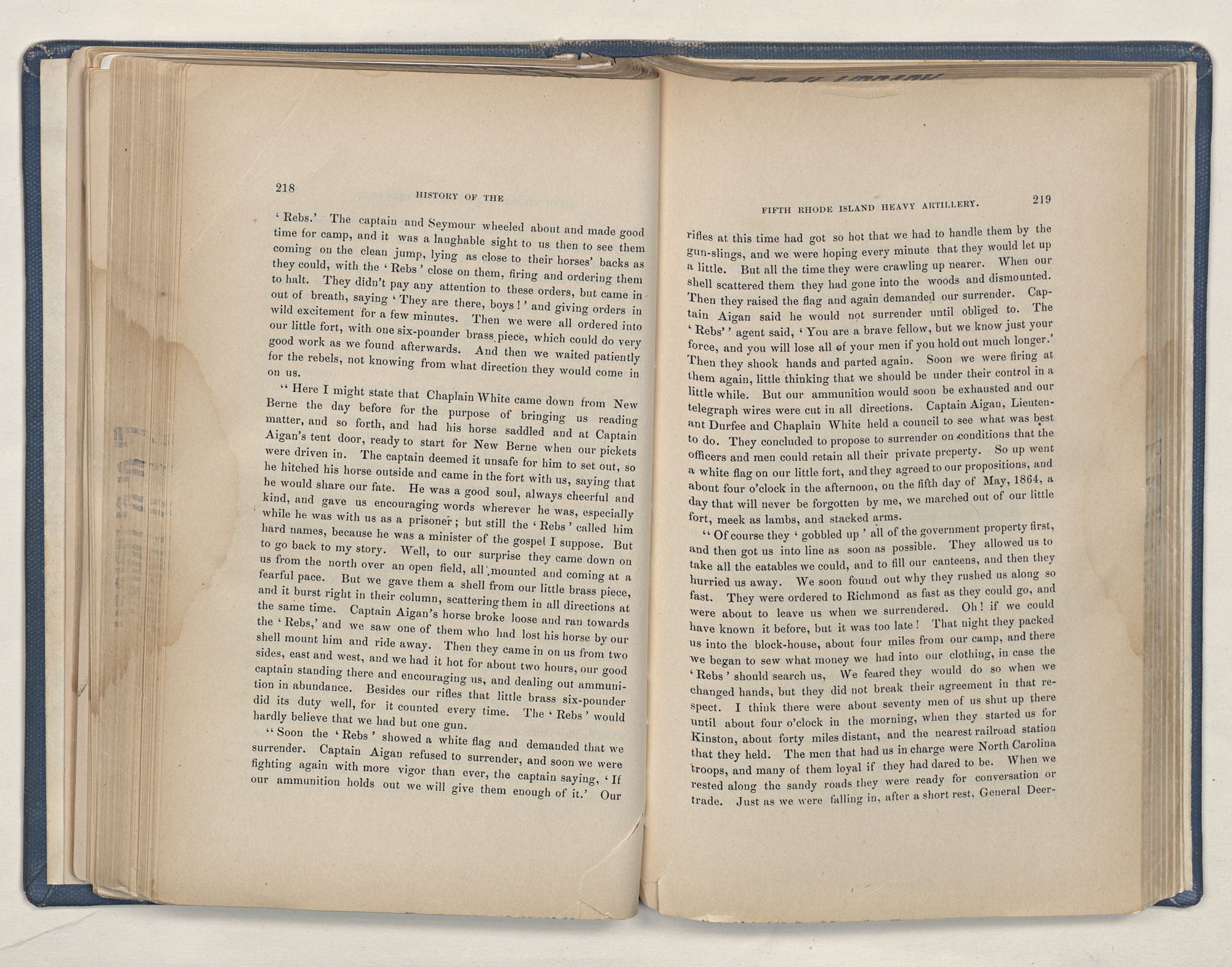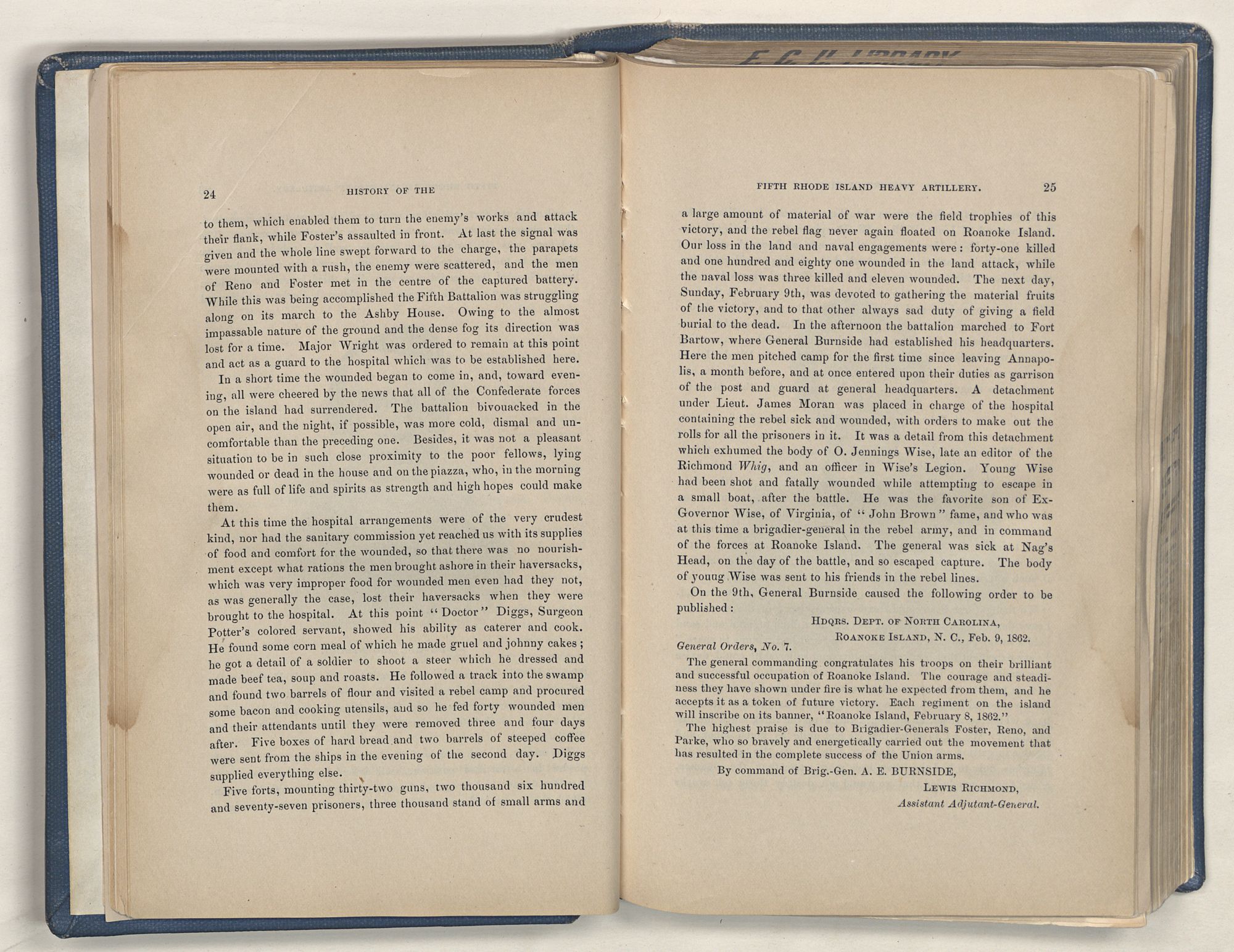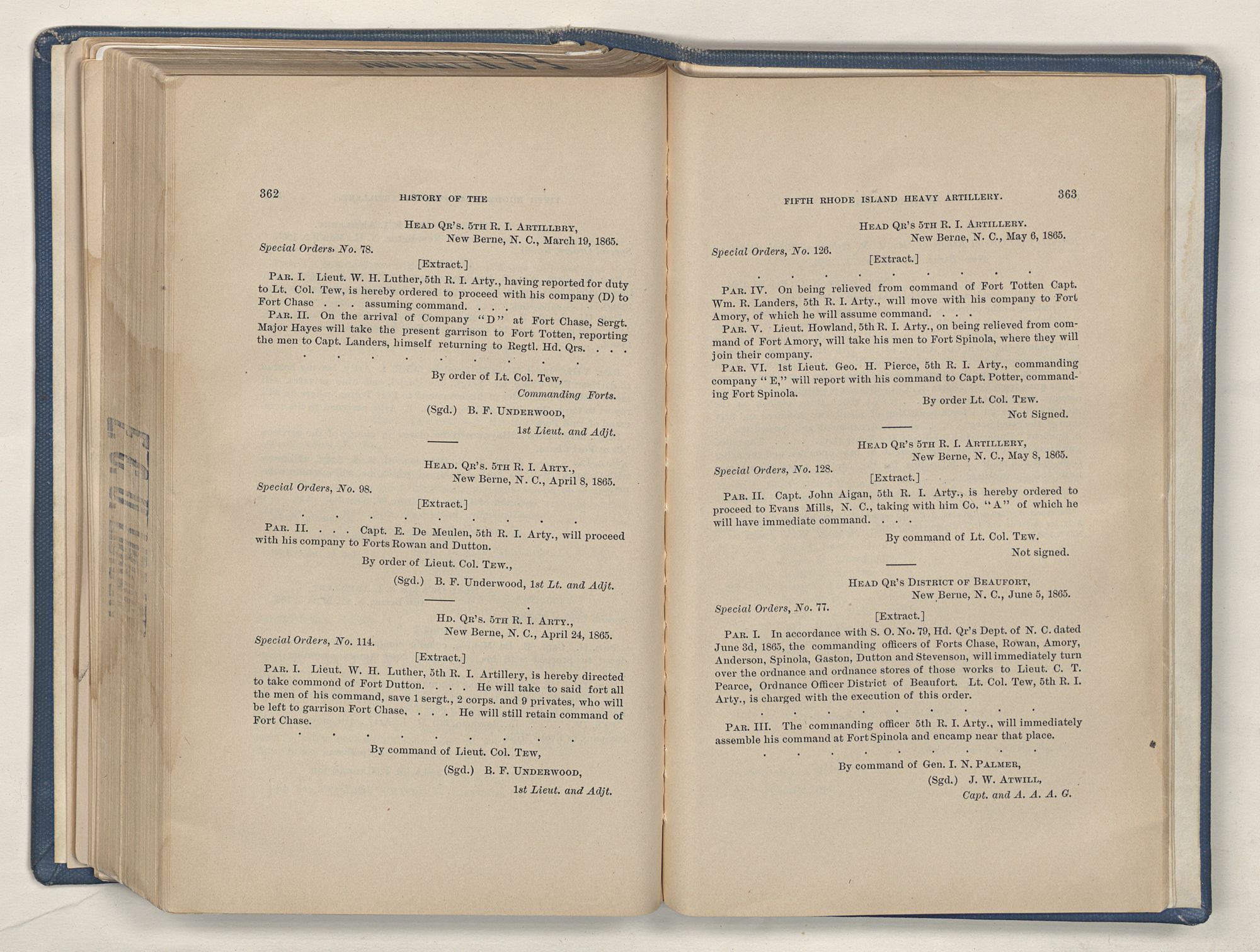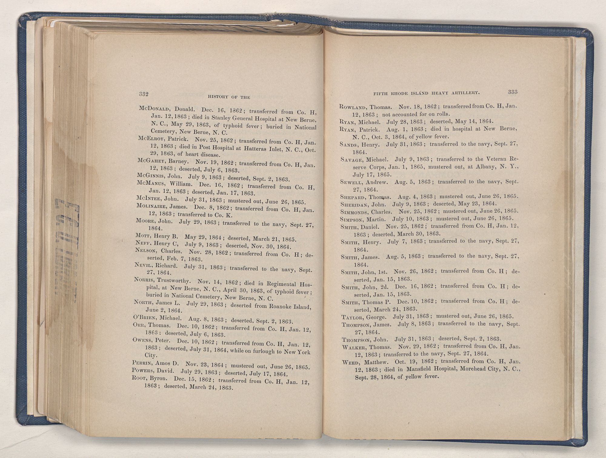 Henry T. Sisson, Colonel Commanding 5th Regiment Rhode Island ArtilleryHISTORYOF THEFIFTH REGIMENTOF Rhode Island Heavy Artillery,DURINGTHREE YEARS AND A HALF OF SERVICE INNORTH CAROLINA. January 1862-June 1865. COMPILED UNDER THE SUPERVISION OFJohn K. Burlingame.PROVIDENCE:SNOW & FARNHAM.Printers and Publishers,1892.