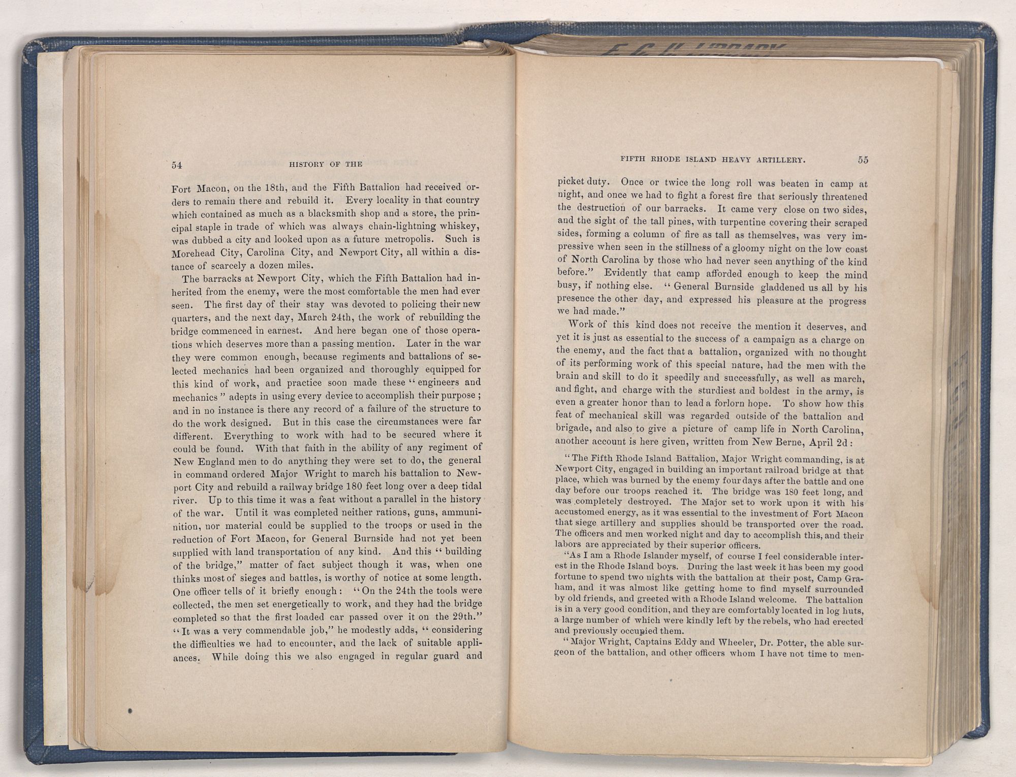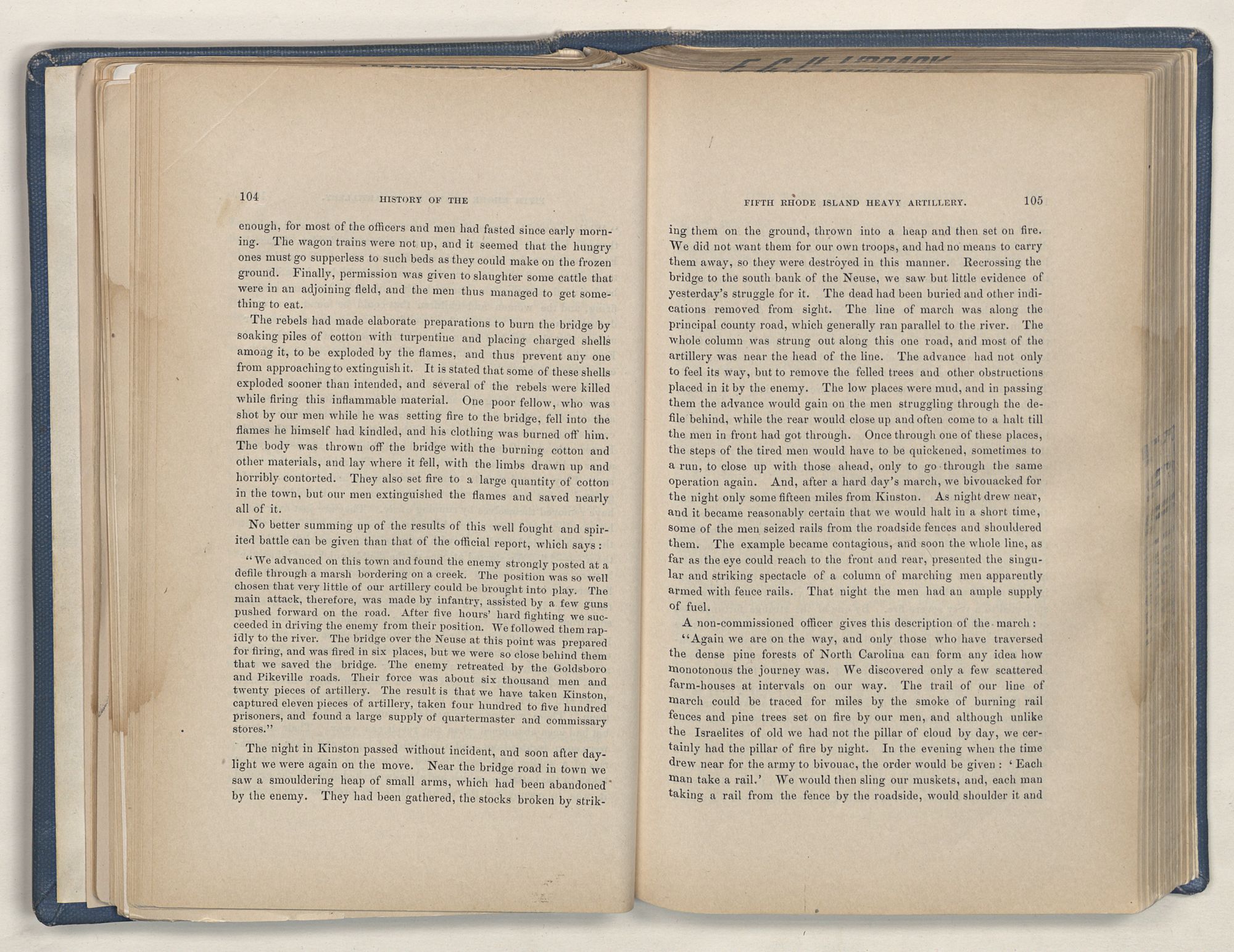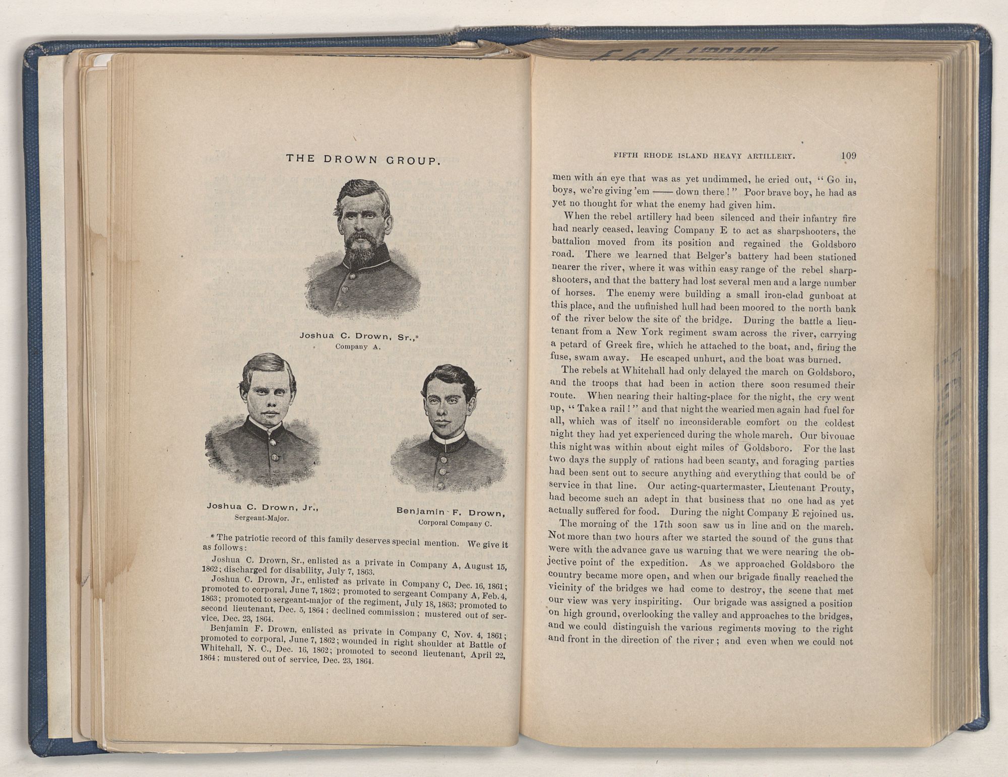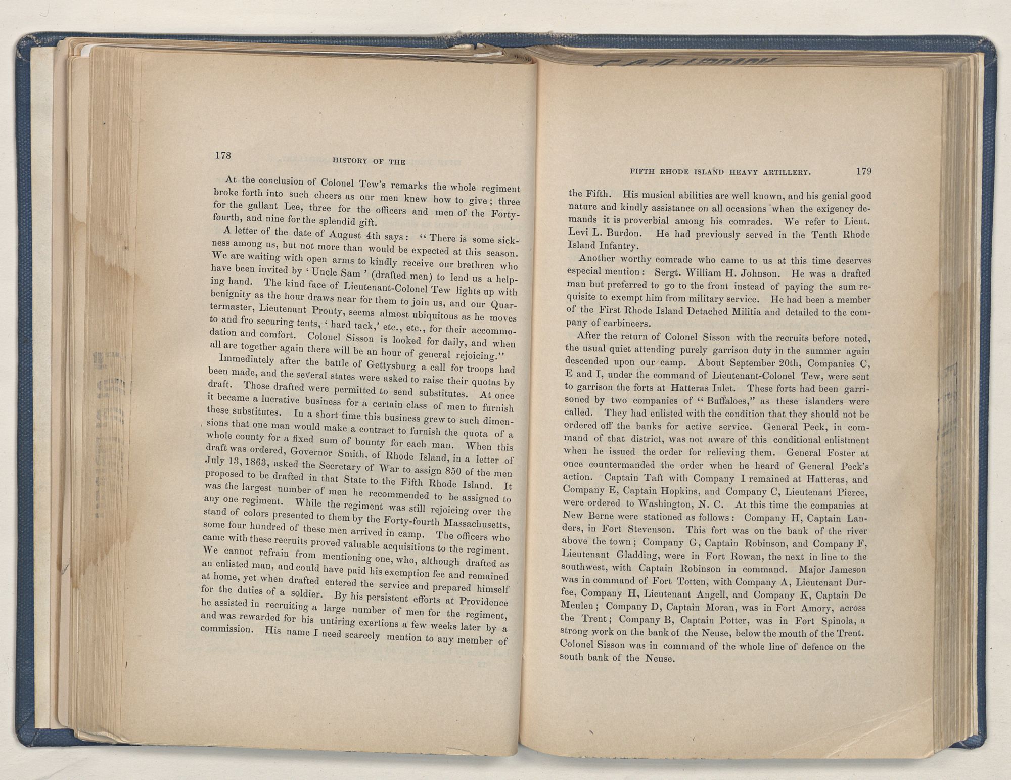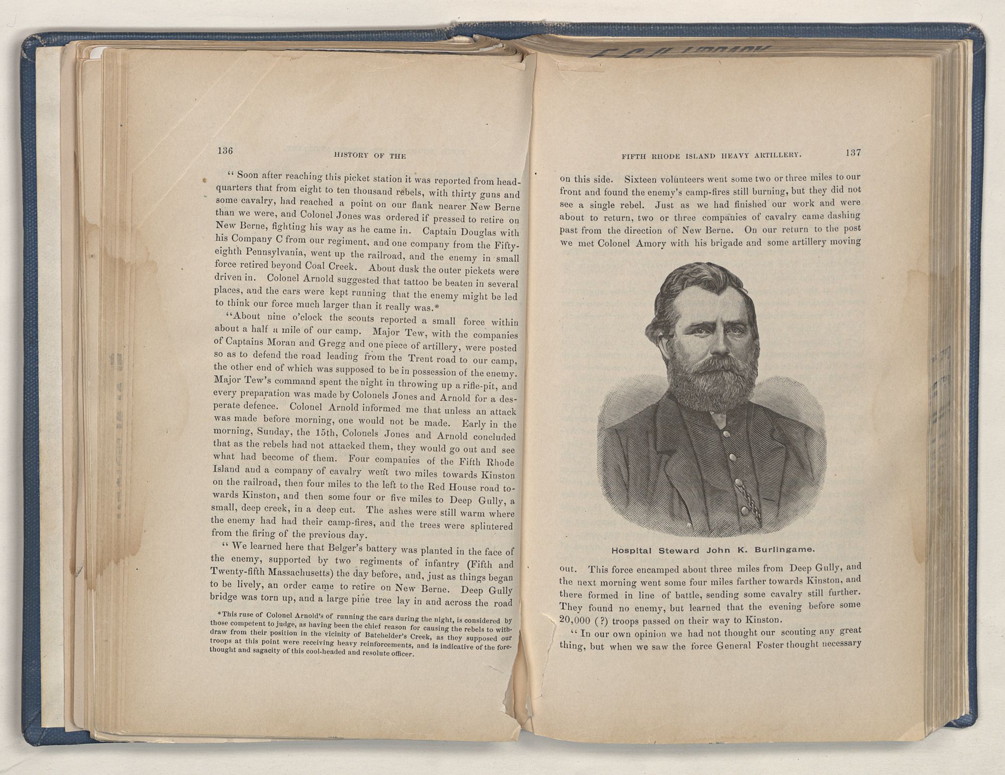 Henry T. Sisson, Colonel Commanding 5th Regiment Rhode Island ArtilleryHISTORYOF THEFIFTH REGIMENTOF Rhode Island Heavy Artillery,DURINGTHREE YEARS AND A HALF OF SERVICE INNORTH CAROLINA. January 1862-June 1865. COMPILED UNDER THE SUPERVISION OFJohn K. Burlingame.PROVIDENCE:SNOW & FARNHAM.Printers and Publishers,1892.