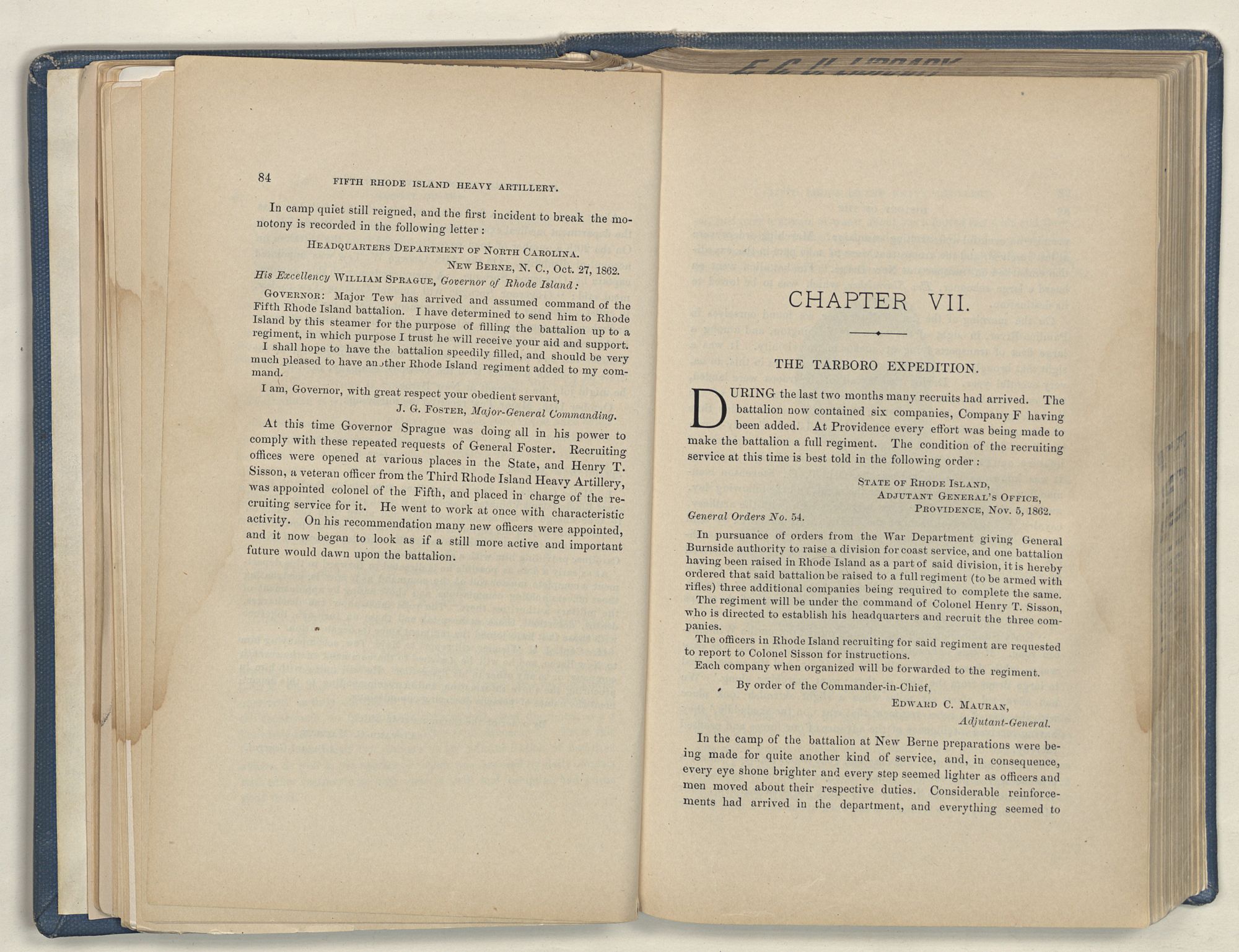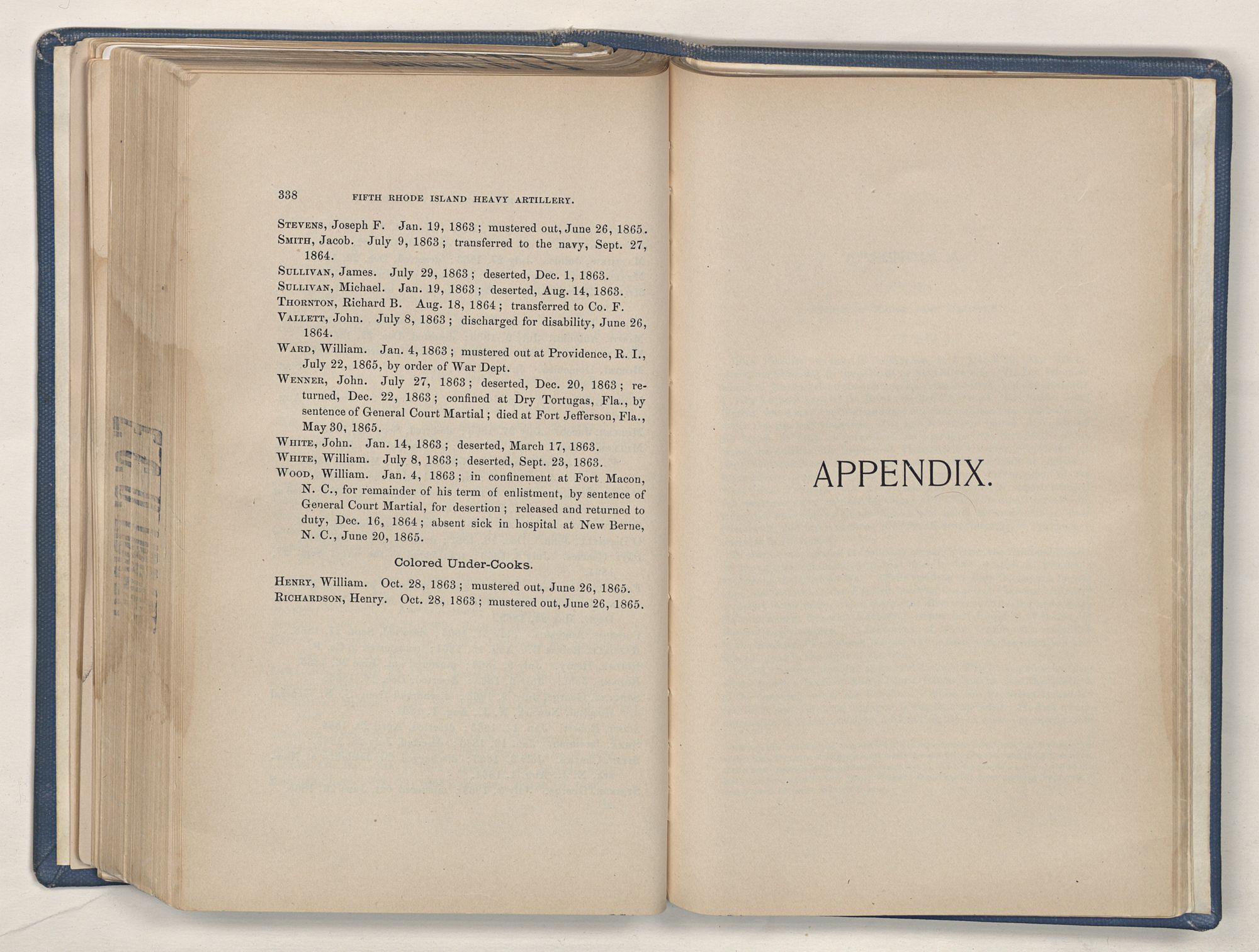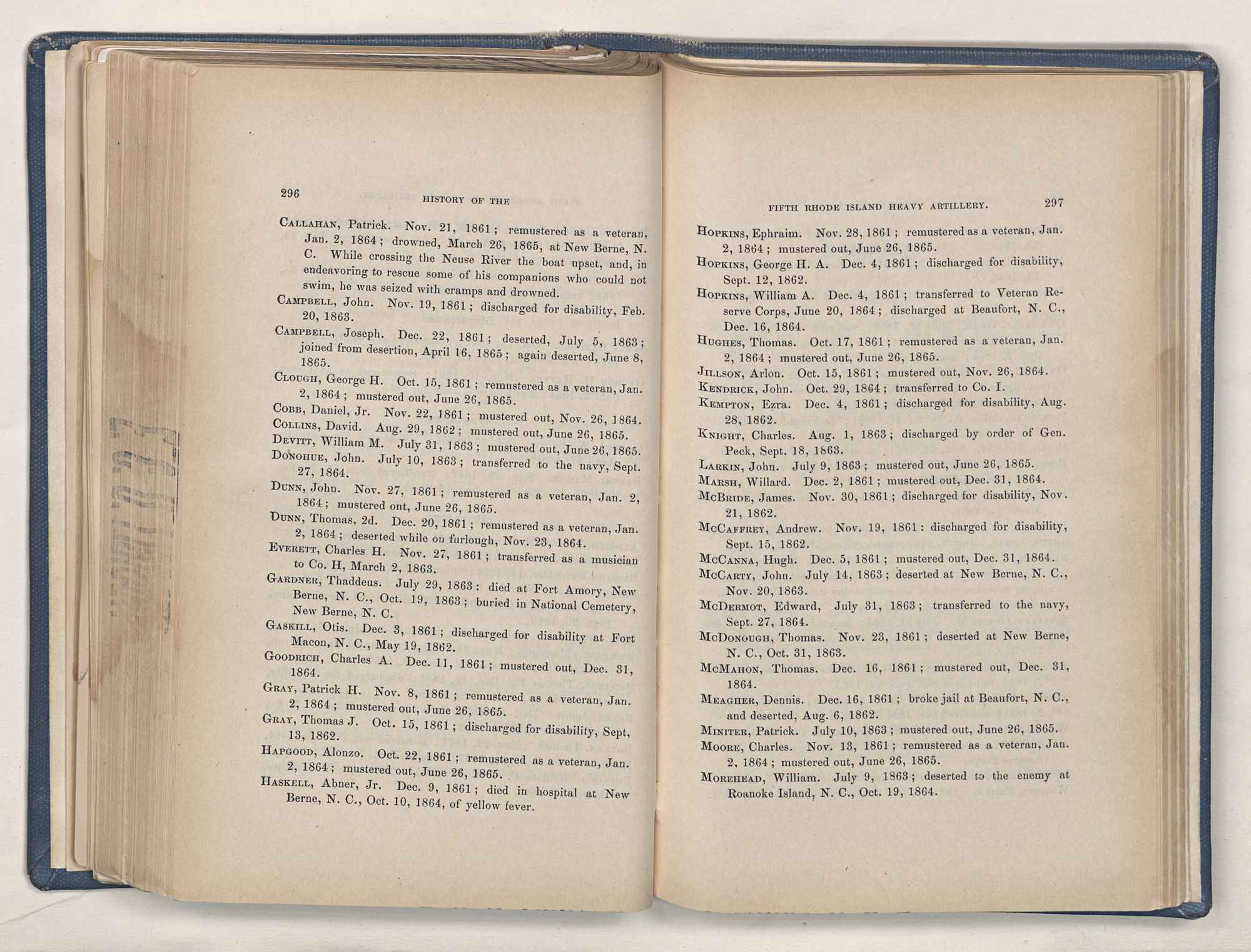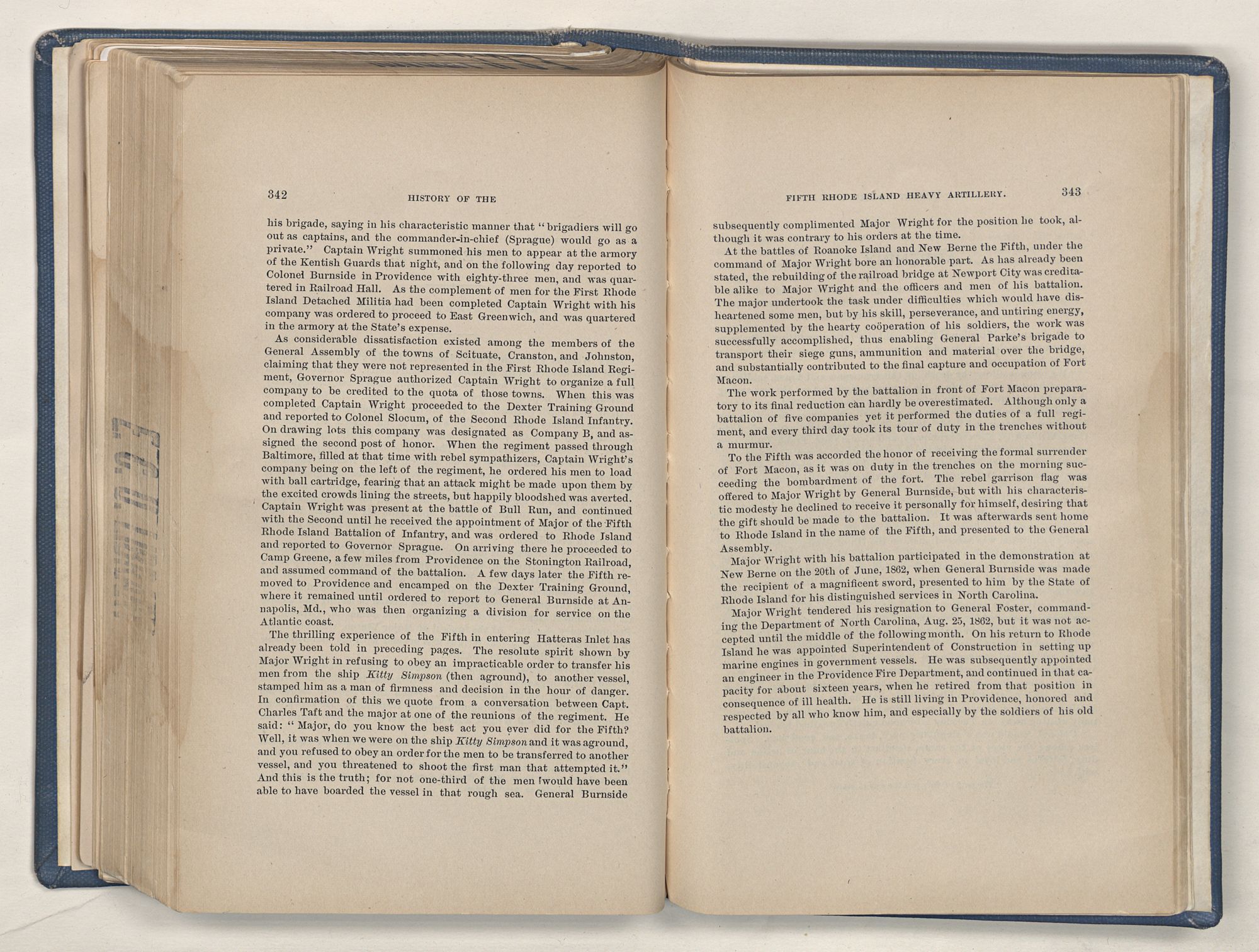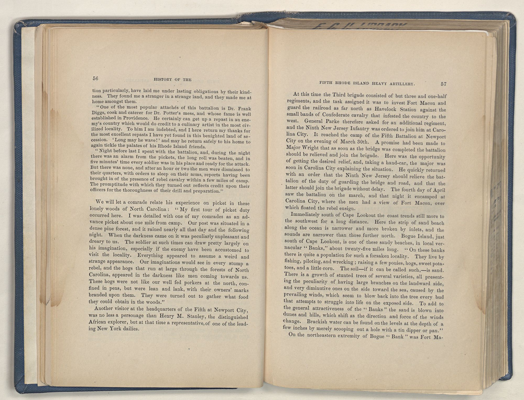 Henry T. Sisson, Colonel Commanding 5th Regiment Rhode Island ArtilleryHISTORYOF THEFIFTH REGIMENTOF Rhode Island Heavy Artillery,DURINGTHREE YEARS AND A HALF OF SERVICE INNORTH CAROLINA. January 1862-June 1865. COMPILED UNDER THE SUPERVISION OFJohn K. Burlingame.PROVIDENCE:SNOW & FARNHAM.Printers and Publishers,1892.