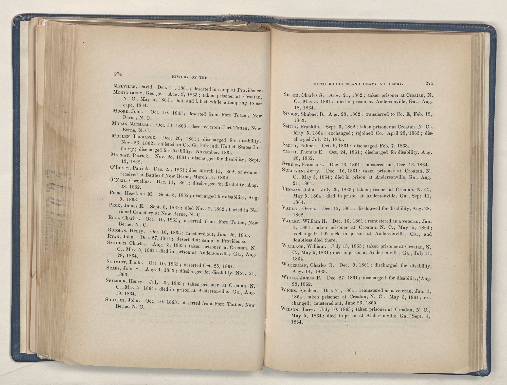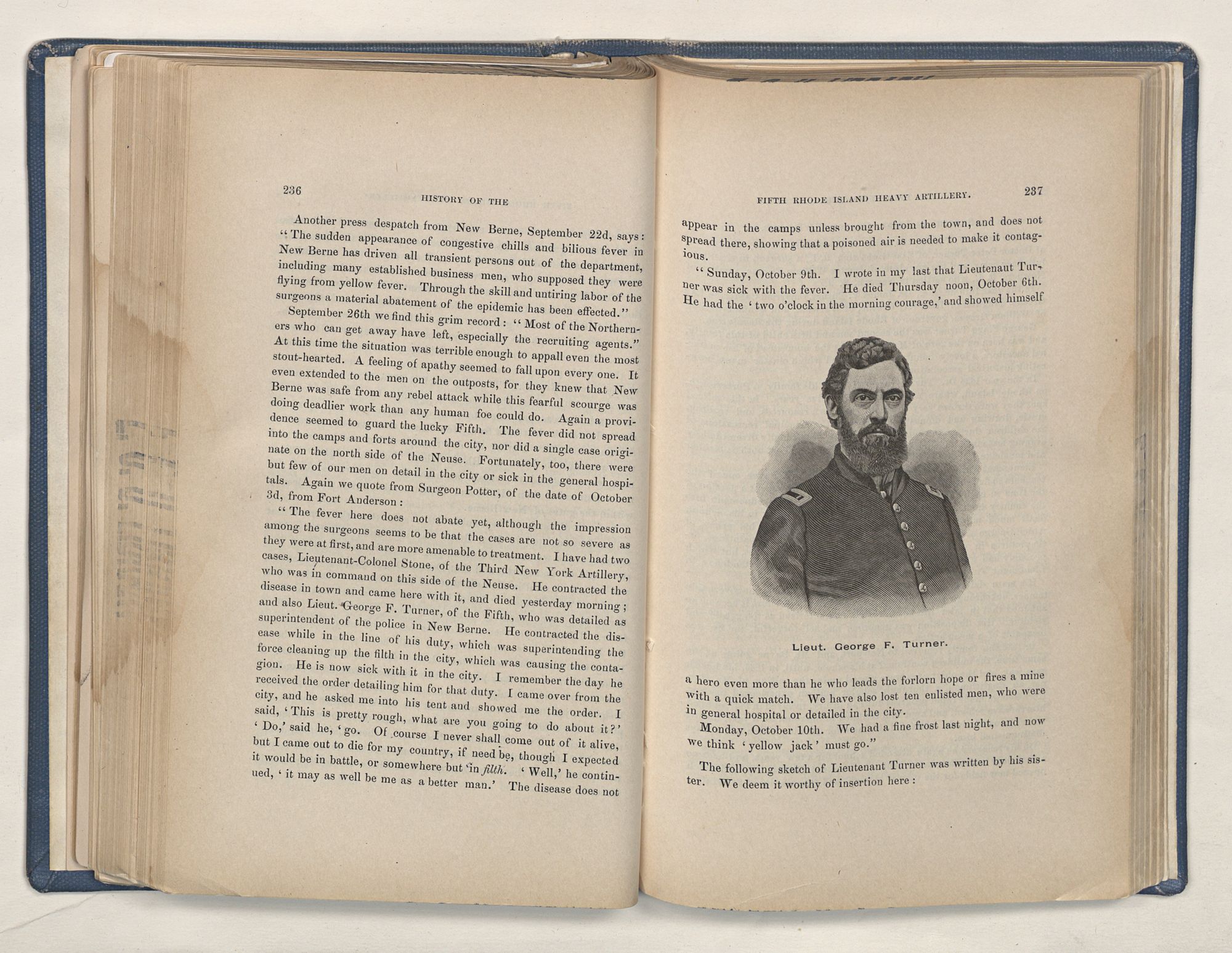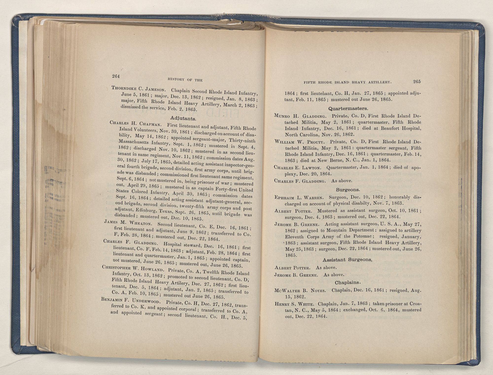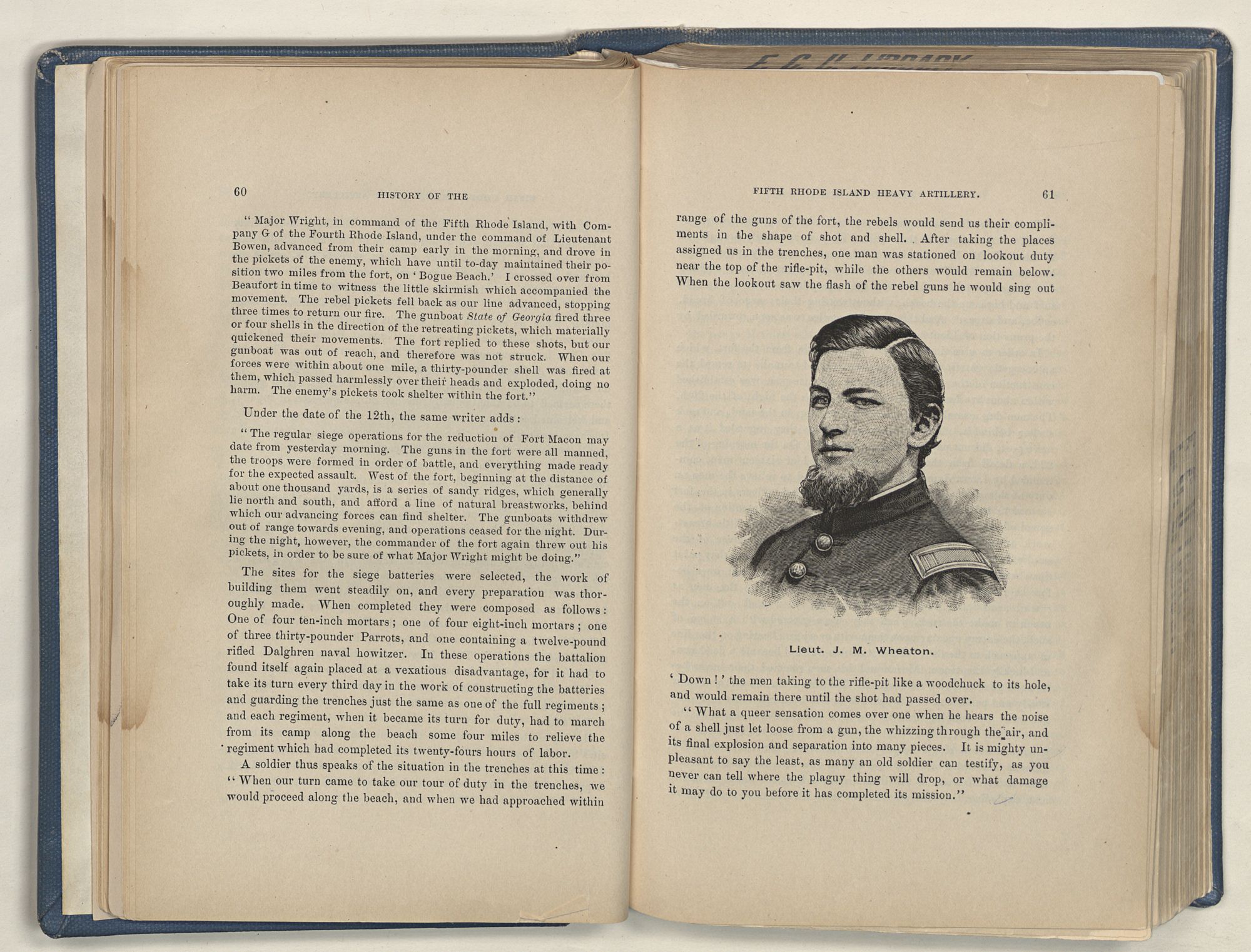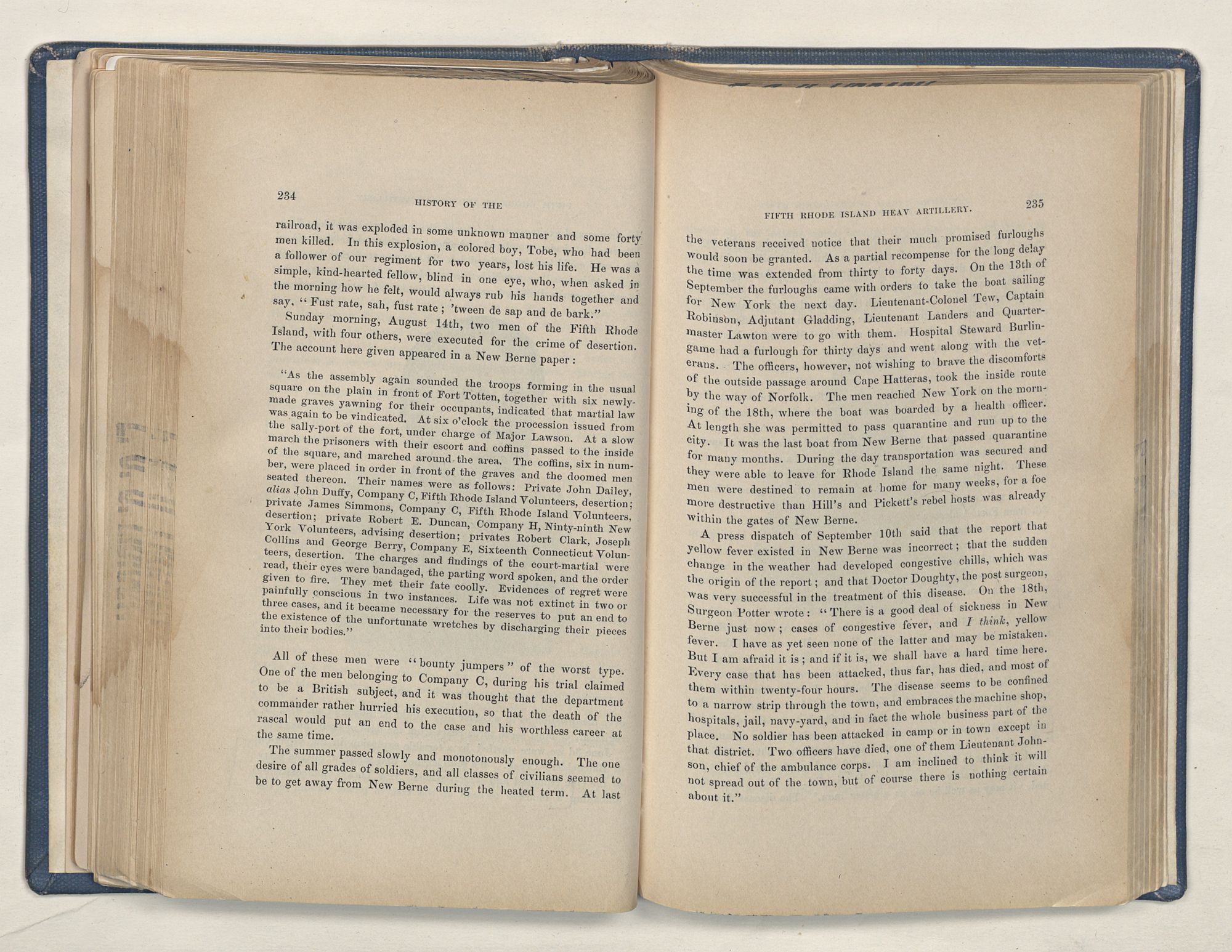 Henry T. Sisson, Colonel Commanding 5th Regiment Rhode Island ArtilleryHISTORYOF THEFIFTH REGIMENTOF Rhode Island Heavy Artillery,DURINGTHREE YEARS AND A HALF OF SERVICE INNORTH CAROLINA. January 1862-June 1865. COMPILED UNDER THE SUPERVISION OFJohn K. Burlingame.PROVIDENCE:SNOW & FARNHAM.Printers and Publishers,1892.