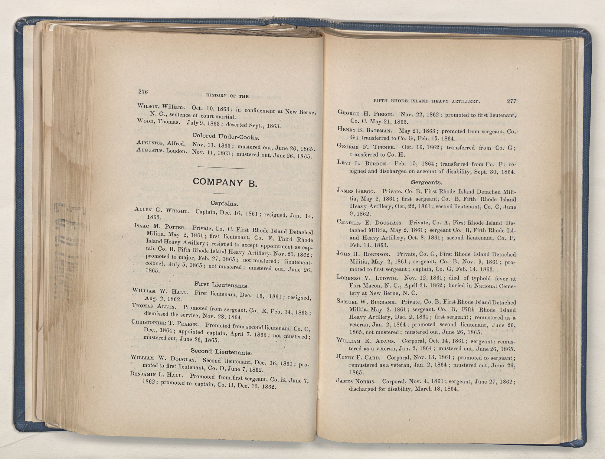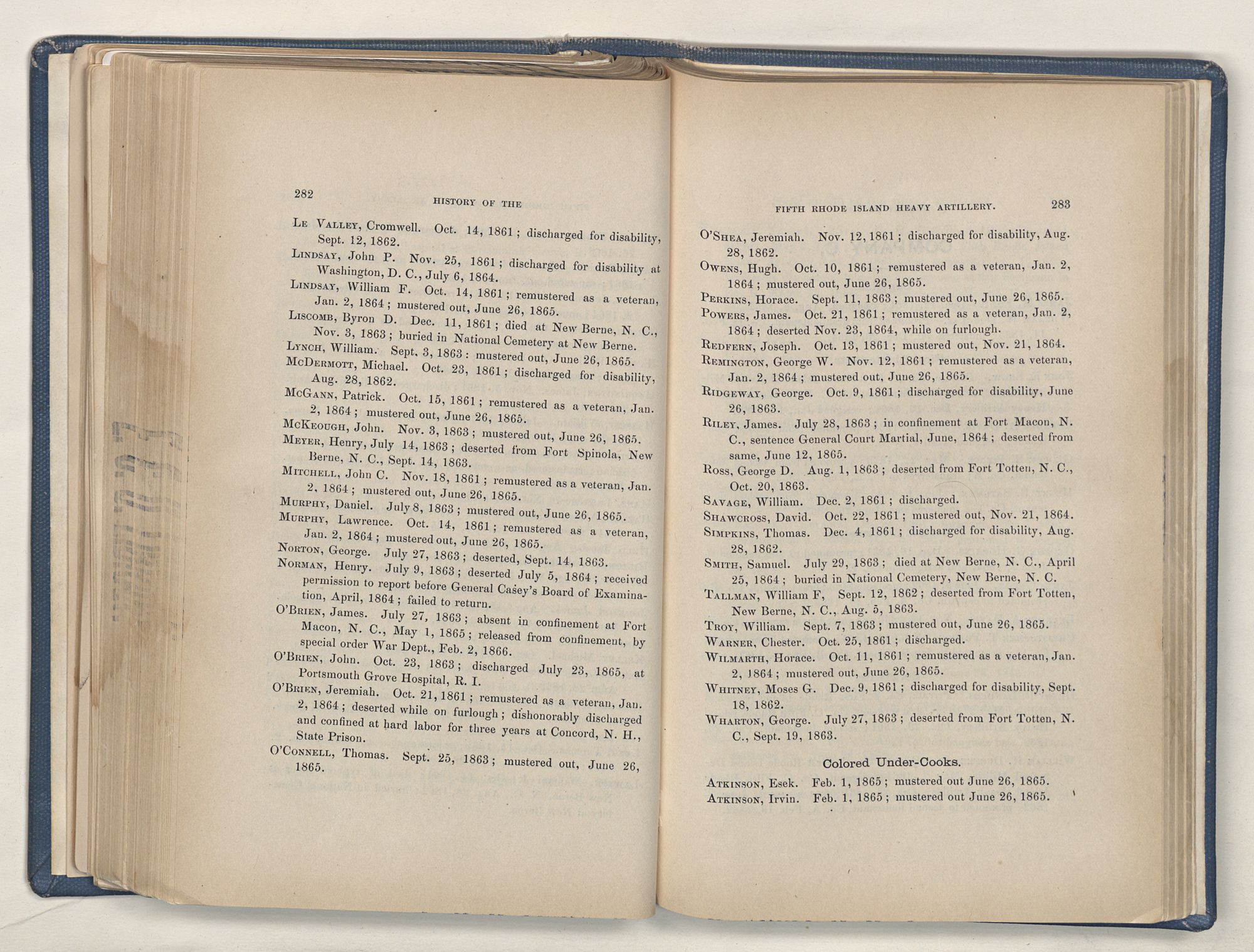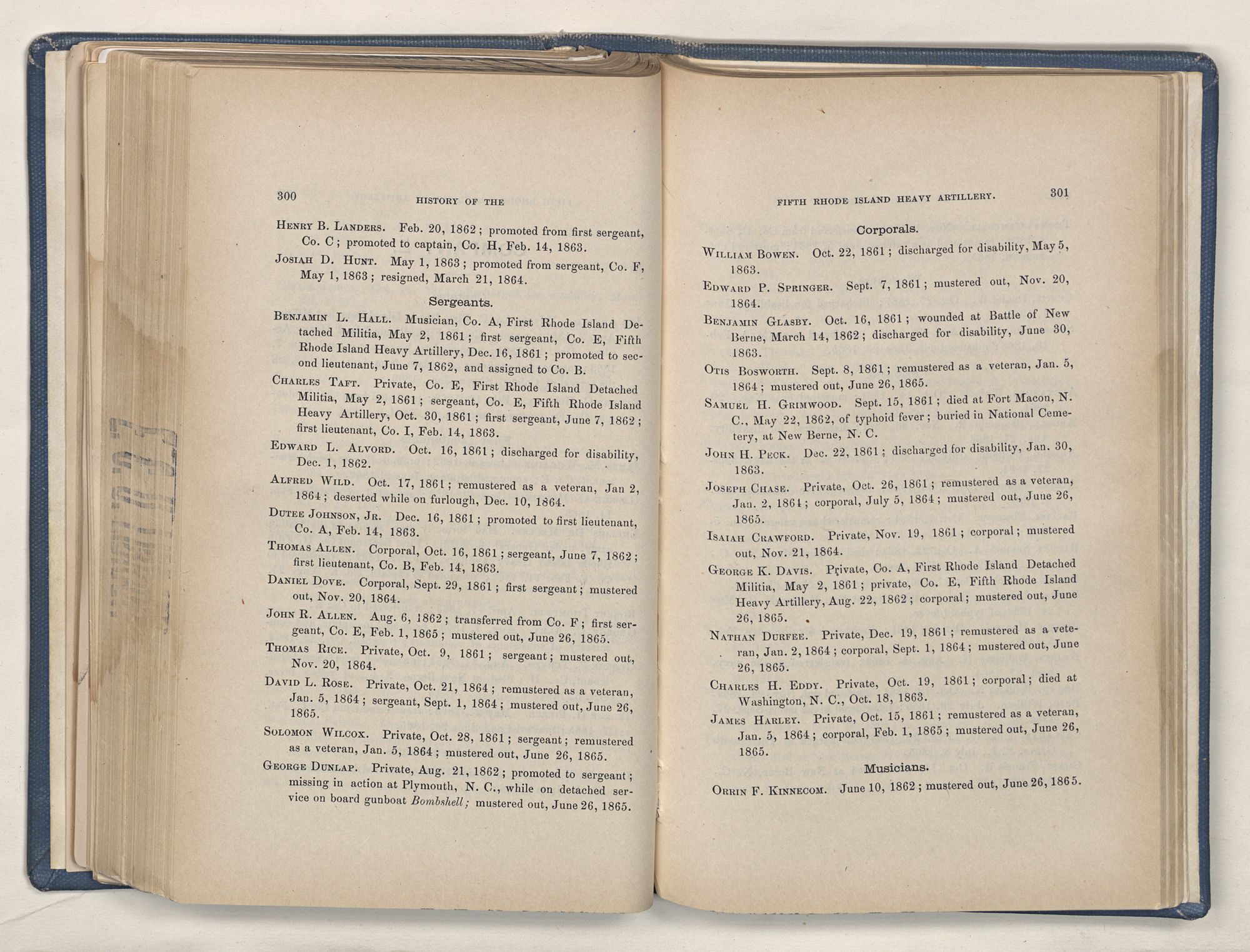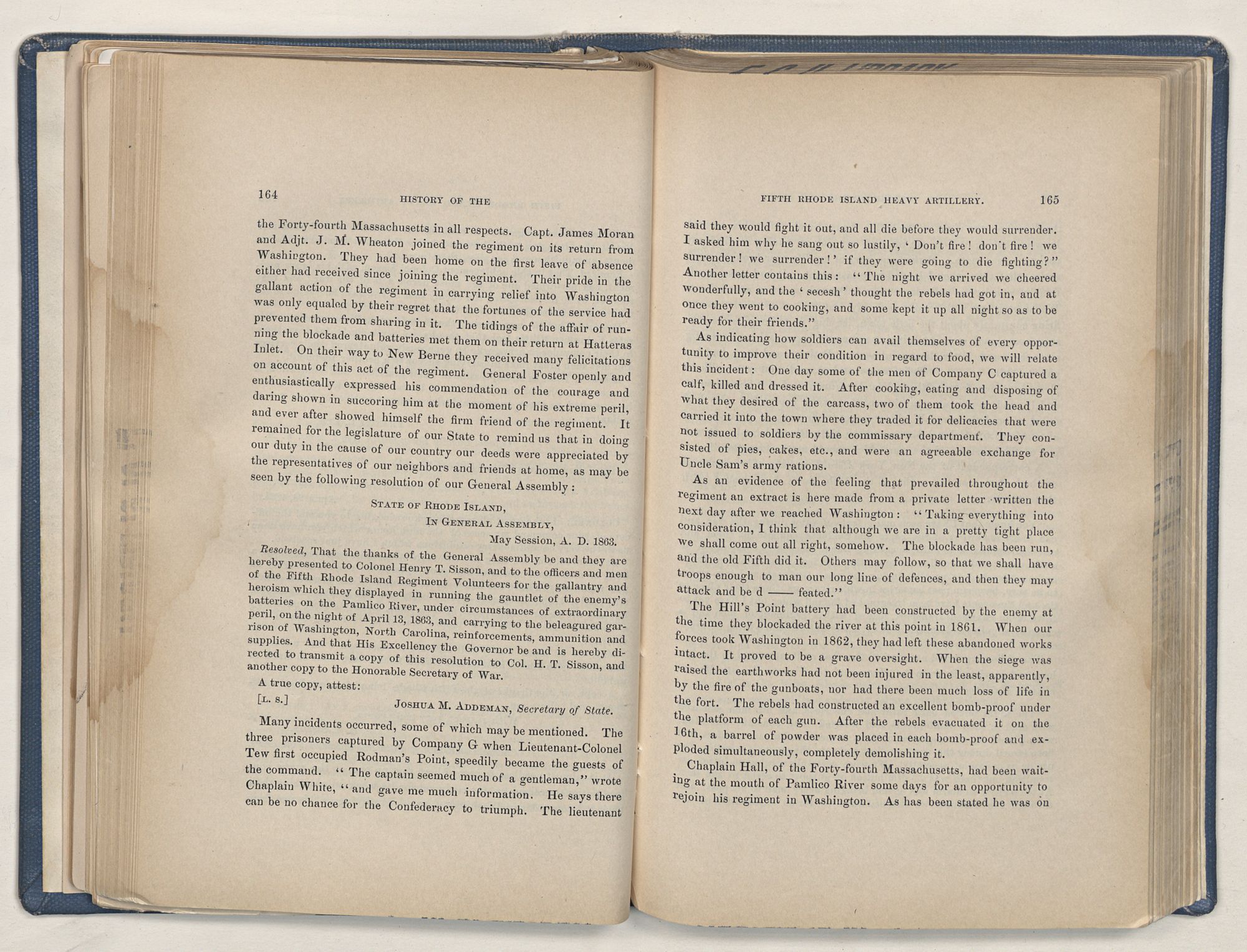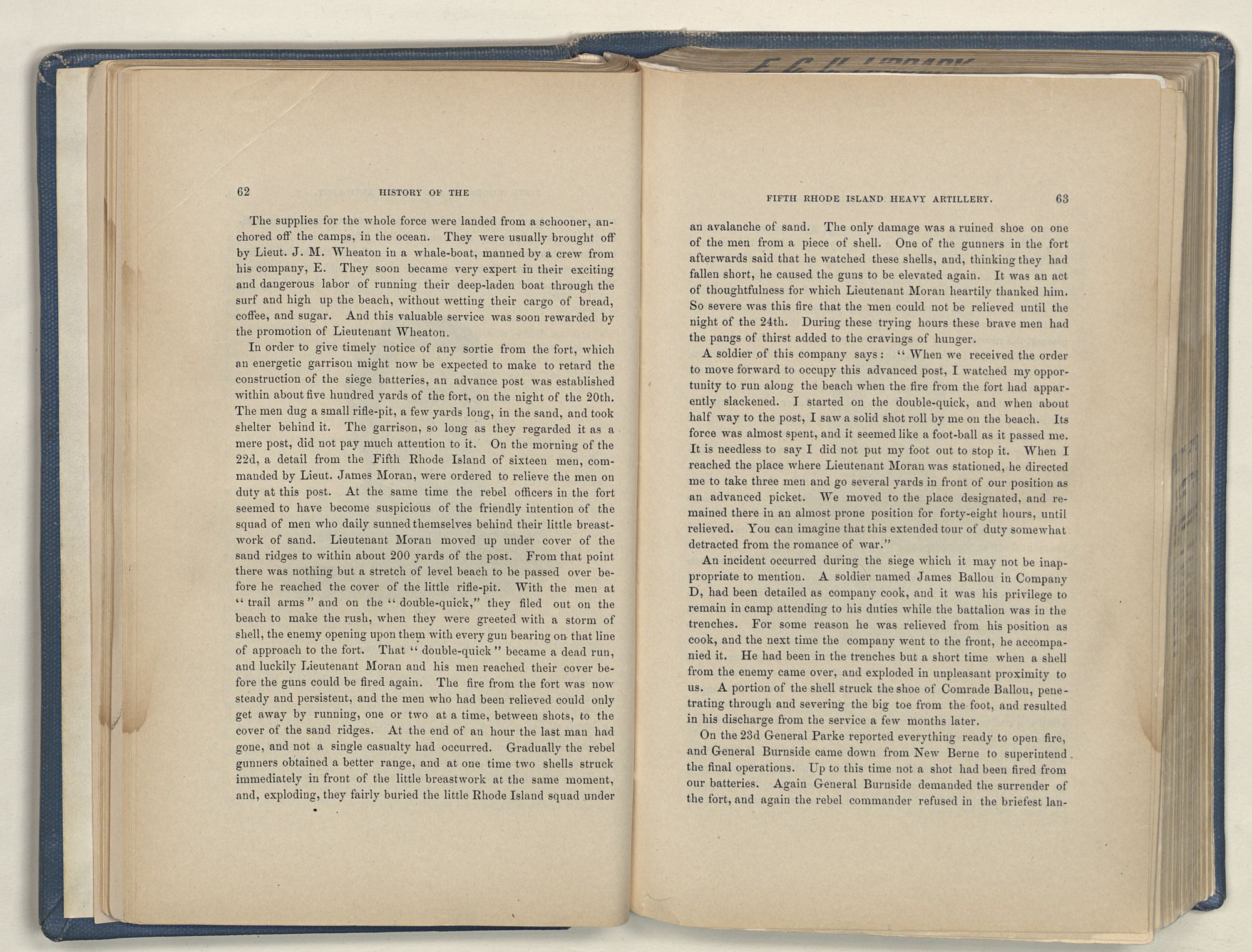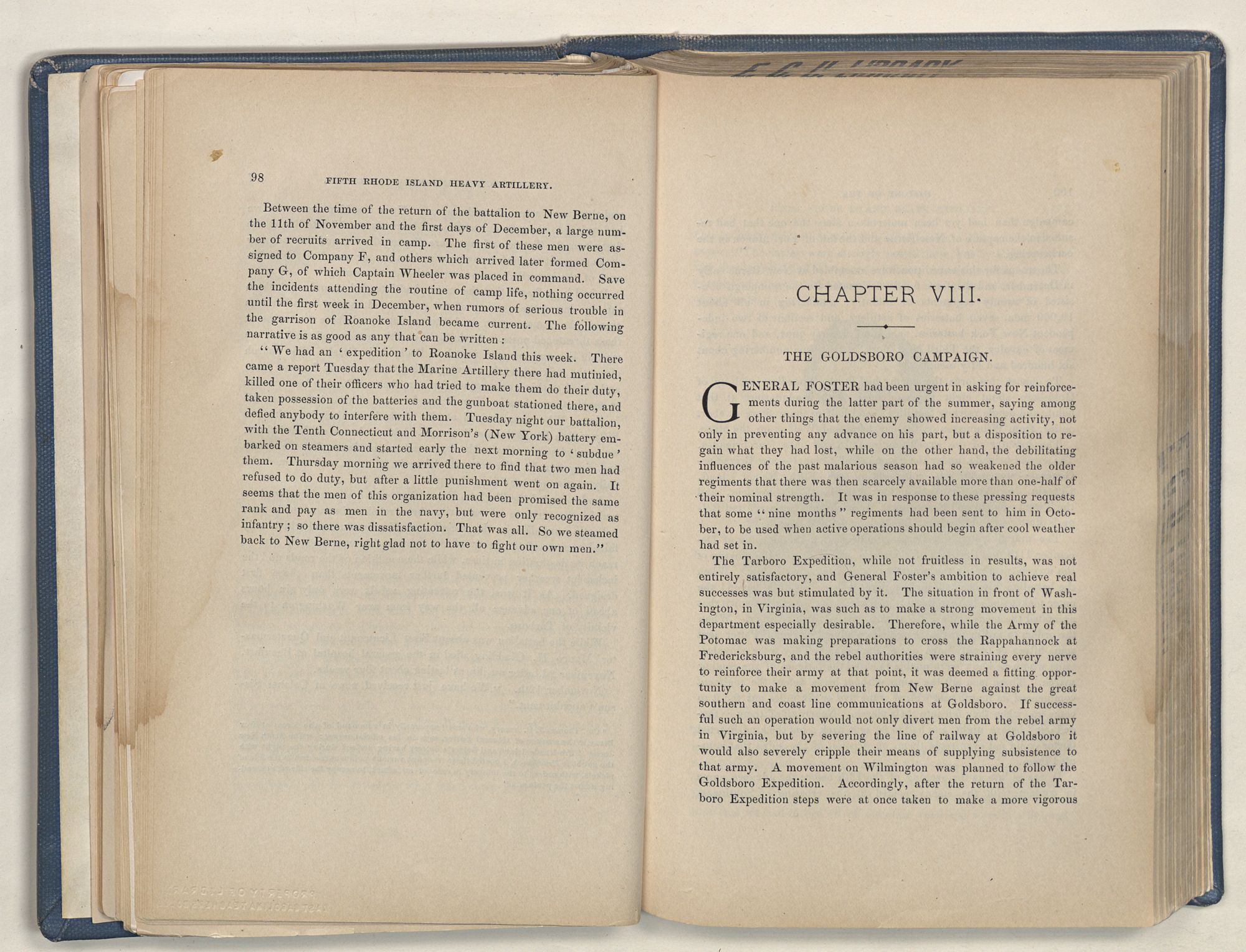 Henry T. Sisson, Colonel Commanding 5th Regiment Rhode Island ArtilleryHISTORYOF THEFIFTH REGIMENTOF Rhode Island Heavy Artillery,DURINGTHREE YEARS AND A HALF OF SERVICE INNORTH CAROLINA. January 1862-June 1865. COMPILED UNDER THE SUPERVISION OFJohn K. Burlingame.PROVIDENCE:SNOW & FARNHAM.Printers and Publishers,1892.