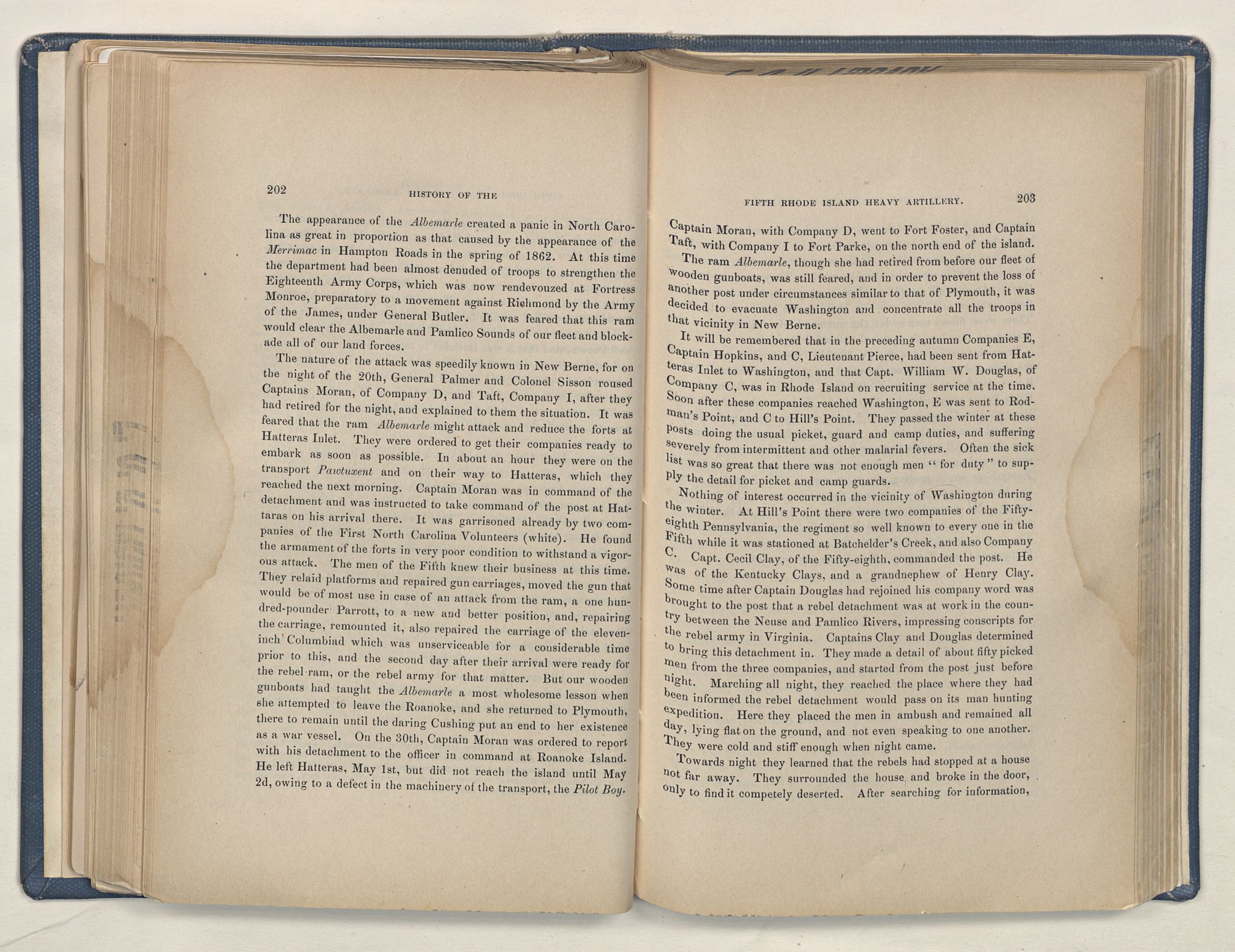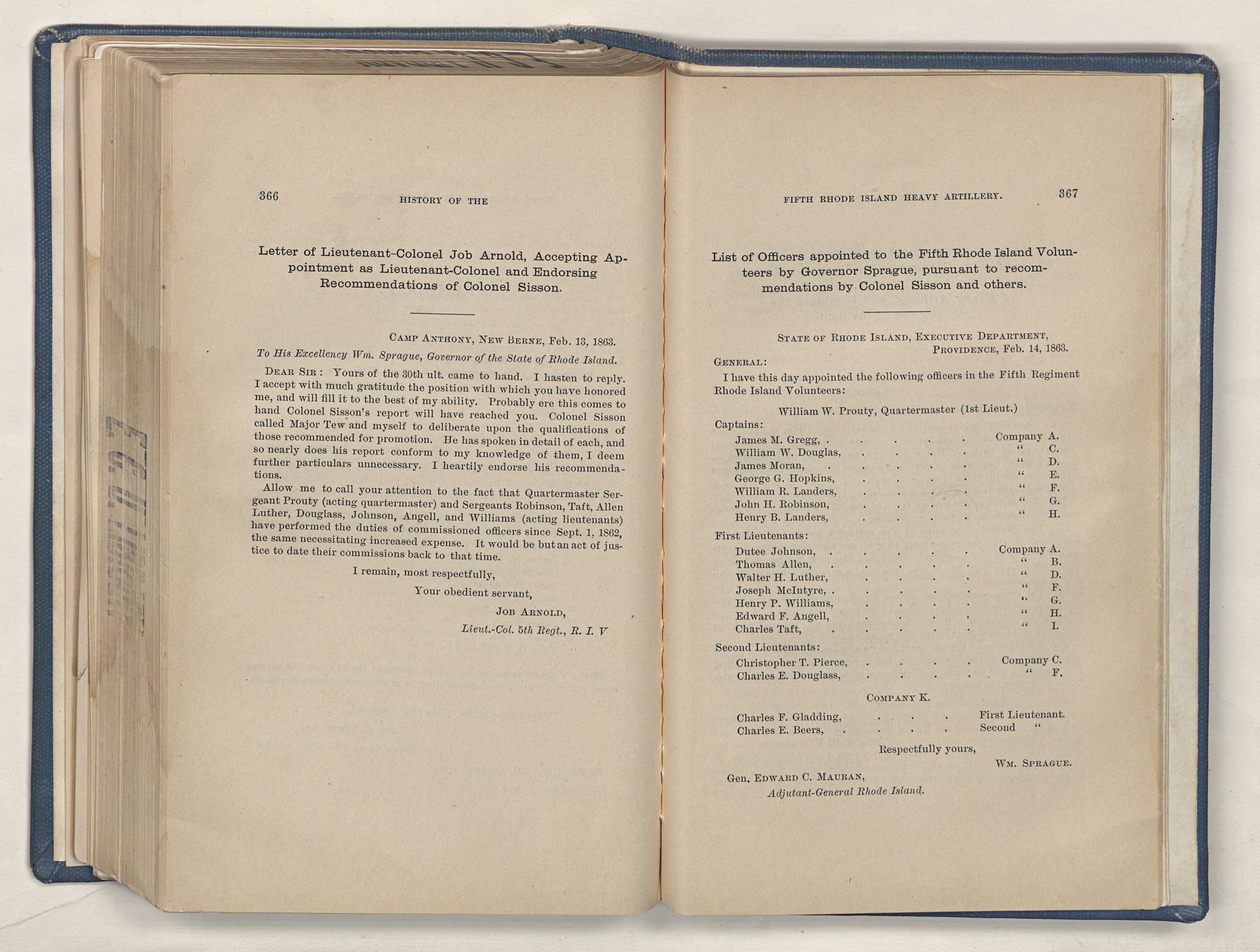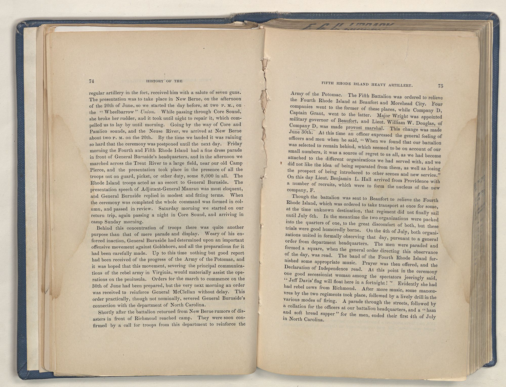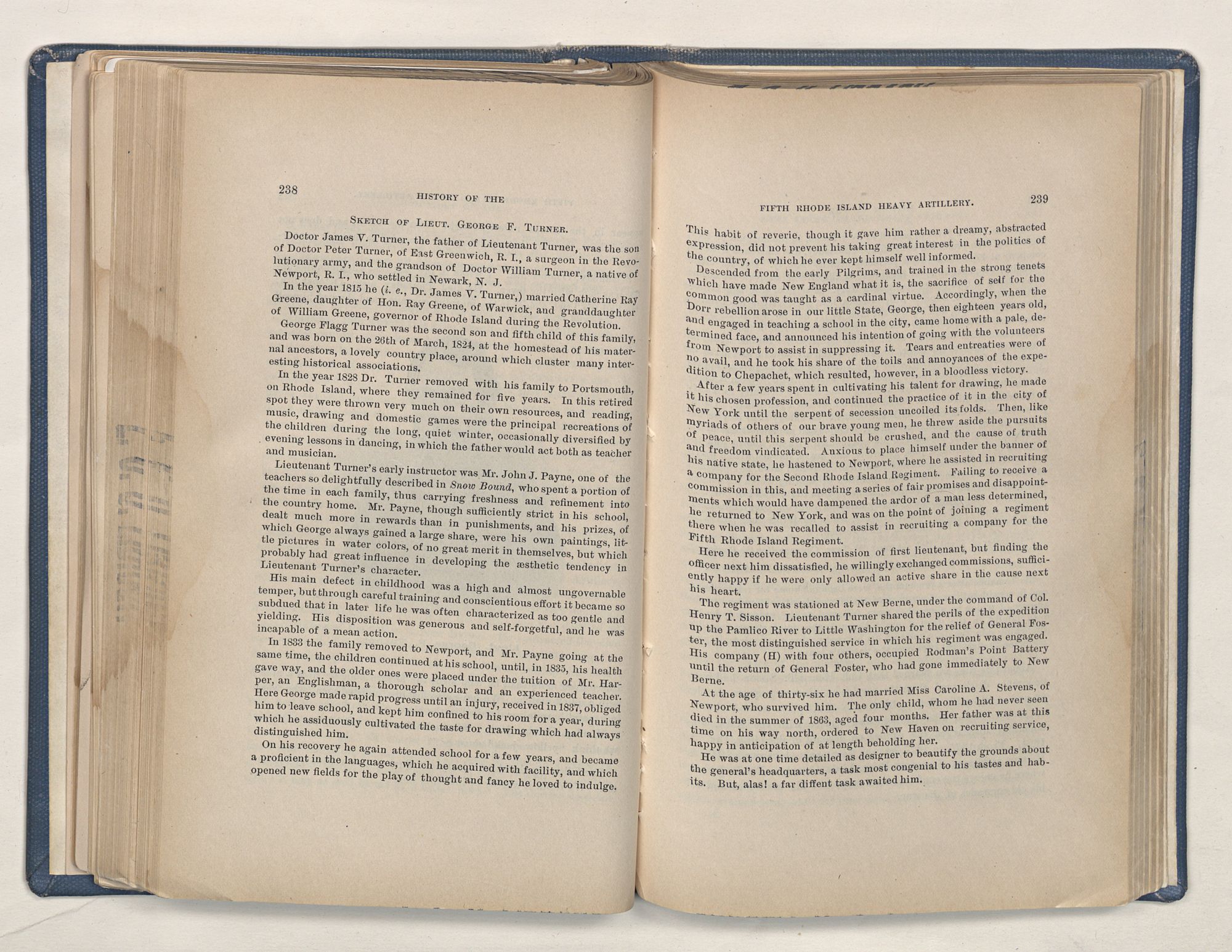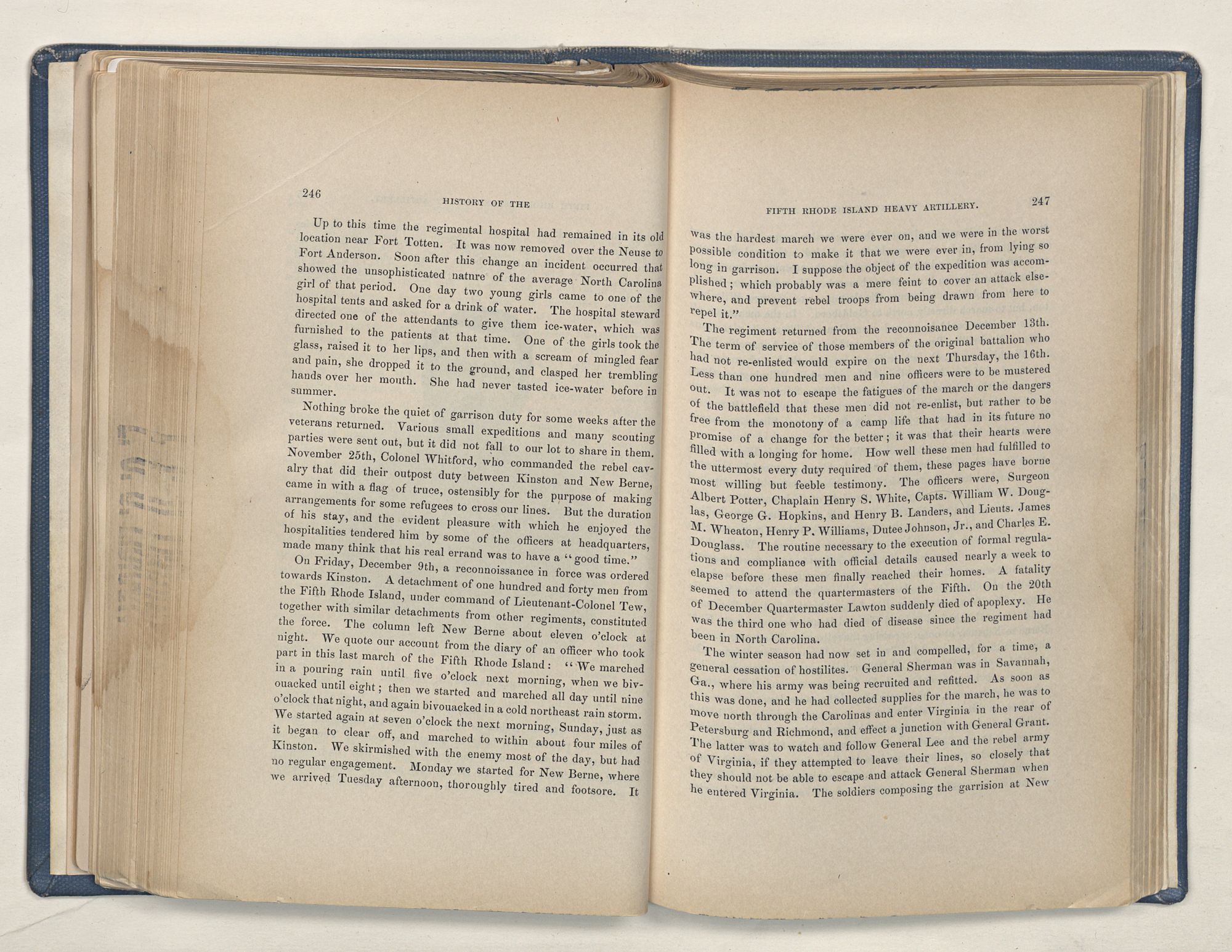 Henry T. Sisson, Colonel Commanding 5th Regiment Rhode Island ArtilleryHISTORYOF THEFIFTH REGIMENTOF Rhode Island Heavy Artillery,DURINGTHREE YEARS AND A HALF OF SERVICE INNORTH CAROLINA. January 1862-June 1865. COMPILED UNDER THE SUPERVISION OFJohn K. Burlingame.PROVIDENCE:SNOW & FARNHAM.Printers and Publishers,1892.