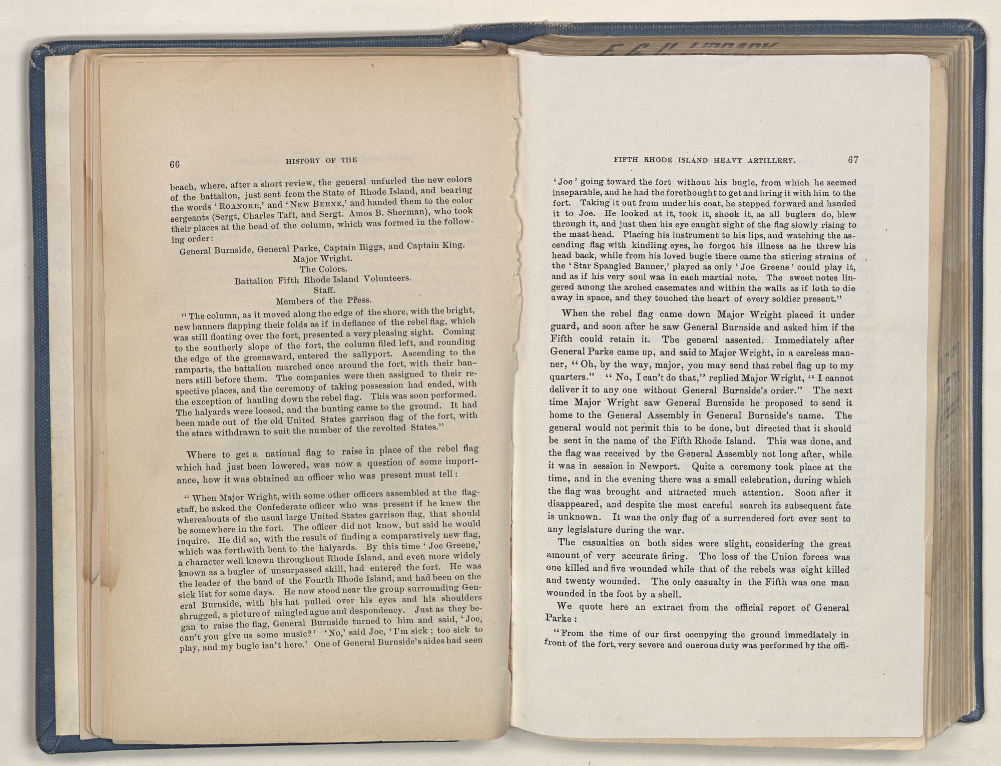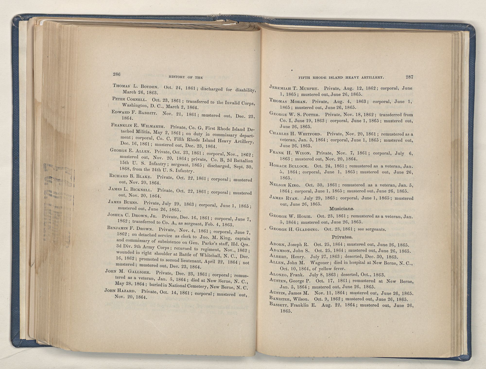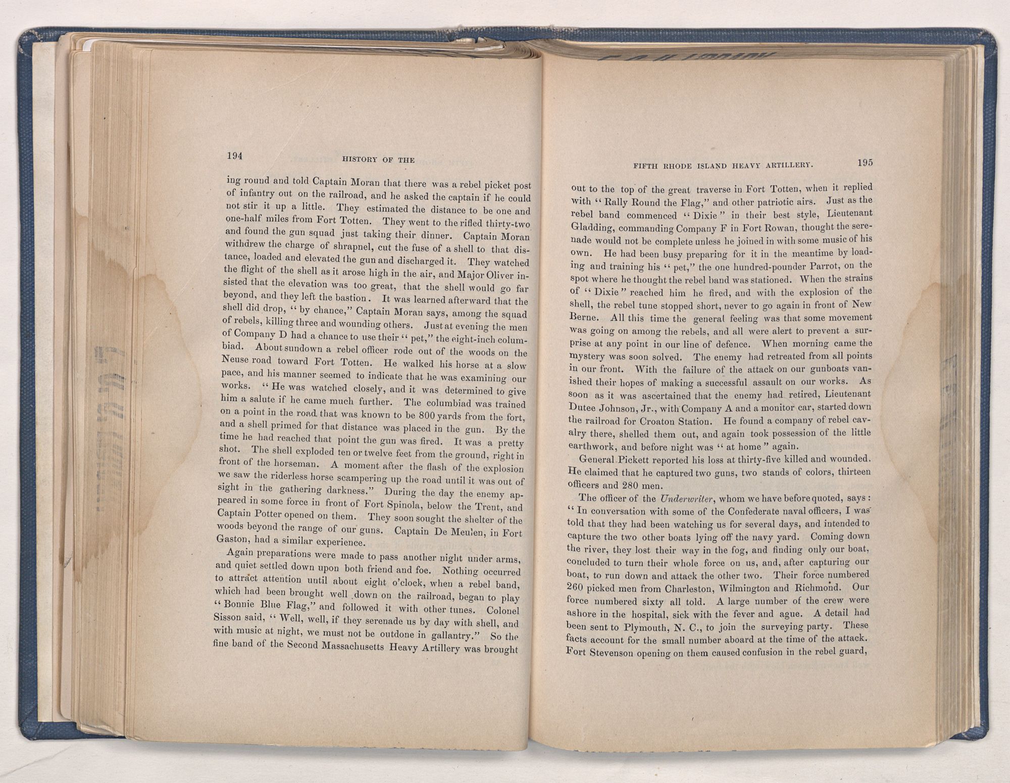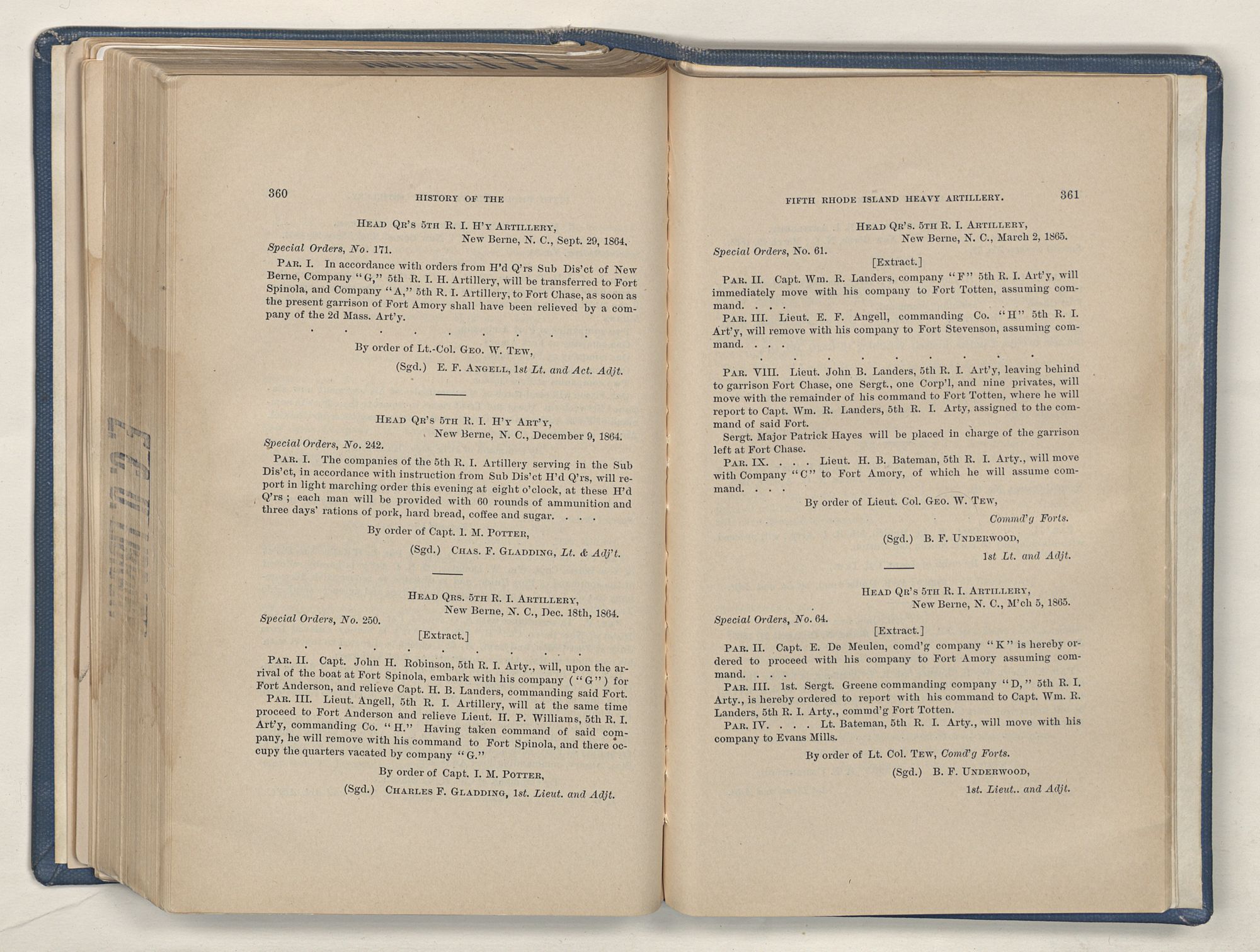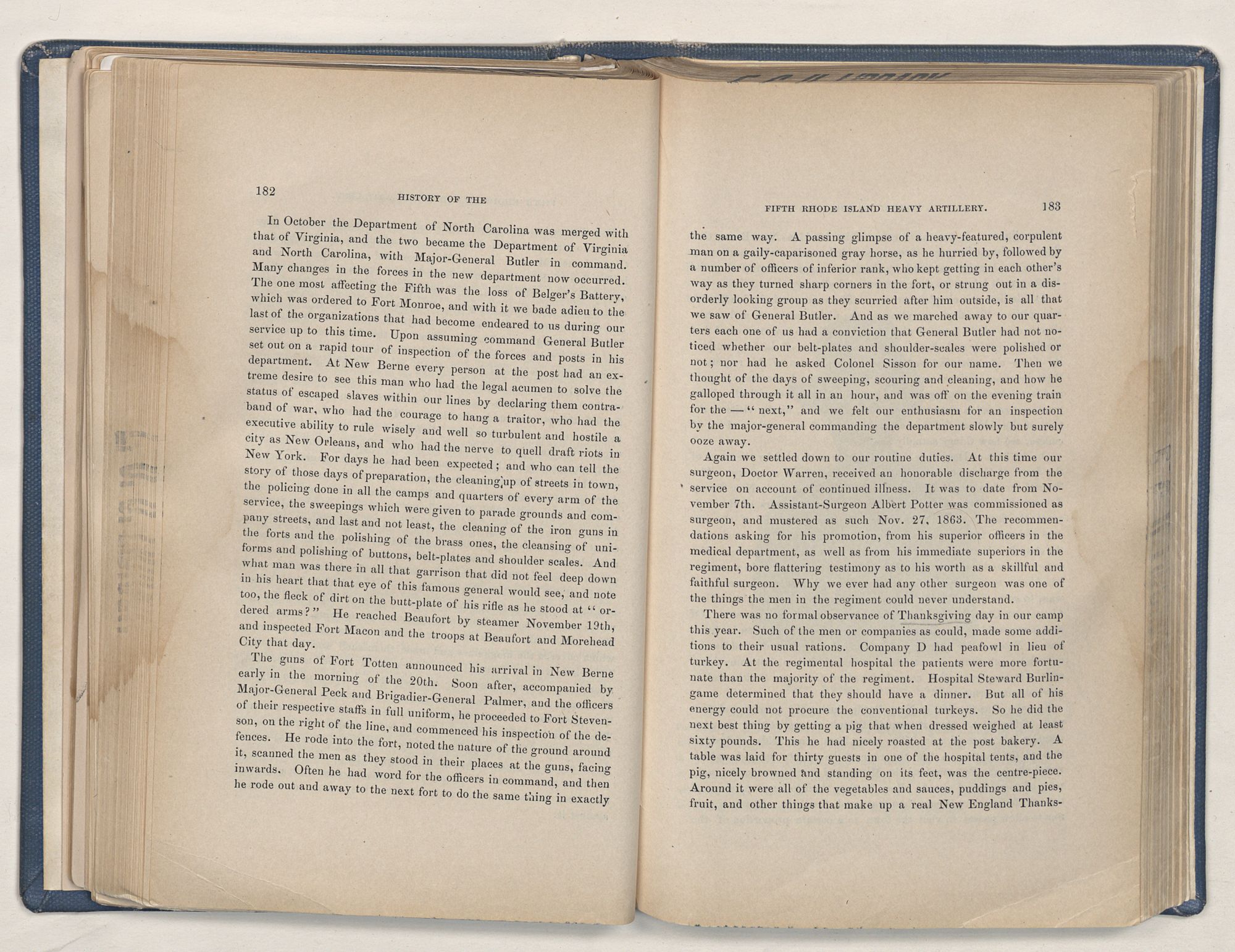 Henry T. Sisson, Colonel Commanding 5th Regiment Rhode Island ArtilleryHISTORYOF THEFIFTH REGIMENTOF Rhode Island Heavy Artillery,DURINGTHREE YEARS AND A HALF OF SERVICE INNORTH CAROLINA. January 1862-June 1865. COMPILED UNDER THE SUPERVISION OFJohn K. Burlingame.PROVIDENCE:SNOW & FARNHAM.Printers and Publishers,1892.