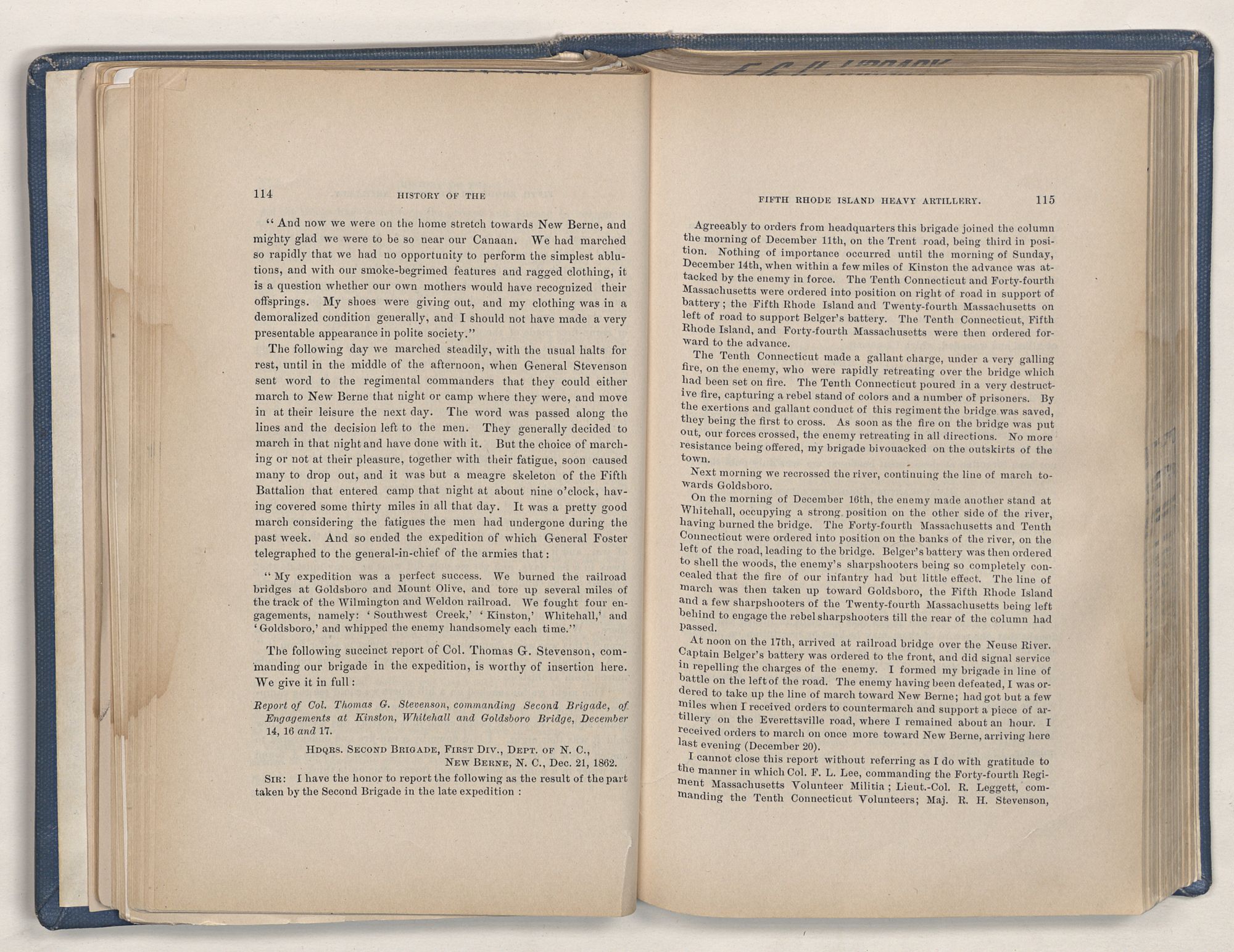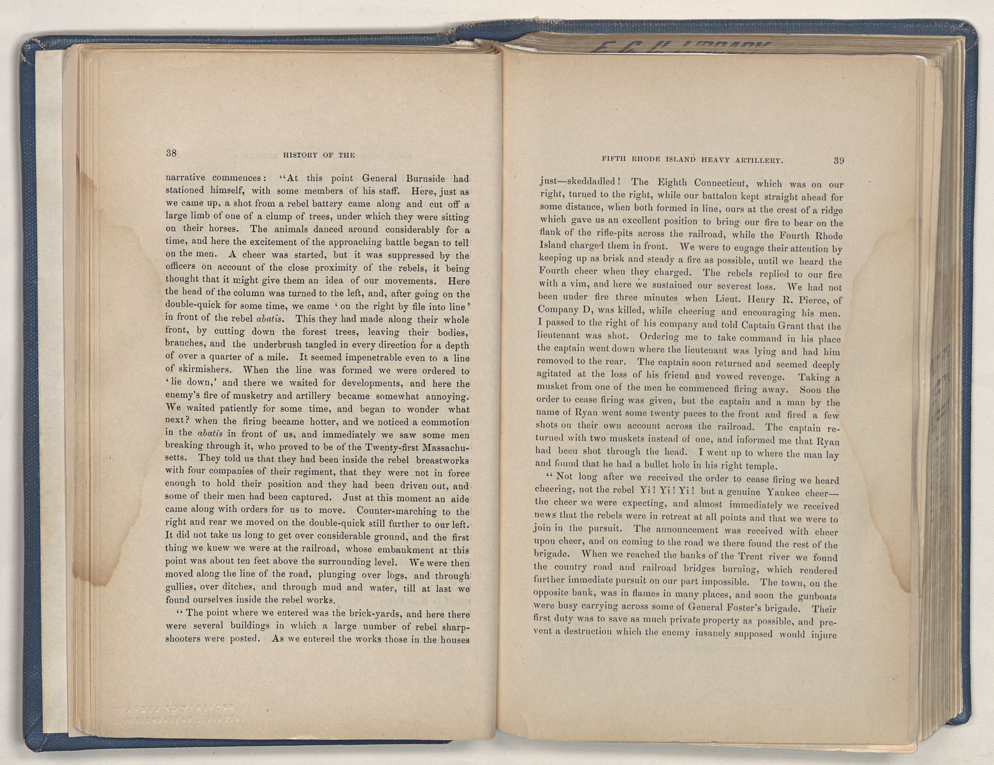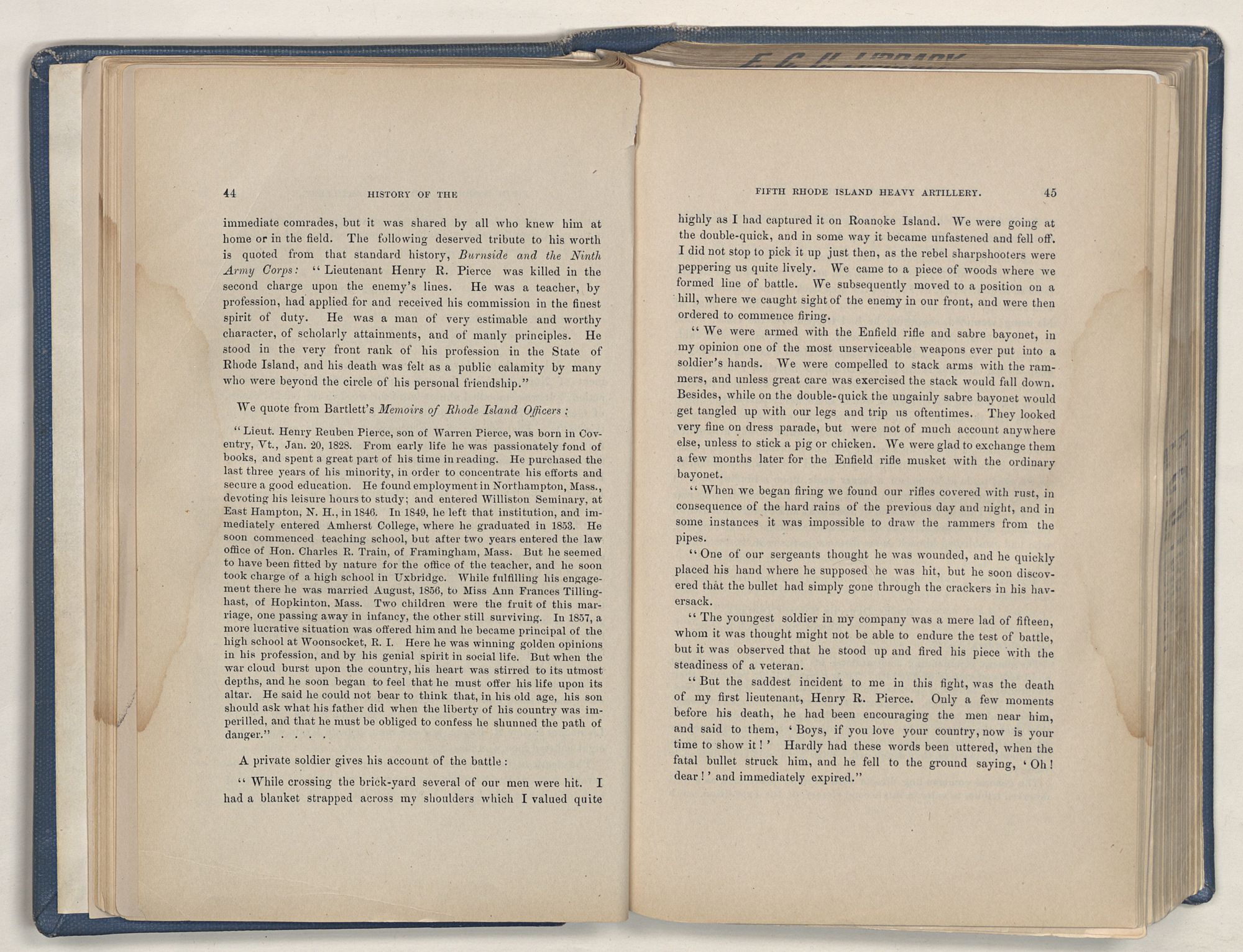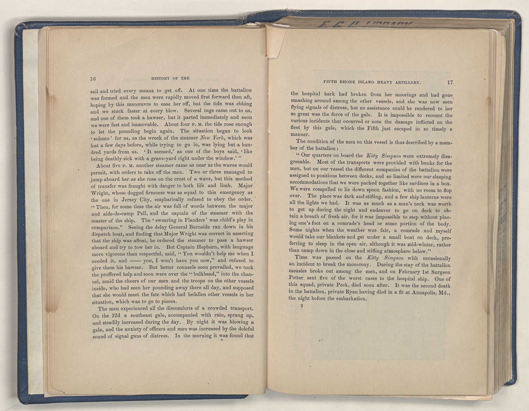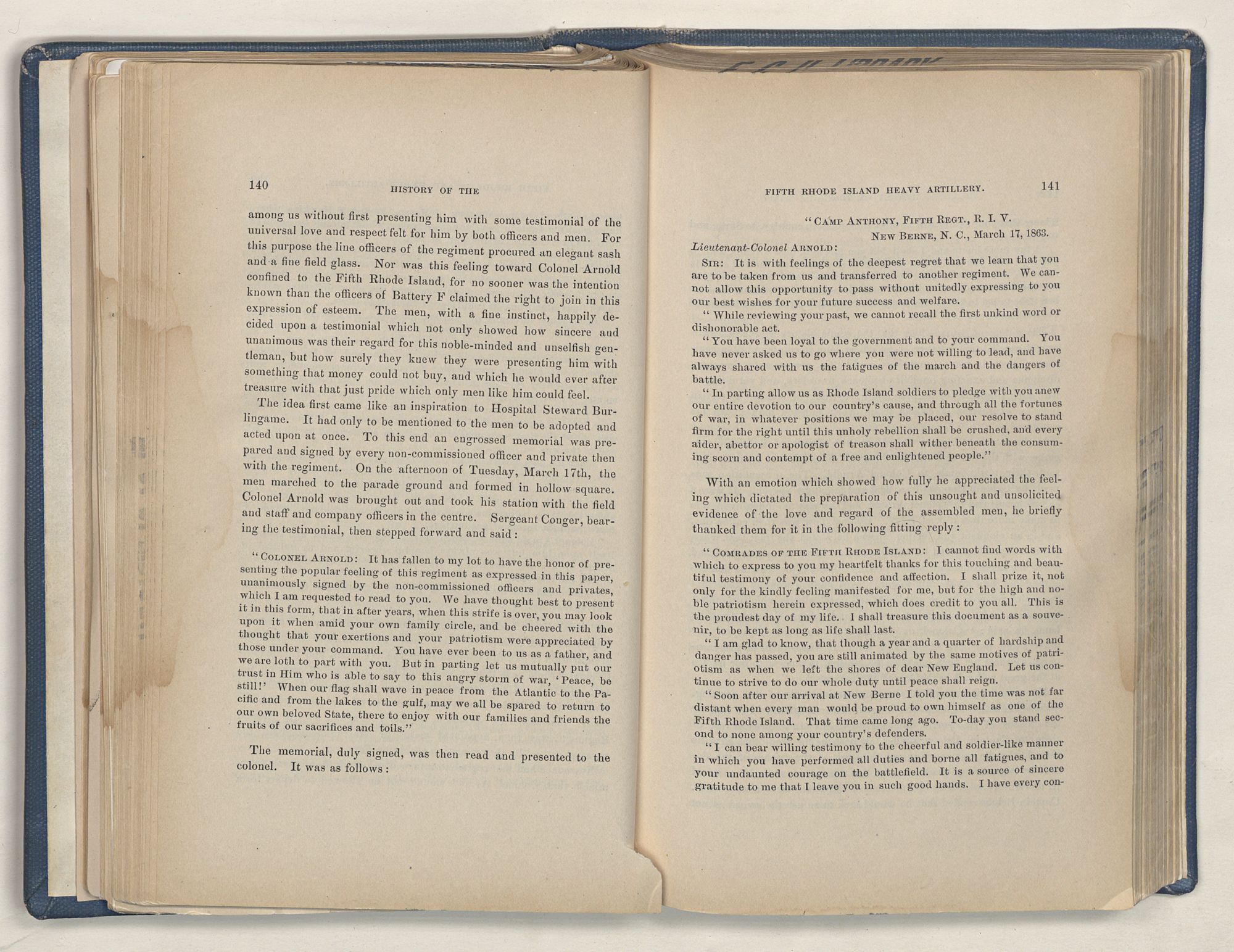 Henry T. Sisson, Colonel Commanding 5th Regiment Rhode Island ArtilleryHISTORYOF THEFIFTH REGIMENTOF Rhode Island Heavy Artillery,DURINGTHREE YEARS AND A HALF OF SERVICE INNORTH CAROLINA. January 1862-June 1865. COMPILED UNDER THE SUPERVISION OFJohn K. Burlingame.PROVIDENCE:SNOW & FARNHAM.Printers and Publishers,1892.