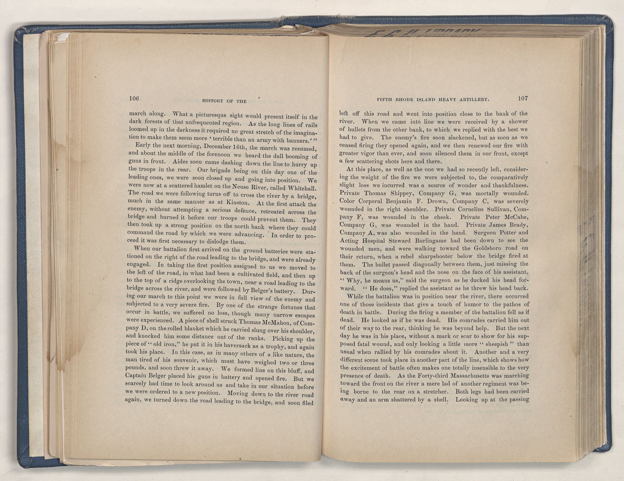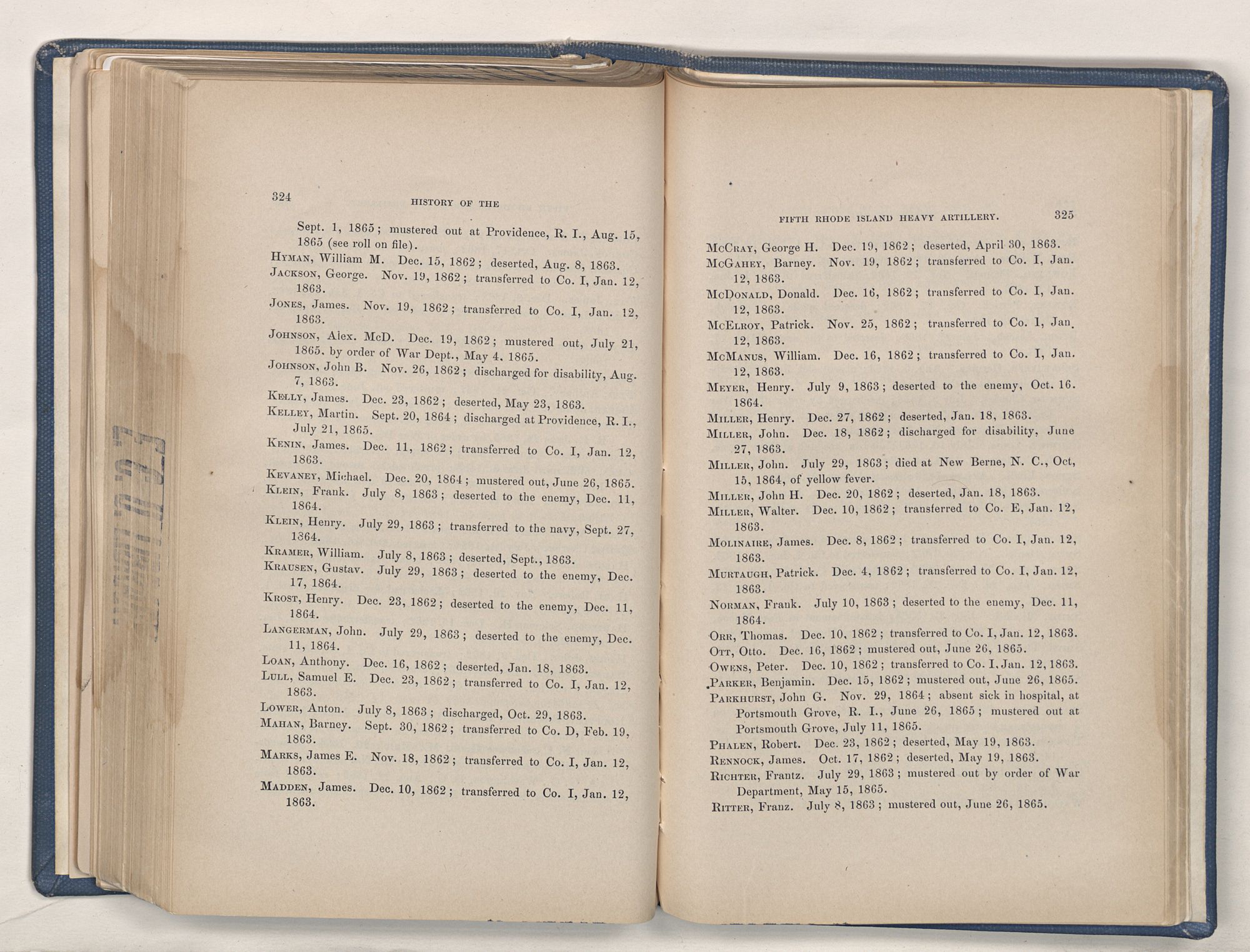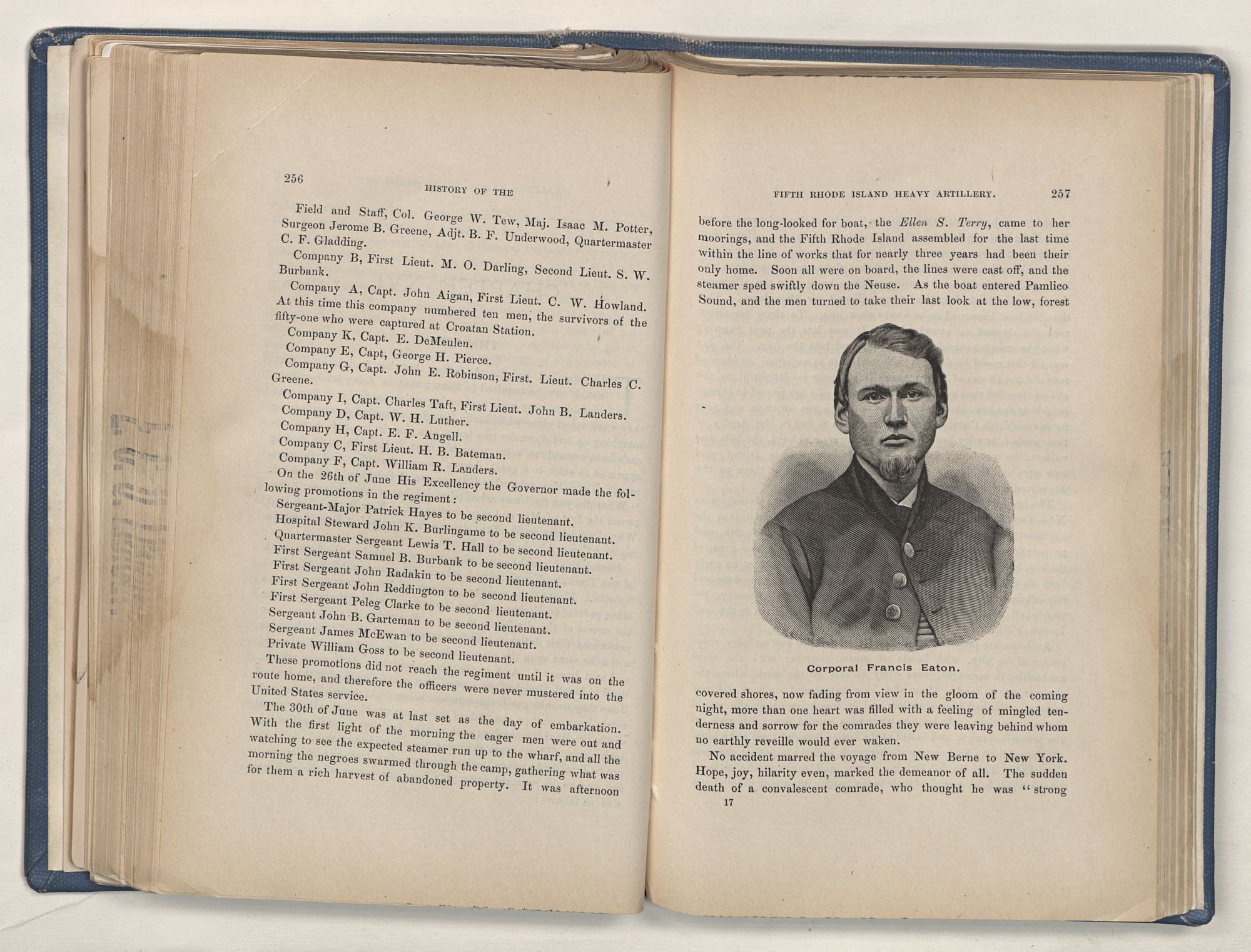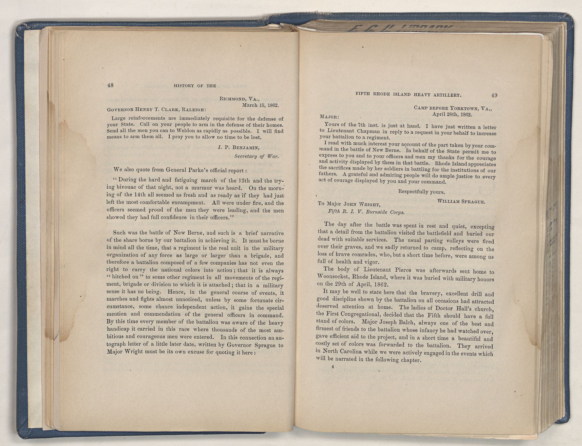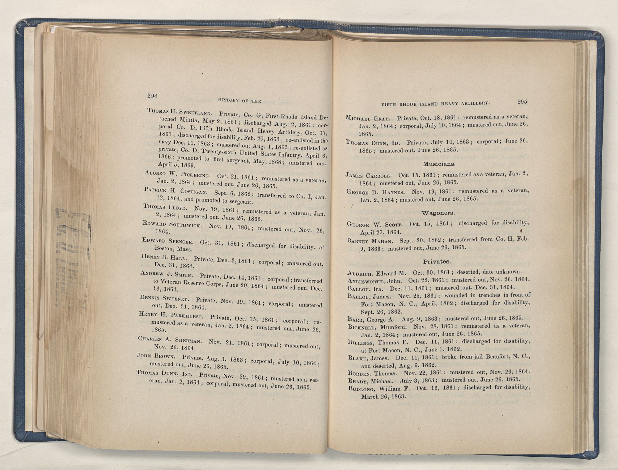 Henry T. Sisson, Colonel Commanding 5th Regiment Rhode Island ArtilleryHISTORYOF THEFIFTH REGIMENTOF Rhode Island Heavy Artillery,DURINGTHREE YEARS AND A HALF OF SERVICE INNORTH CAROLINA. January 1862-June 1865. COMPILED UNDER THE SUPERVISION OFJohn K. Burlingame.PROVIDENCE:SNOW & FARNHAM.Printers and Publishers,1892.
